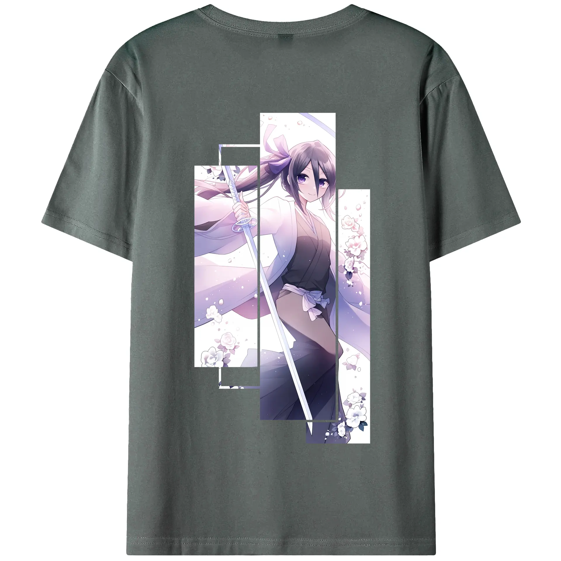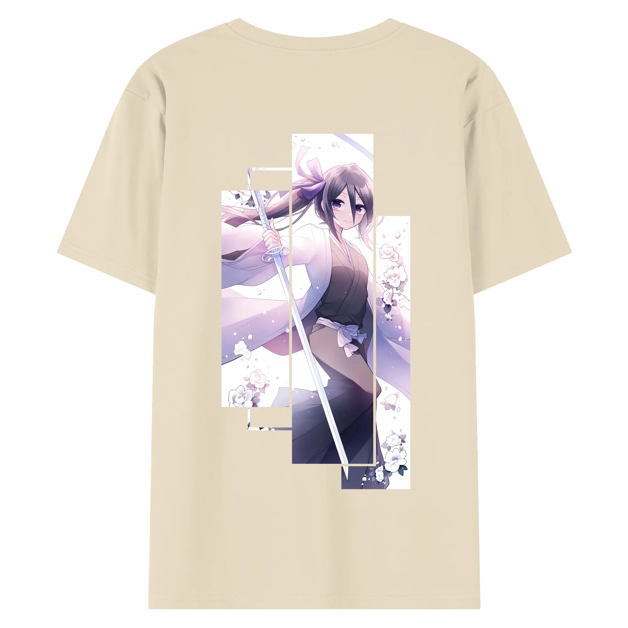ブリーチ グッズ 朽木 ルキア - 綿100% ヴィンテージ風 半袖Tシャツ ・ 背面プリント ・ 柔らか肌触り ・ 通気性 快適 ・ スポーツ カジュアル 外出用