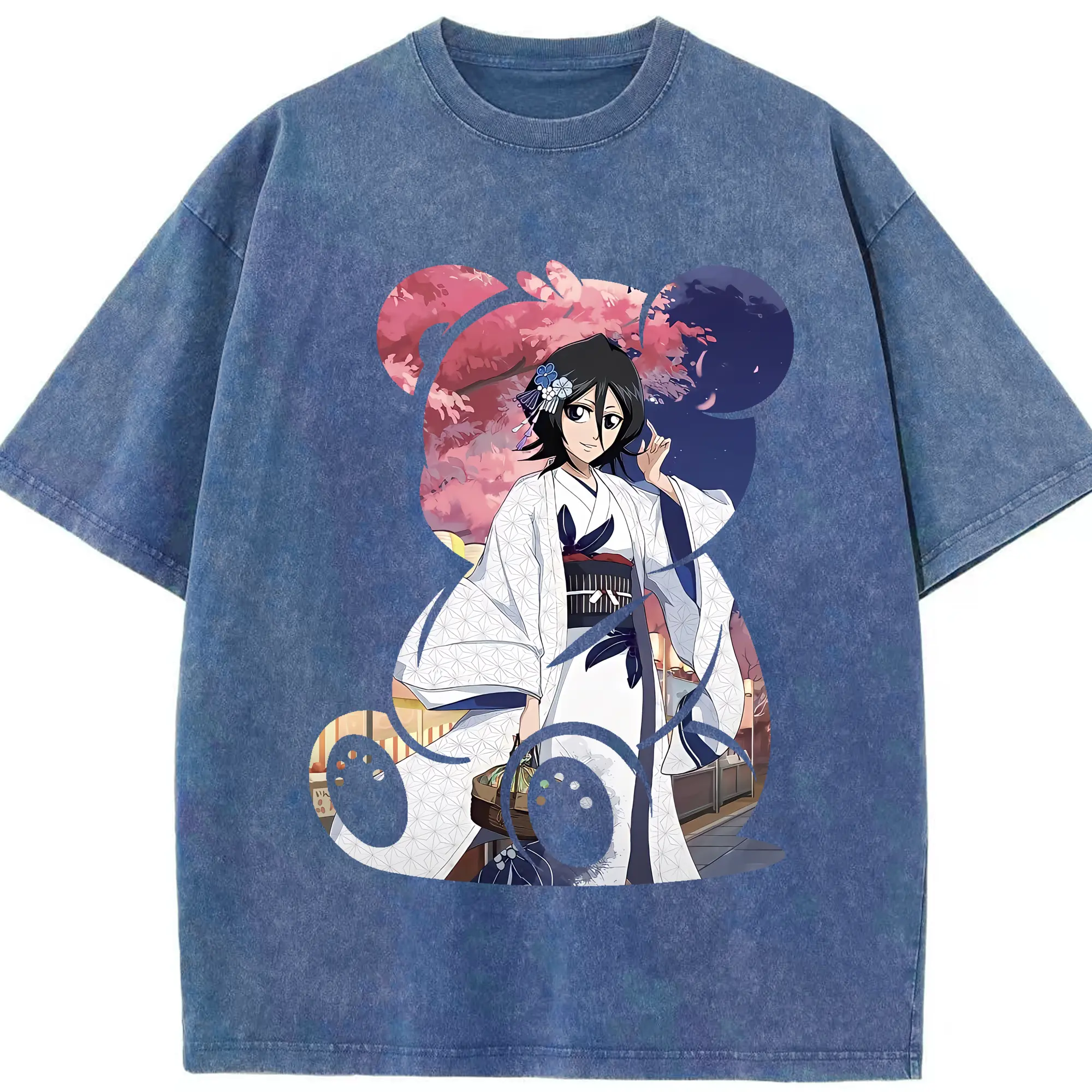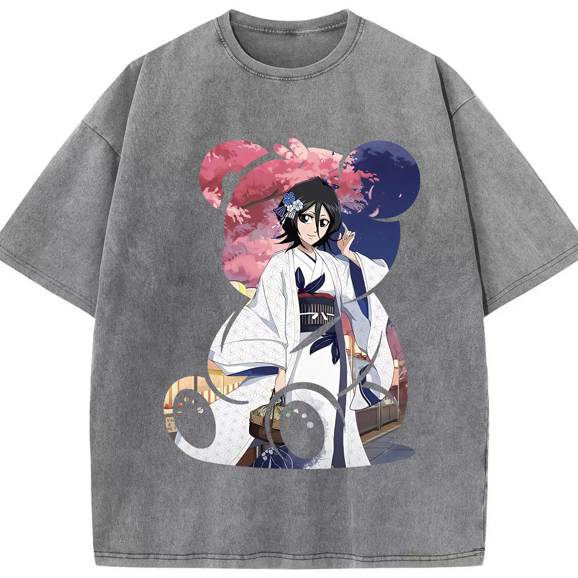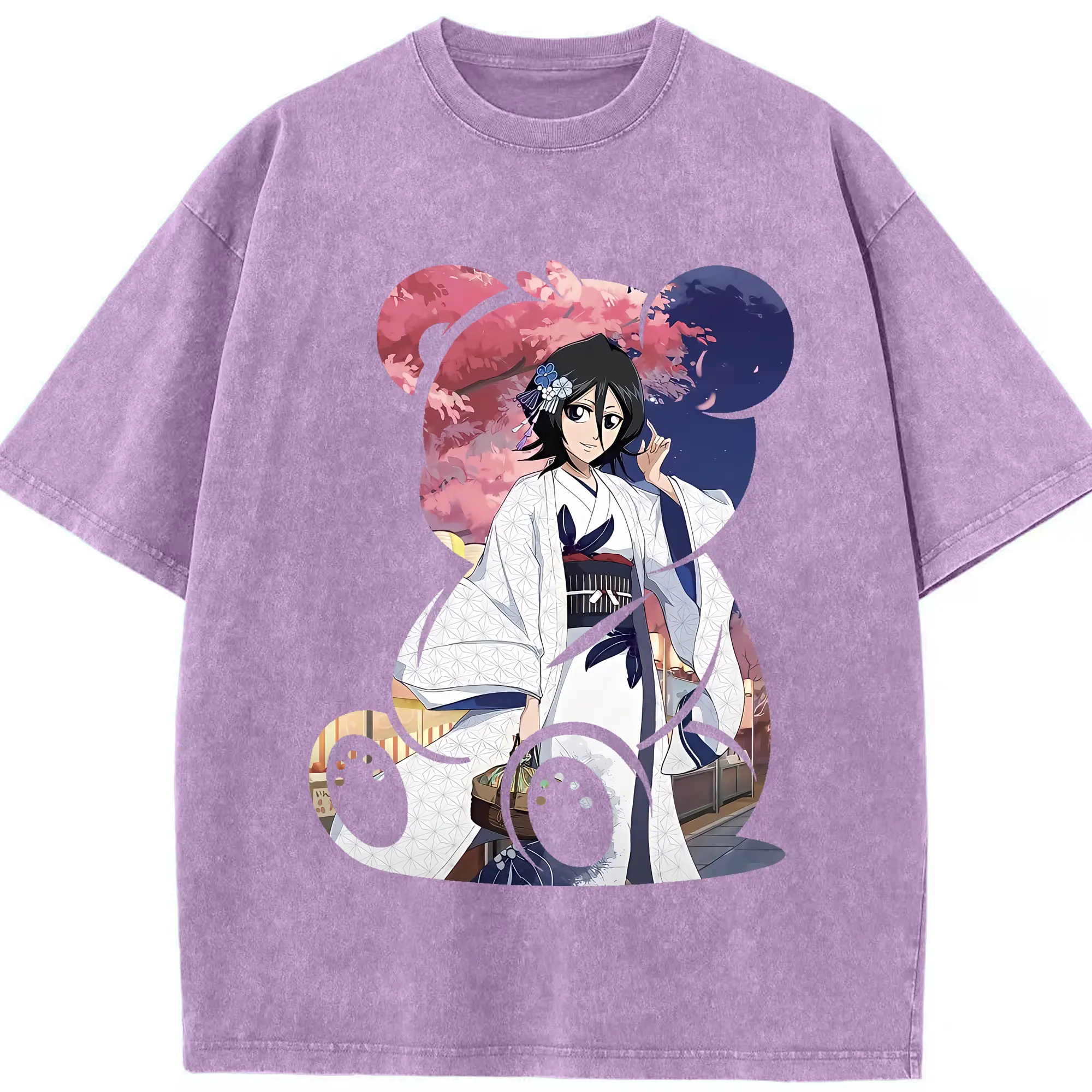 ブリーチ グッズ 朽木 ルキア - 綿100% ヴィンテージ風 半袖Tシャツ ・ 背面プリント ・ 柔らか肌触り ・ 通気性 快適 ・ スポーツ カジュアル 外出用
