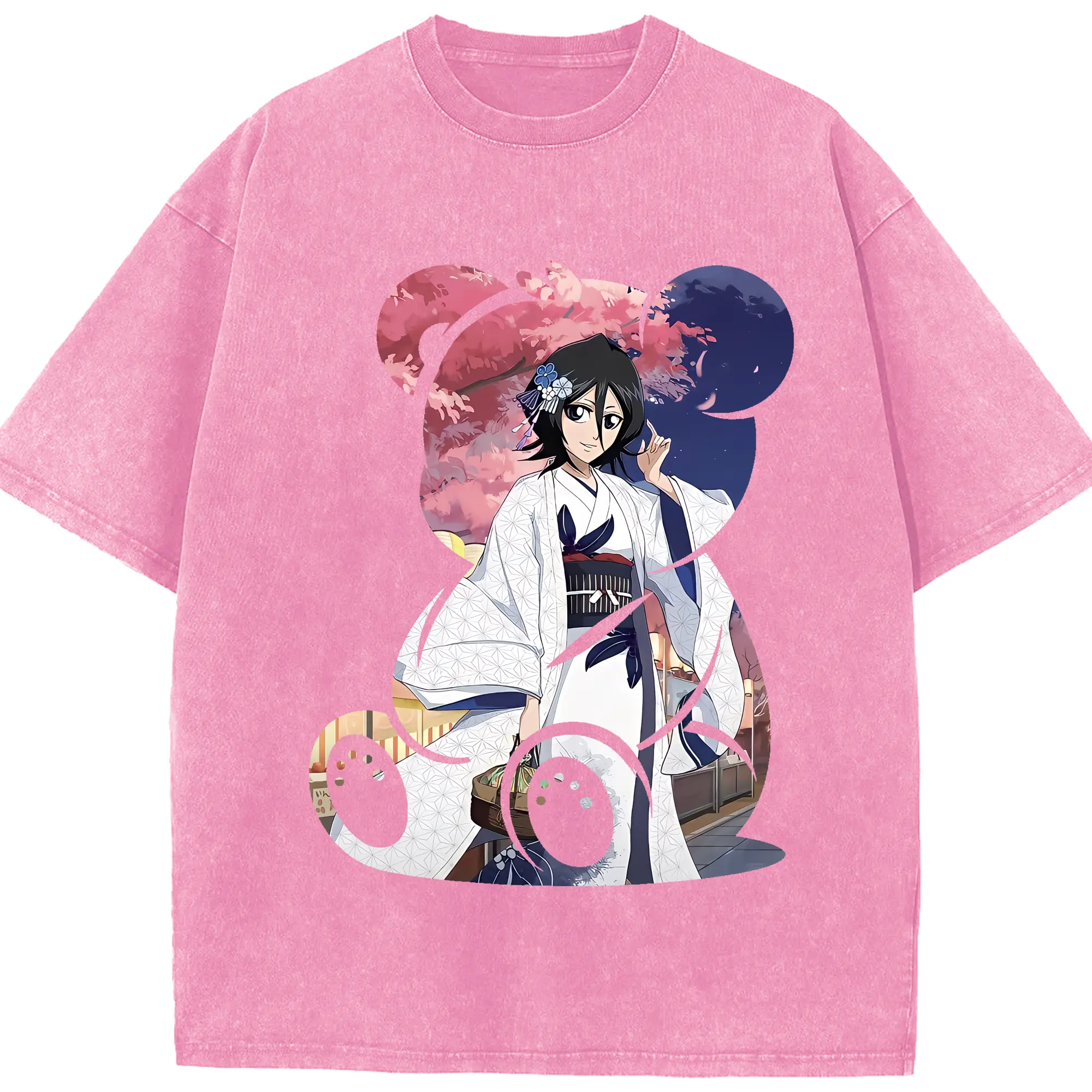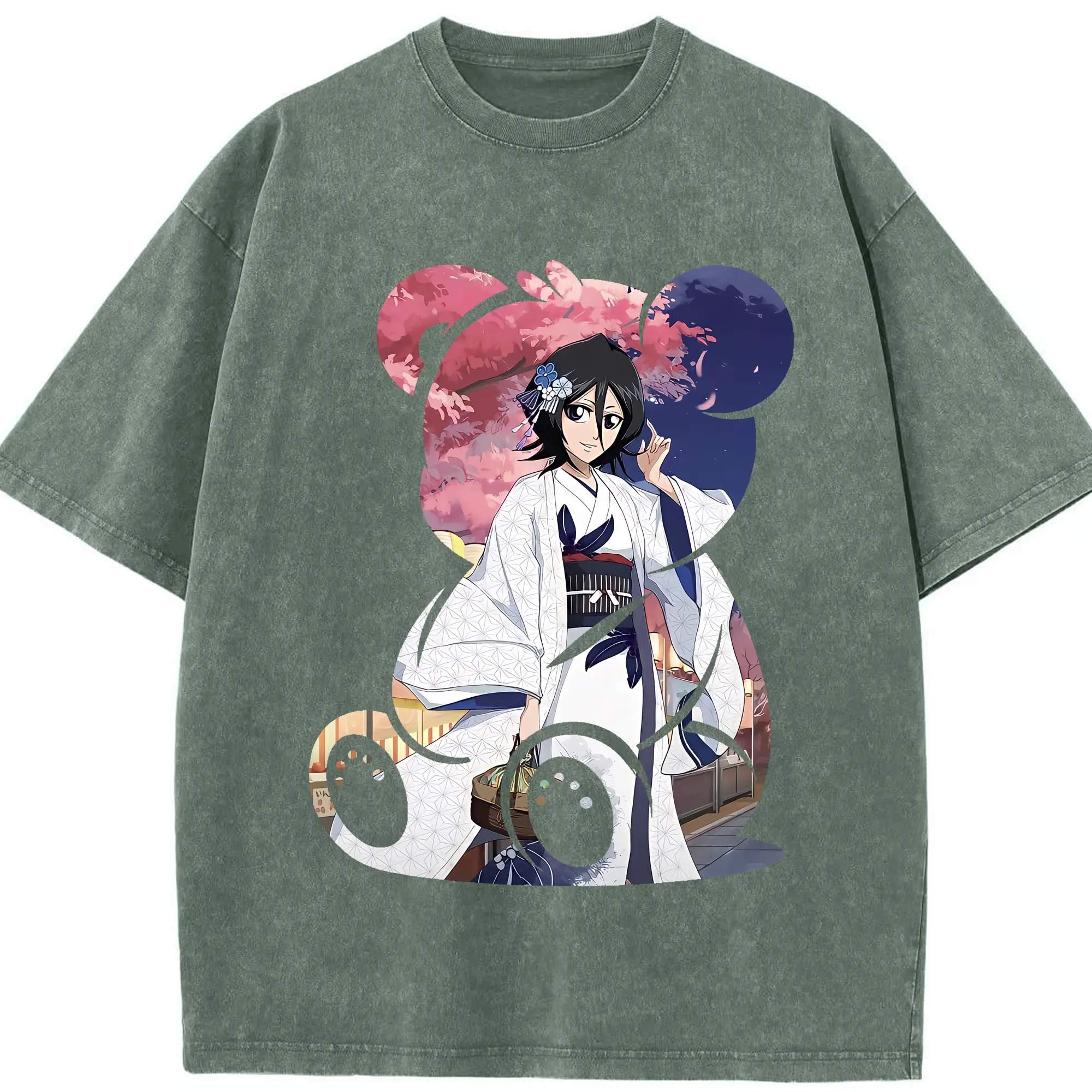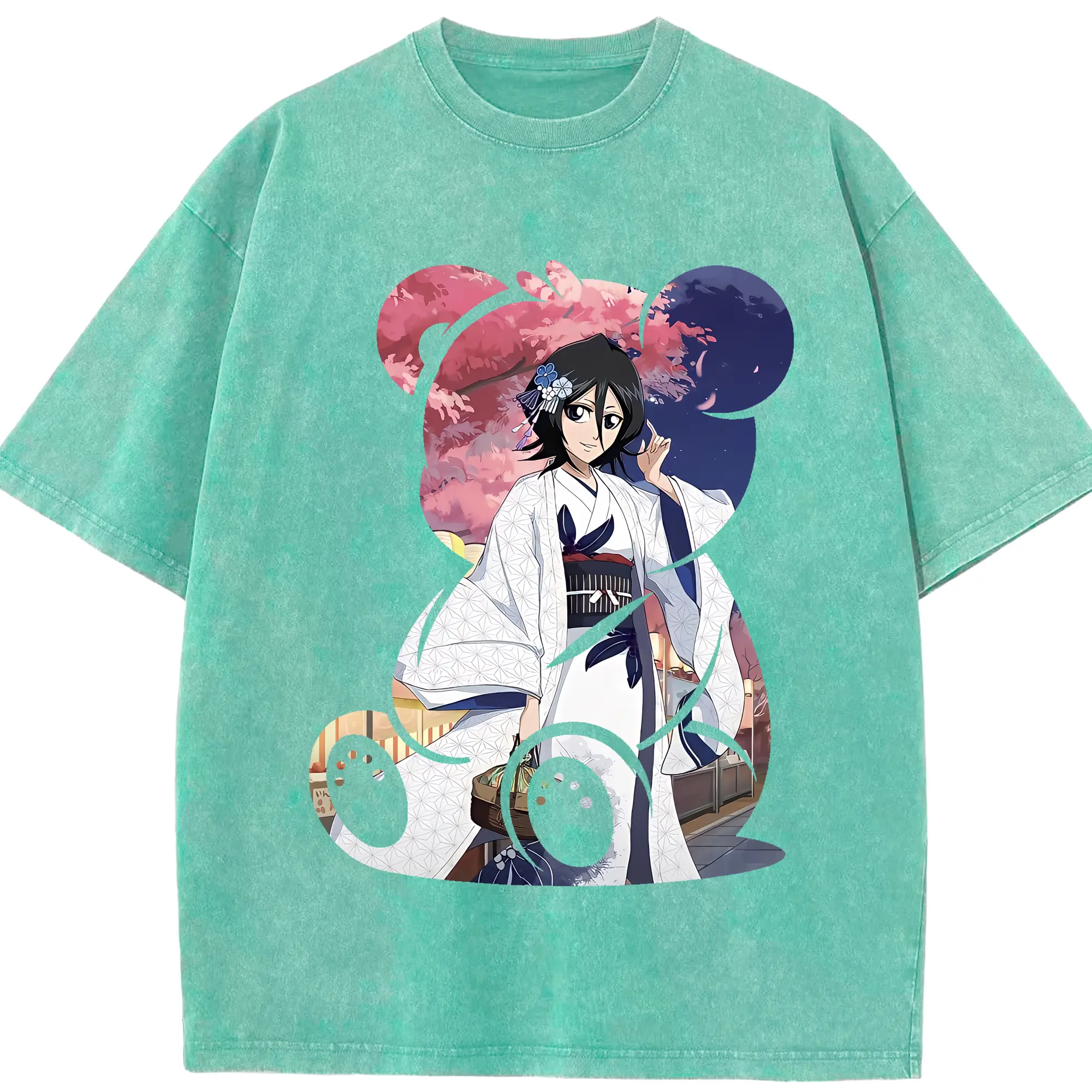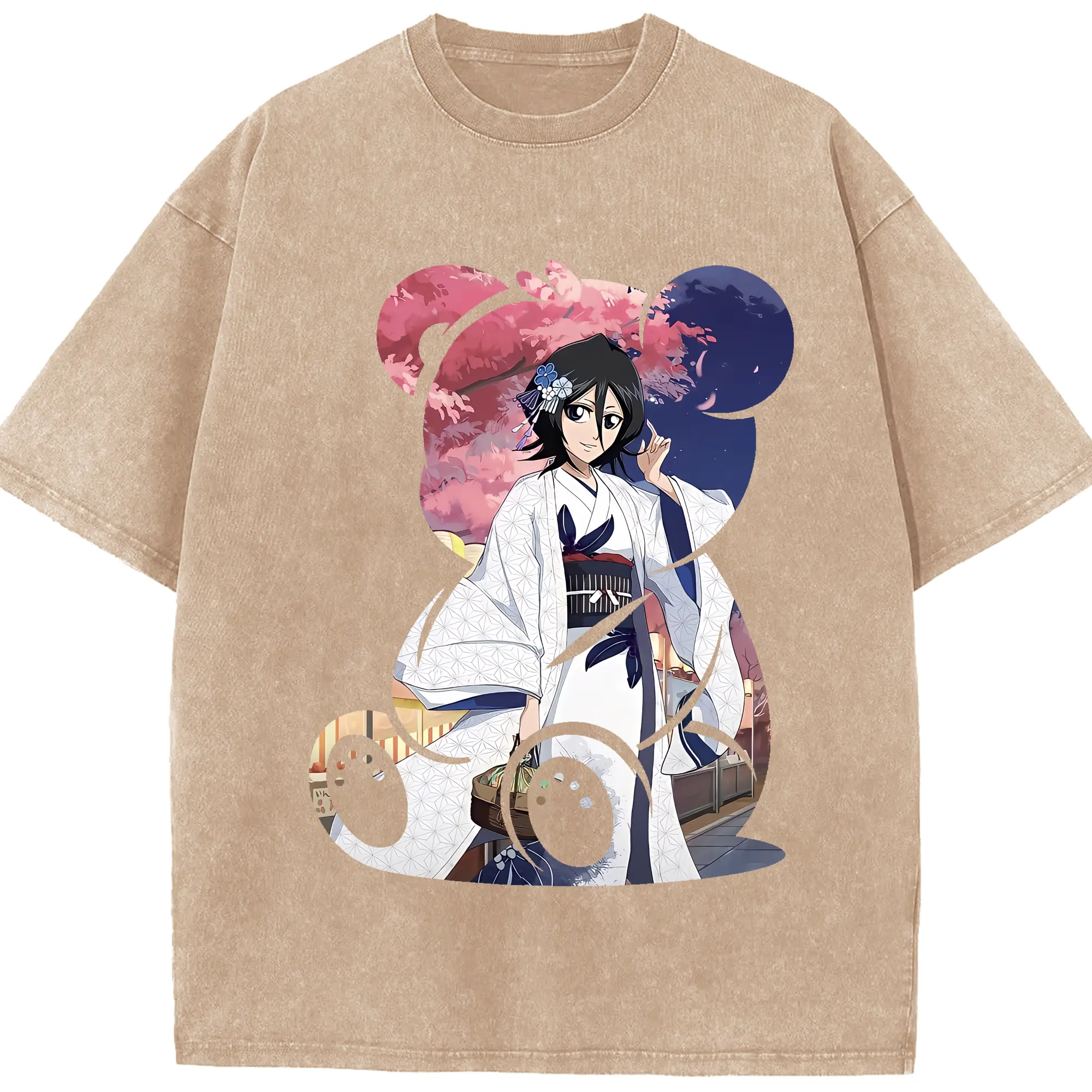 ブリーチ グッズ 朽木 ルキア - 綿100% ヴィンテージ風 半袖Tシャツ ・ 背面プリント ・ 柔らか肌触り ・ 通気性 快適 ・ スポーツ カジュアル 外出用