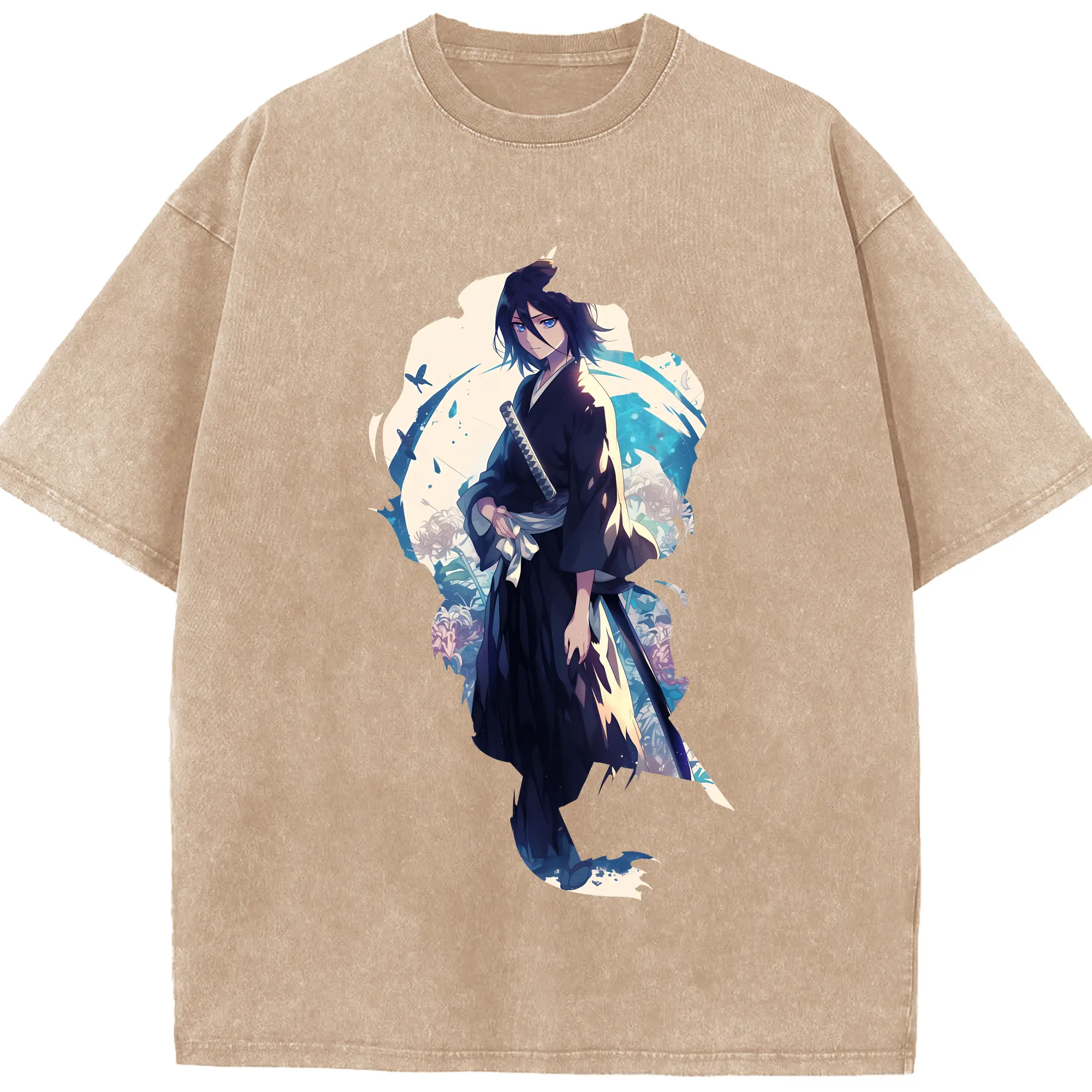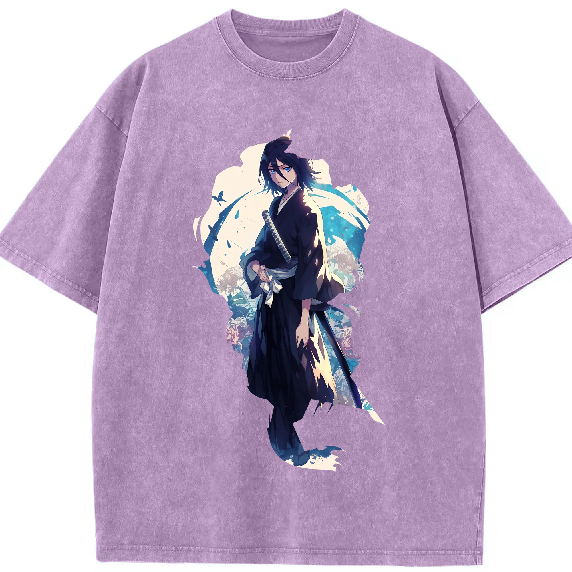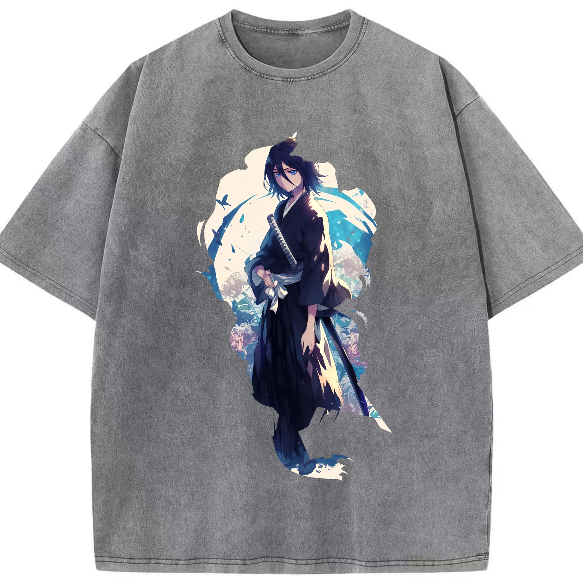 ブリーチ グッズ,朽木 白哉 - 綿100% ヴィンテージ風 半袖Tシャツ ・ フロントプリント ・ 柔らか肌触り ・ 通気性 快適 ・ スポーツ カジュアル 外出用
