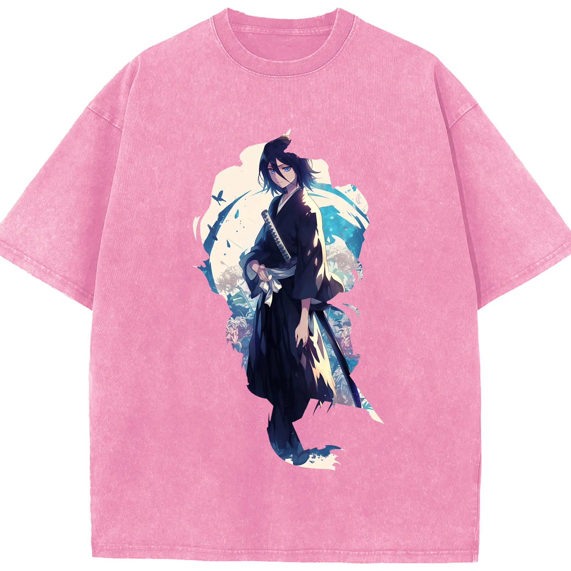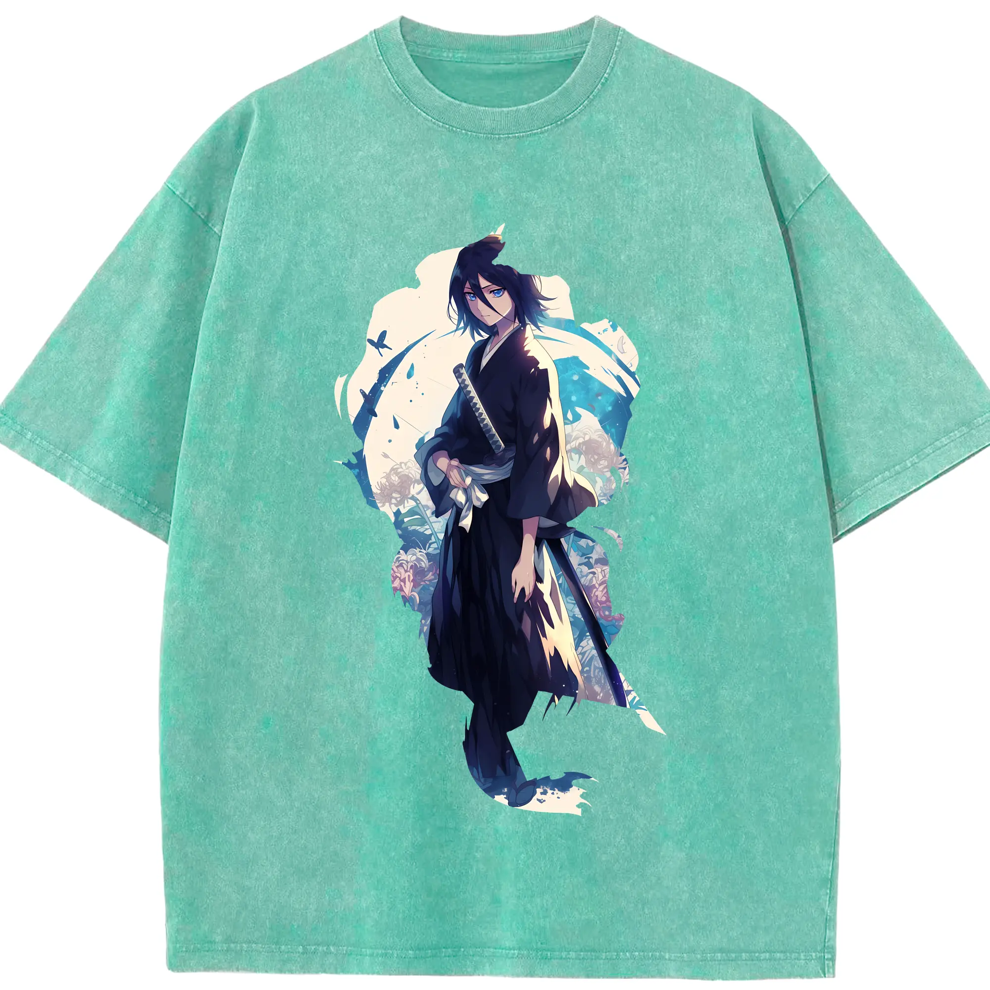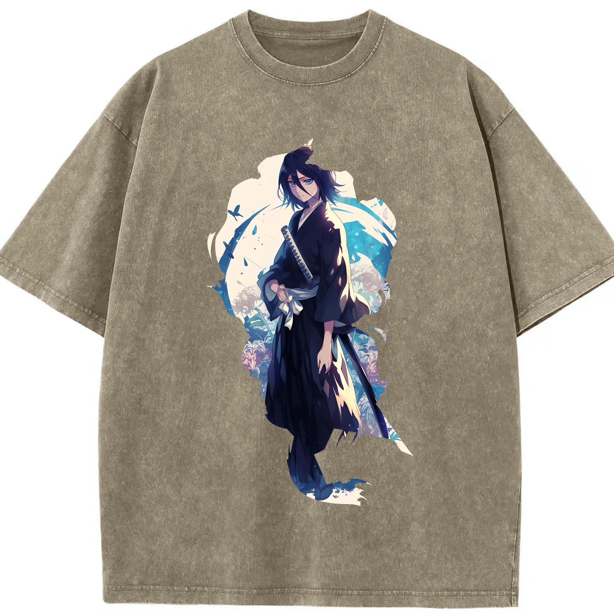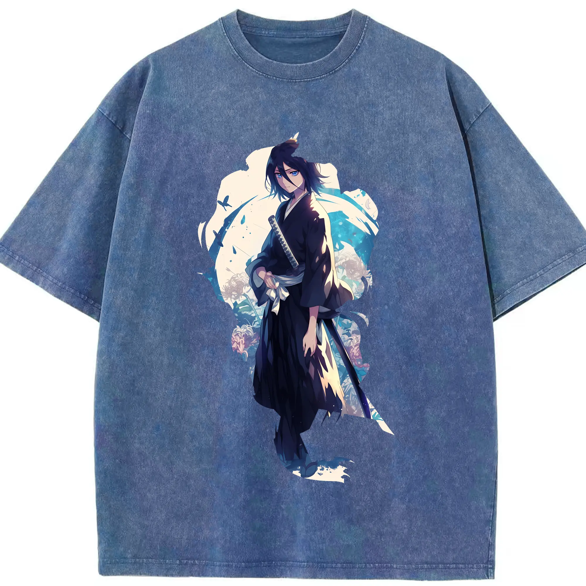 ブリーチ グッズ,朽木 白哉 - 綿100% ヴィンテージ風 半袖Tシャツ ・ フロントプリント ・ 柔らか肌触り ・ 通気性 快適 ・ スポーツ カジュアル 外出用