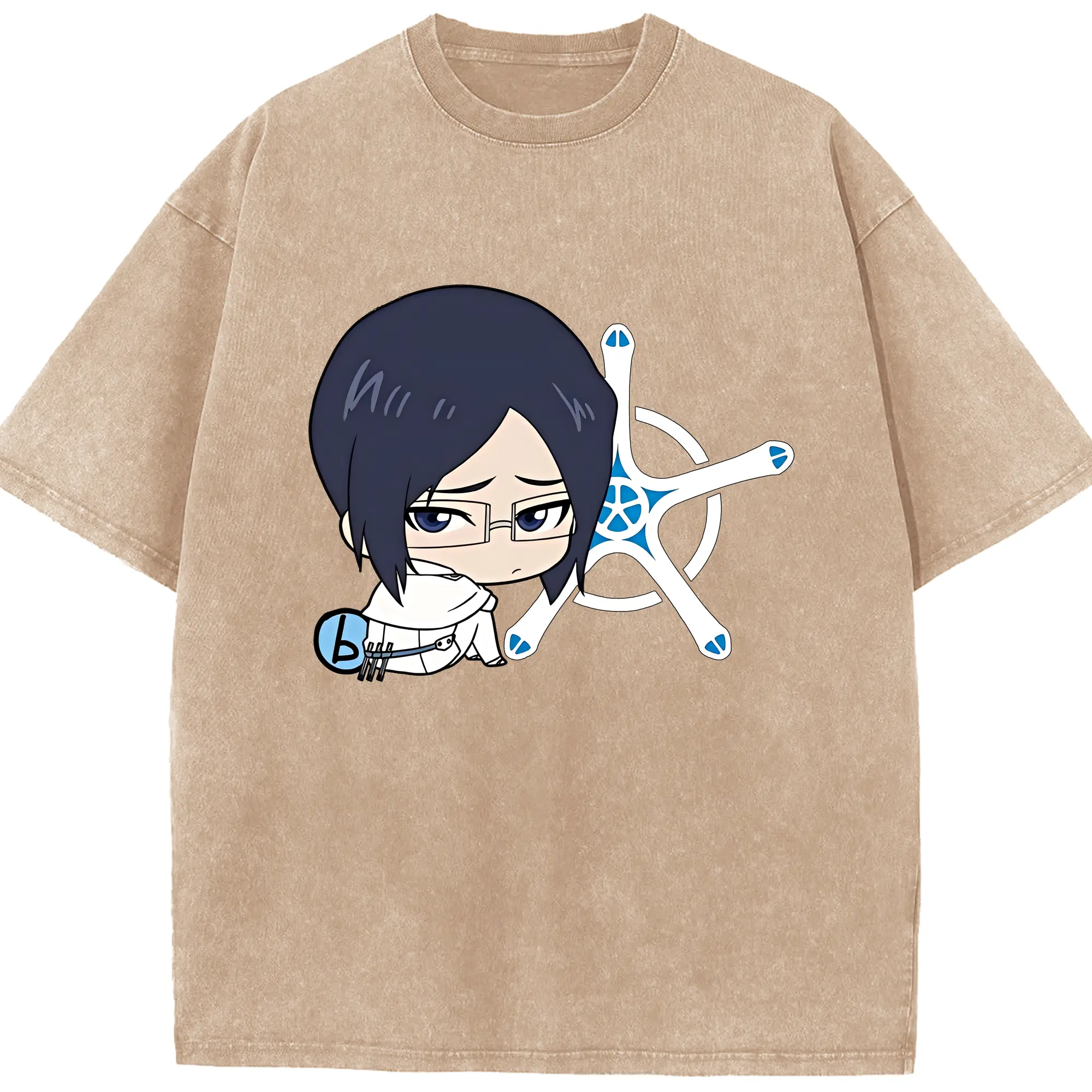 ブリーチ グッズ 石田 雨竜 - 綿100% ヴィンテージ風 半袖Tシャツ ・ 背面プリント ・ 柔らか肌触り ・ 通気性 快適 ・ スポーツ カジュアル 外出用
