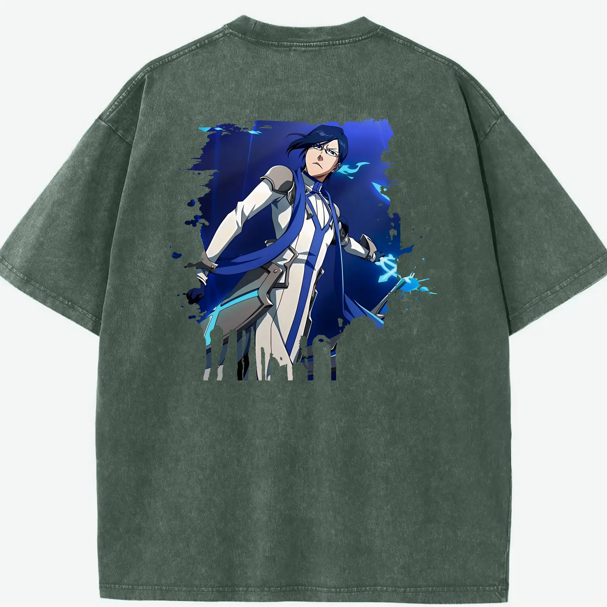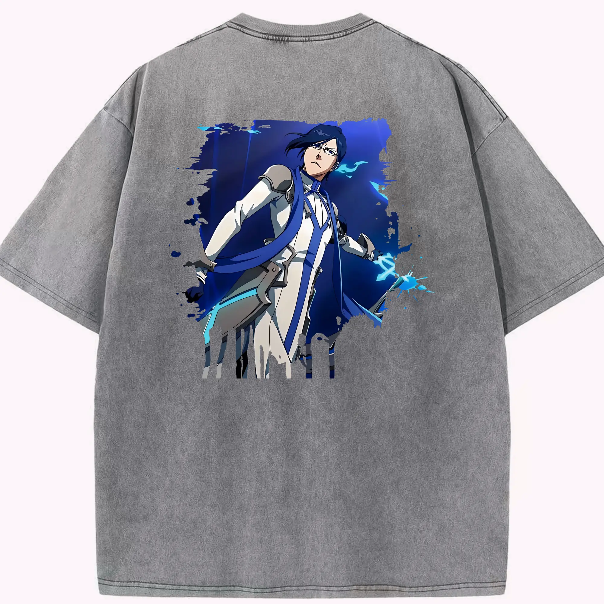 ブリーチ グッズ 石田 雨竜 - 綿100% ヴィンテージ風 半袖Tシャツ ・ フロントプリント ・ 柔らか肌触り ・ 通気性 快適 ・ スポーツ カジュアル 外出用