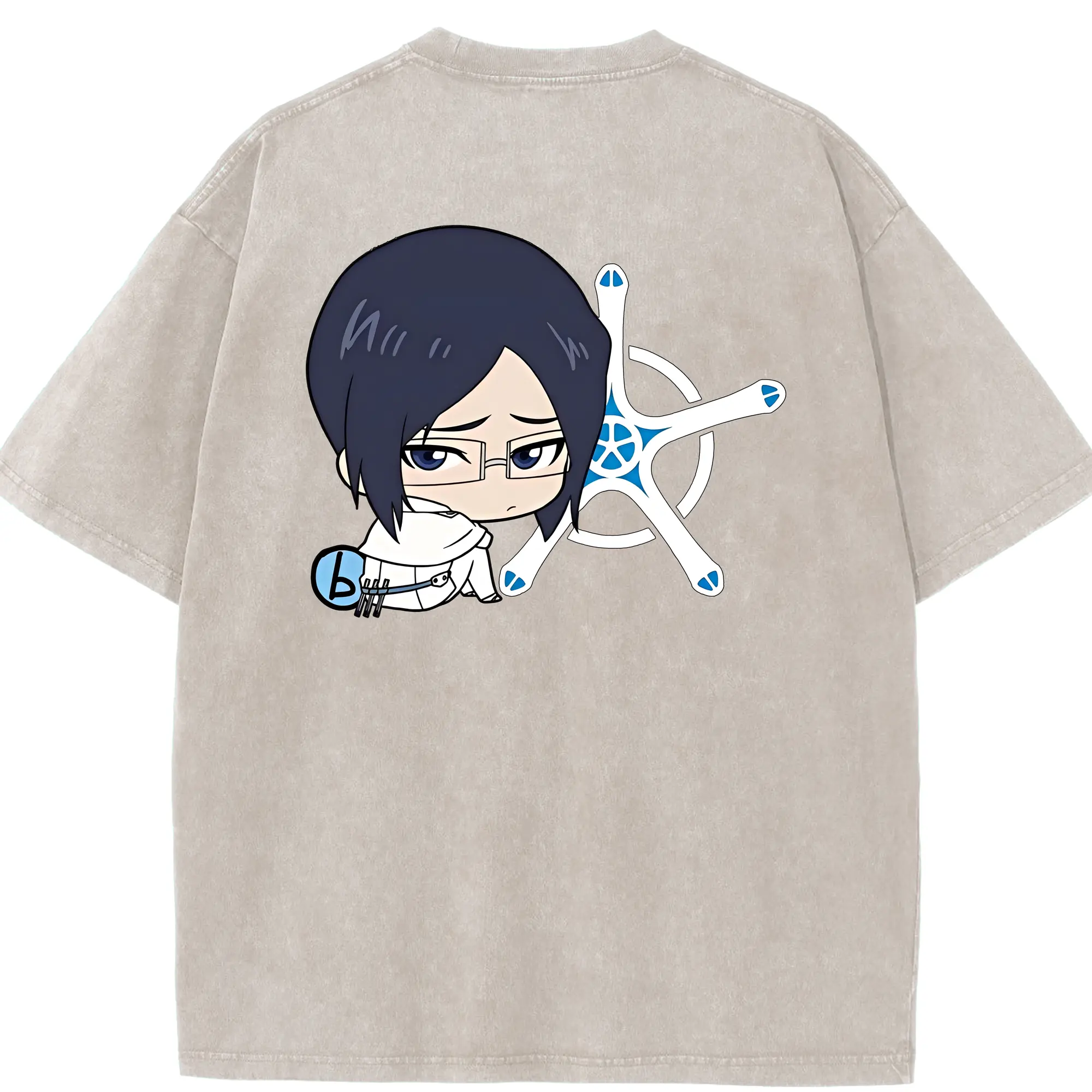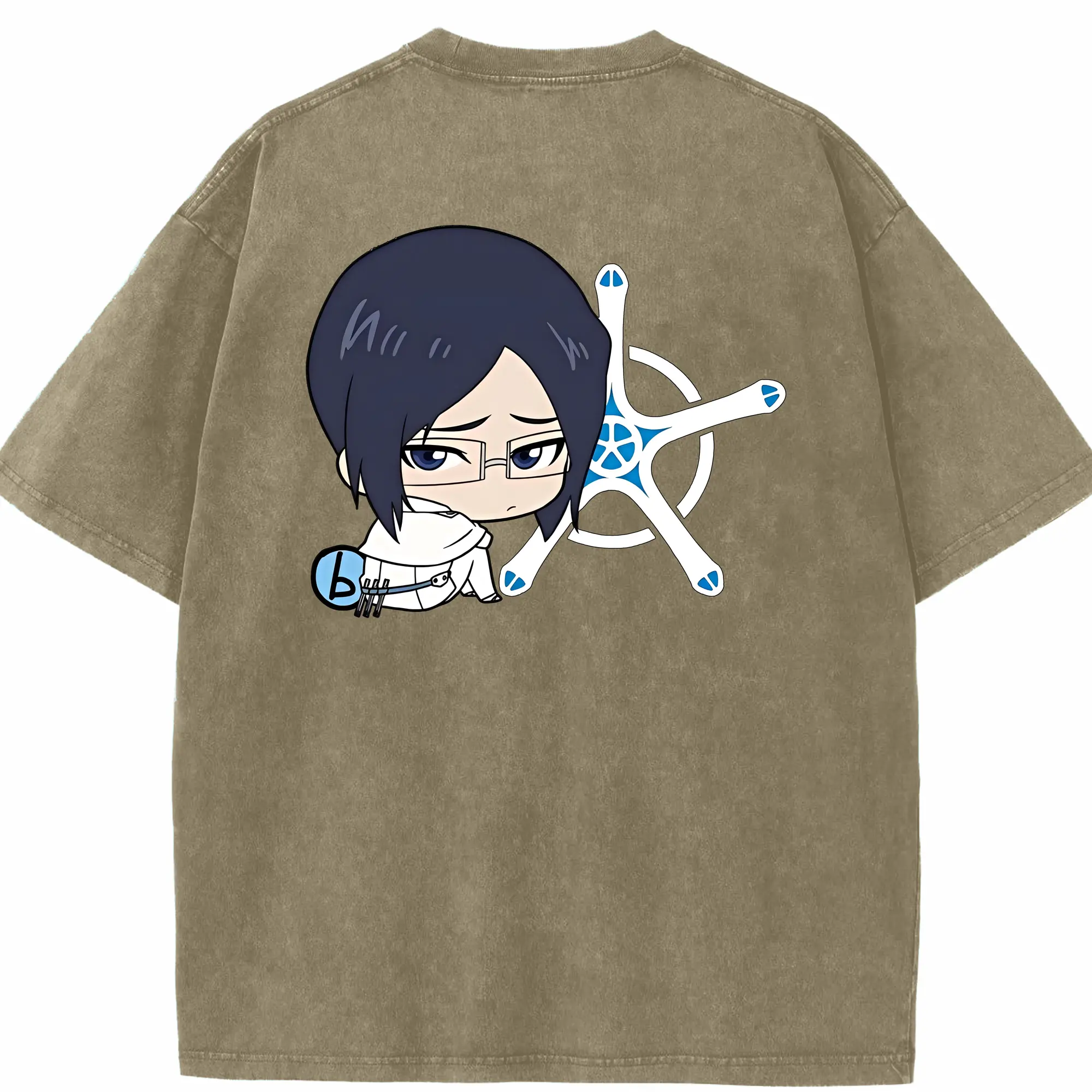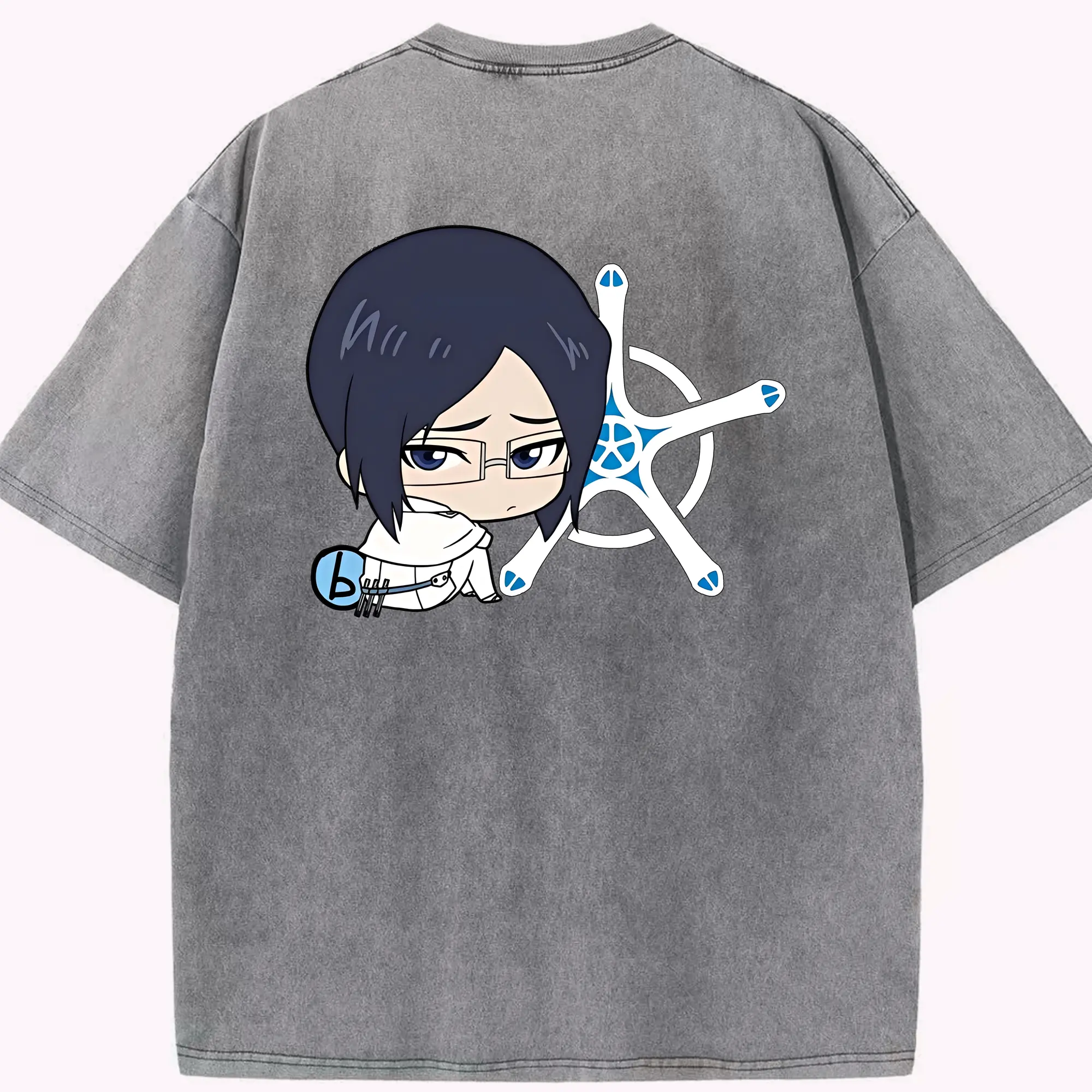 ブリーチ グッズ 石田 雨竜 - 綿100% ヴィンテージ風 半袖Tシャツ ・ フロントプリント ・ 柔らか肌触り ・ 通気性 快適 ・ スポーツ カジュアル 外出用