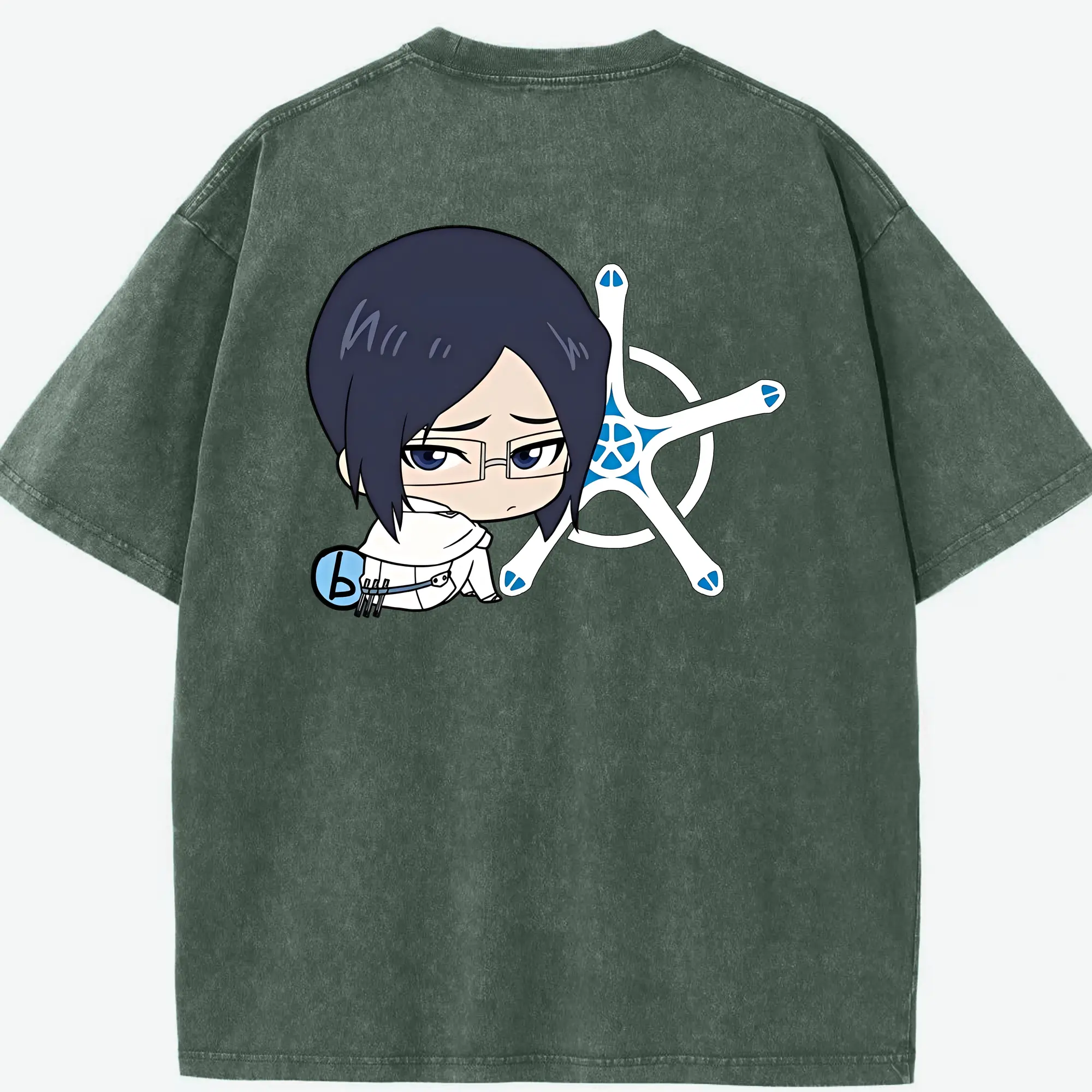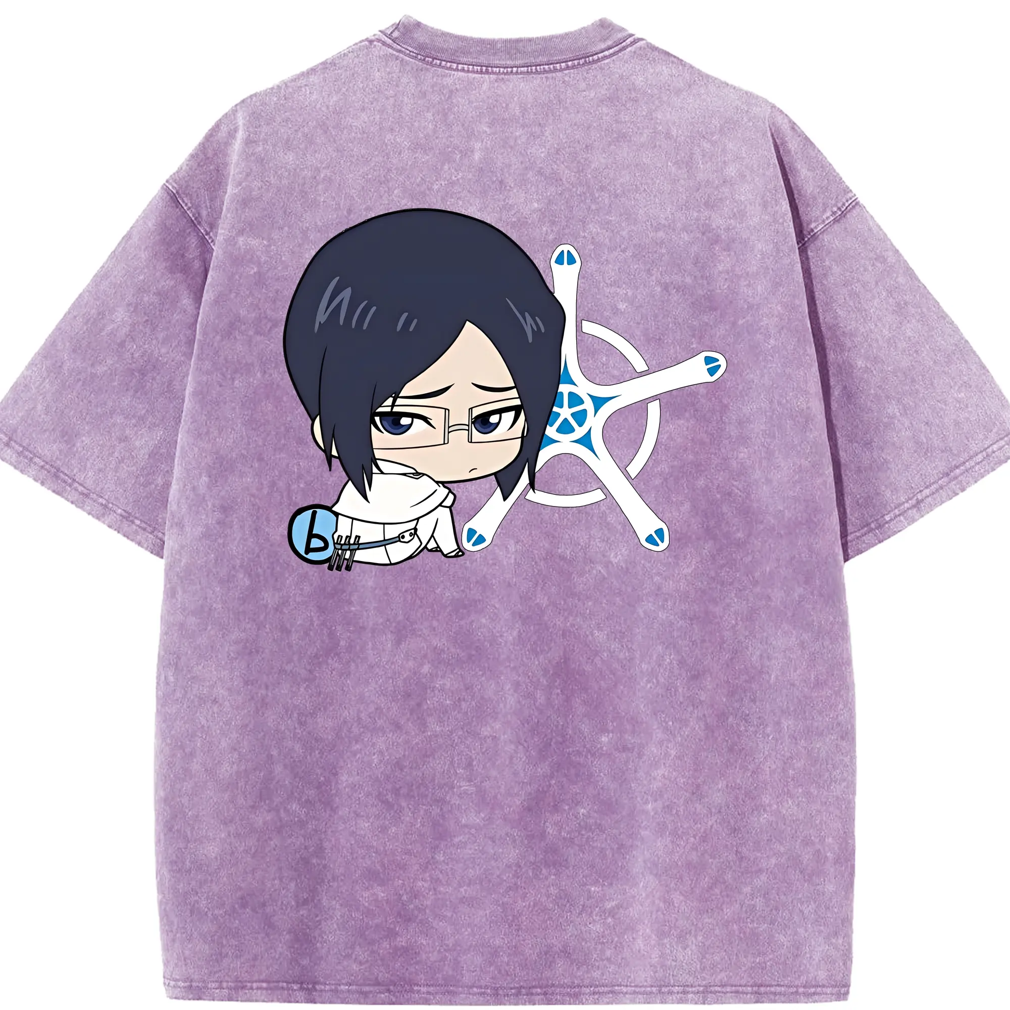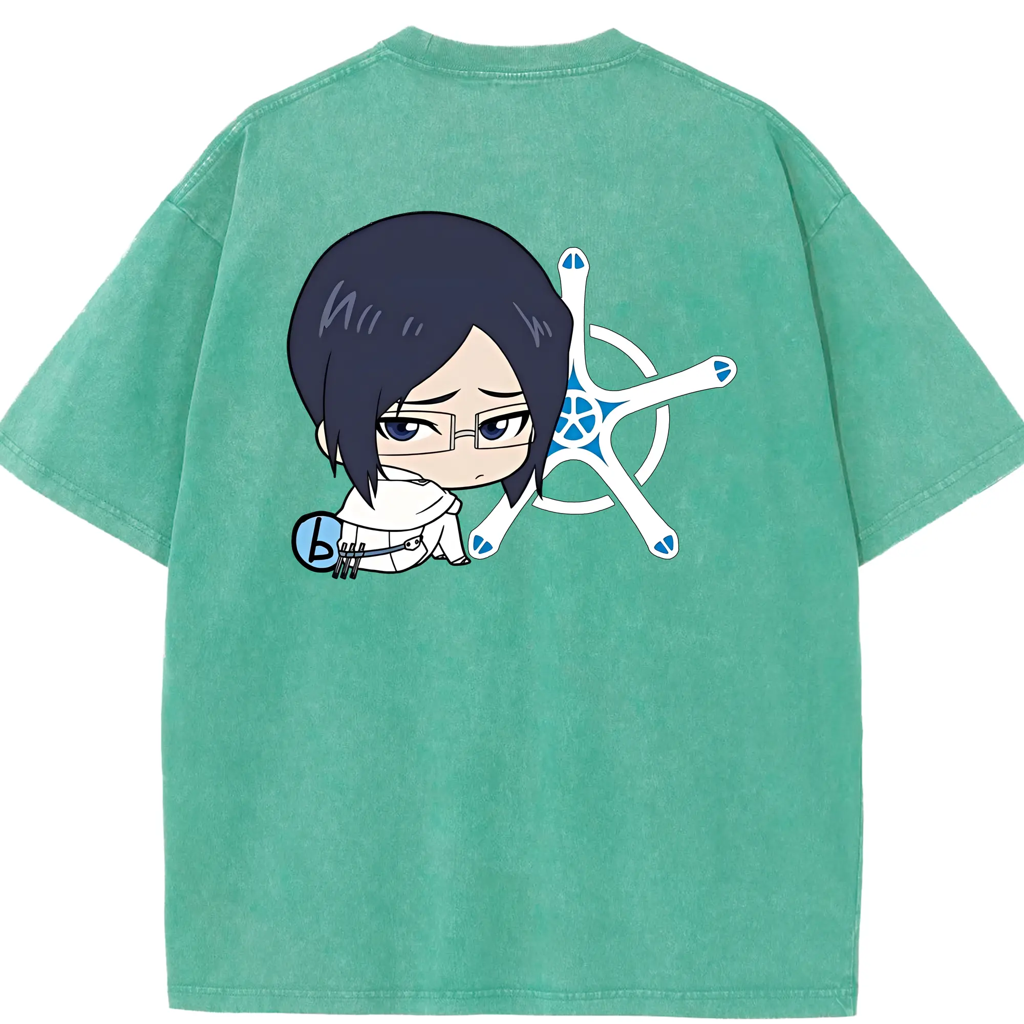 ブリーチ グッズ 石田 雨竜 - 綿100% ヴィンテージ風 半袖Tシャツ ・ フロントプリント ・ 柔らか肌触り ・ 通気性 快適 ・ スポーツ カジュアル 外出用