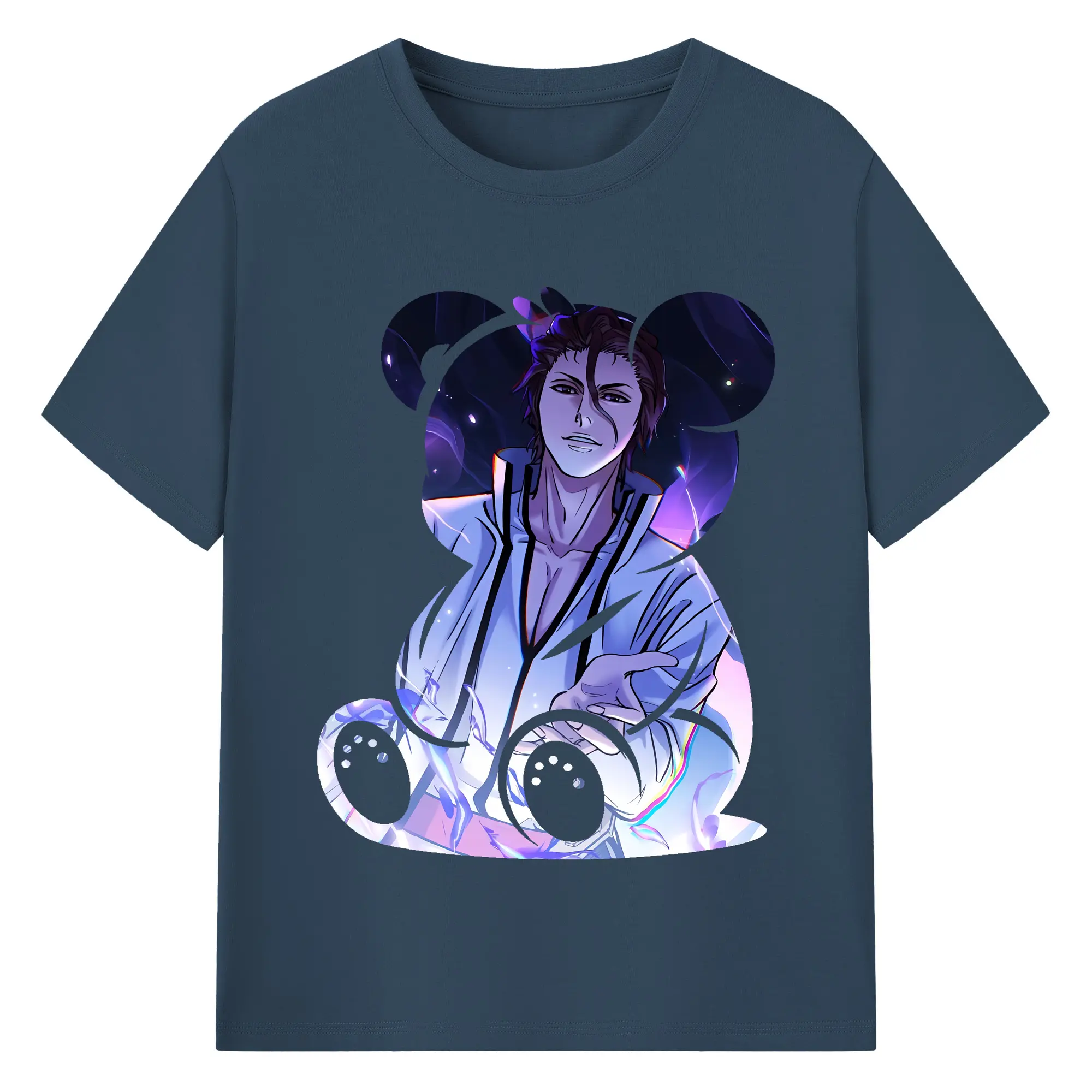 ブリーチ グッズ 藍染 惣右介 - 綿100% ヴィンテージ風 半袖Tシャツ ・ フロントプリント ・ 柔らか肌触り ・ 通気性 快適 ・ スポーツ カジュアル 外出用