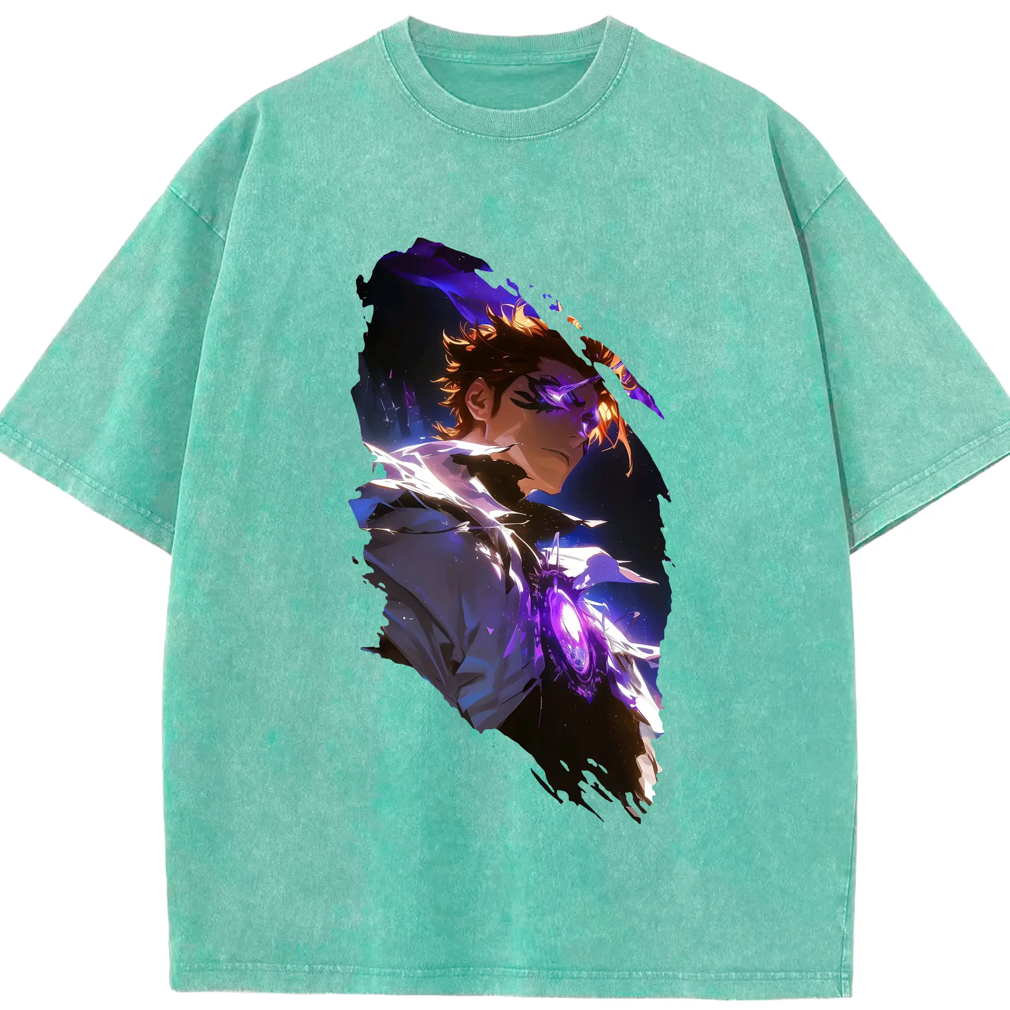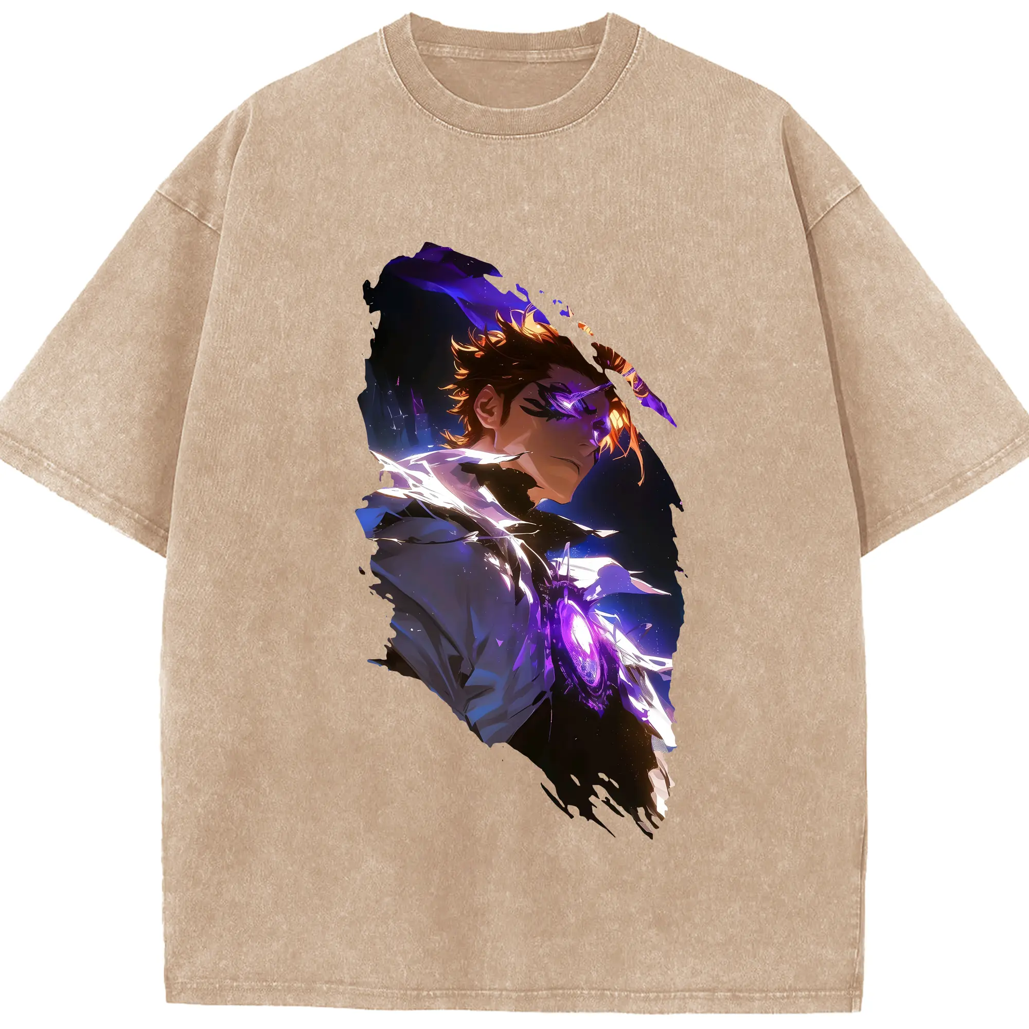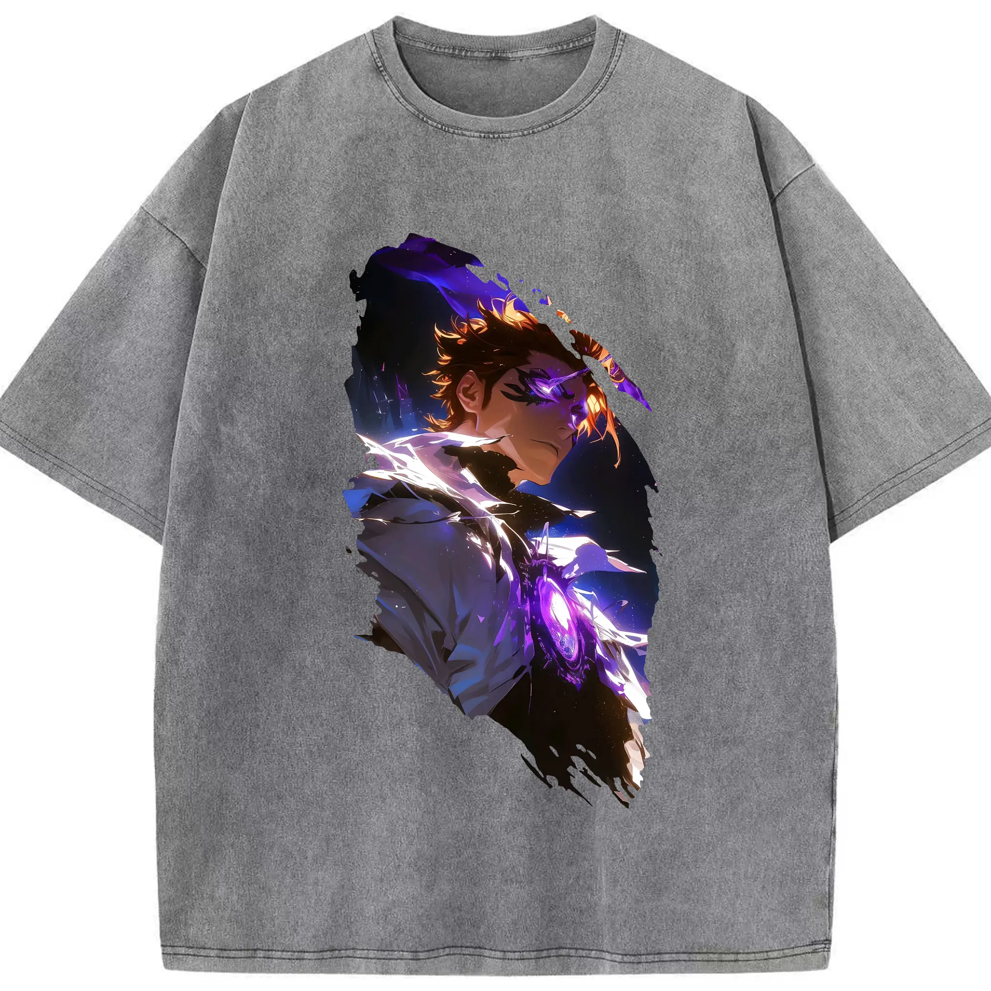 ブリーチ グッズ 藍染 惣右介 - 綿100% ヴィンテージ風 半袖Tシャツ ・ 背面プリント ・ 柔らか肌触り ・ 通気性 快適 ・ スポーツ カジュアル 外出用