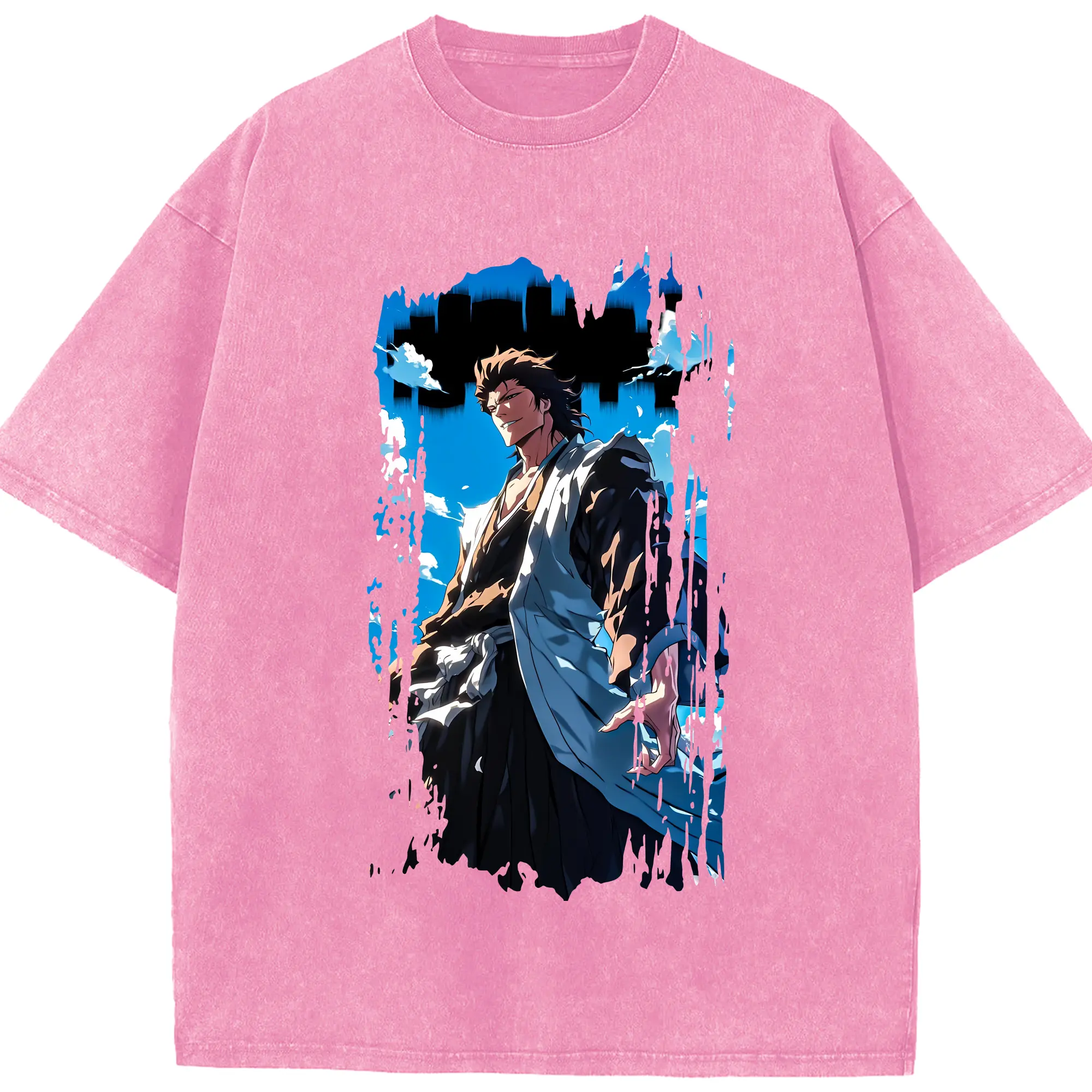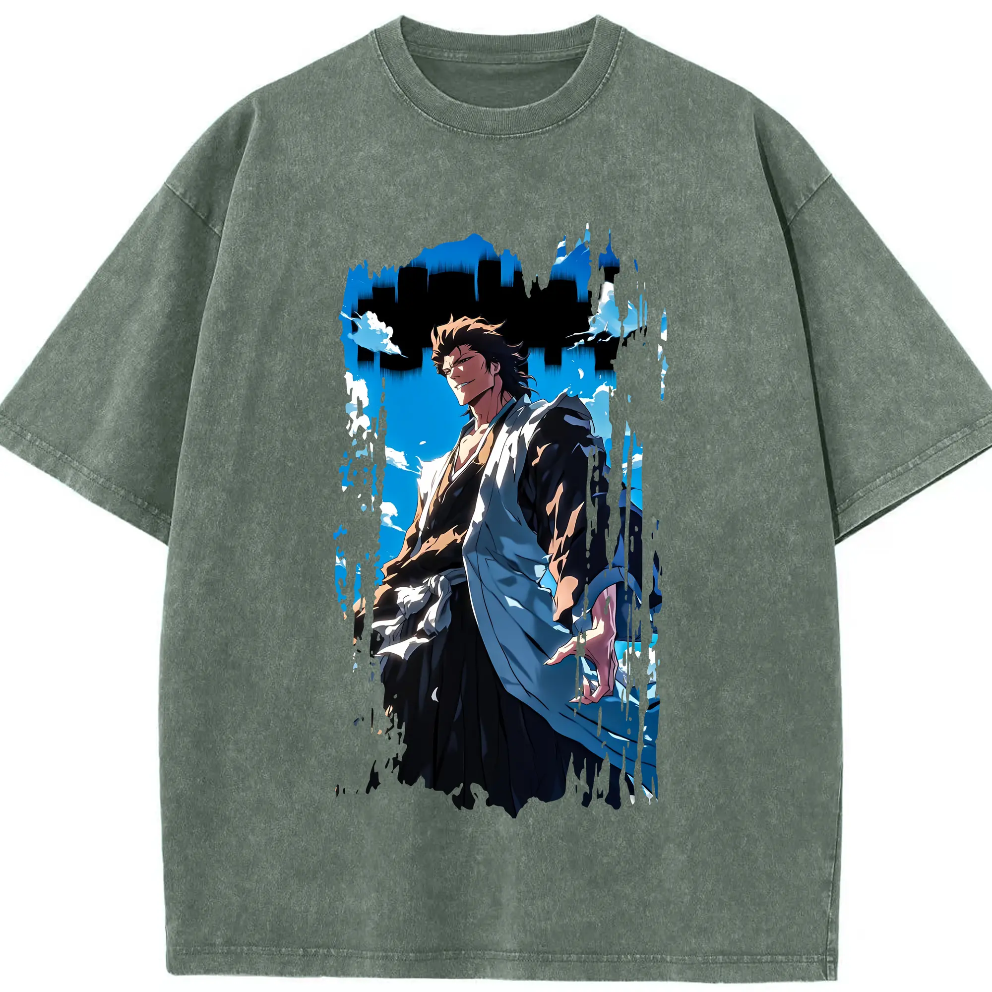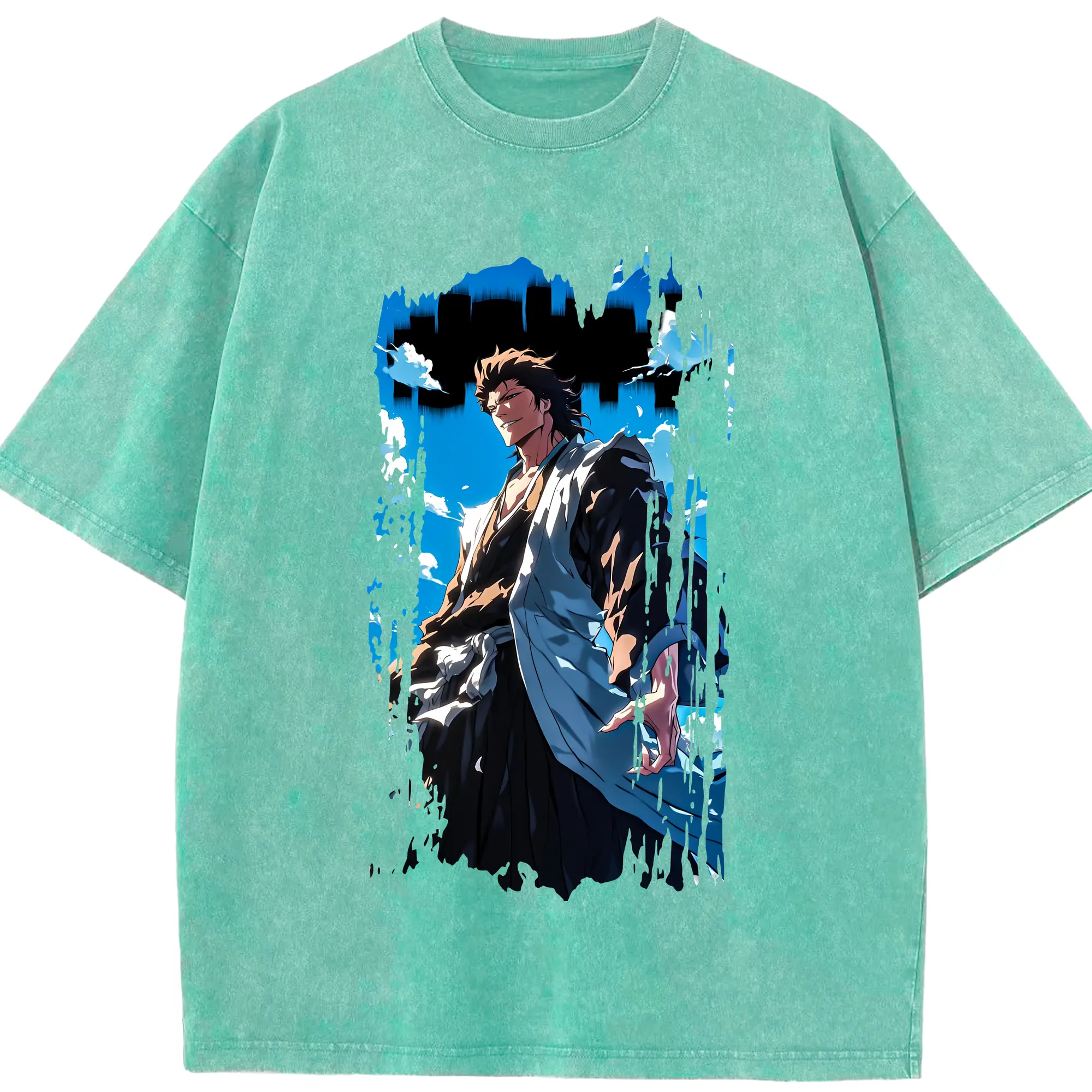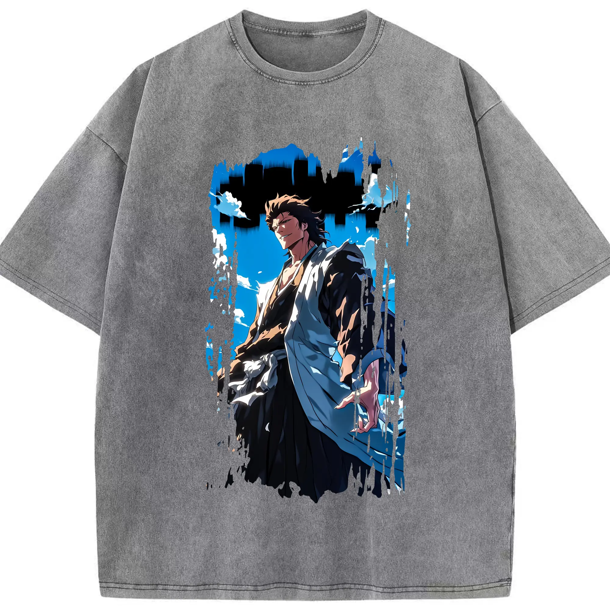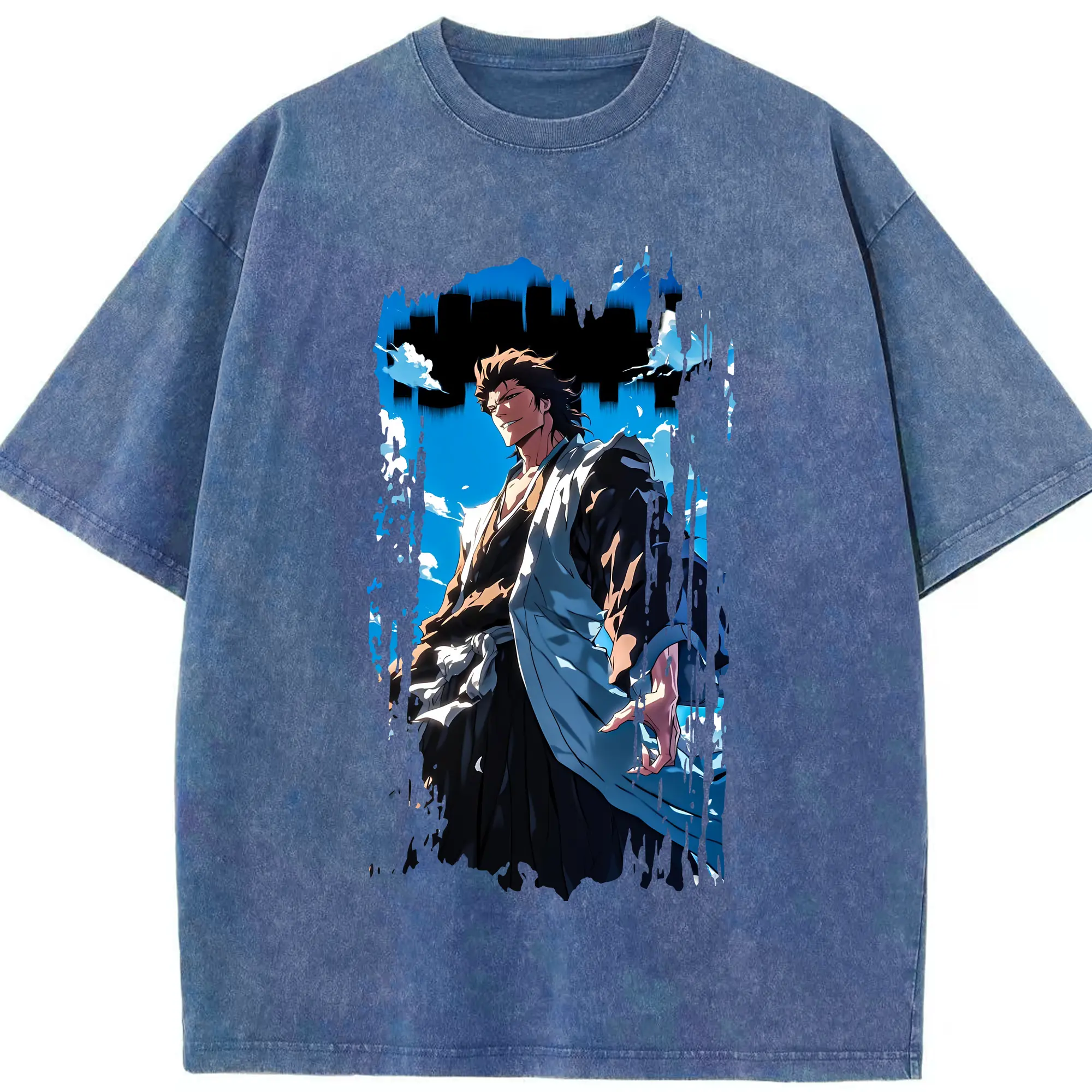 ブリーチ グッズ 藍染 惣右介 - 綿100% ヴィンテージ風 半袖Tシャツ ・ 背面プリント ・ 柔らか肌触り ・ 通気性 快適 ・ スポーツ カジュアル 外出用