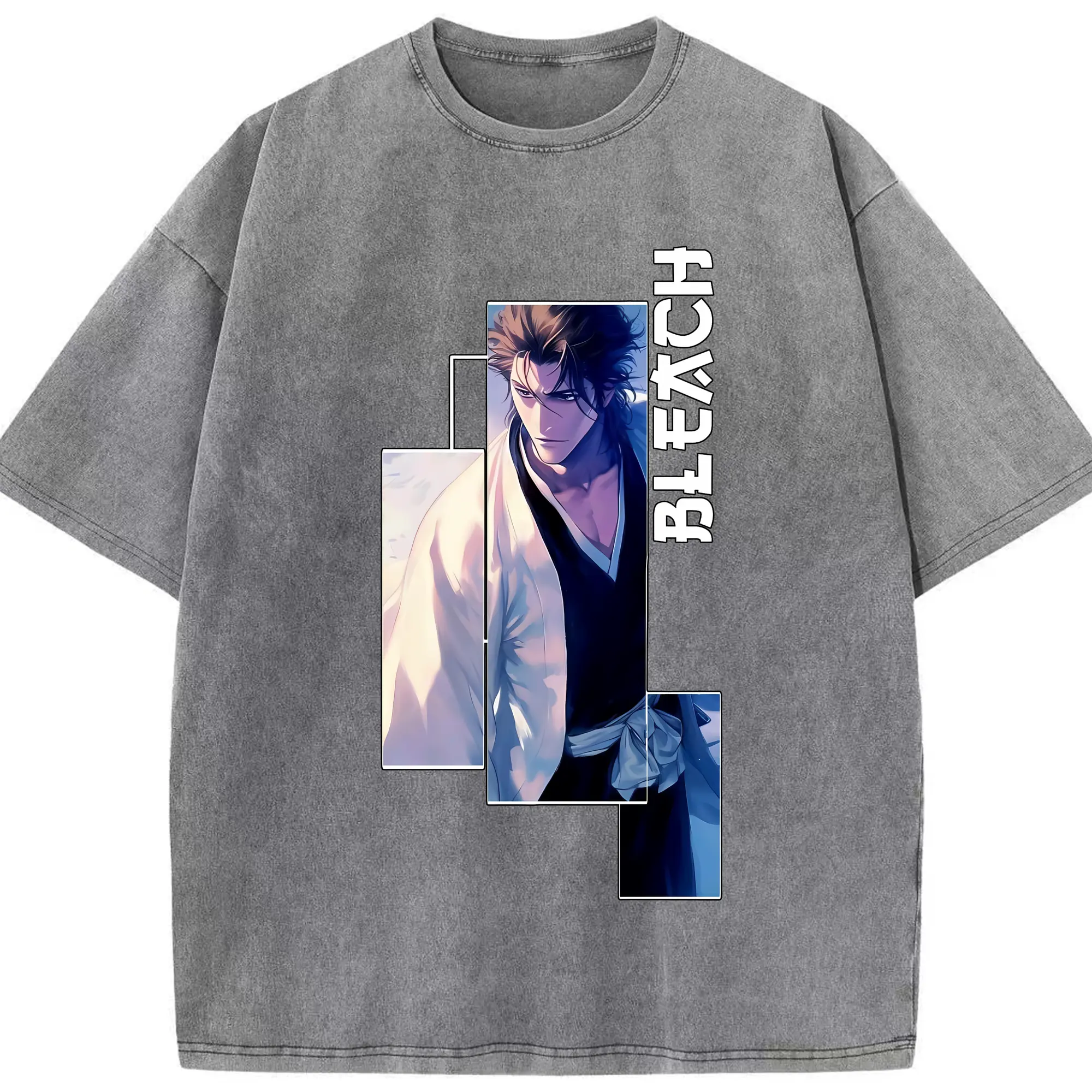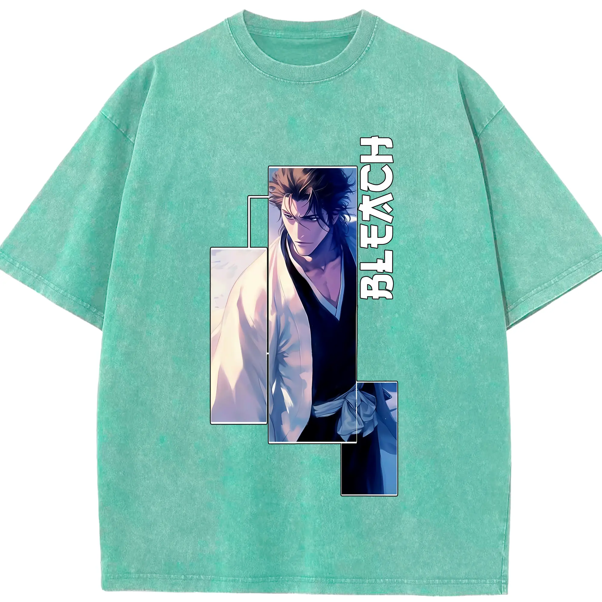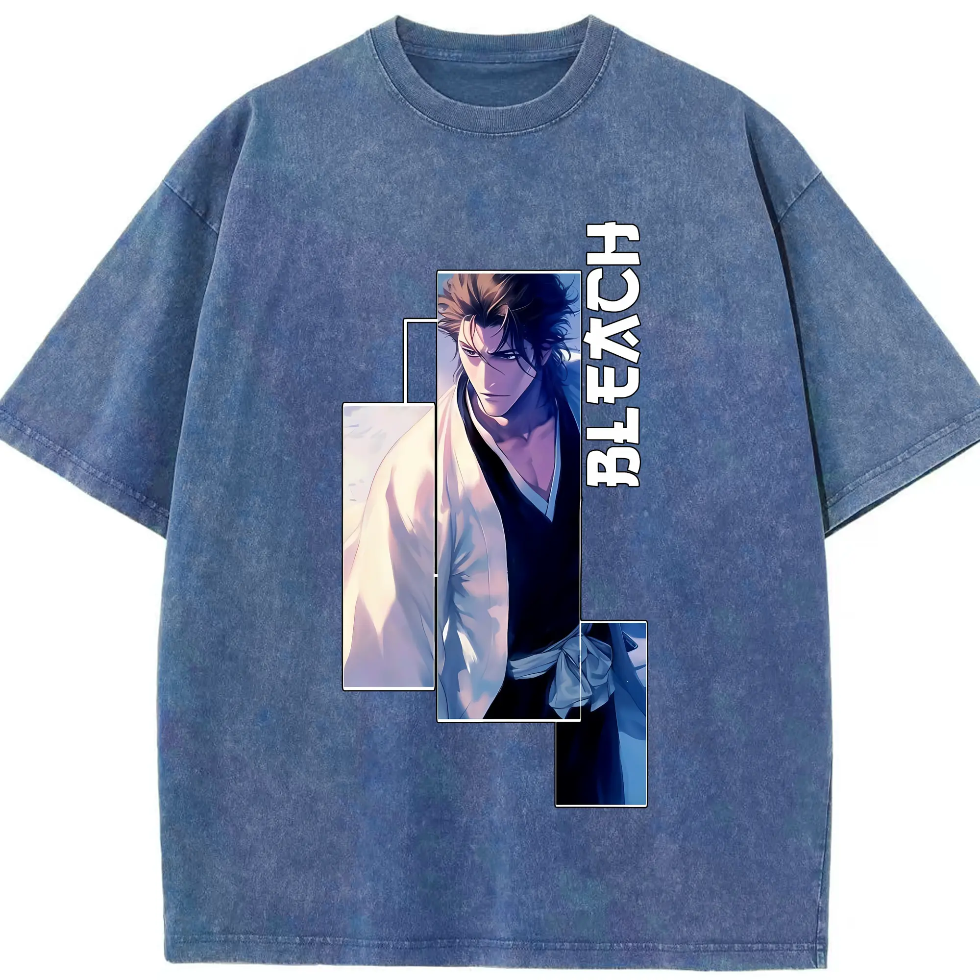 ブリーチ グッズ 藍染 惣右介 - 綿100% ヴィンテージ風 半袖Tシャツ ・ 背面プリント ・ 柔らか肌触り ・ 通気性 快適 ・ スポーツ カジュアル 外出用