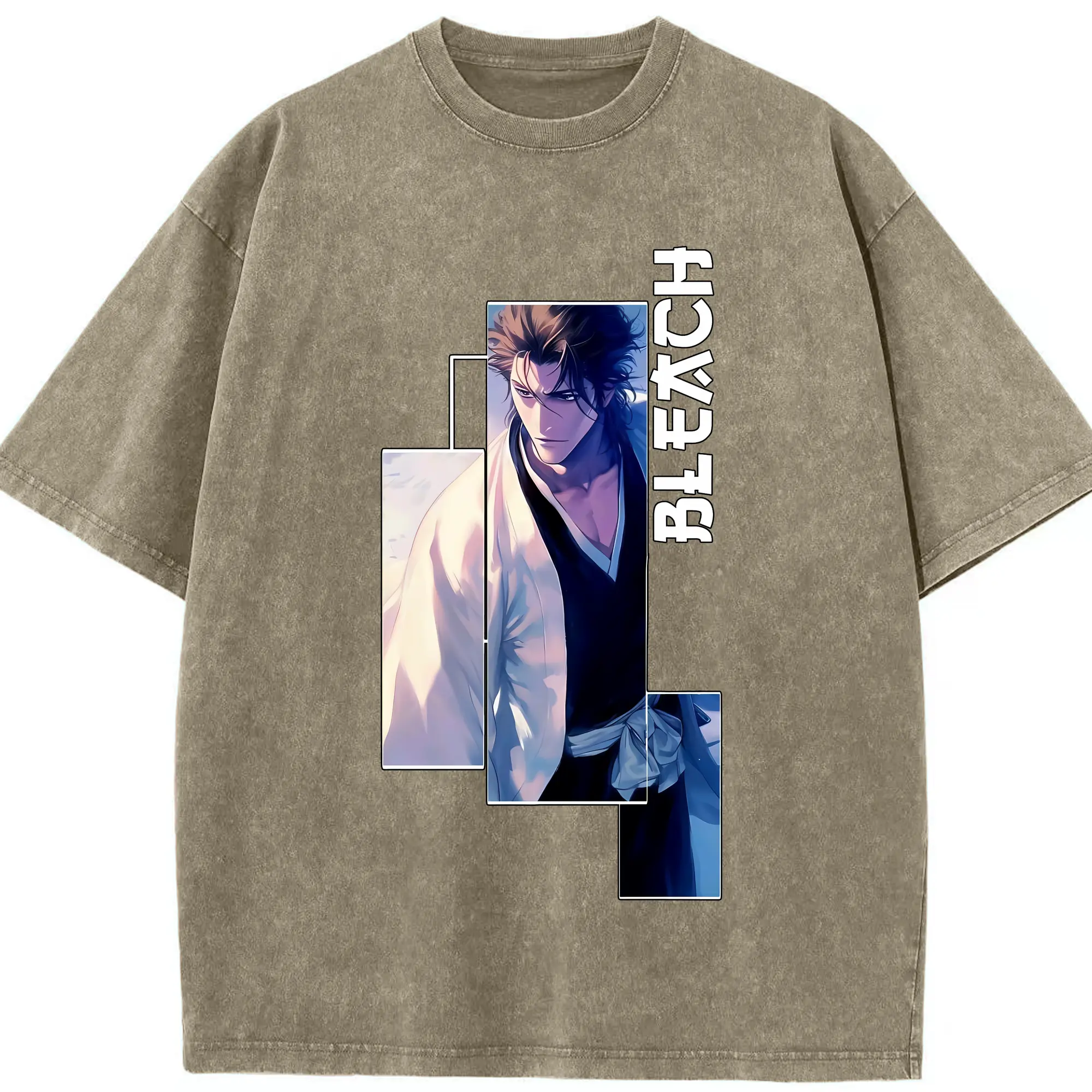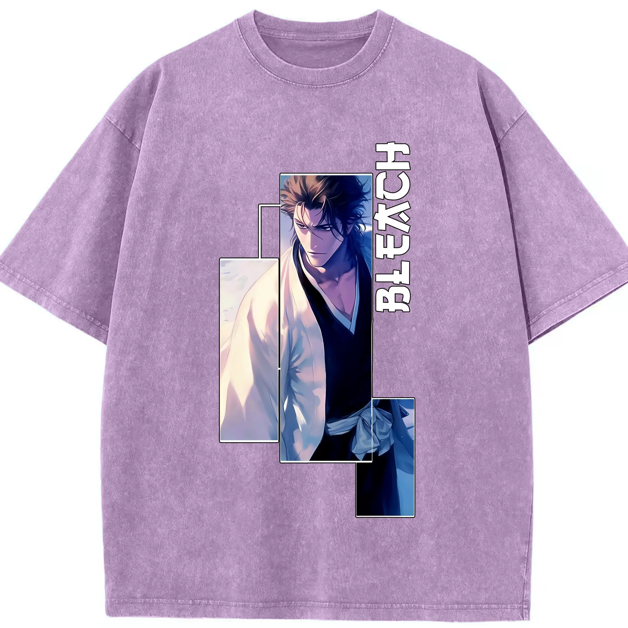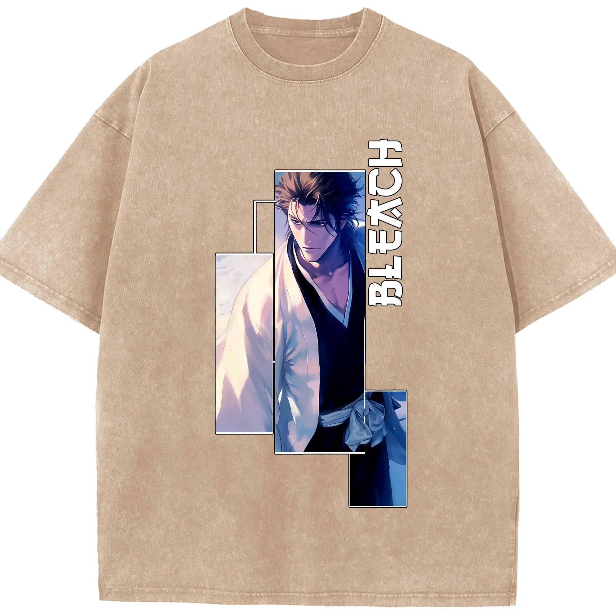 ブリーチ グッズ 藍染 惣右介 - 綿100% ヴィンテージ風 半袖Tシャツ ・ 背面プリント ・ 柔らか肌触り ・ 通気性 快適 ・ スポーツ カジュアル 外出用
