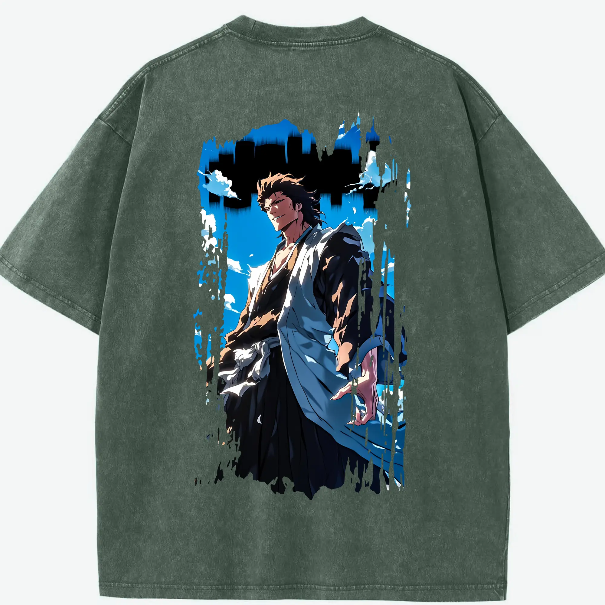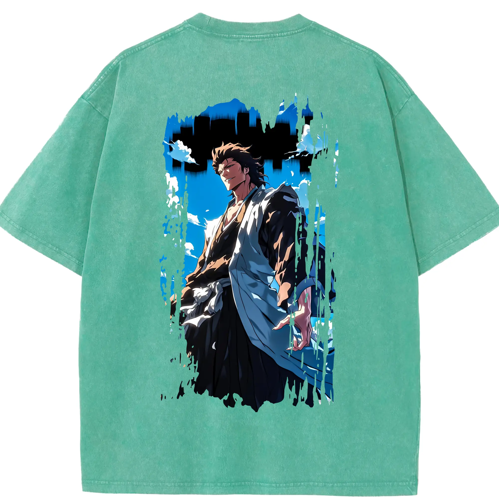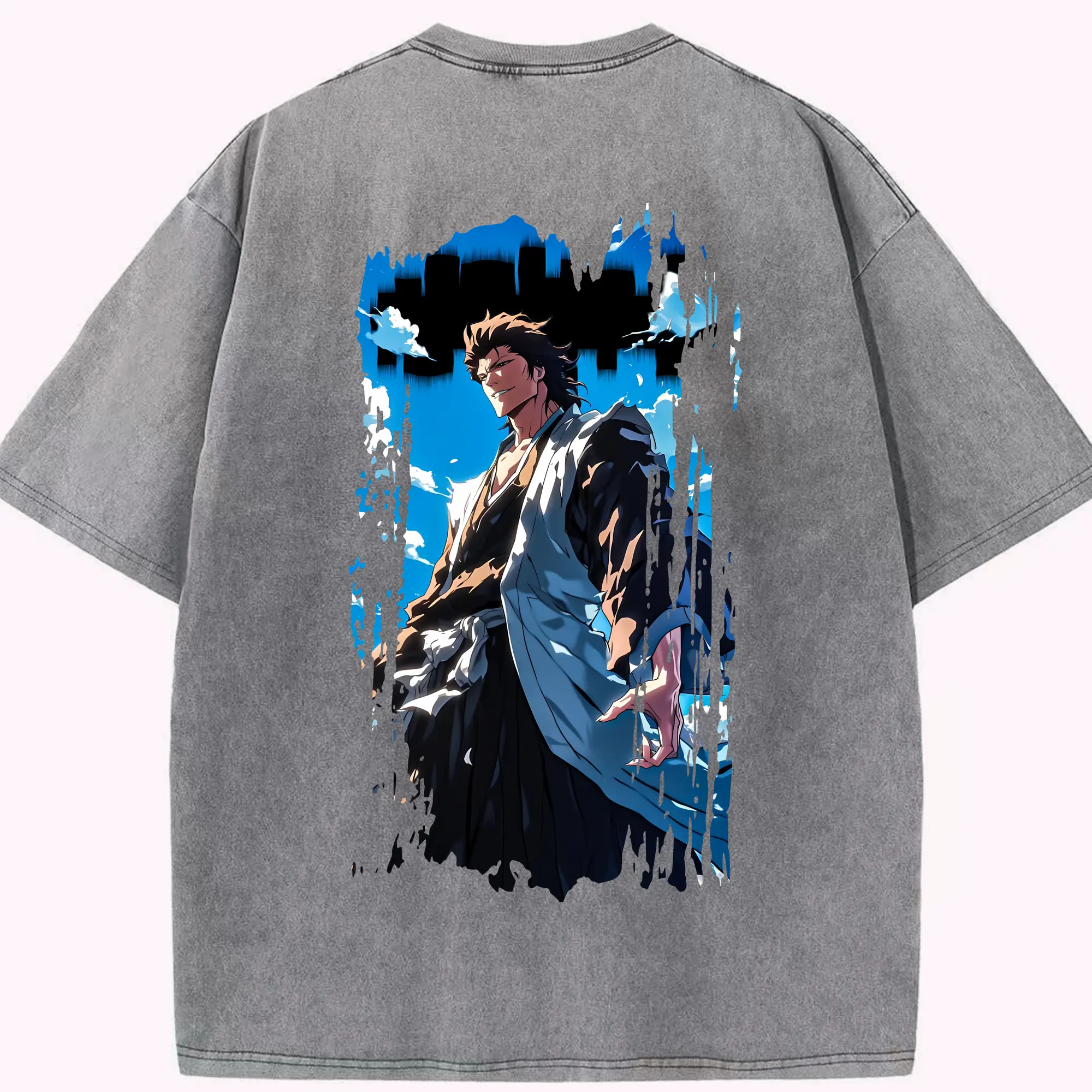 ブリーチ グッズ 藍染 惣右介 - 綿100% ヴィンテージ風 半袖Tシャツ ・ フロントプリント ・ 柔らか肌触り ・ 通気性 快適 ・ スポーツ カジュアル 外出用