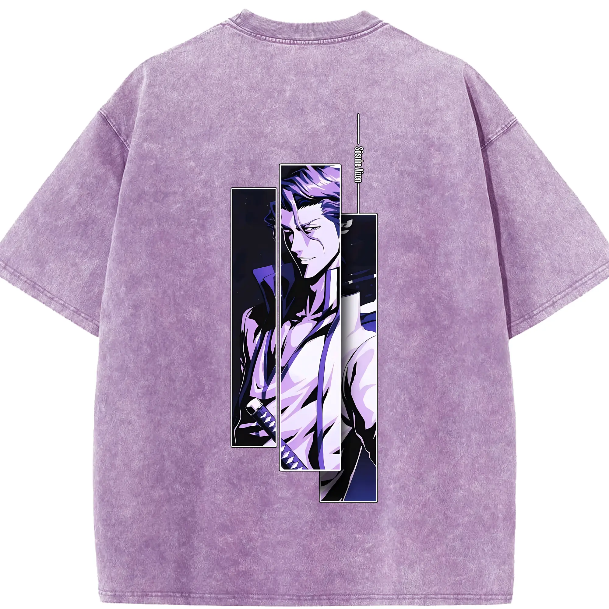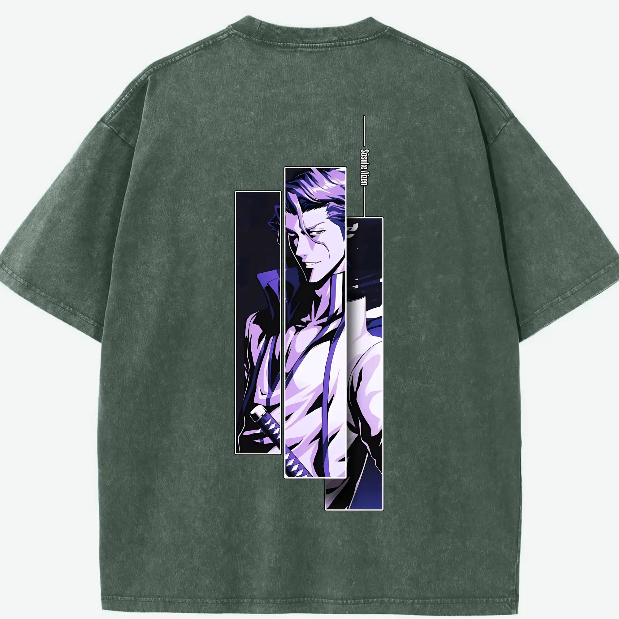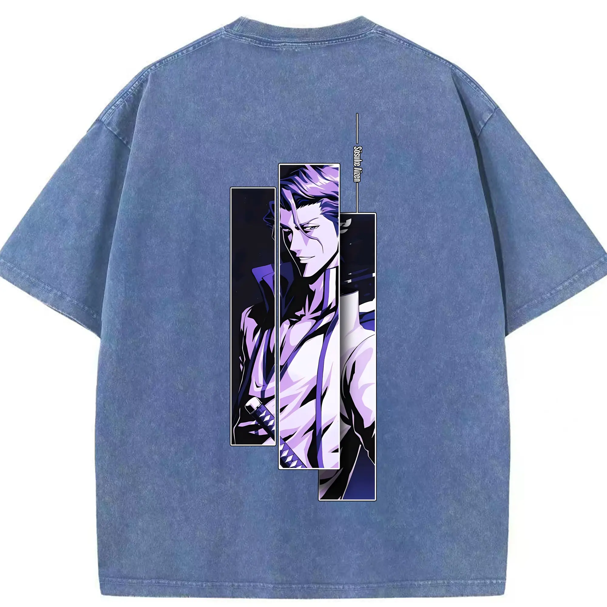 ブリーチ グッズ 藍染 惣右介 - 綿100% ヴィンテージ風 半袖Tシャツ ・ フロントプリント ・ 柔らか肌触り ・ 通気性 快適 ・ スポーツ カジュアル 外出用