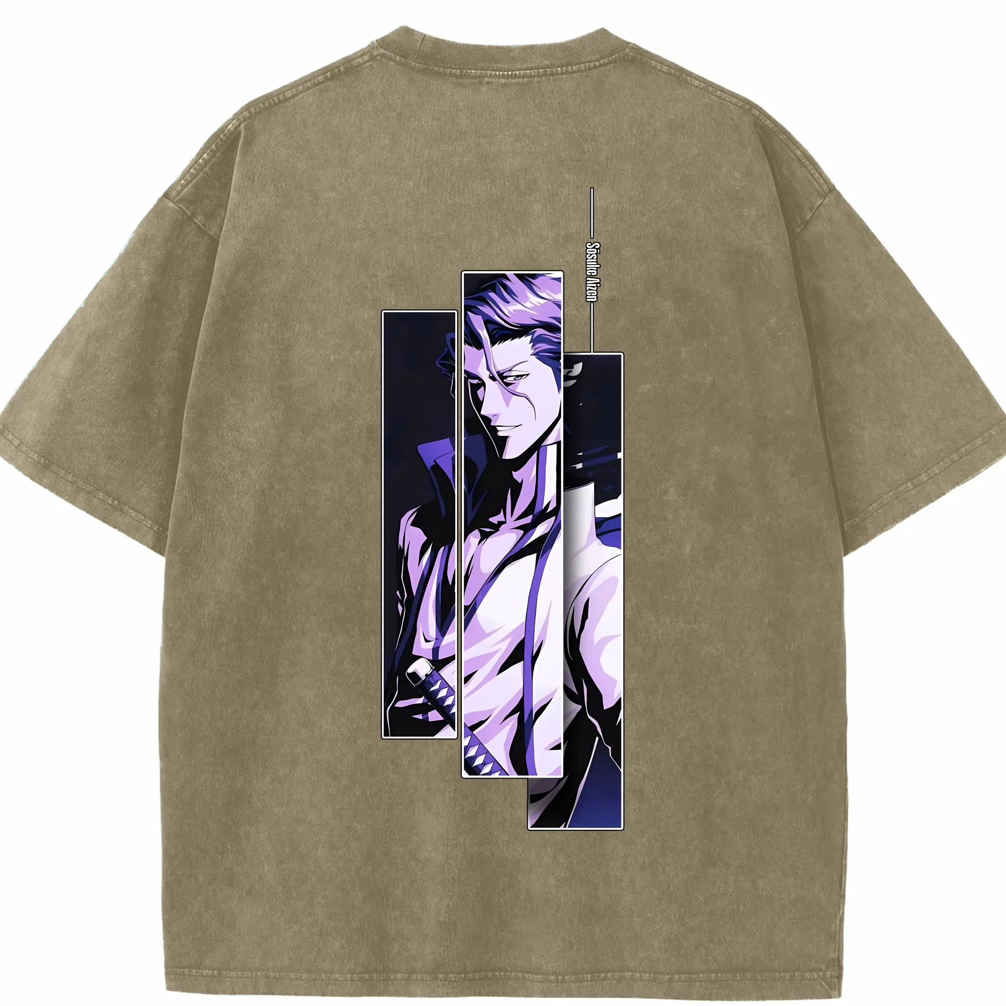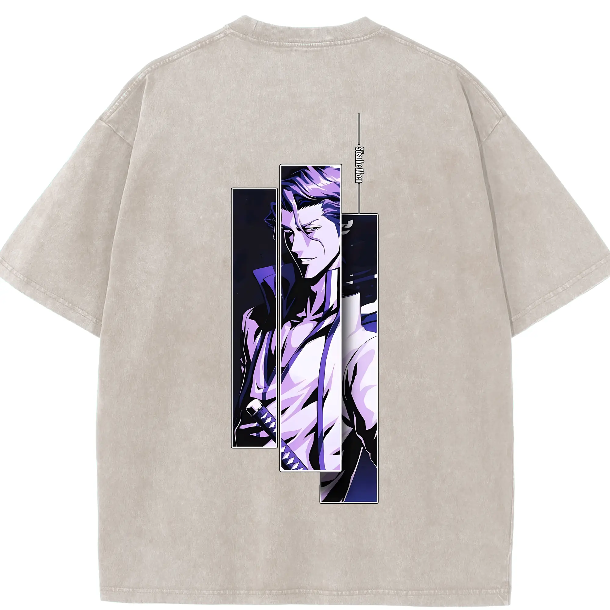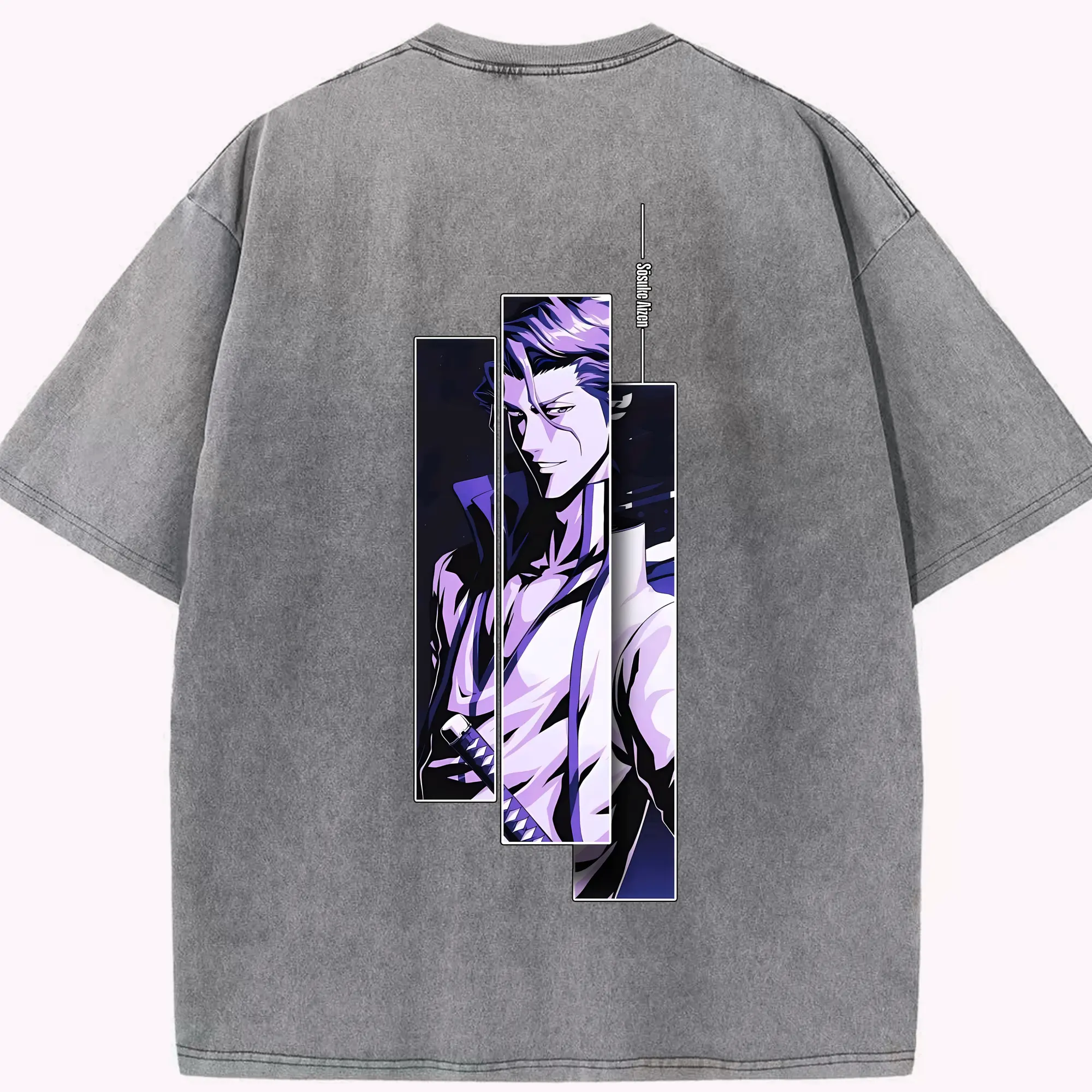 ブリーチ グッズ 藍染 惣右介 - 綿100% ヴィンテージ風 半袖Tシャツ ・ フロントプリント ・ 柔らか肌触り ・ 通気性 快適 ・ スポーツ カジュアル 外出用