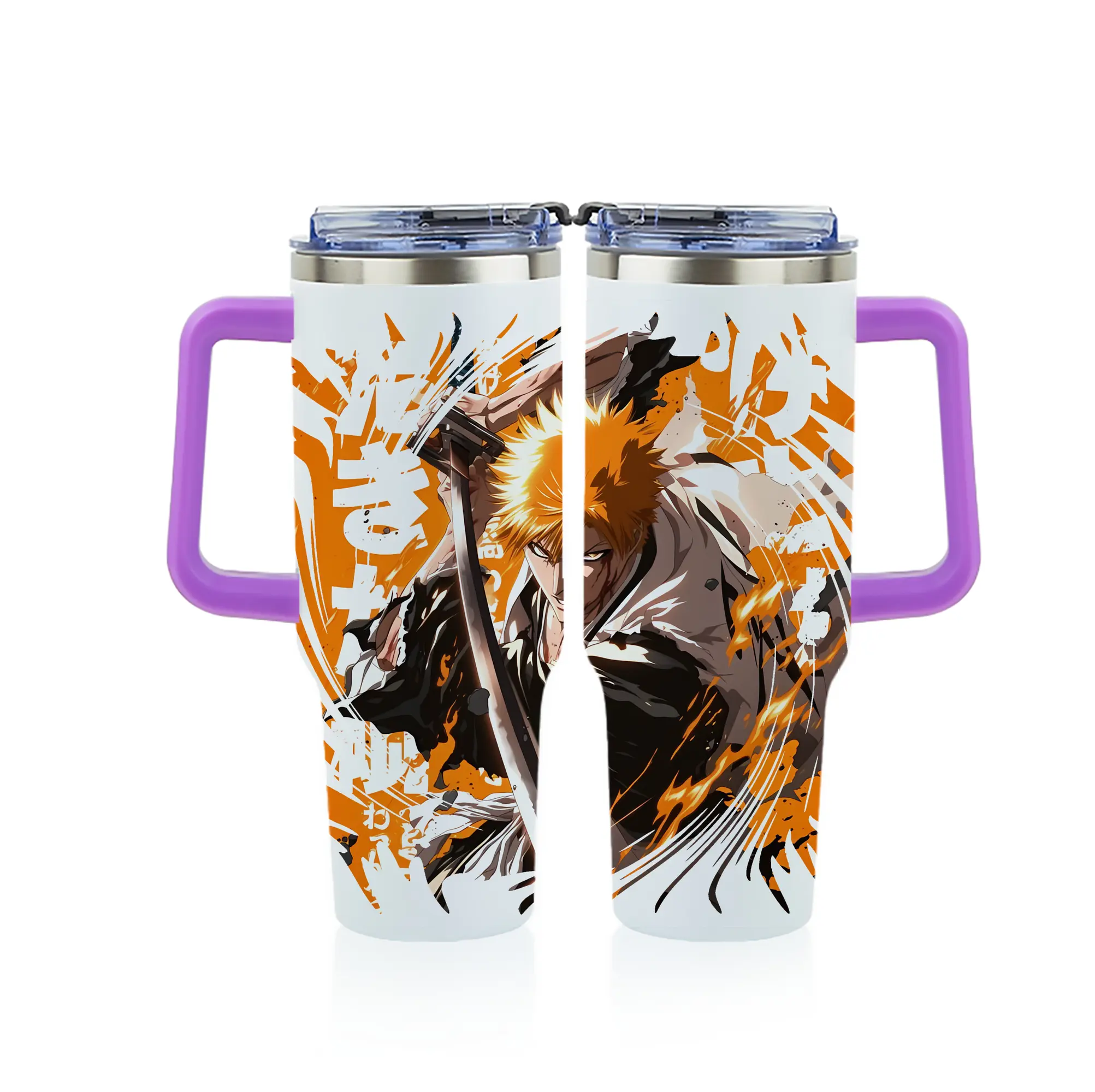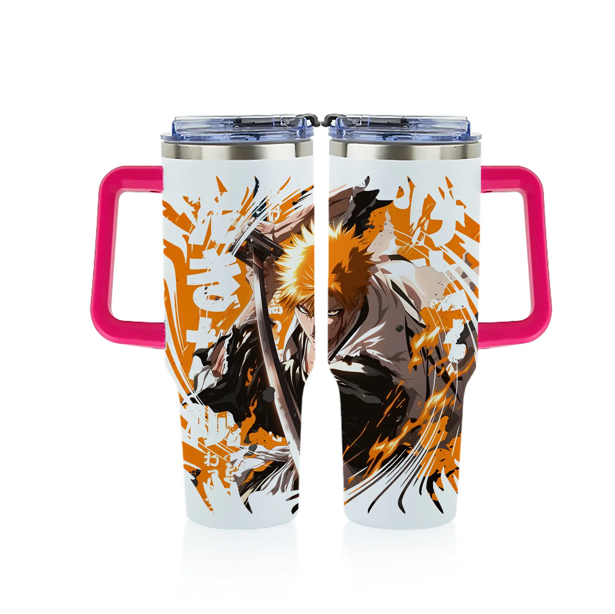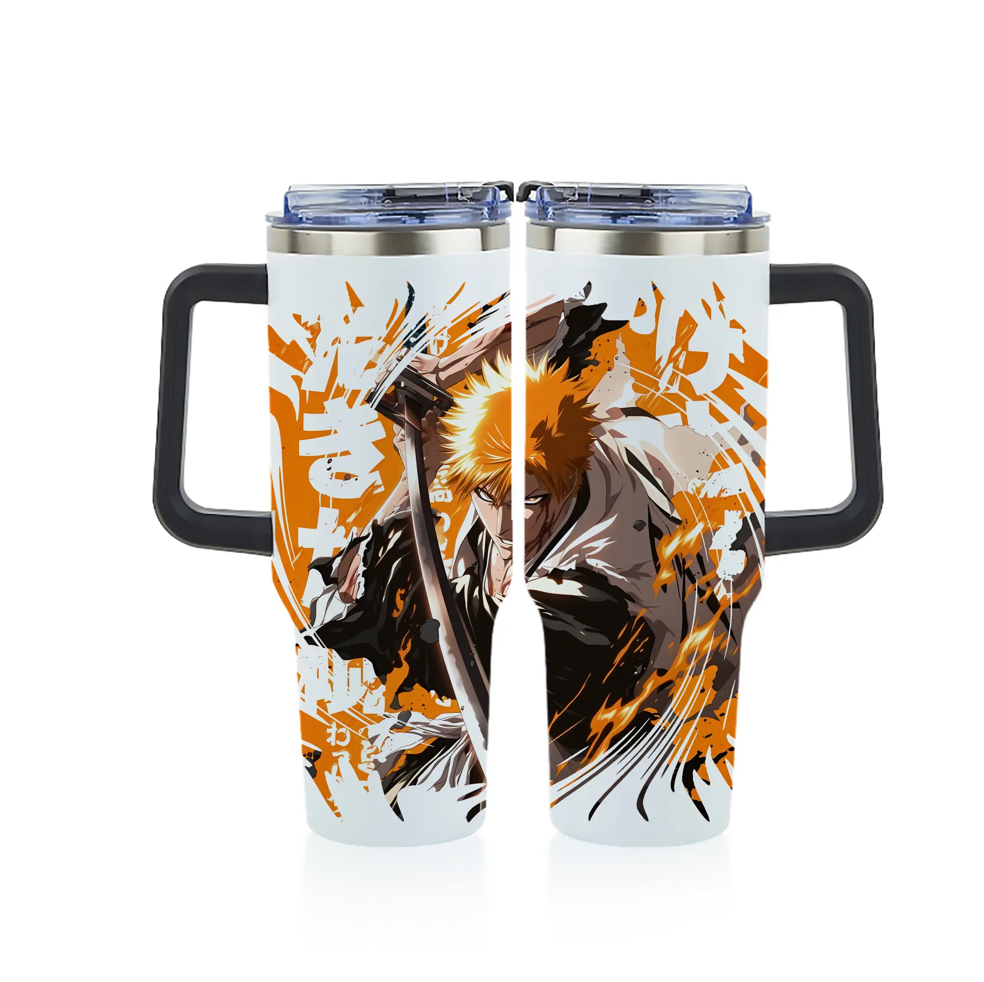 ブリーチ グッズ 黒崎 一護 - 1200mL フルプリント車用タンブラー ・ 304ステンレス 内側 ・ 201ステンレス 外側 ・ 保温 保冷 ・ 通勤 ドライブ アウトドア用