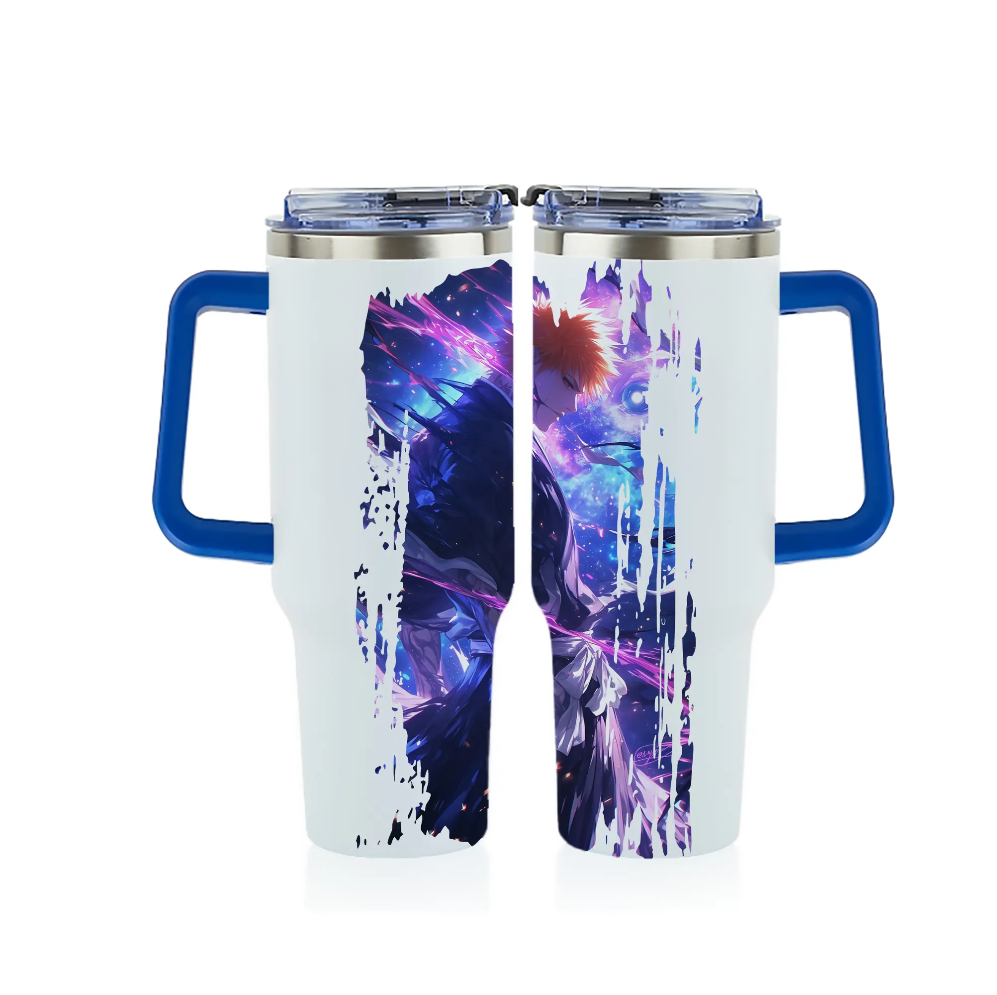ブリーチ グッズ 黒崎 一護 - 1200mL フルプリント車用タンブラー ・ 304ステンレス 内側 ・ 201ステンレス 外側 ・ 保温 保冷 ・ 通勤 ドライブ アウトドア用