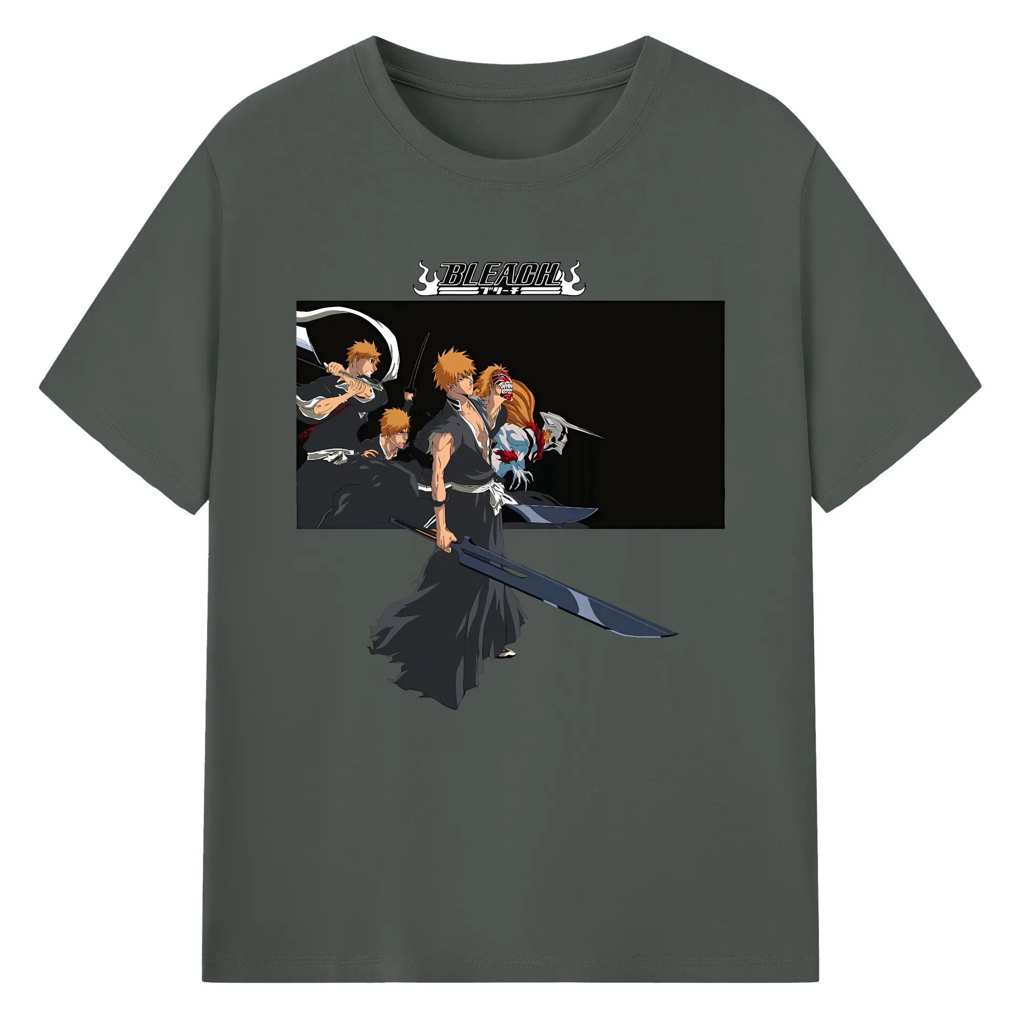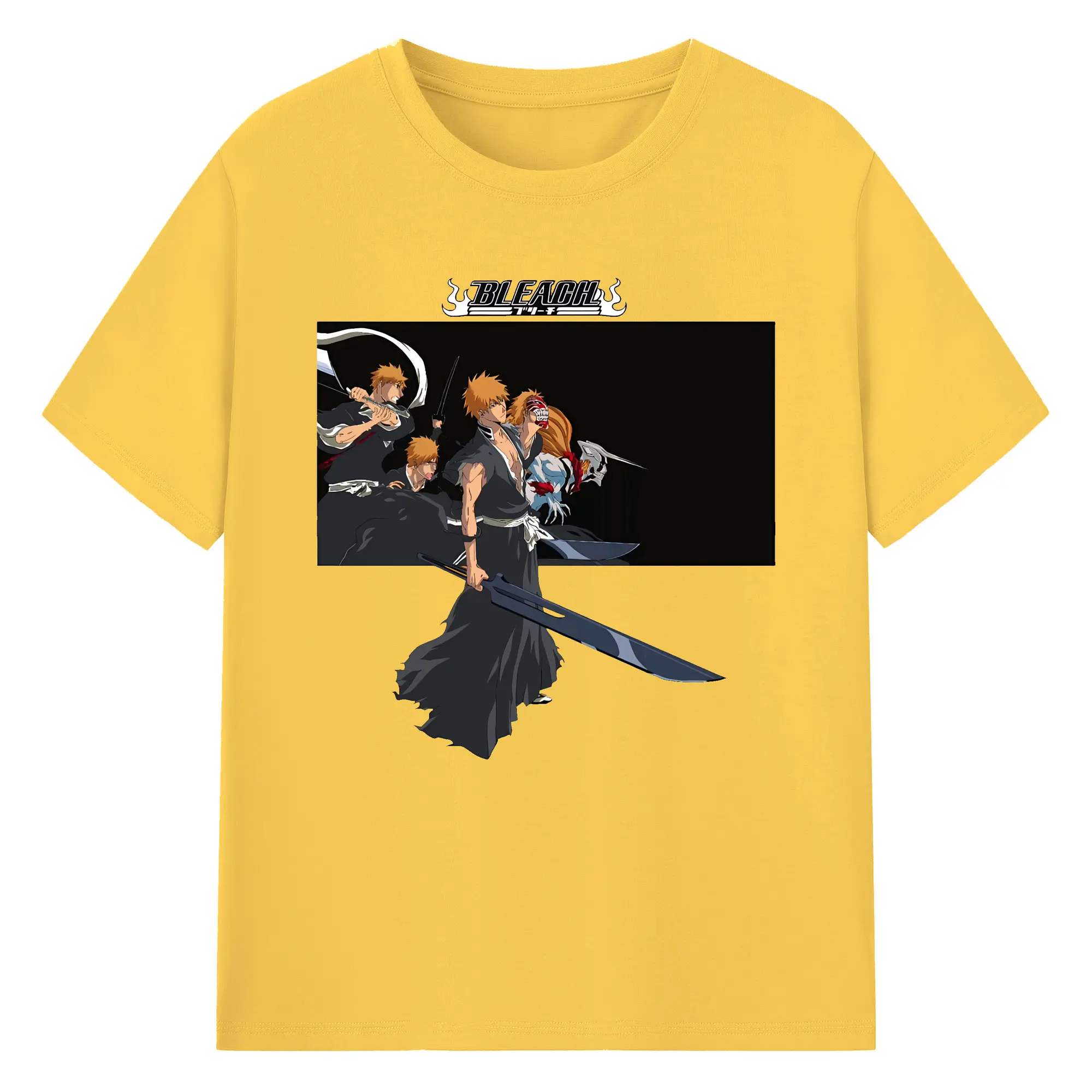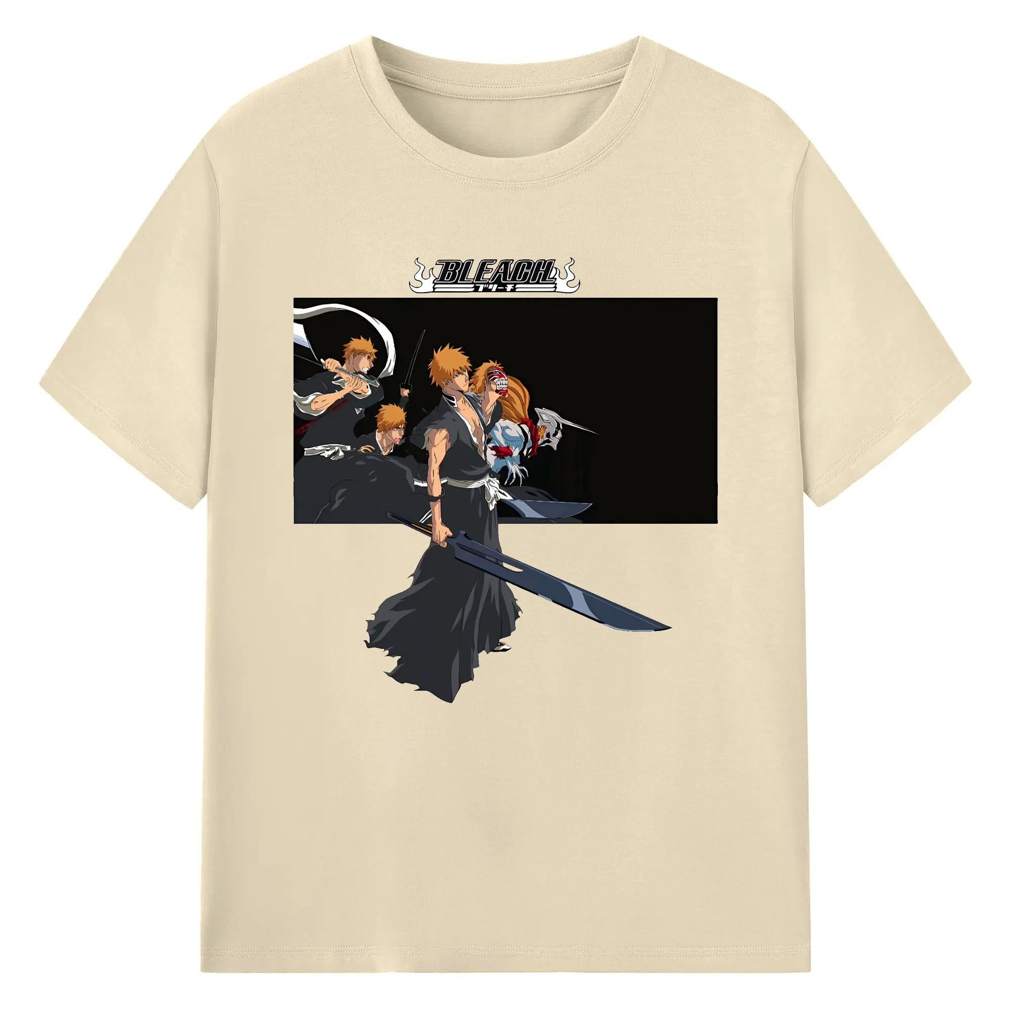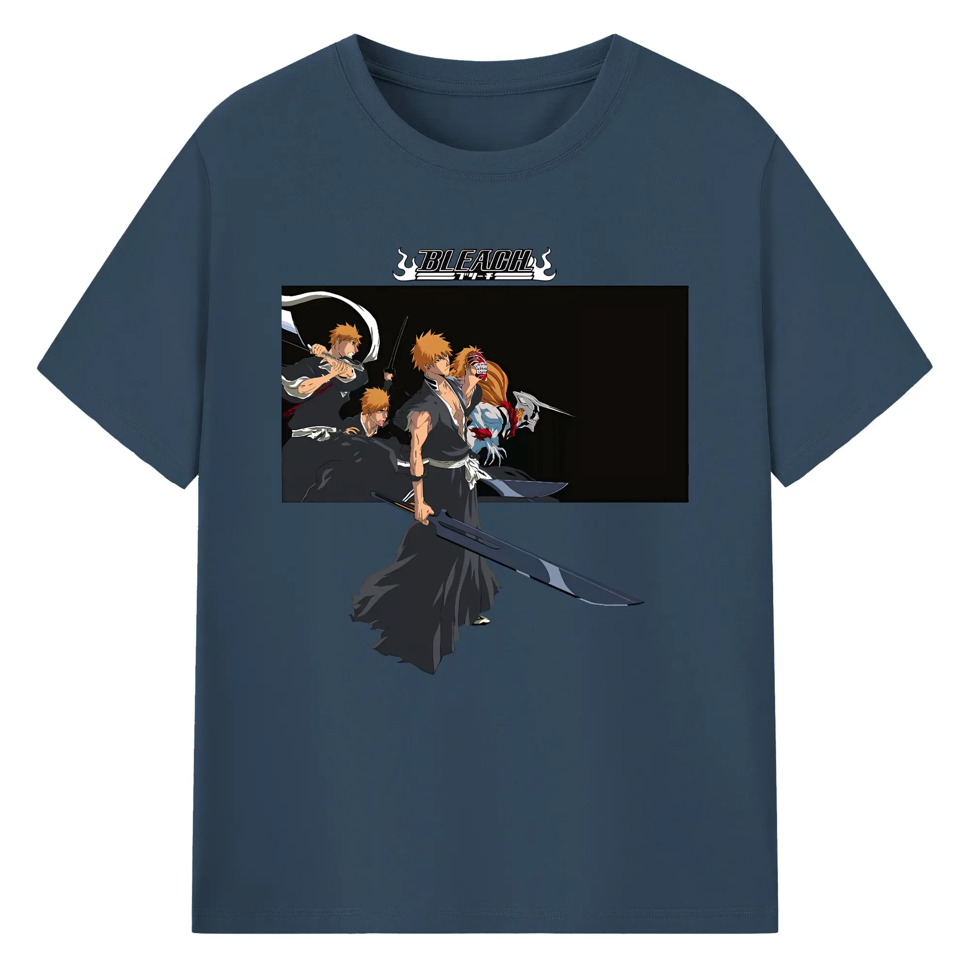 ブリーチ グッズ 黒崎 一護 - 綿100% ヴィンテージ風 半袖Tシャツ ・ フロントプリント ・ 柔らか肌触り ・ 通気性 快適 ・ スポーツ カジュアル 外出用