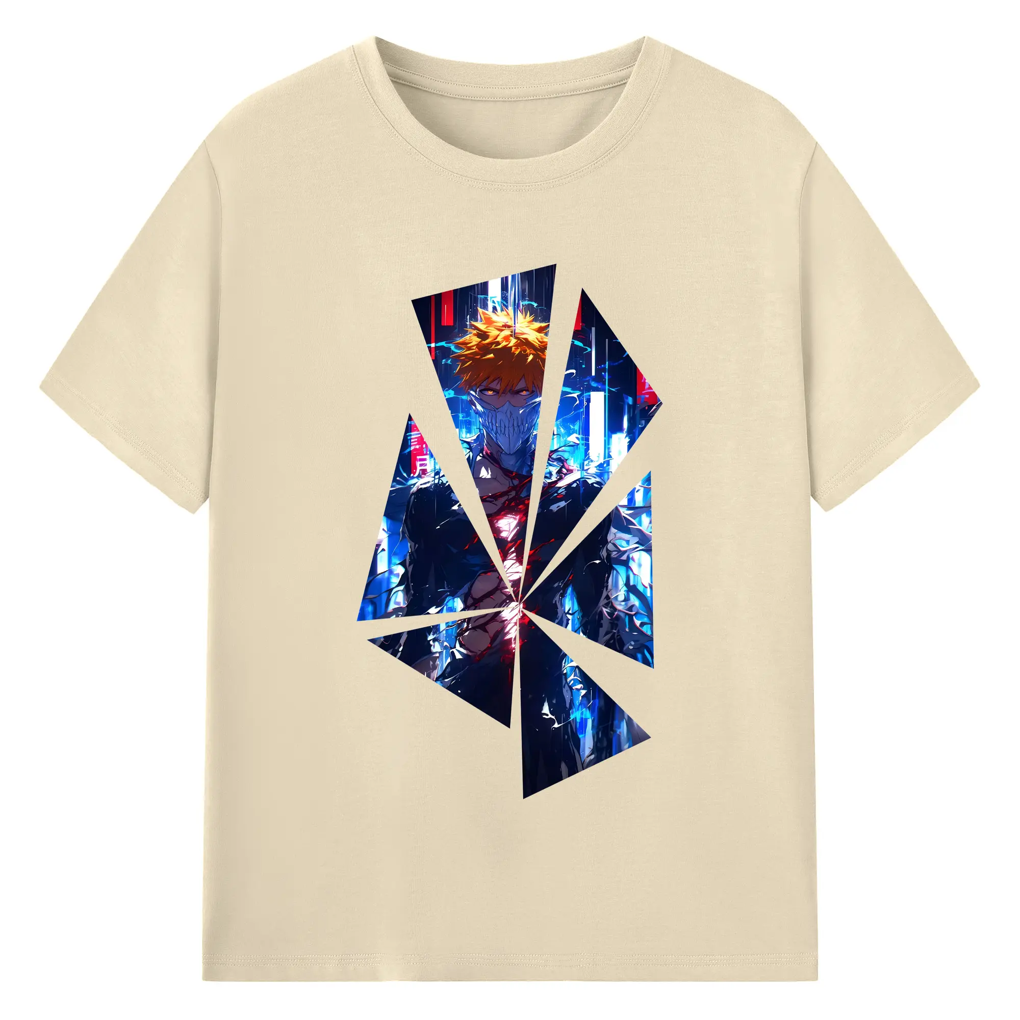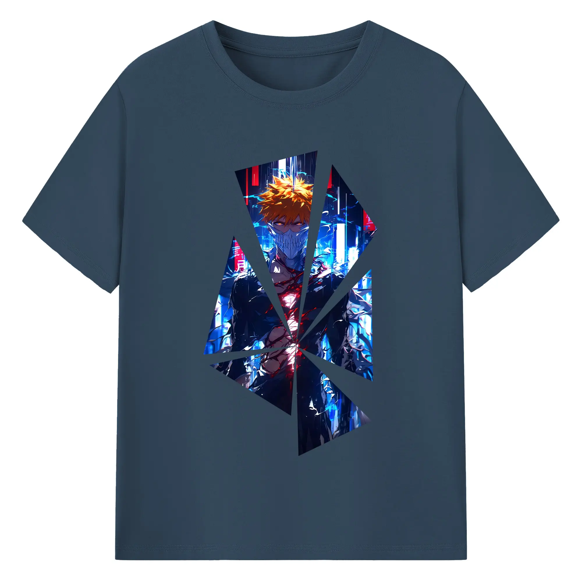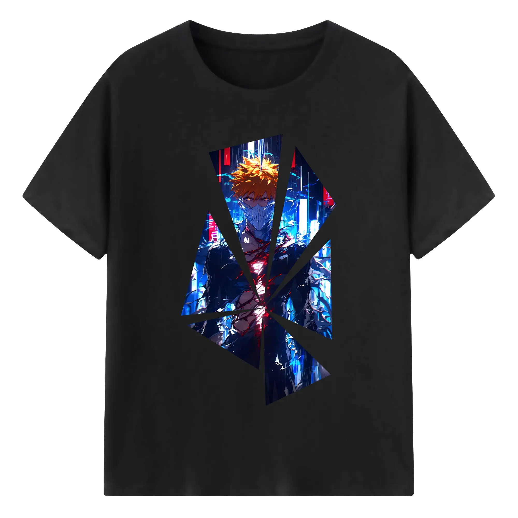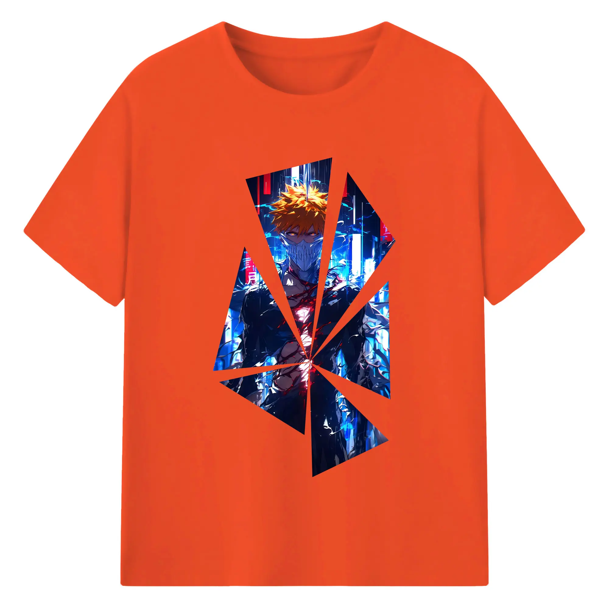 ブリーチ グッズ 黒崎 一護 - 綿100% 半袖Tシャツ ・ フロントプリント ・ 快適 通気性 ・ 日常使い 散歩 スポーツ用