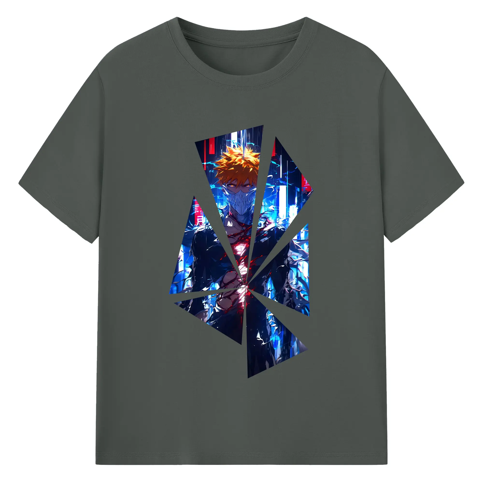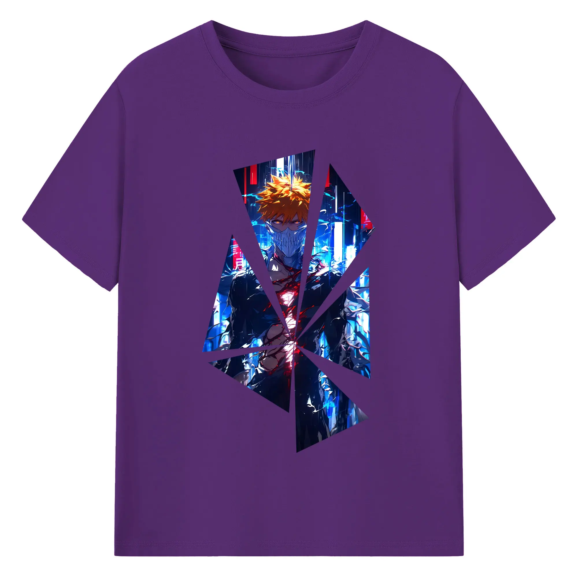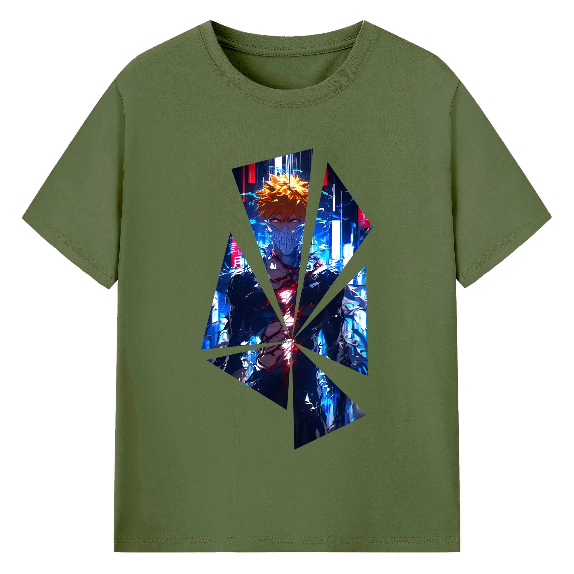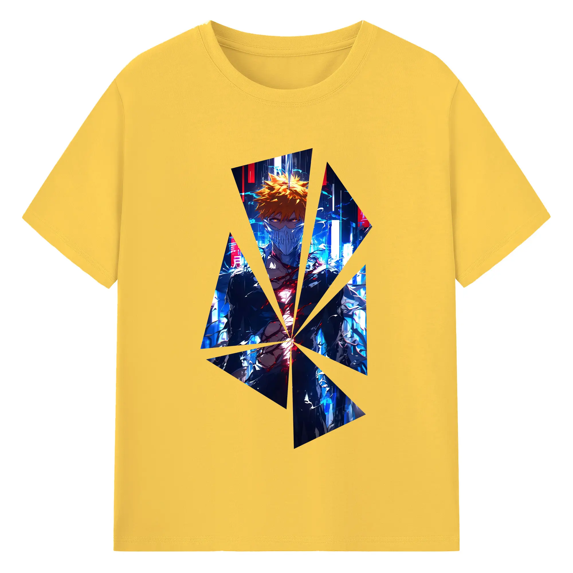 ブリーチ グッズ 黒崎 一護 - 綿100% 半袖Tシャツ ・ フロントプリント ・ 快適 通気性 ・ 日常使い 散歩 スポーツ用