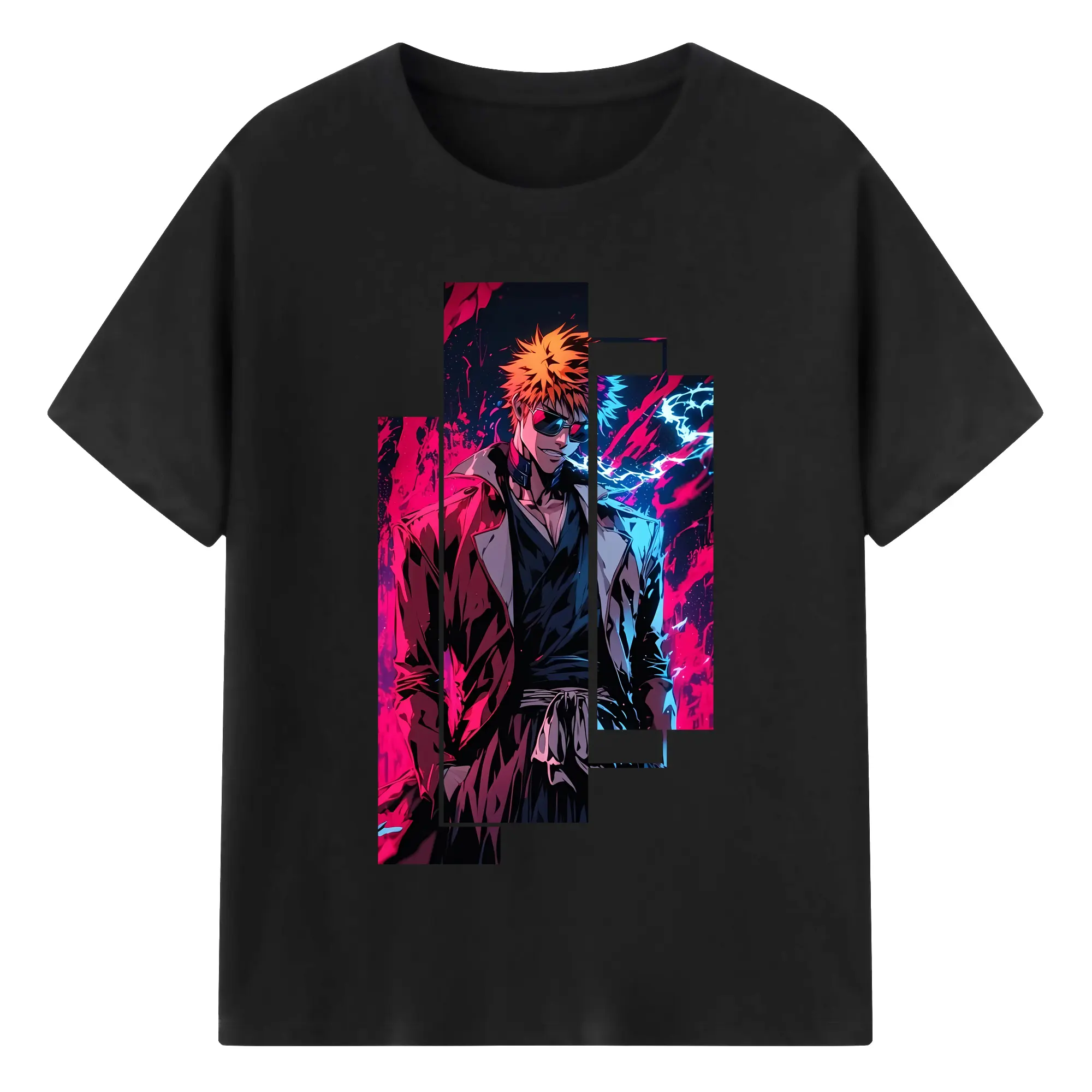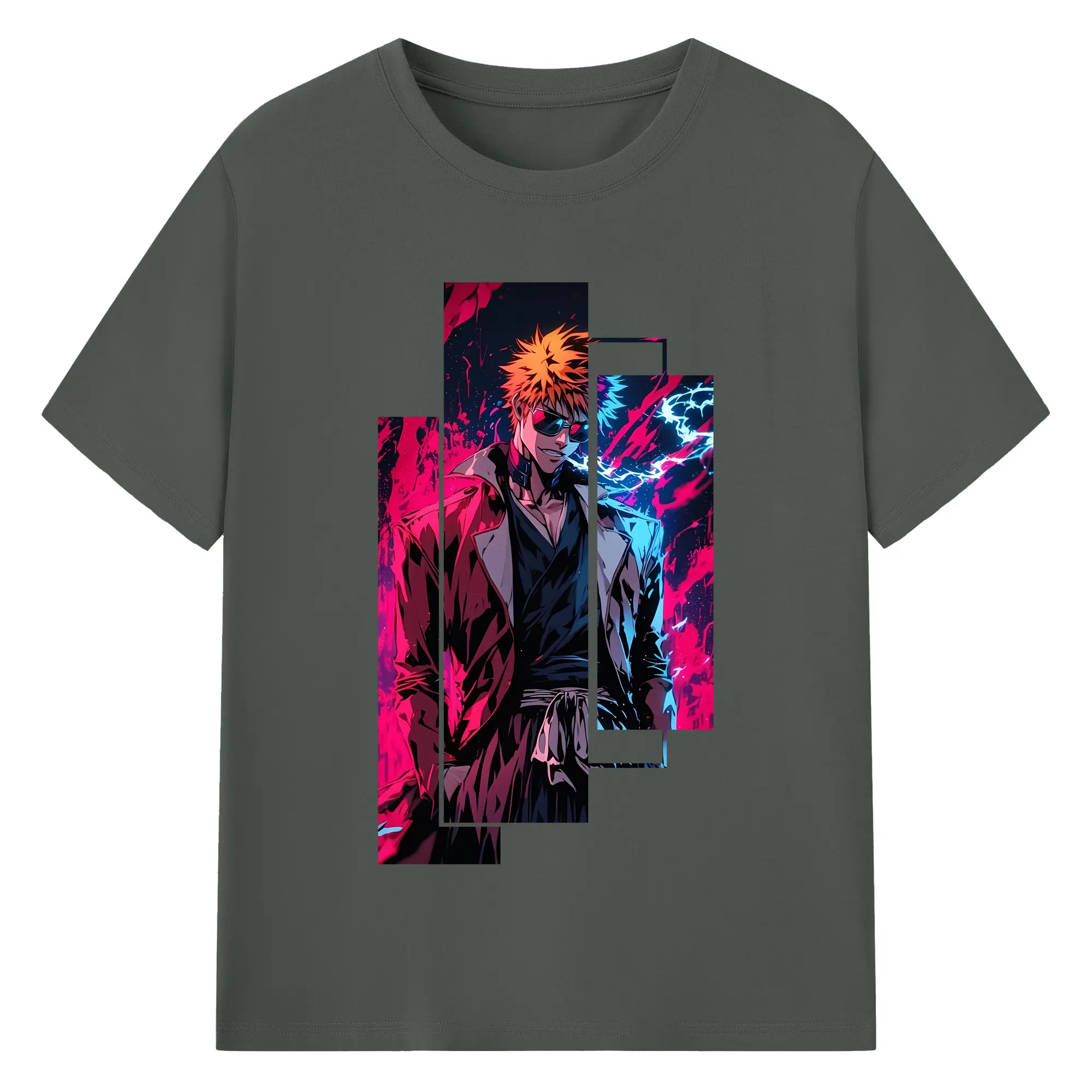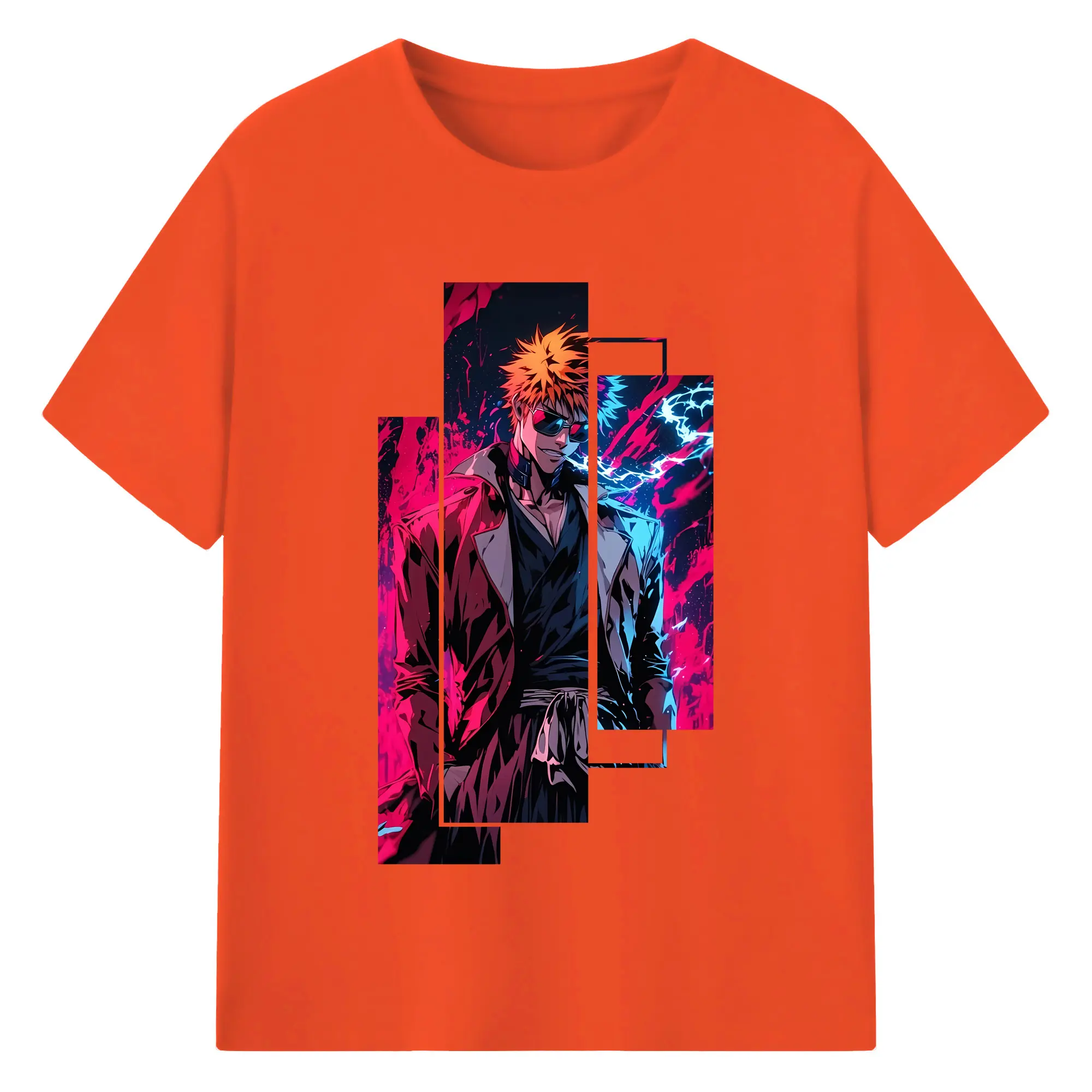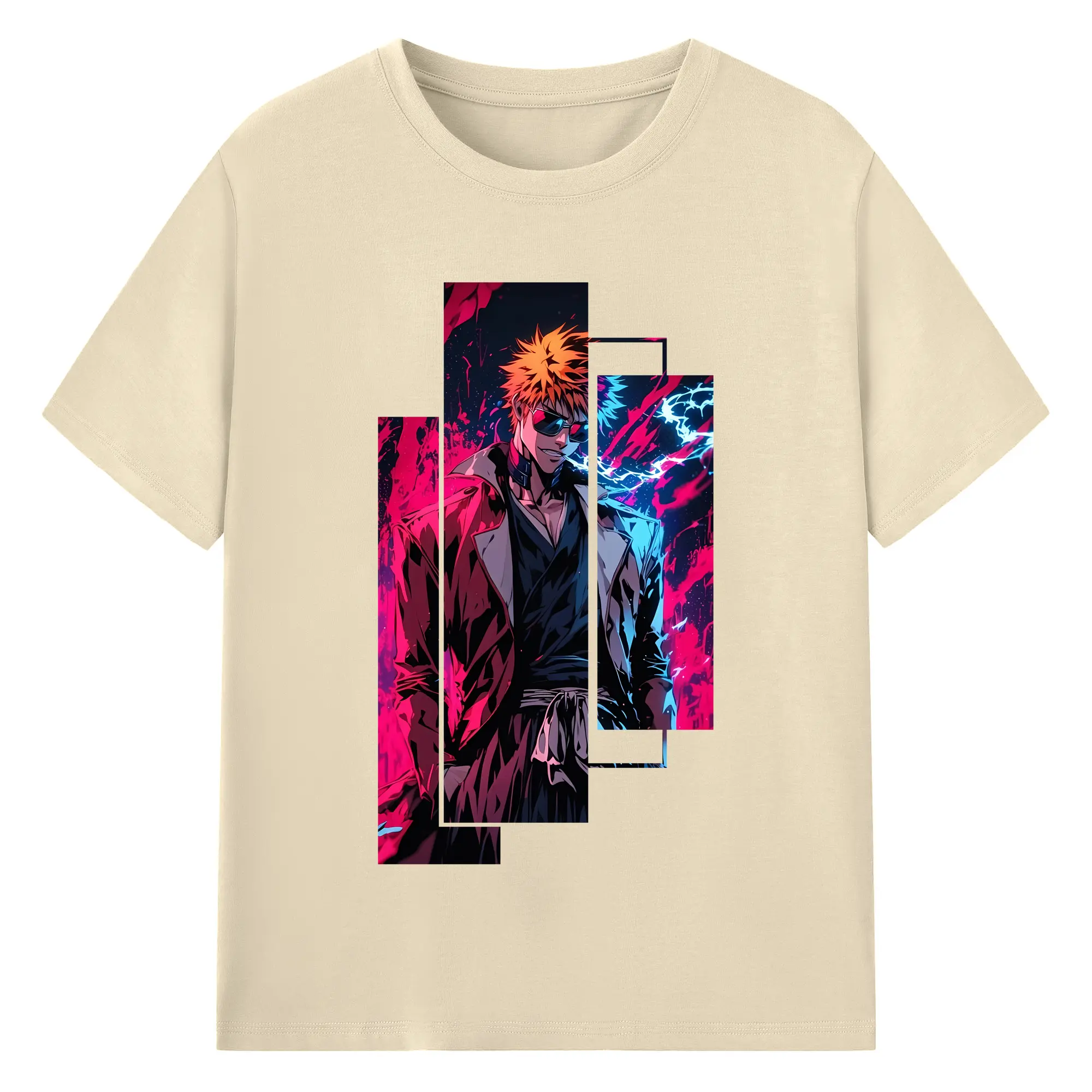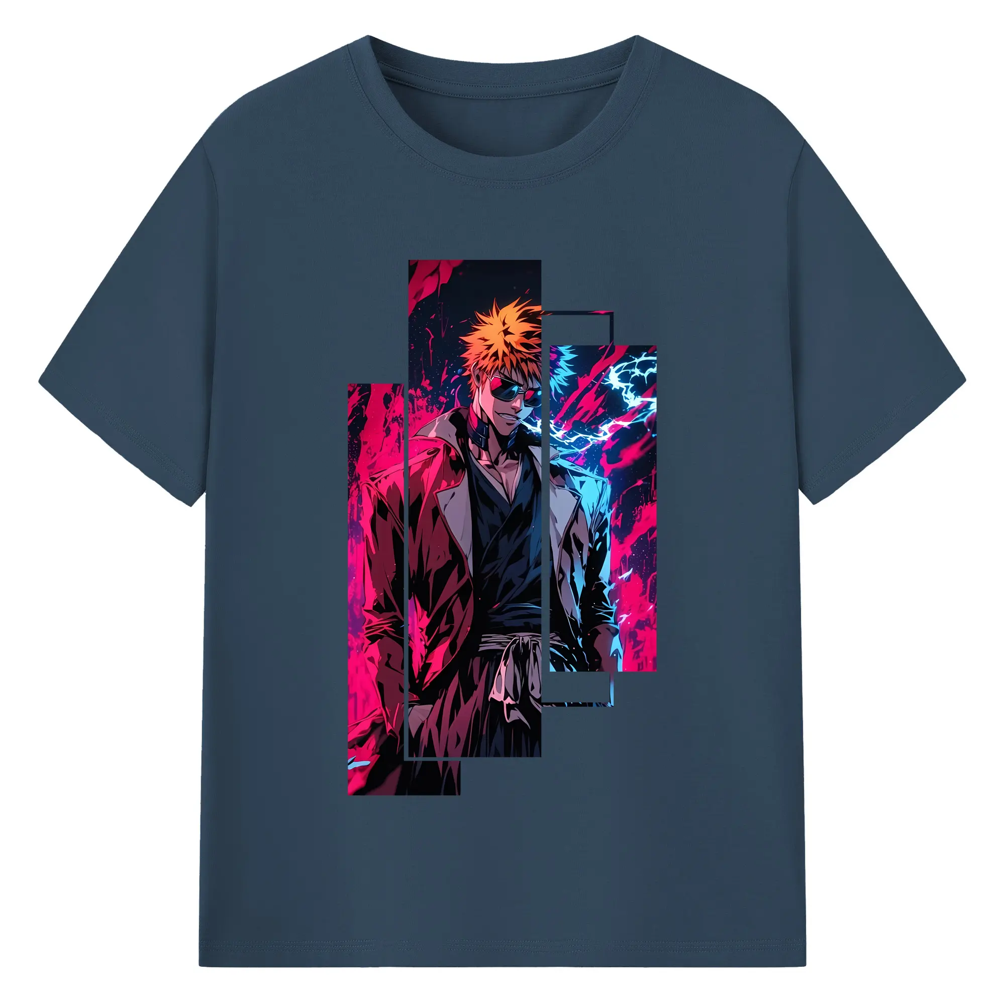 ブリーチ グッズ 黒崎 一護 - 綿100% ヴィンテージ風 半袖Tシャツ ・ フロントプリント ・ 柔らか肌触り ・ 通気性 快適 ・ スポーツ カジュアル 外出用