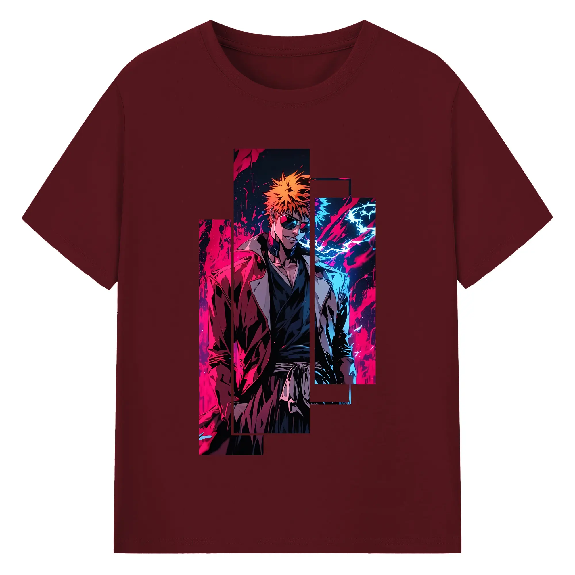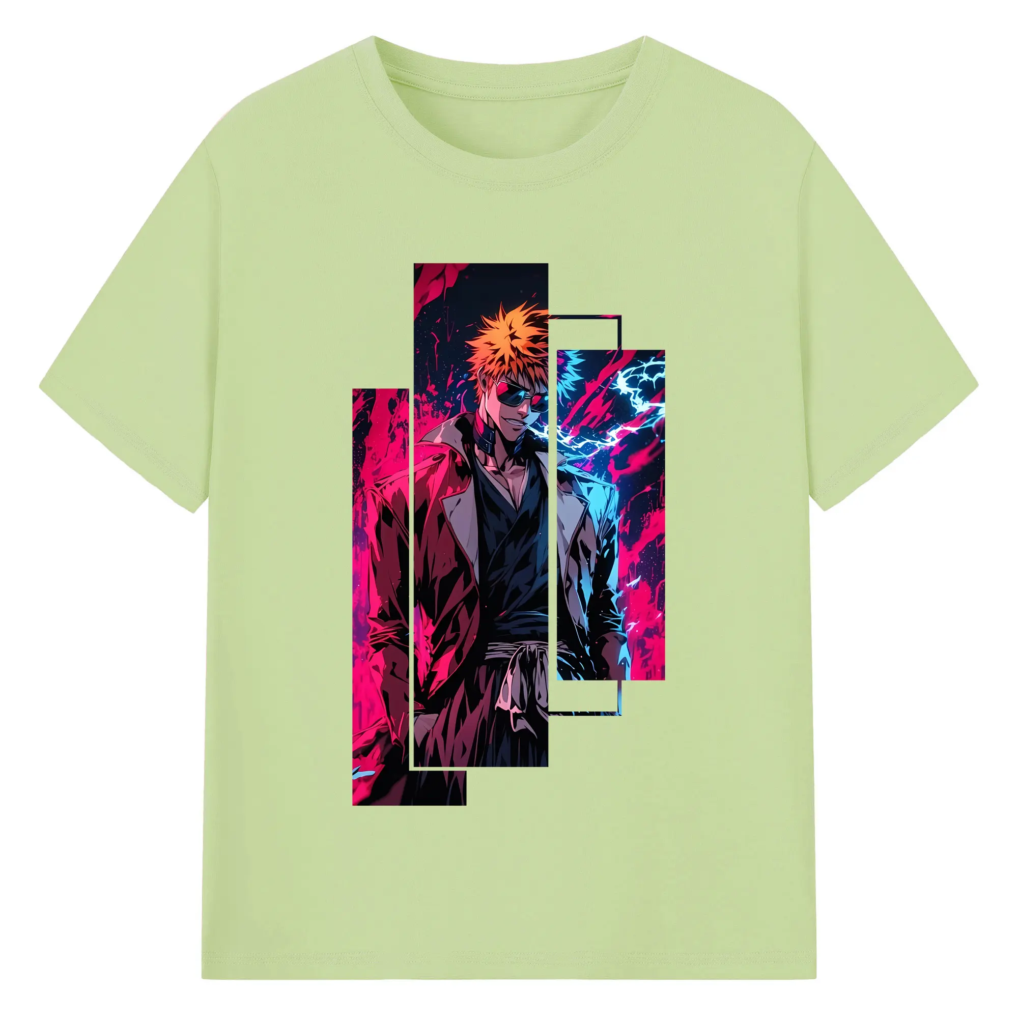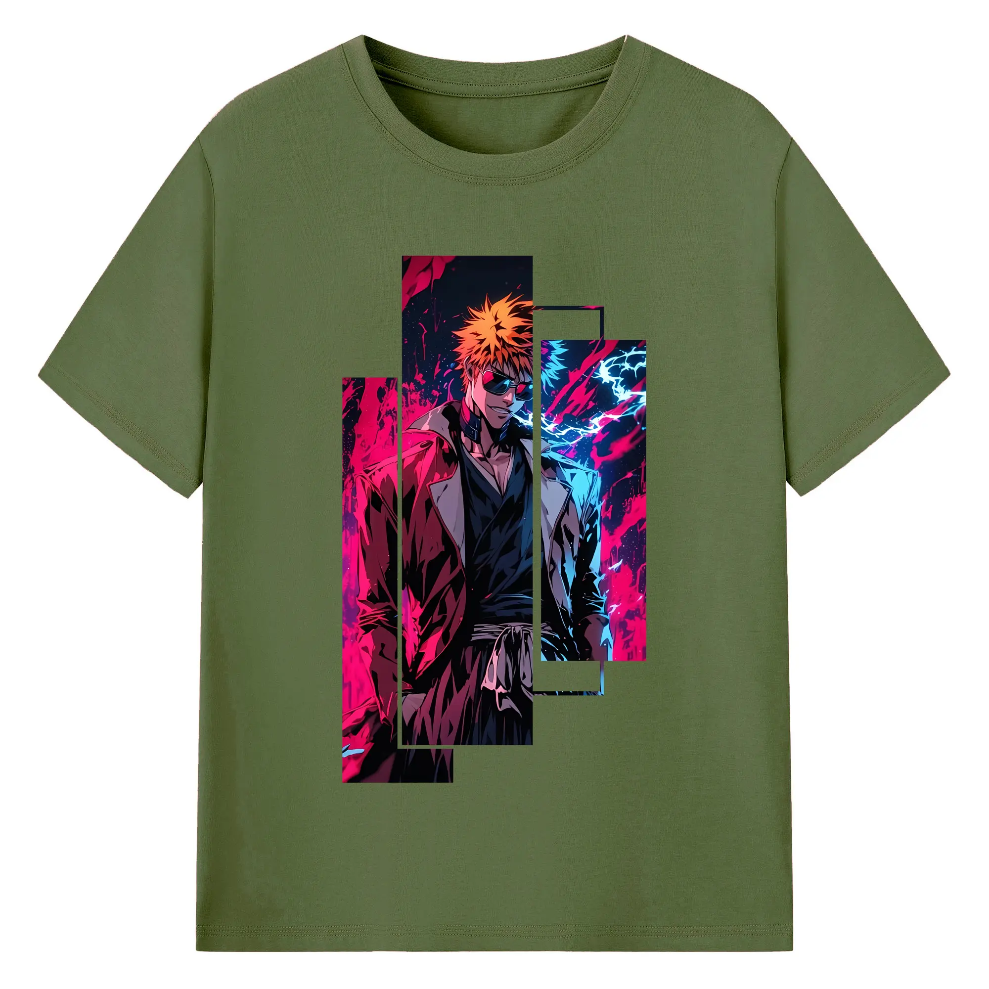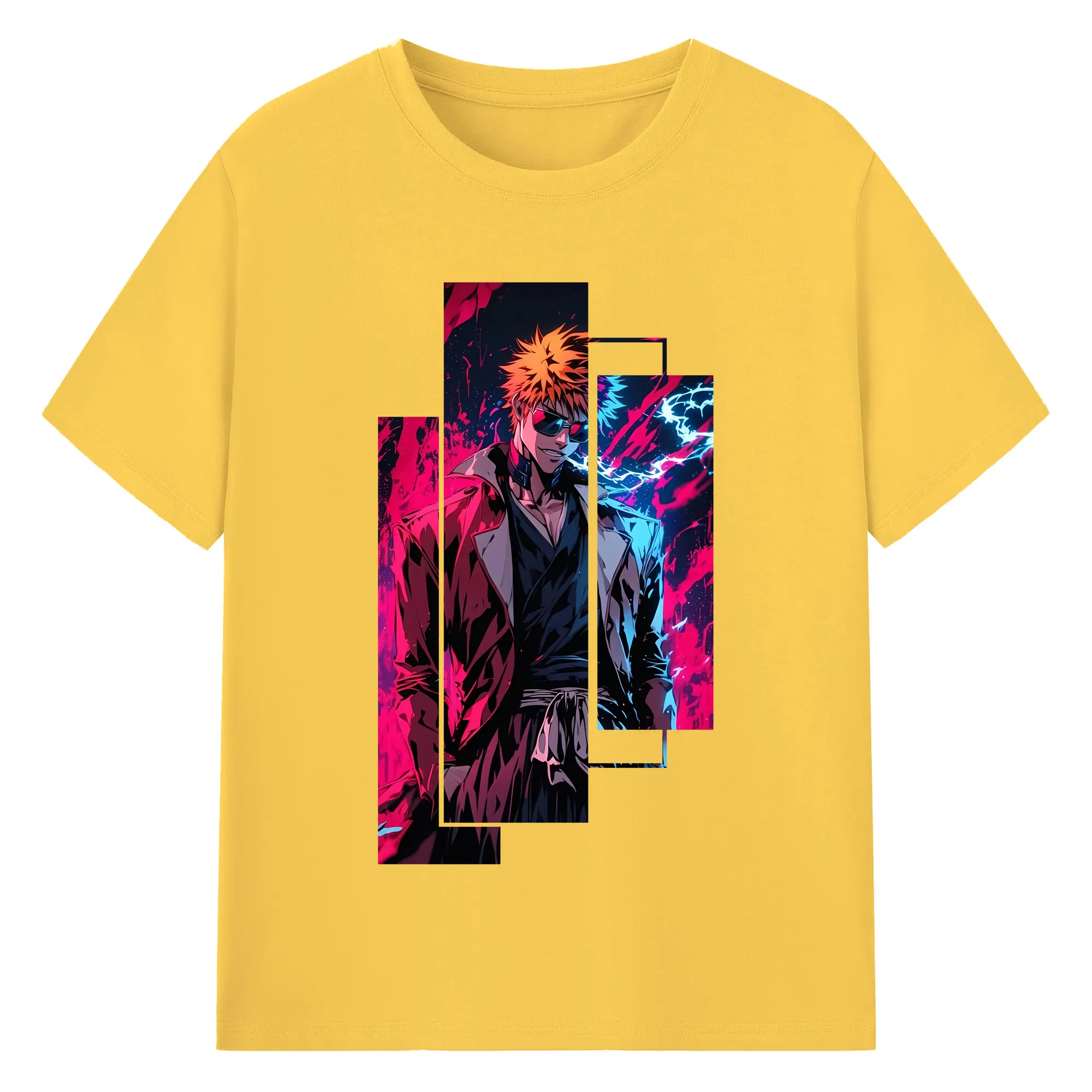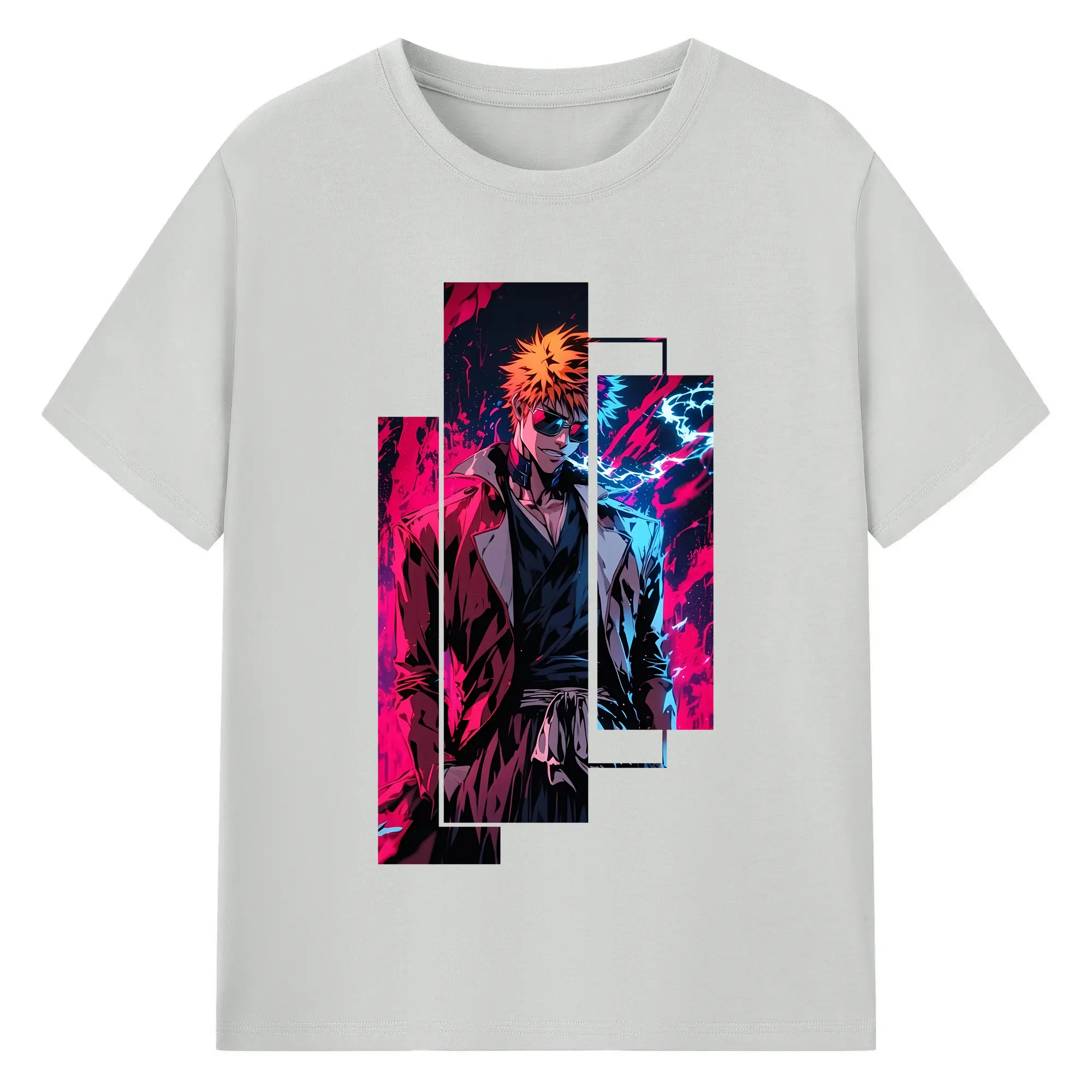 ブリーチ グッズ 黒崎 一護 - 綿100% ヴィンテージ風 半袖Tシャツ ・ フロントプリント ・ 柔らか肌触り ・ 通気性 快適 ・ スポーツ カジュアル 外出用