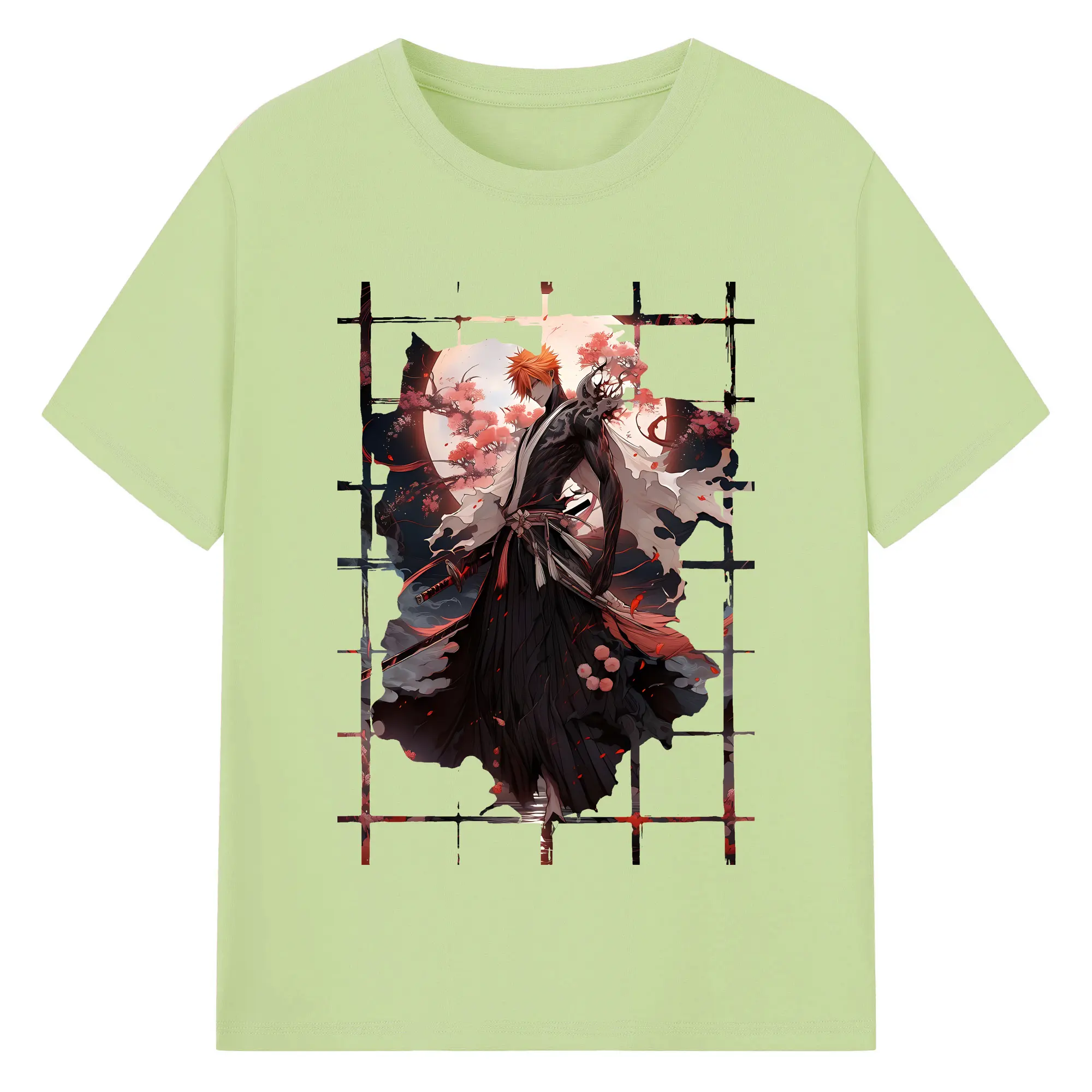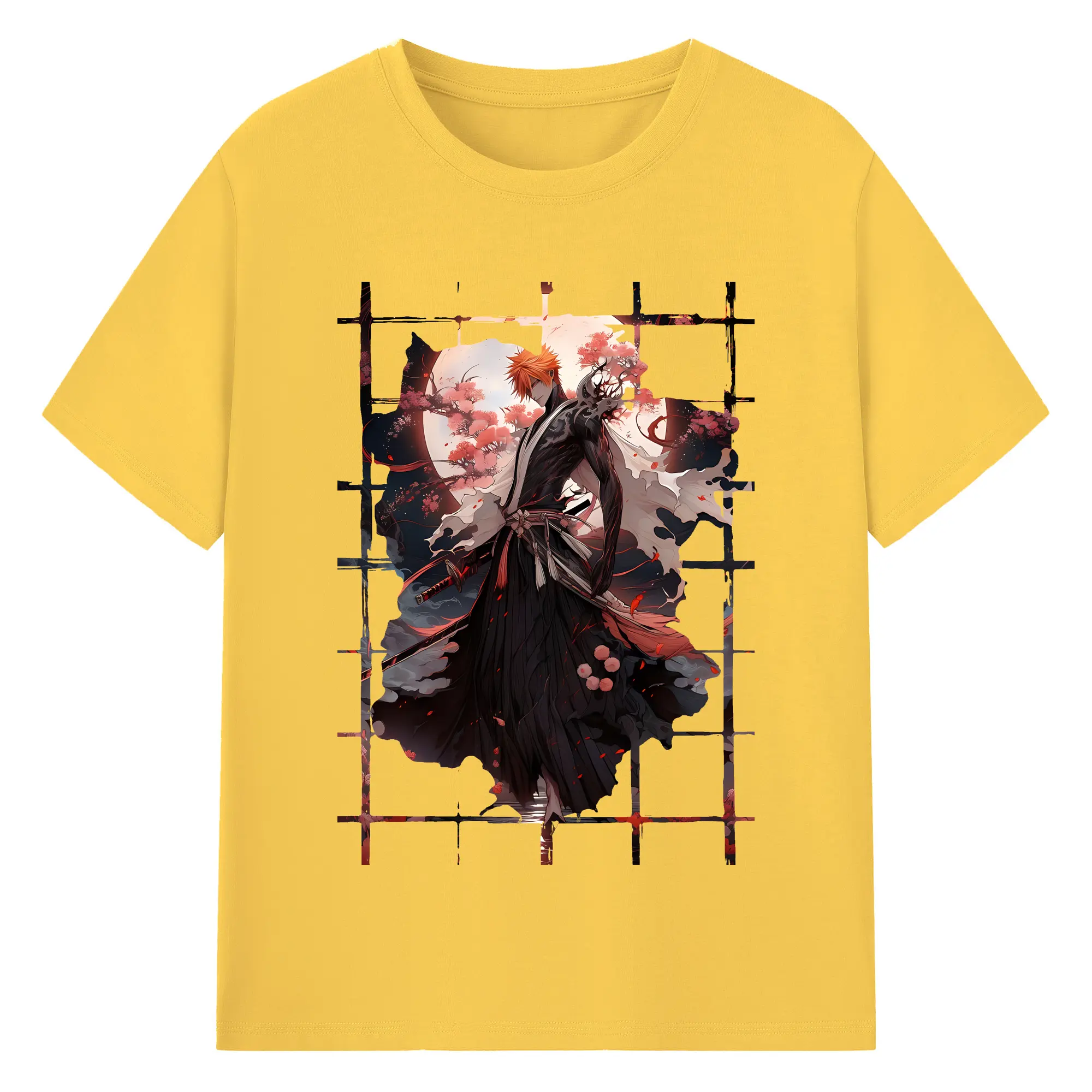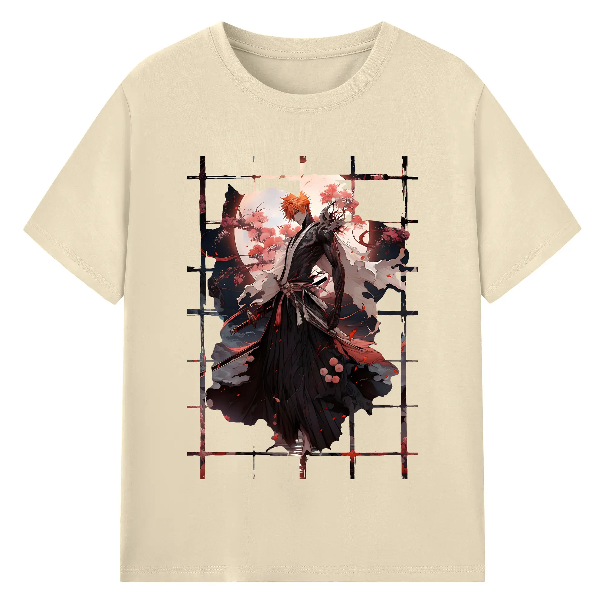 ブリーチ グッズ 黒崎 一護 - 綿100% ヴィンテージ風 半袖Tシャツ ・ フロントプリント ・ 柔らか肌触り ・ 通気性 快適 ・ スポーツ カジュアル 外出用