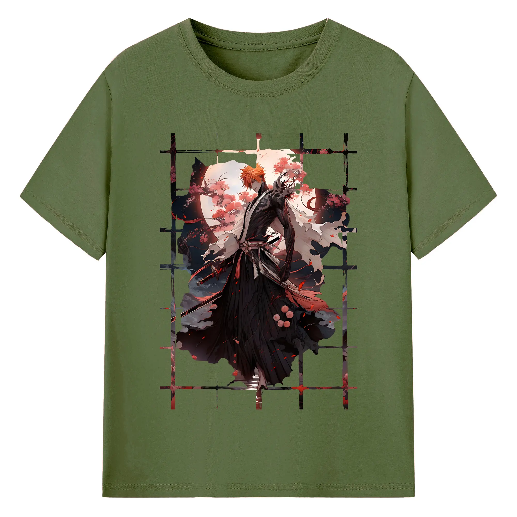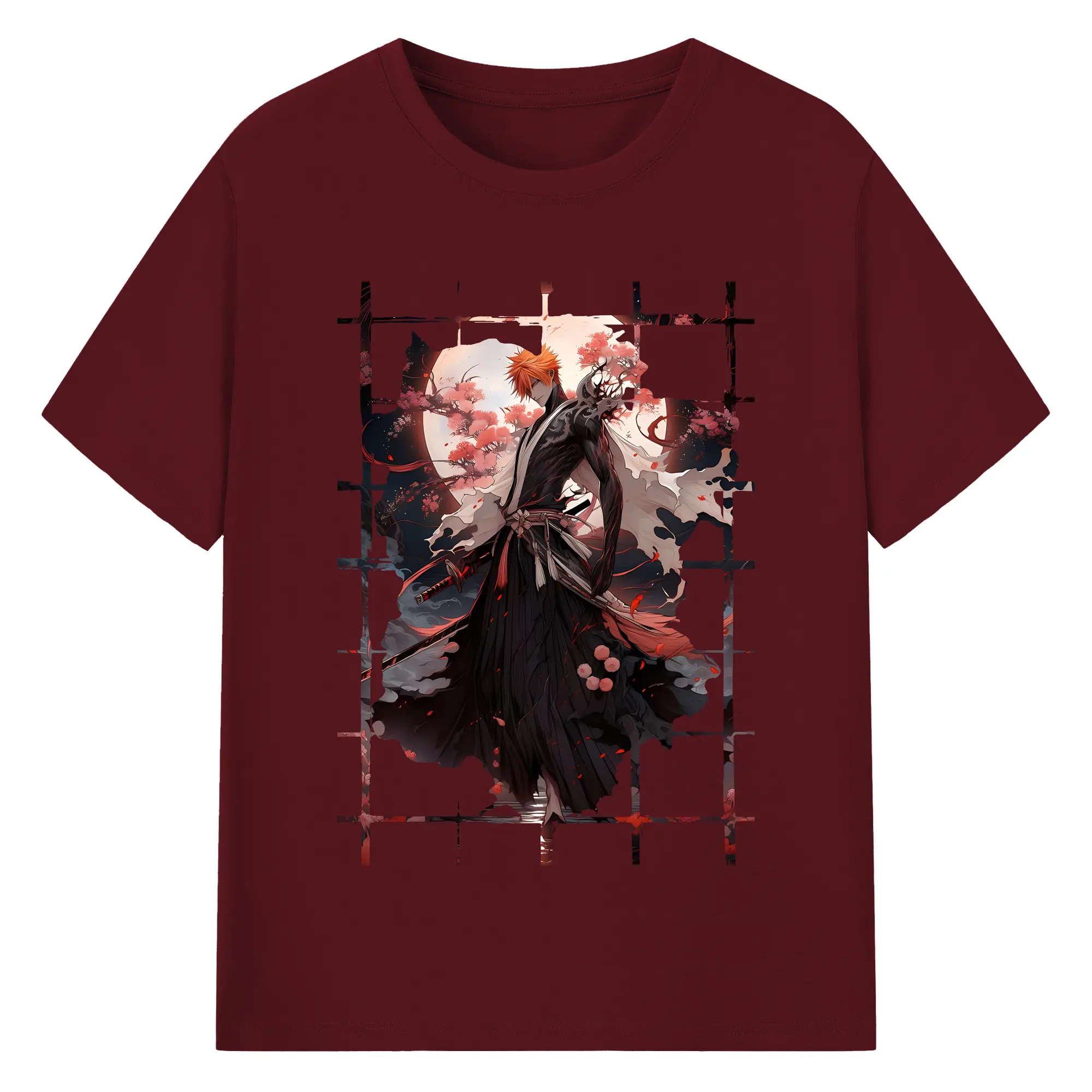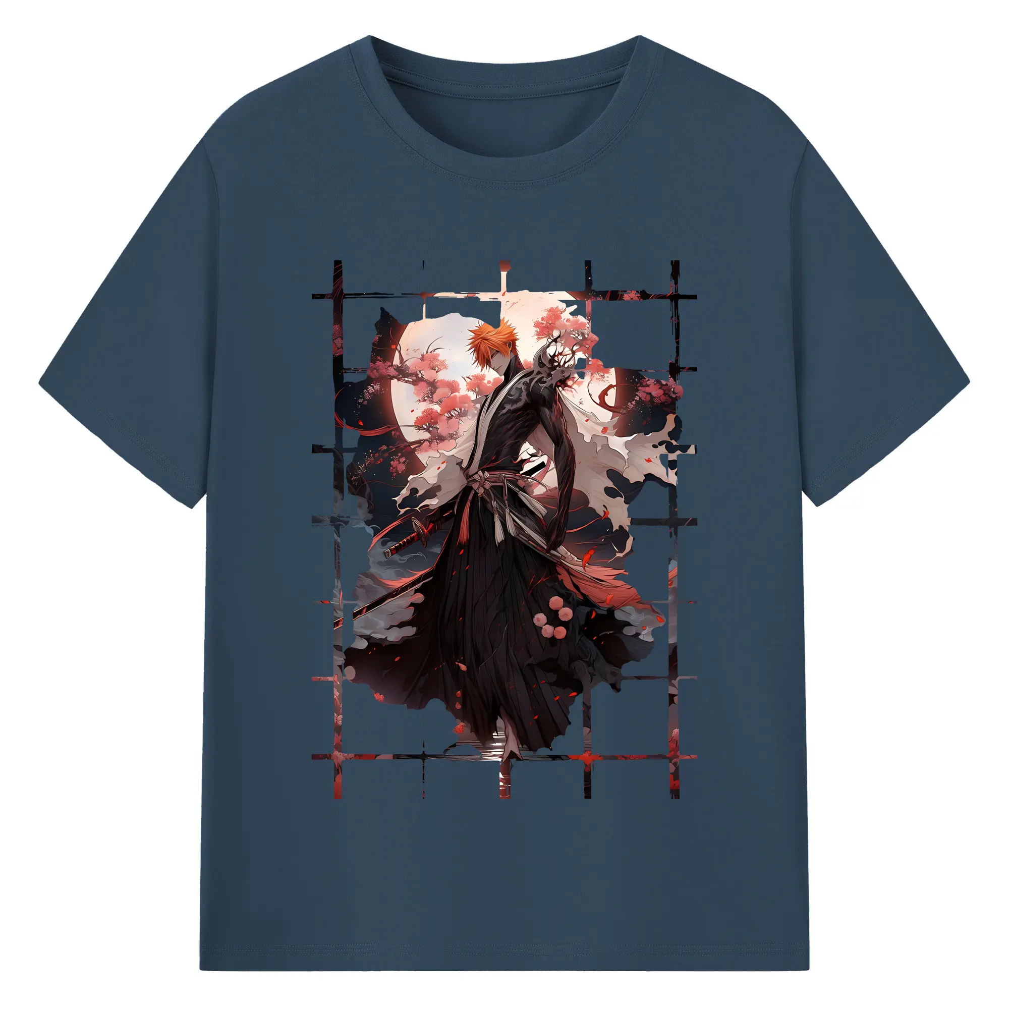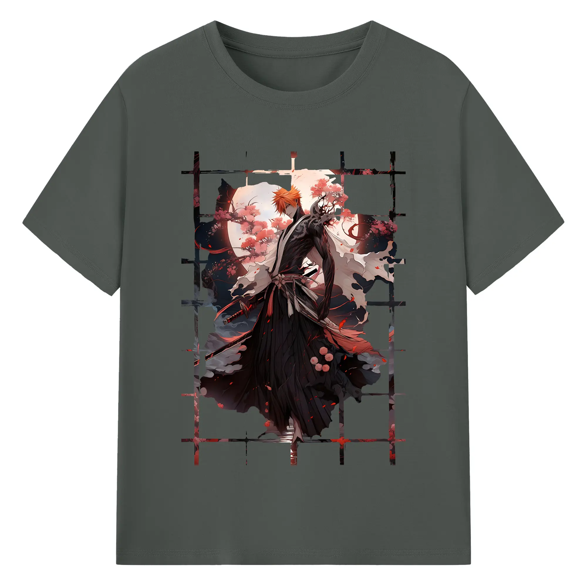 ブリーチ グッズ 黒崎 一護 - 綿100% ヴィンテージ風 半袖Tシャツ ・ フロントプリント ・ 柔らか肌触り ・ 通気性 快適 ・ スポーツ カジュアル 外出用