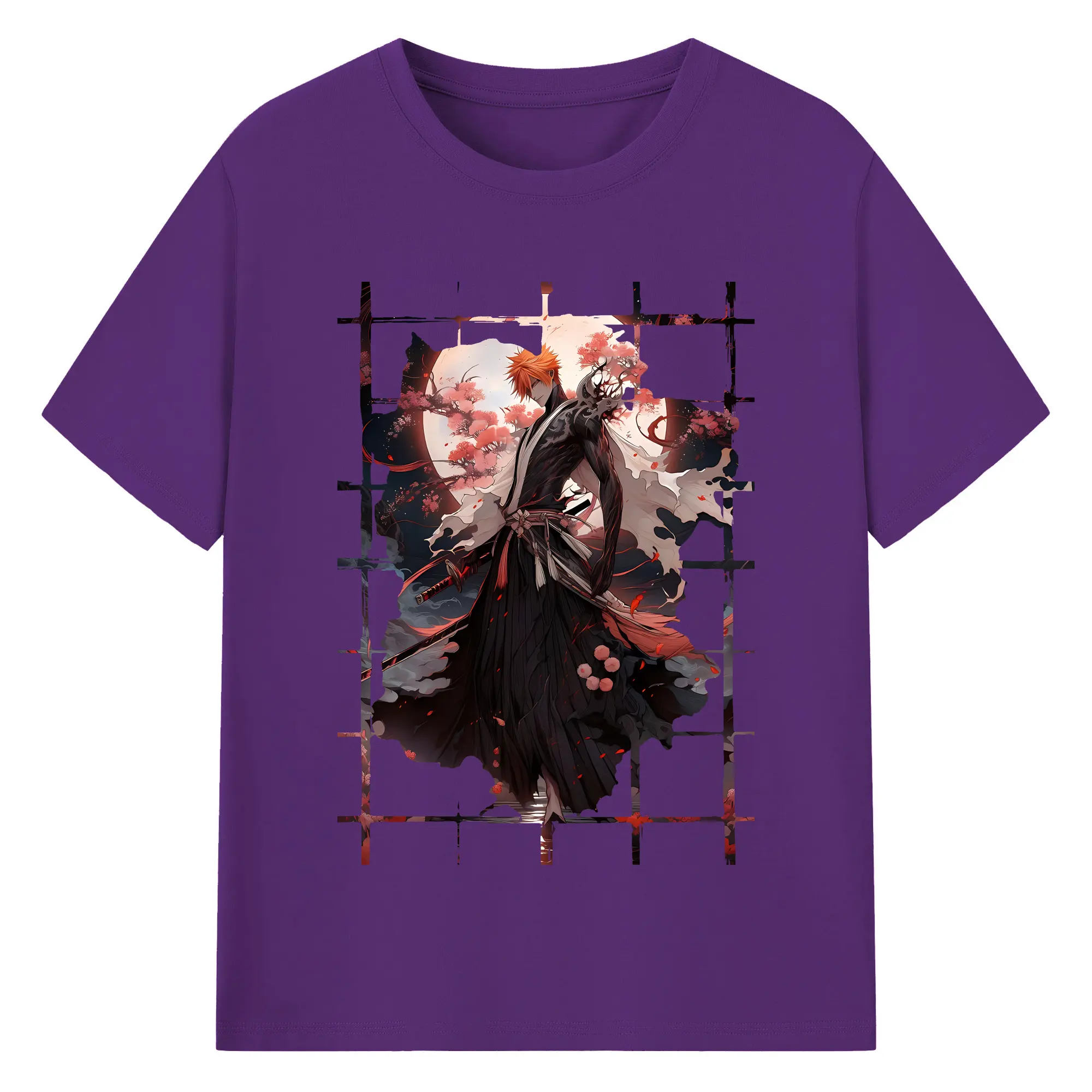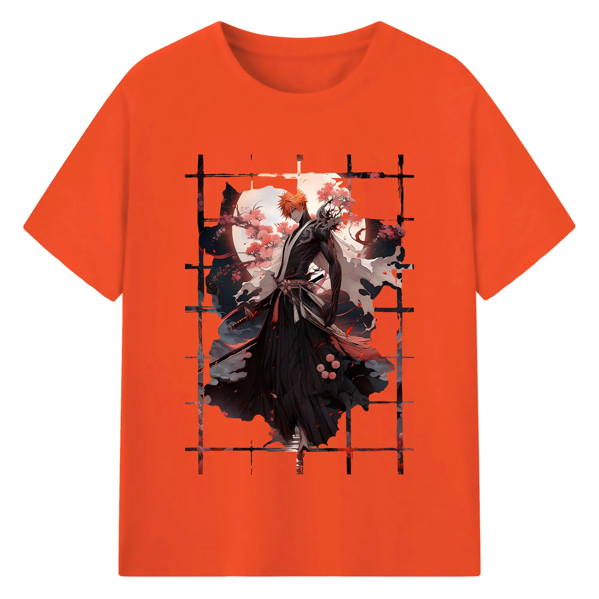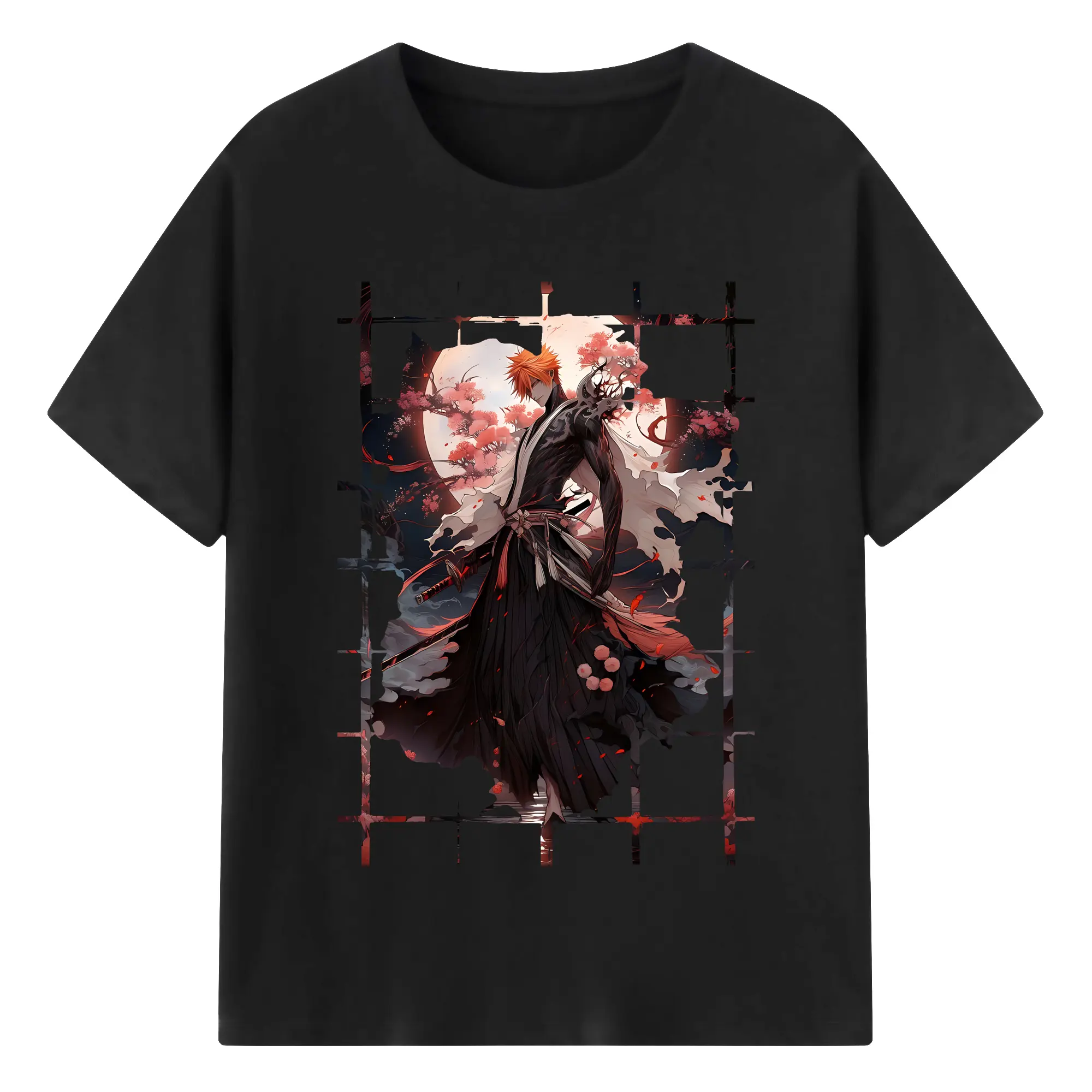 ブリーチ グッズ 黒崎 一護 - 綿100% 半袖Tシャツ ・ バックプリント ・ 快適 通気性 ・ 日常使い 散歩 スポーツ用