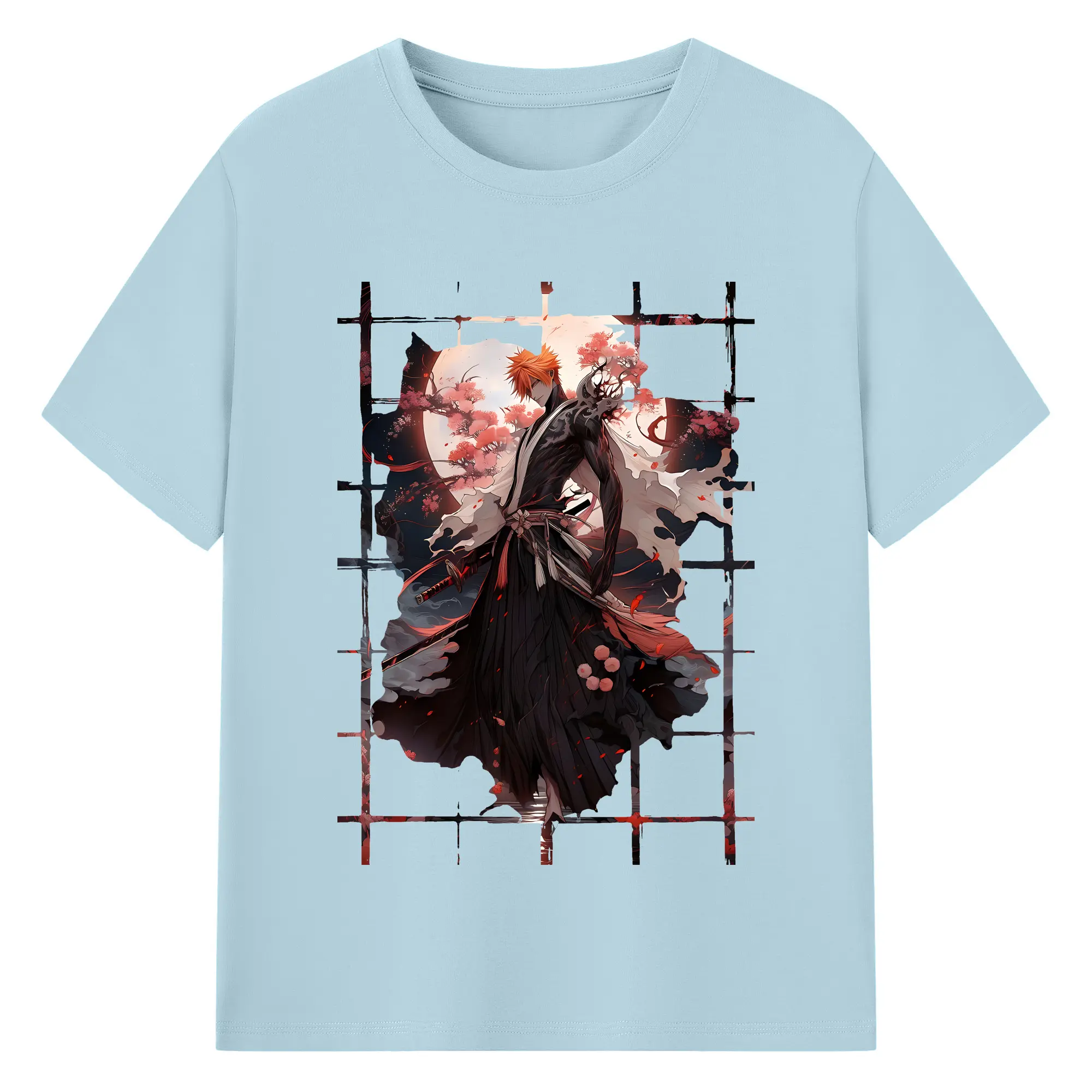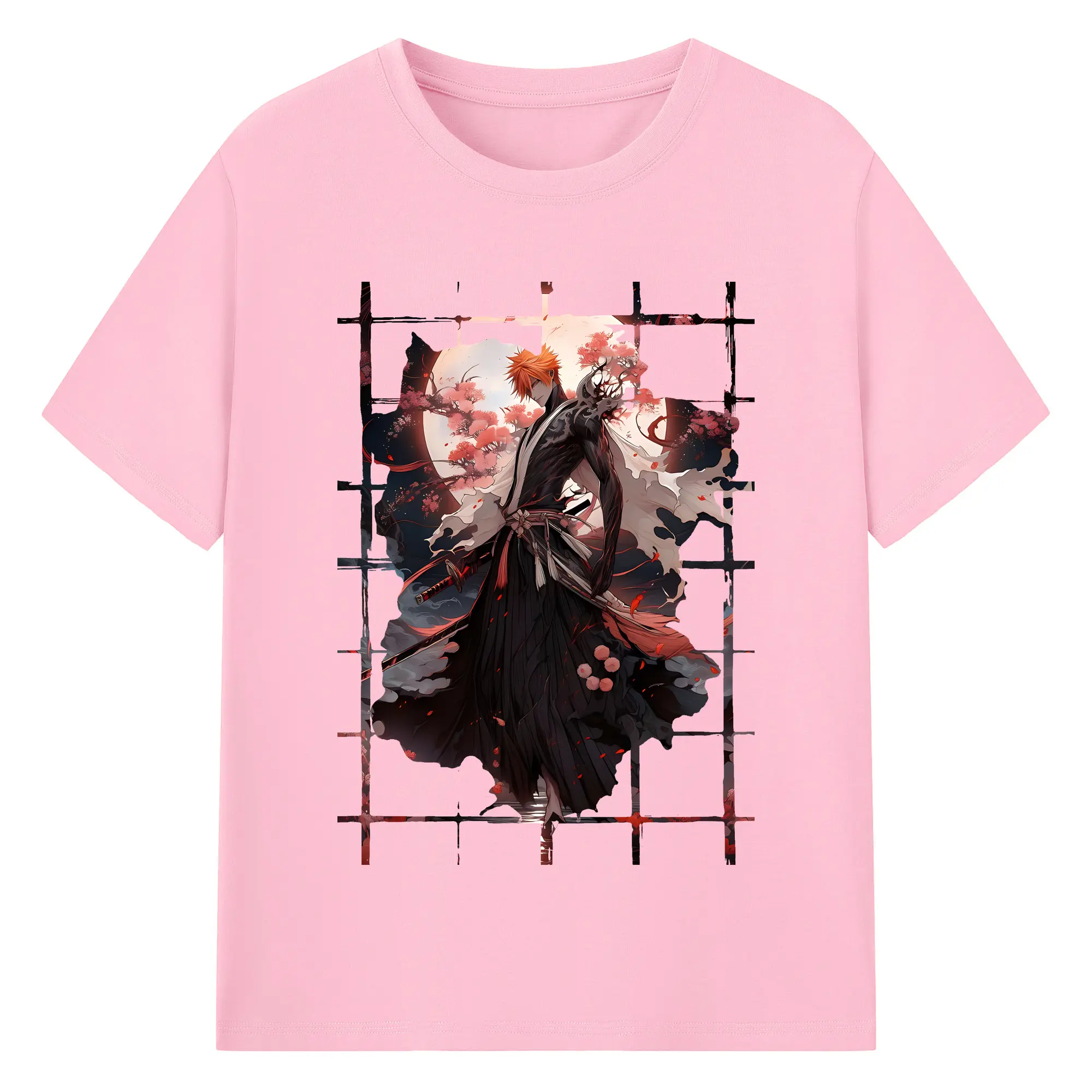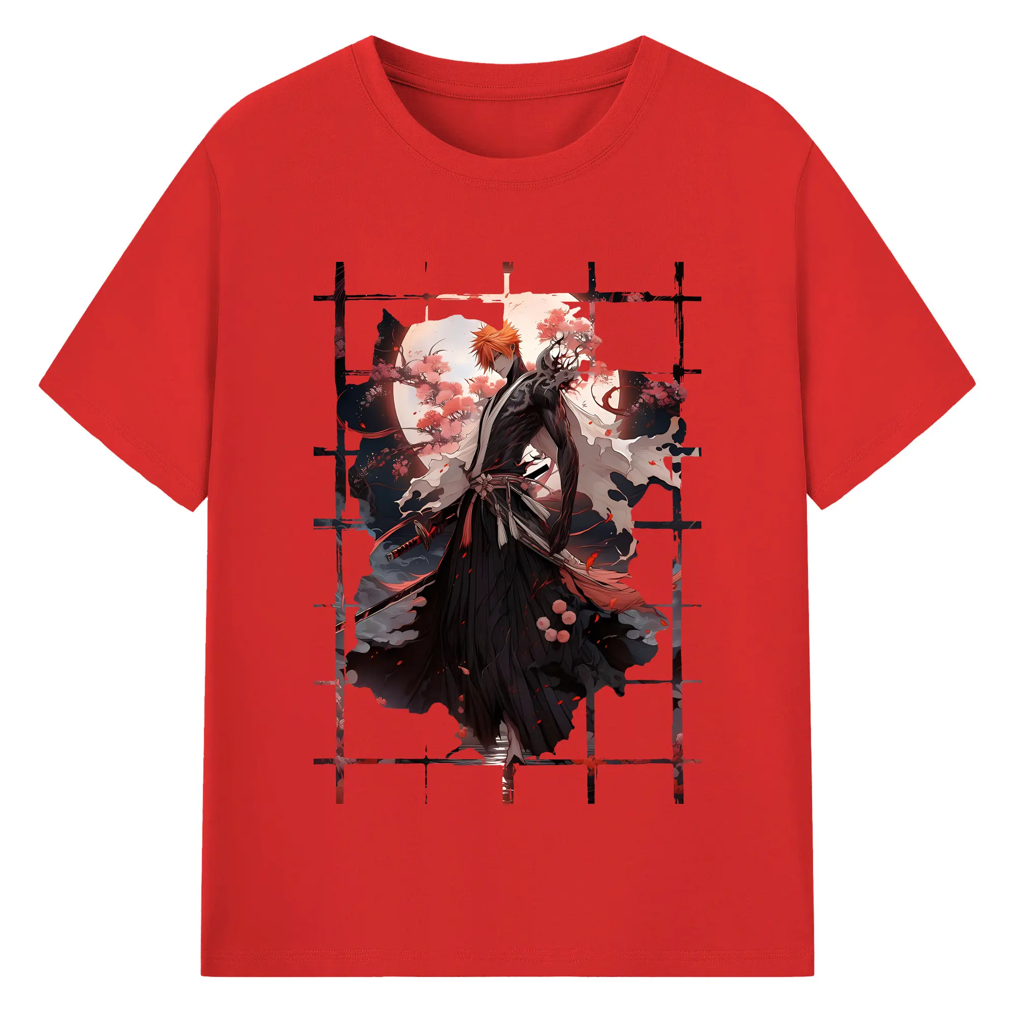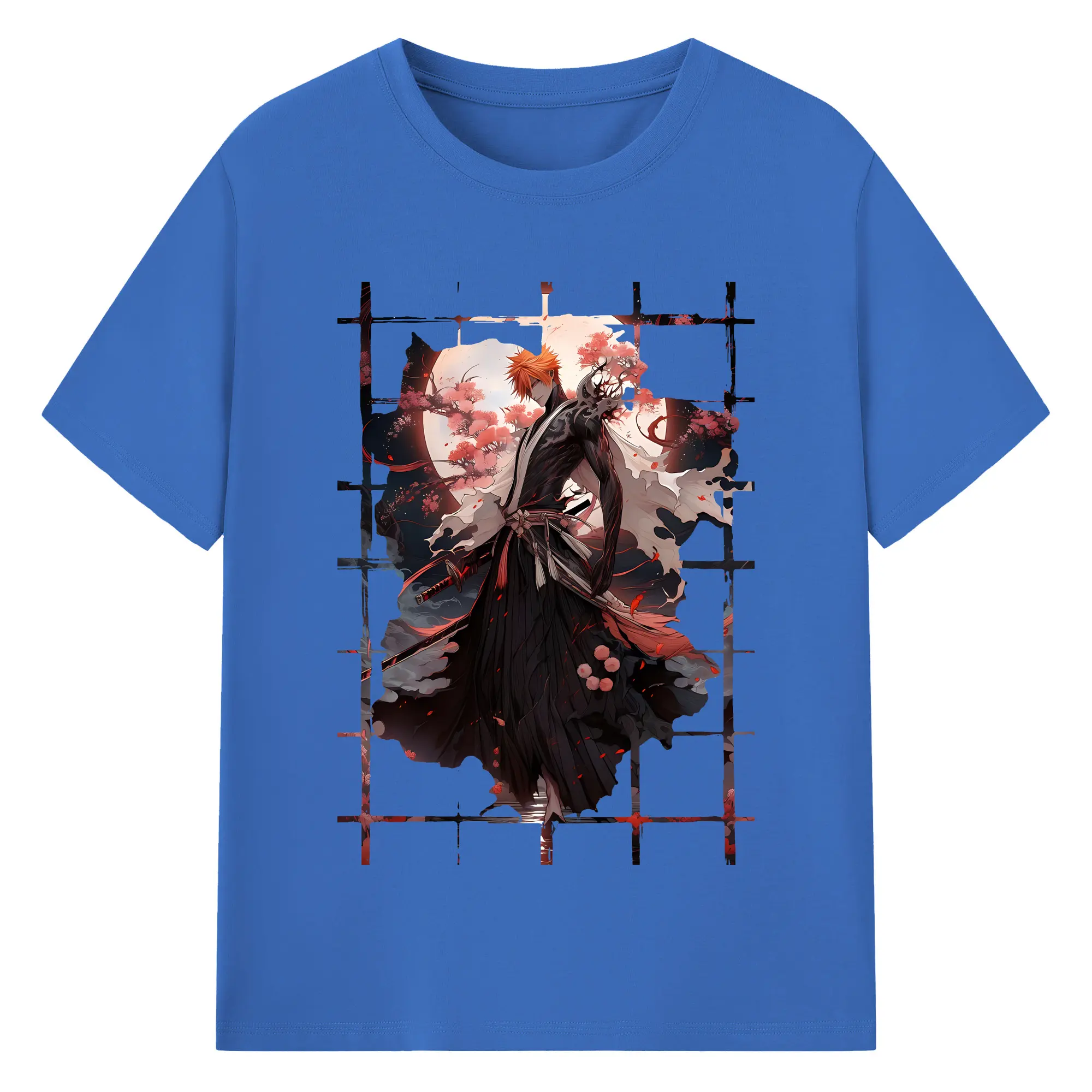 ブリーチ グッズ 黒崎 一護 - 綿100% 半袖Tシャツ ・ バックプリント ・ 快適 通気性 ・ 日常使い 散歩 スポーツ用