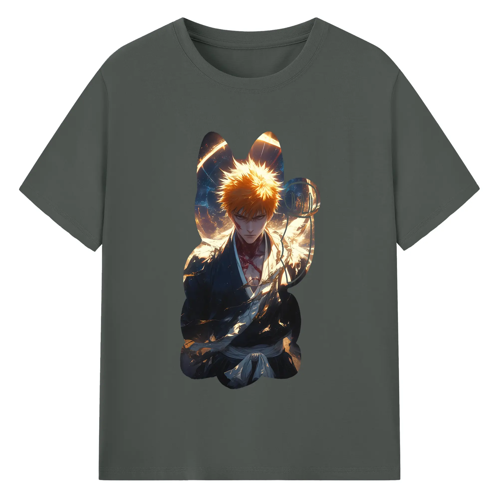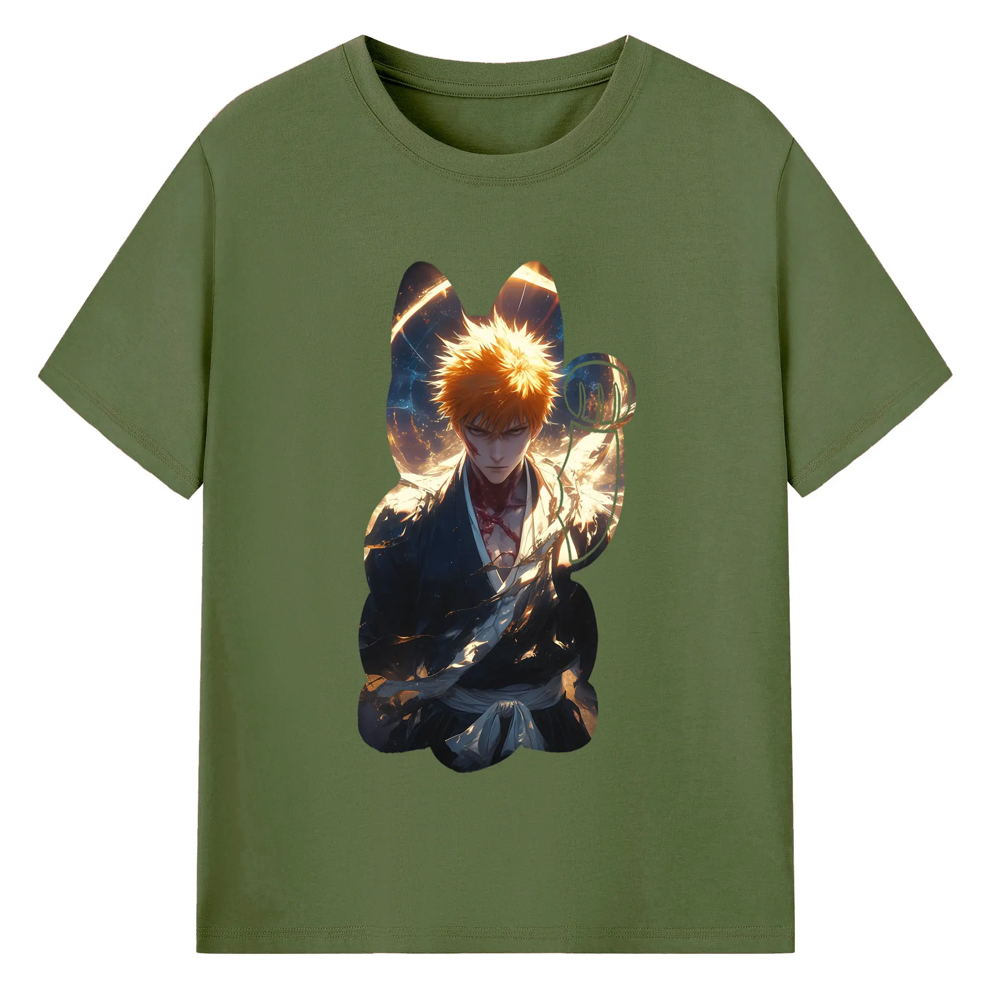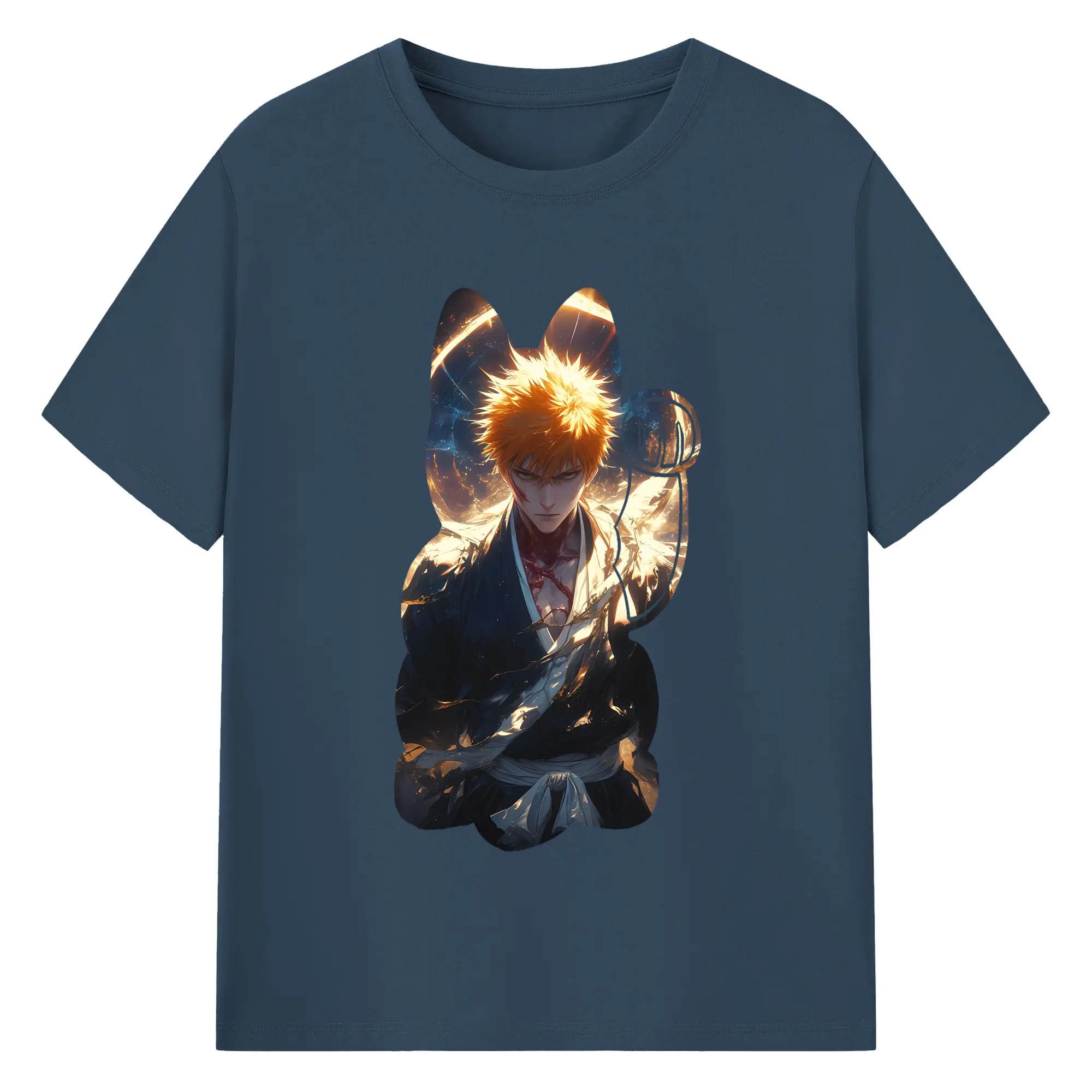 ブリーチ グッズ 黒崎 一護 - 綿100% ヴィンテージ風 半袖Tシャツ ・ フロントプリント ・ 柔らか肌触り ・ 通気性 快適 ・ スポーツ カジュアル 外出用