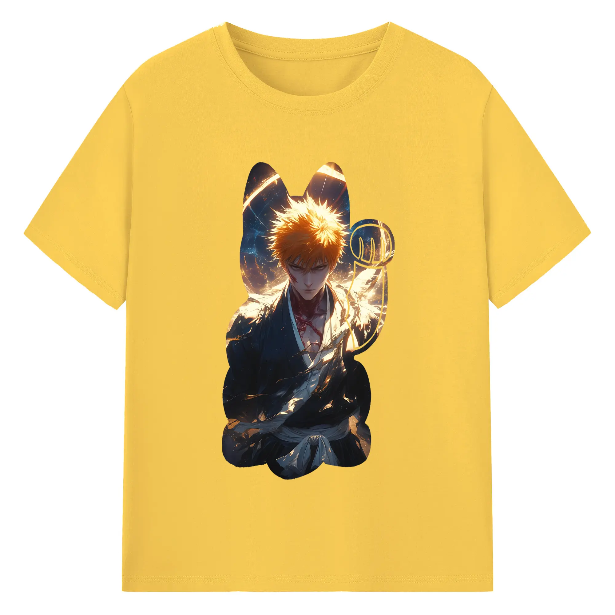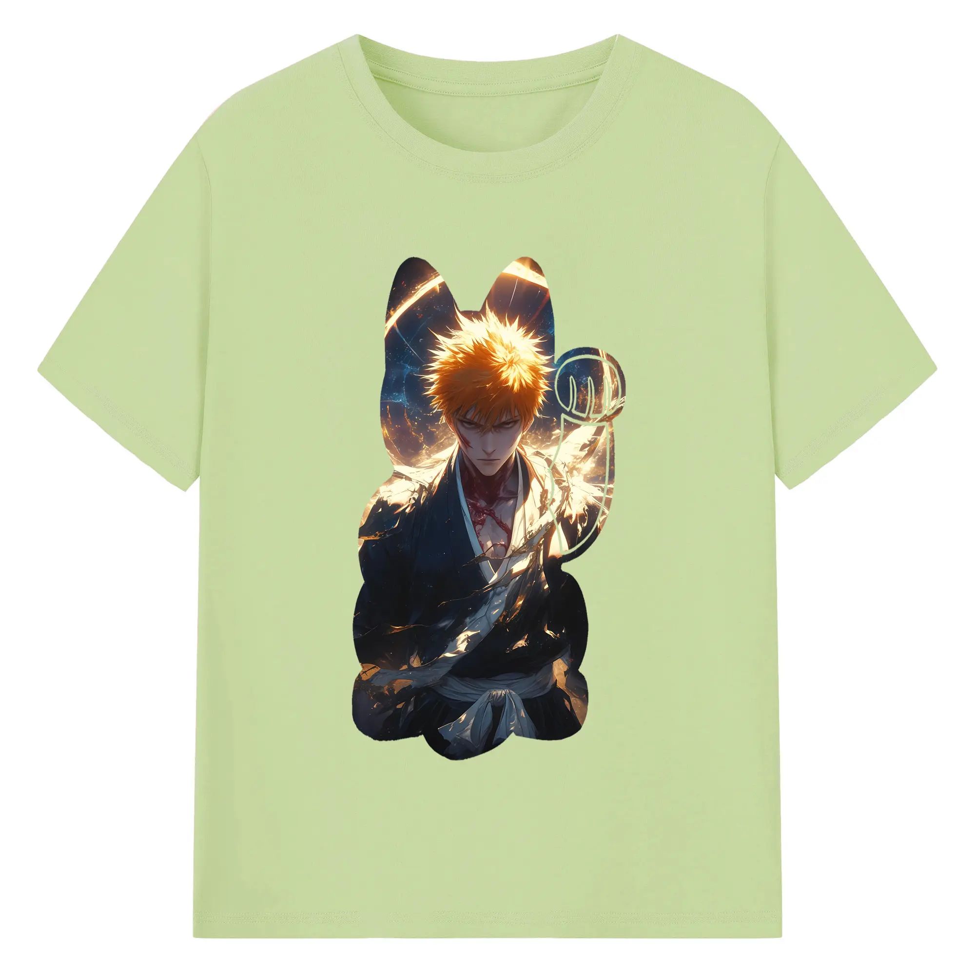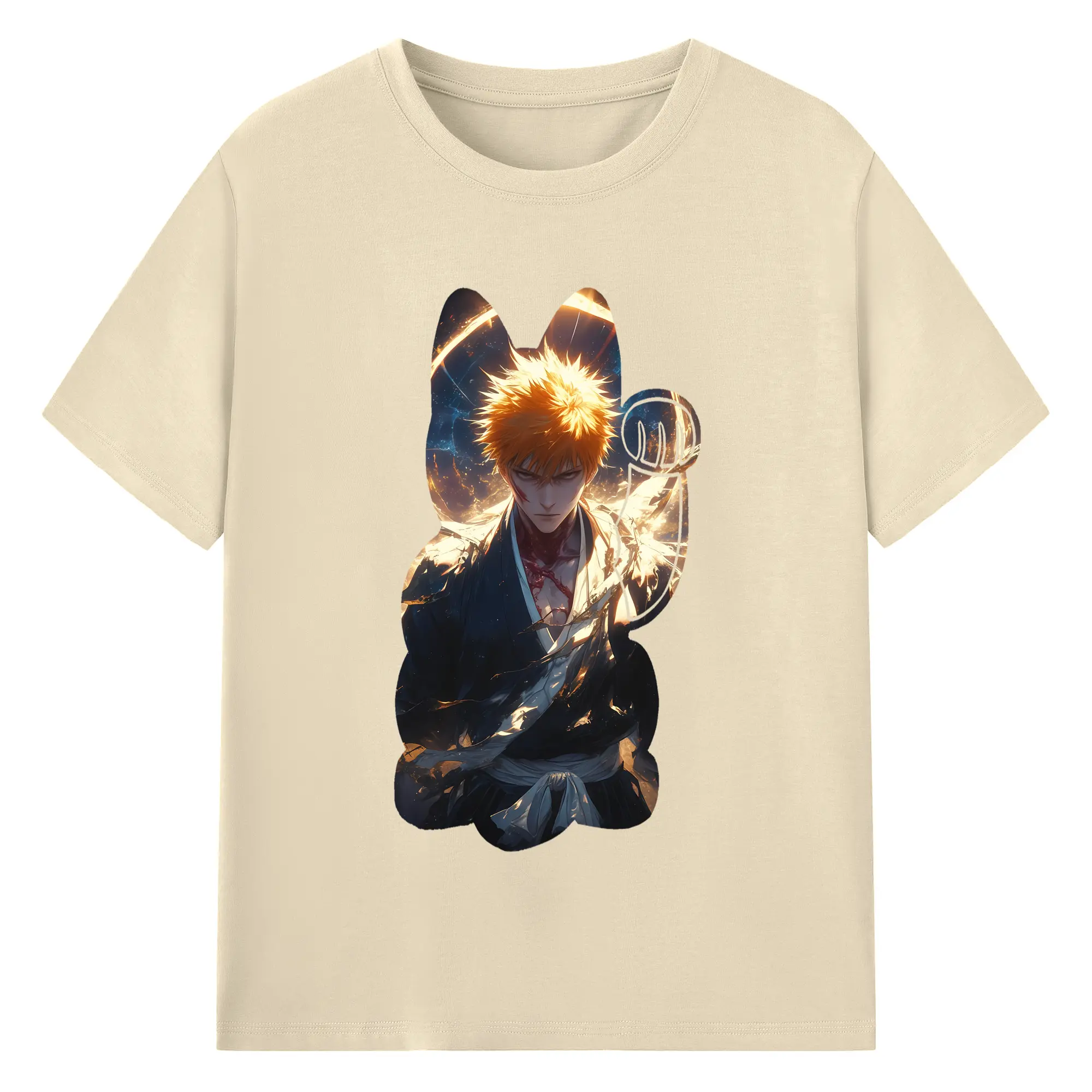 ブリーチ グッズ 黒崎 一護 - 綿100% ヴィンテージ風 半袖Tシャツ ・ フロントプリント ・ 柔らか肌触り ・ 通気性 快適 ・ スポーツ カジュアル 外出用