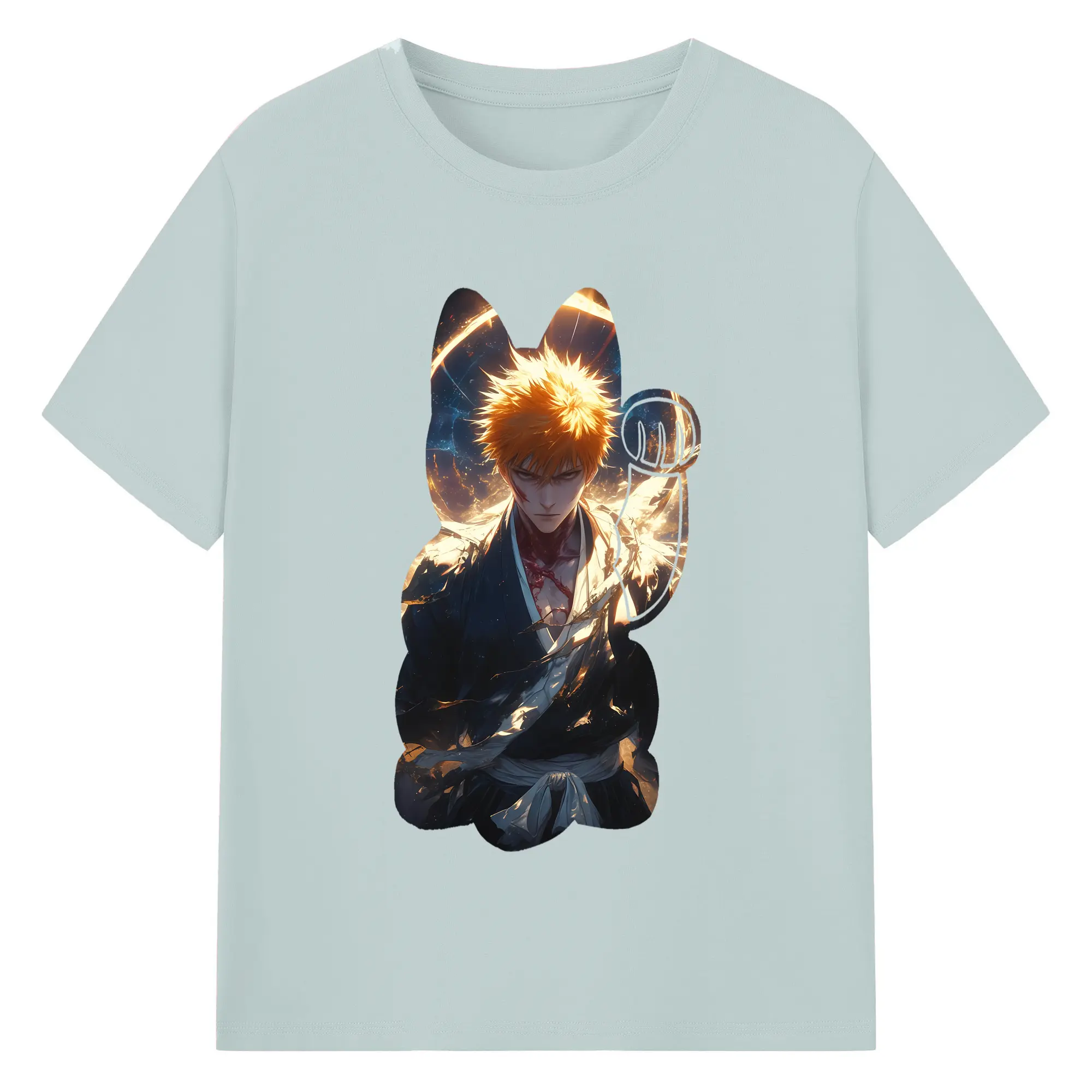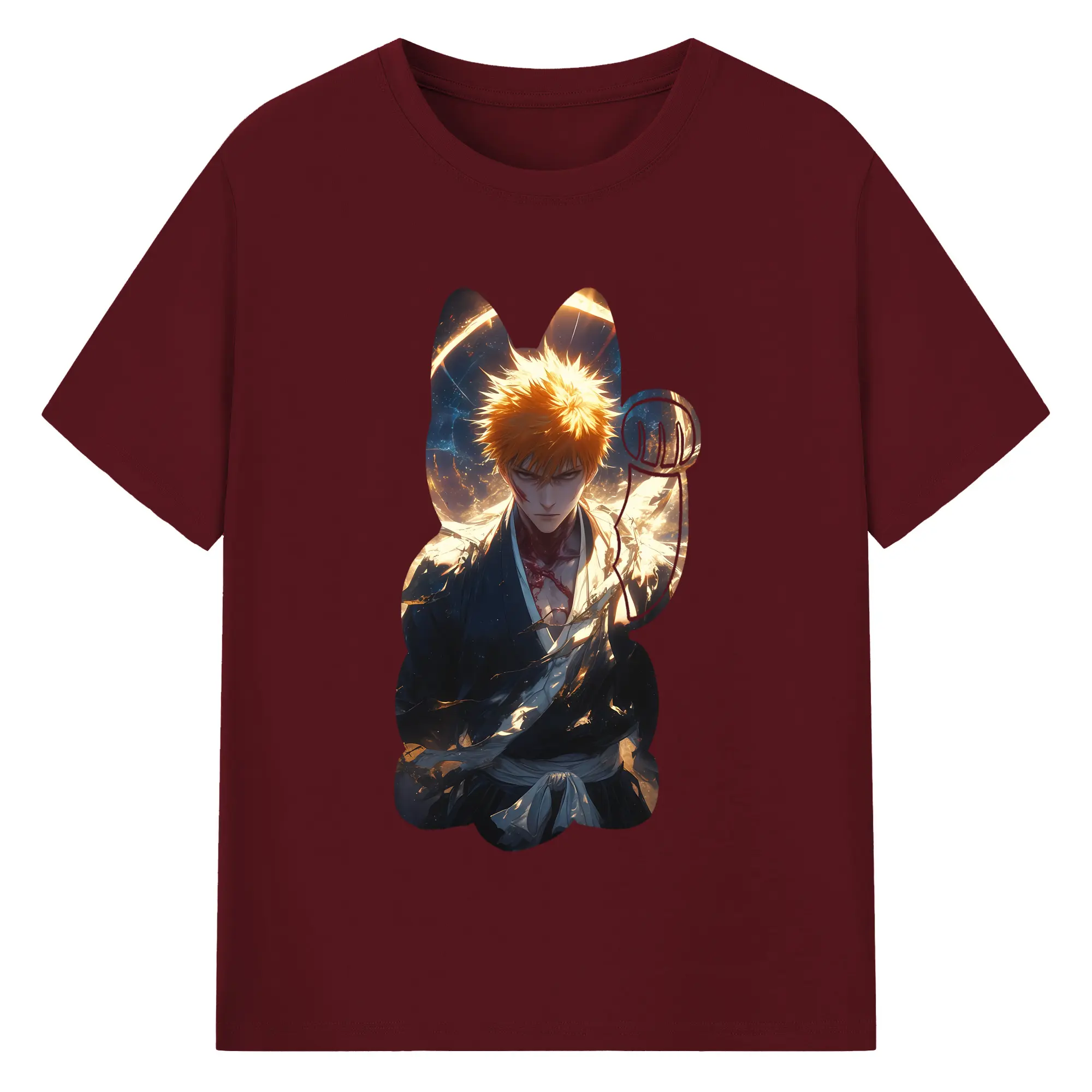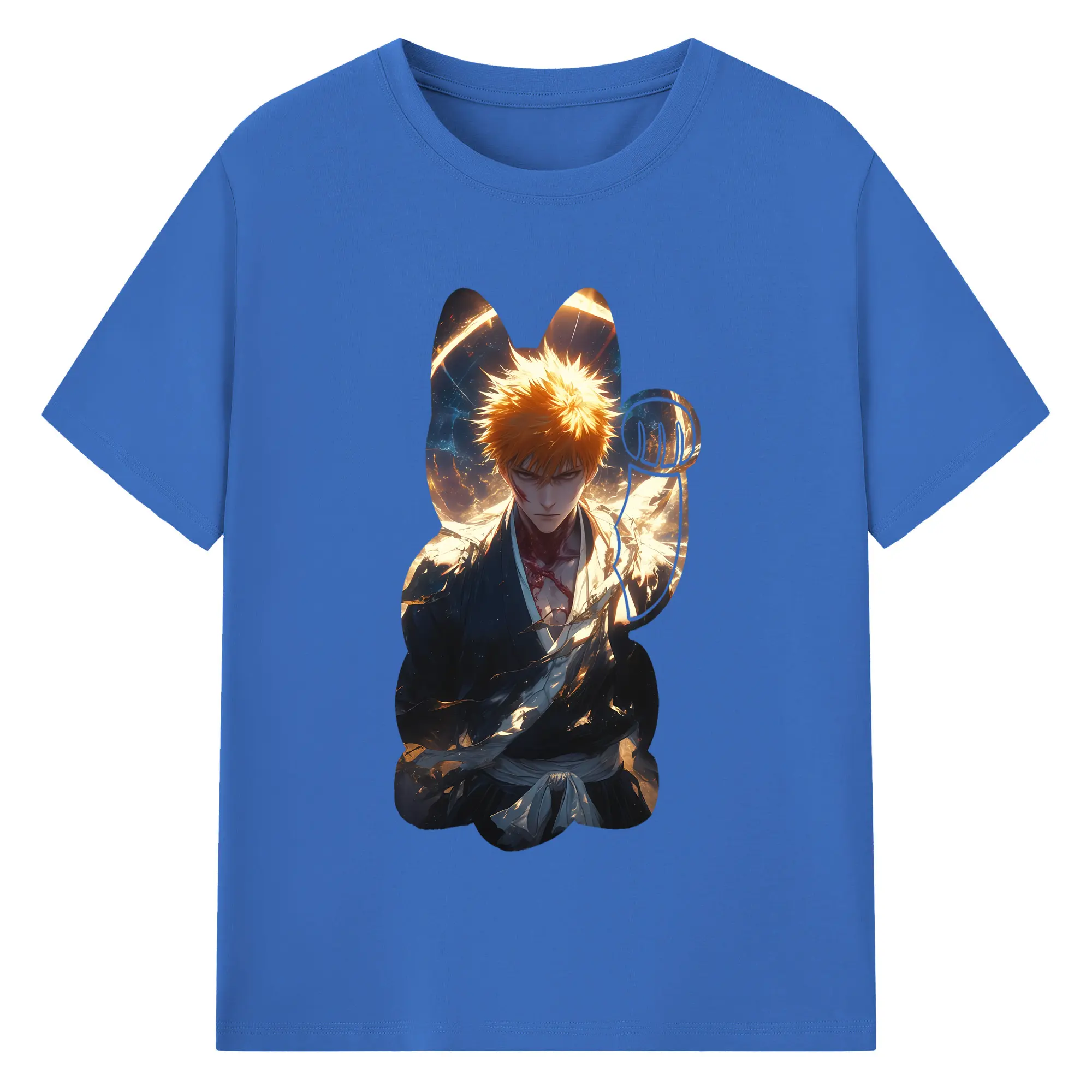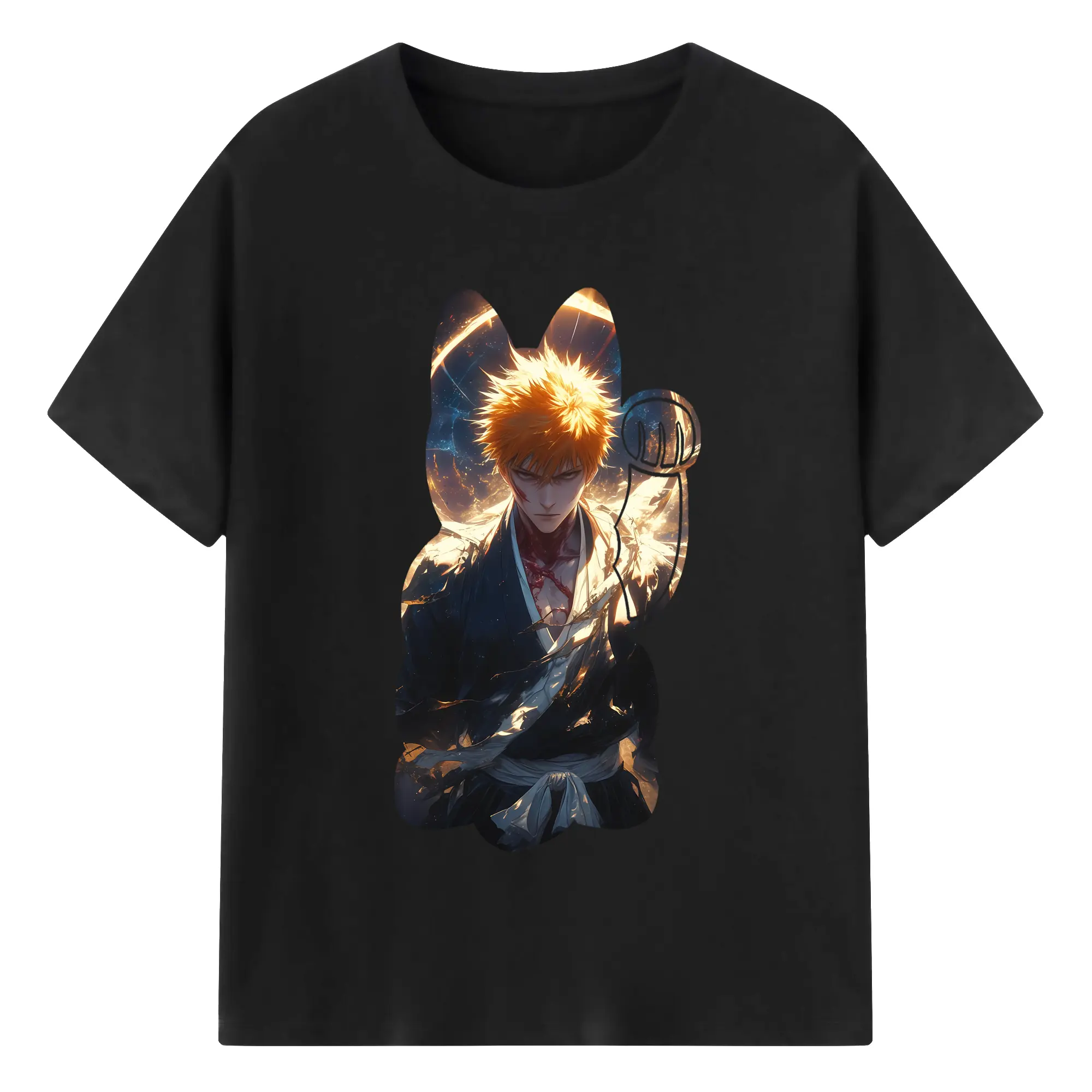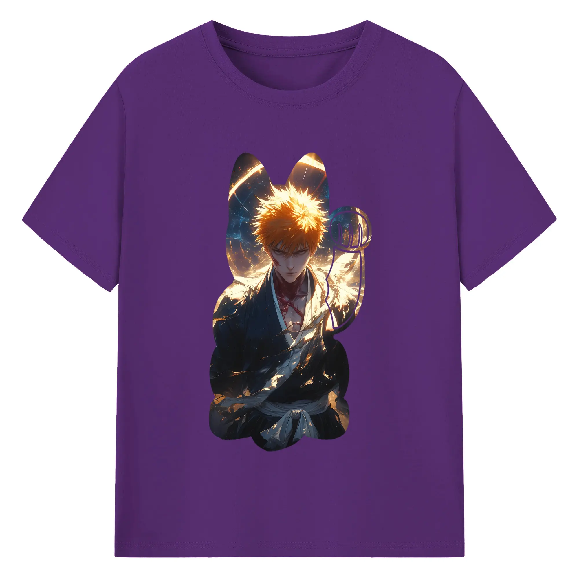 ブリーチ グッズ 黒崎 一護 - 綿100% 半袖Tシャツ ・ バックプリント ・ 快適 通気性 ・ 日常使い 散歩 スポーツ用