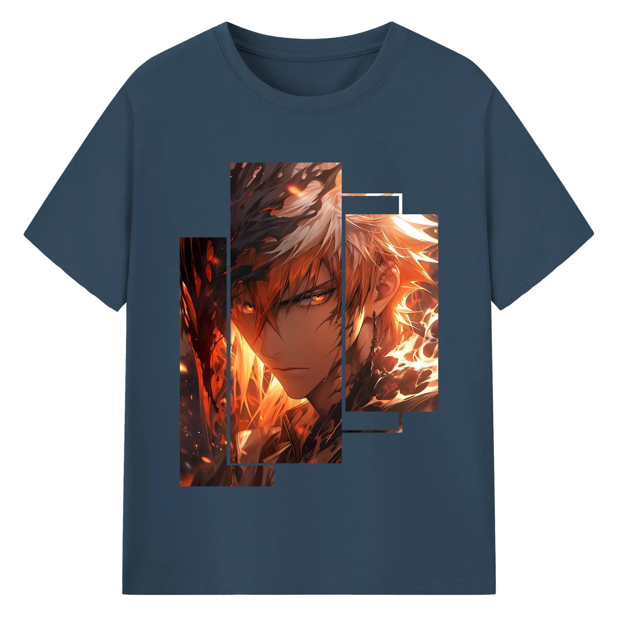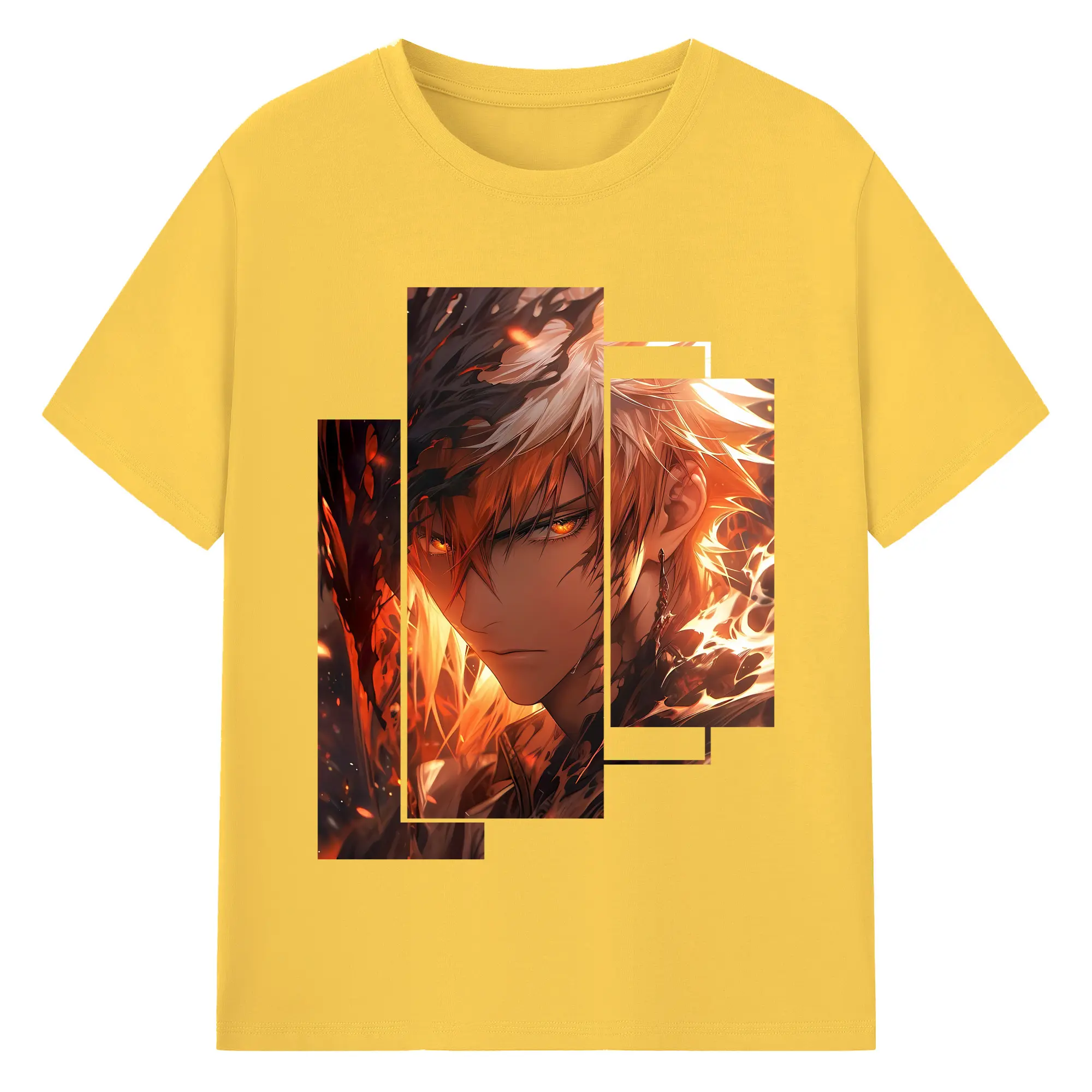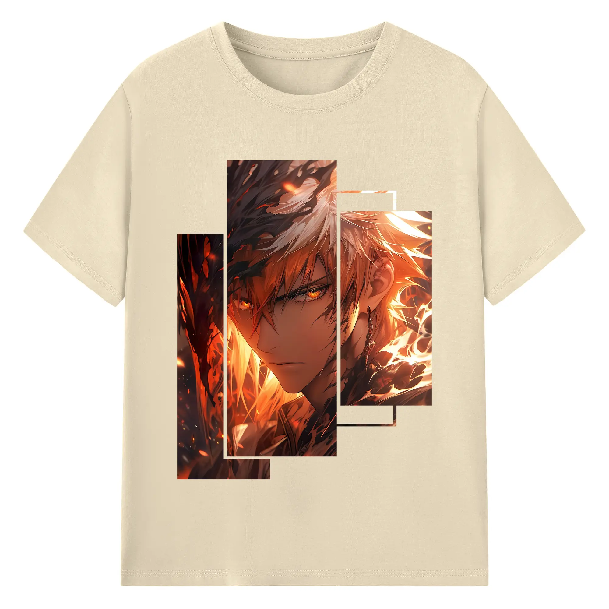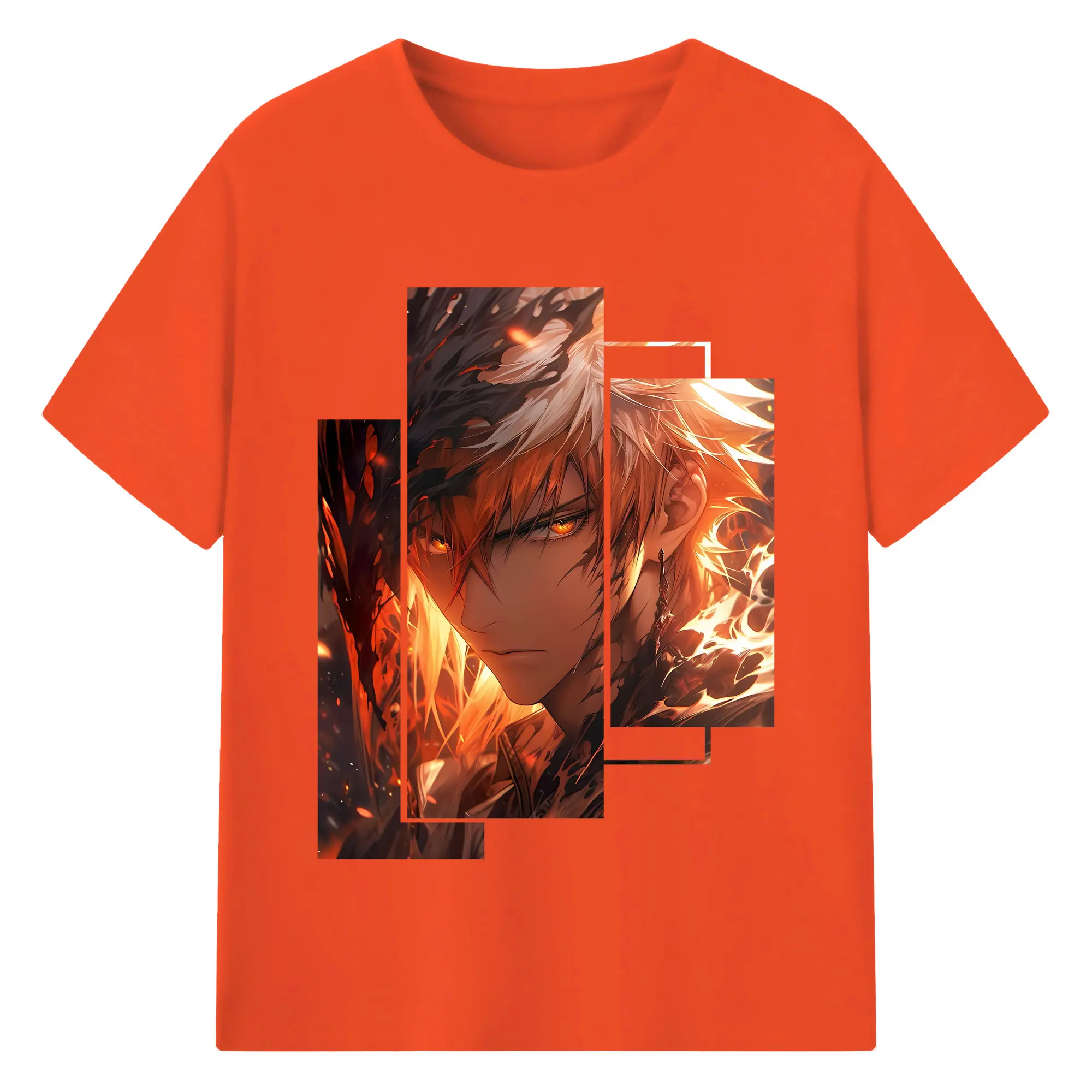 ブリーチ グッズ 黒崎 一護 - 綿100% ヴィンテージ風 半袖Tシャツ ・ フロントプリント ・ 柔らか肌触り ・ 通気性 快適 ・ スポーツ カジュアル 外出用