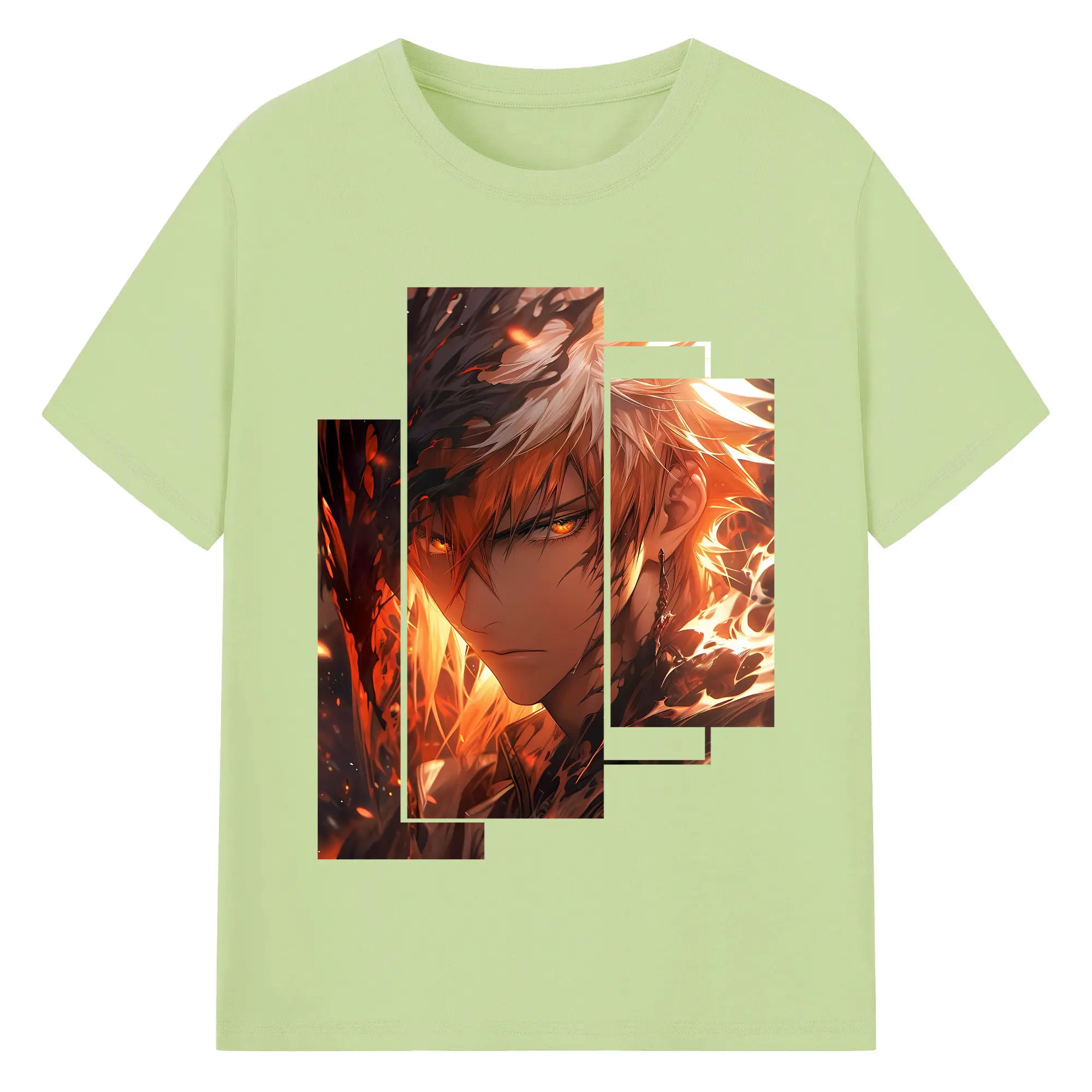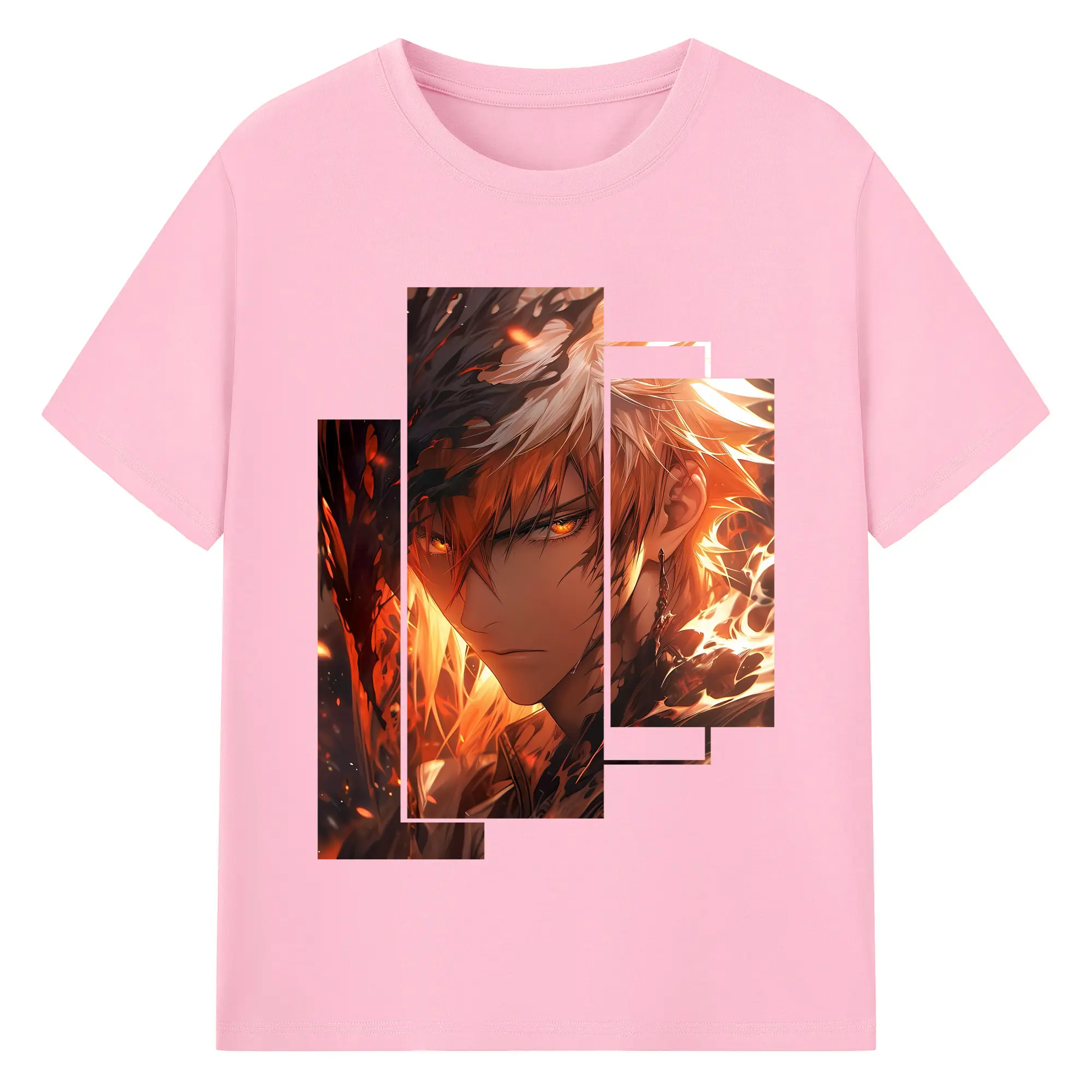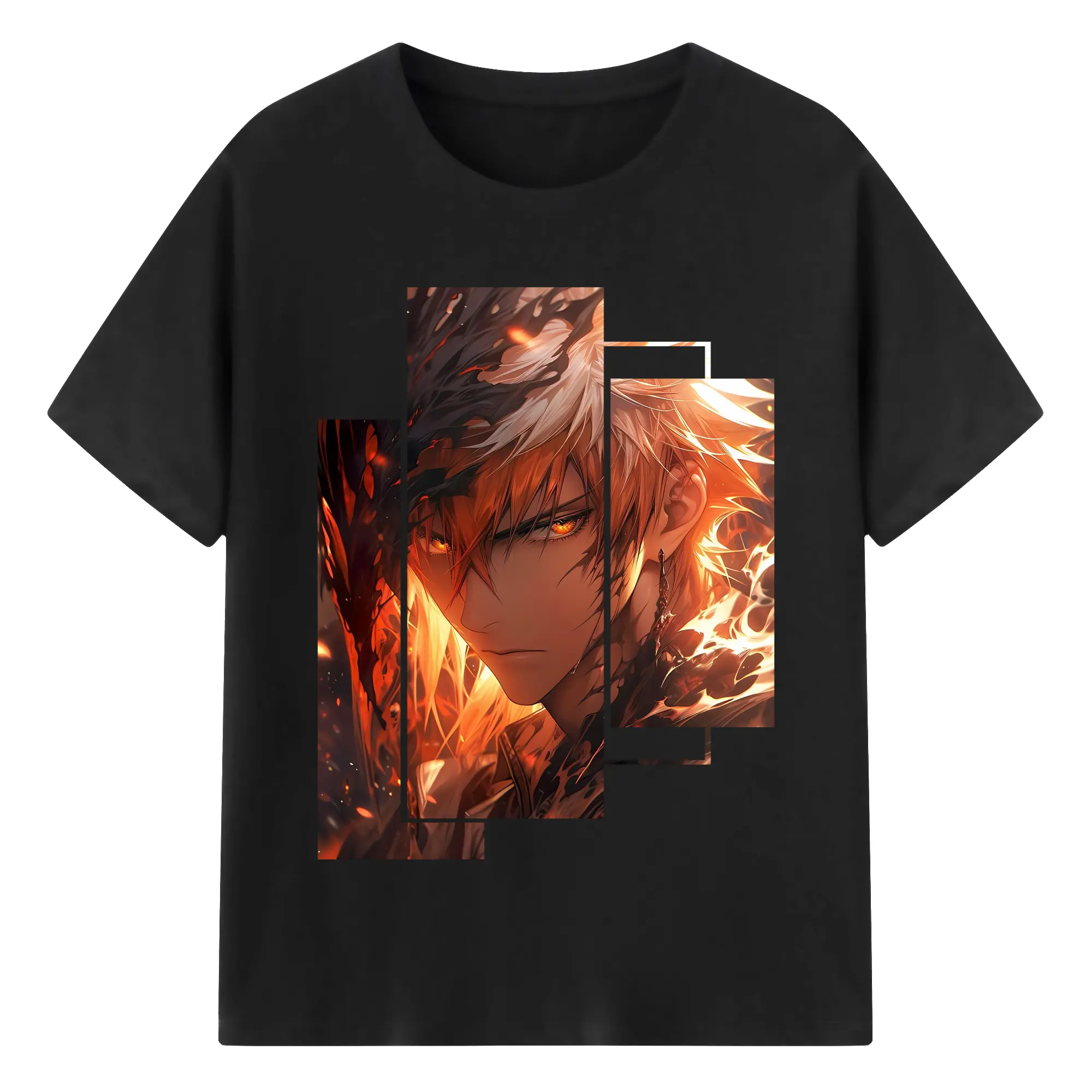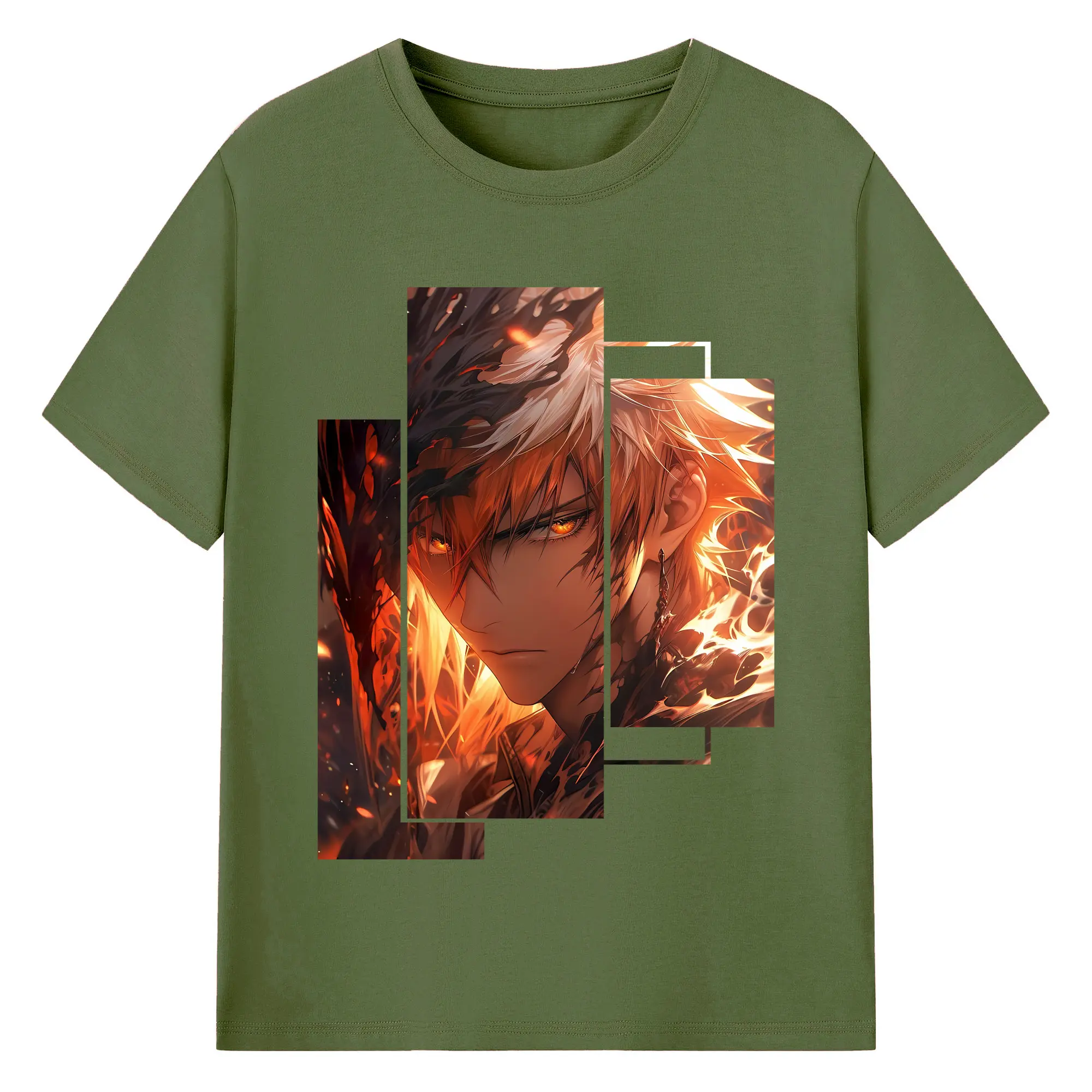 ブリーチ グッズ 黒崎 一護 - 綿100% ヴィンテージ風 半袖Tシャツ ・ フロントプリント ・ 柔らか肌触り ・ 通気性 快適 ・ スポーツ カジュアル 外出用