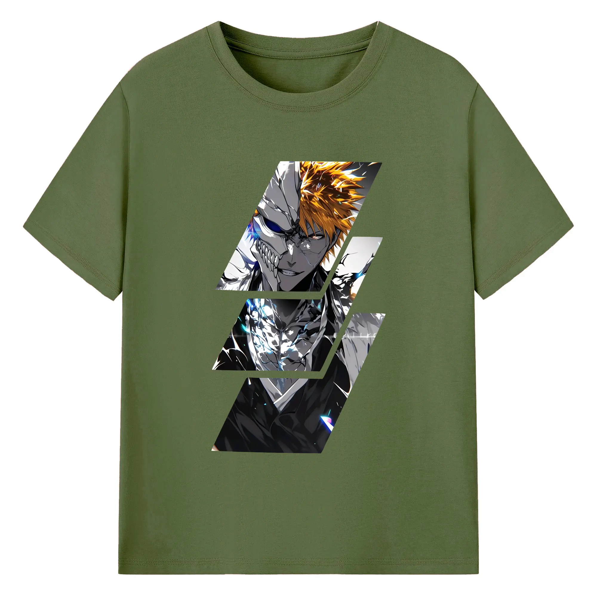 ブリーチ グッズ 黒崎 一護 - 綿100% ヴィンテージ風 半袖Tシャツ ・ フロントプリント ・ 柔らか肌触り ・ 通気性 快適 ・ スポーツ カジュアル 外出用