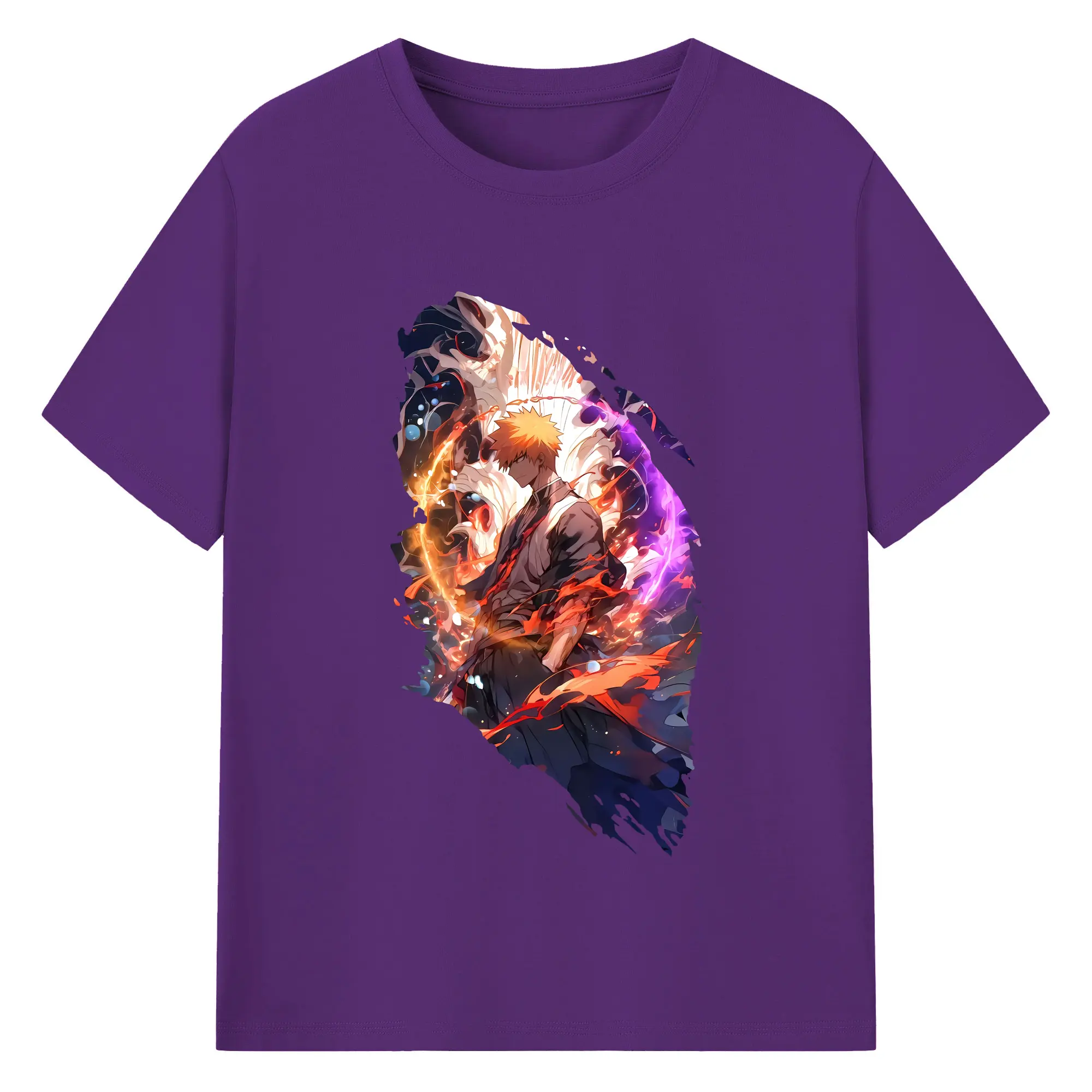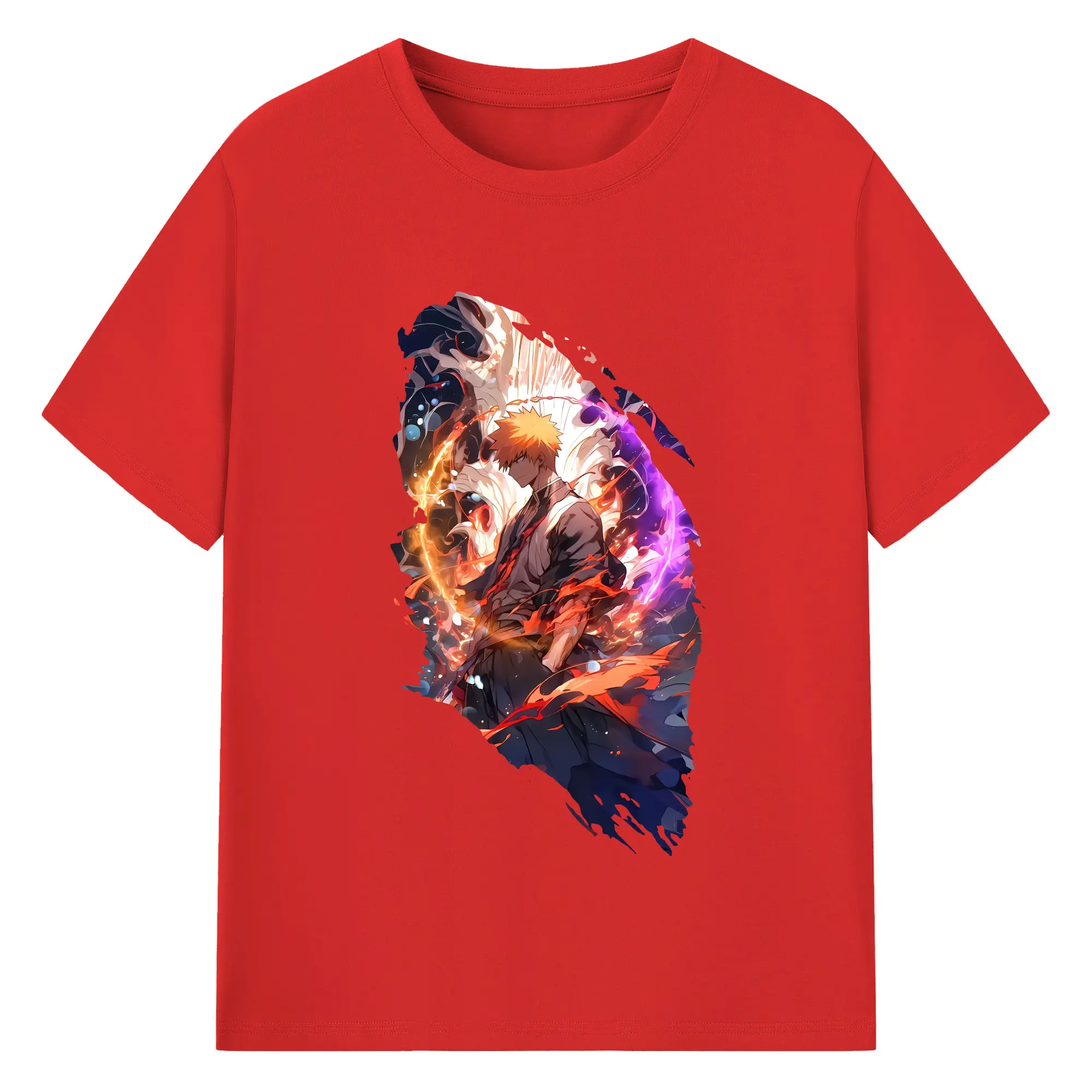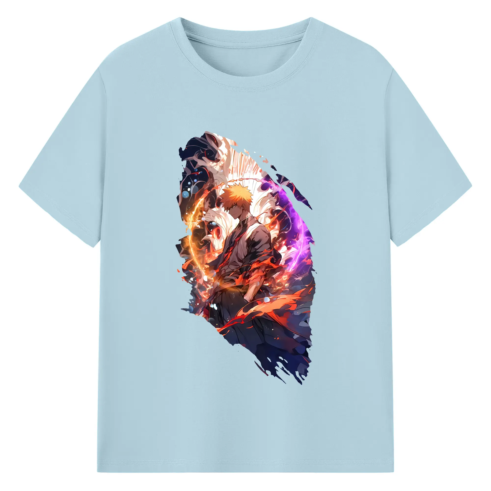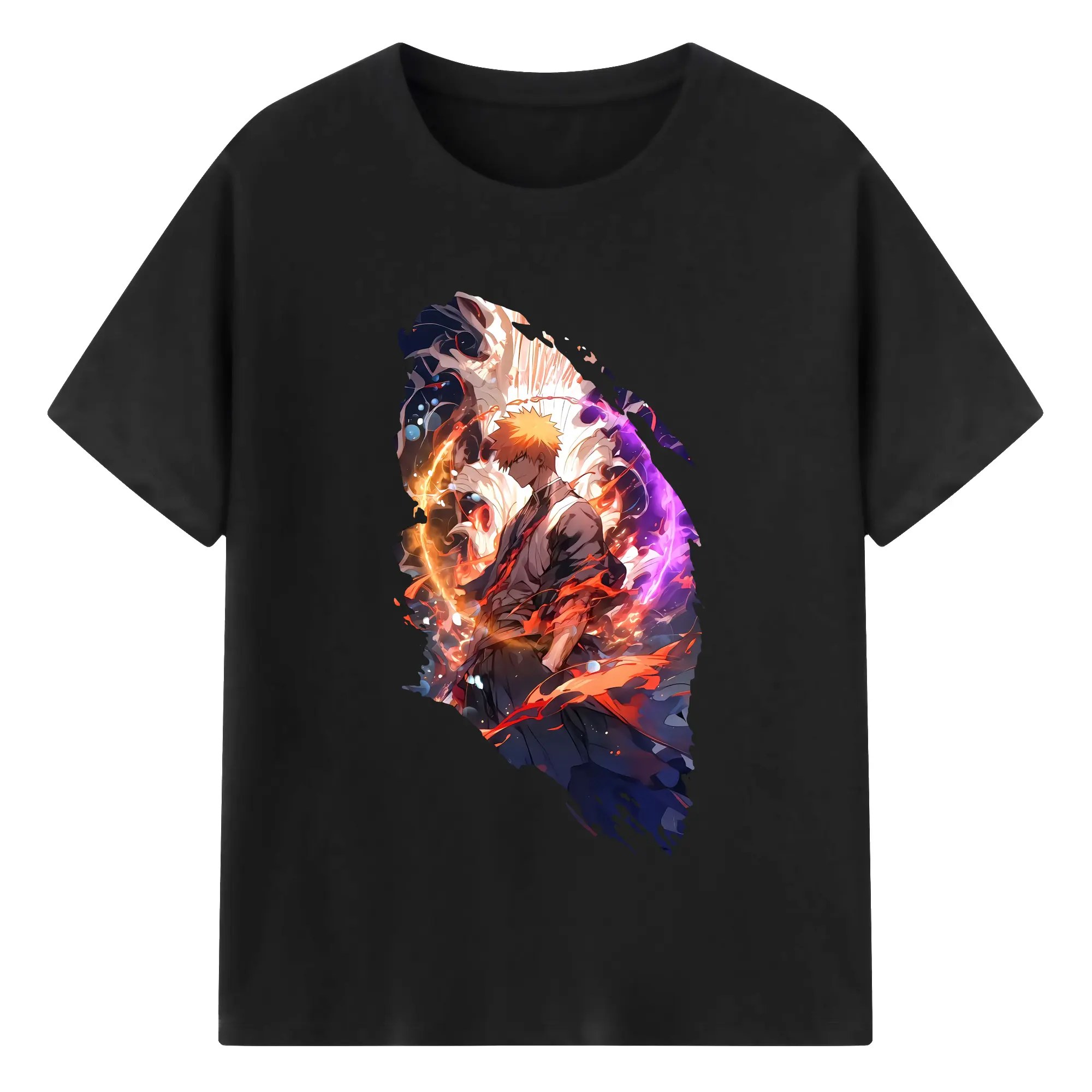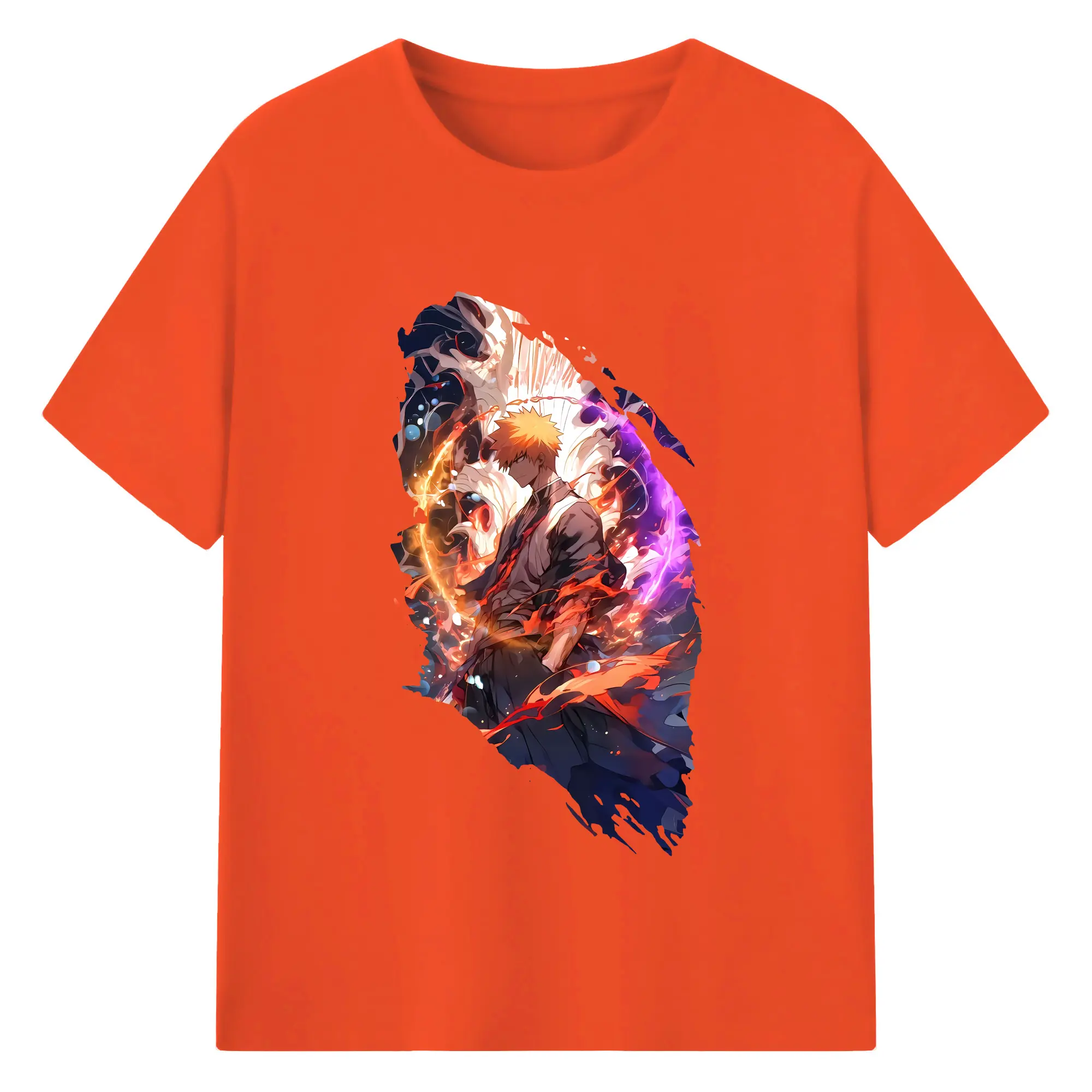 ブリーチ グッズ 黒崎 一護 - 綿100% 半袖Tシャツ ・ バックプリント ・ 快適 通気性 ・ 日常使い 散歩 スポーツ用