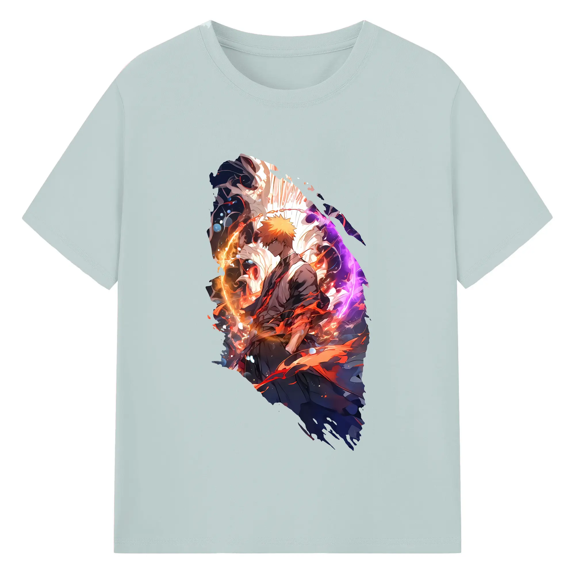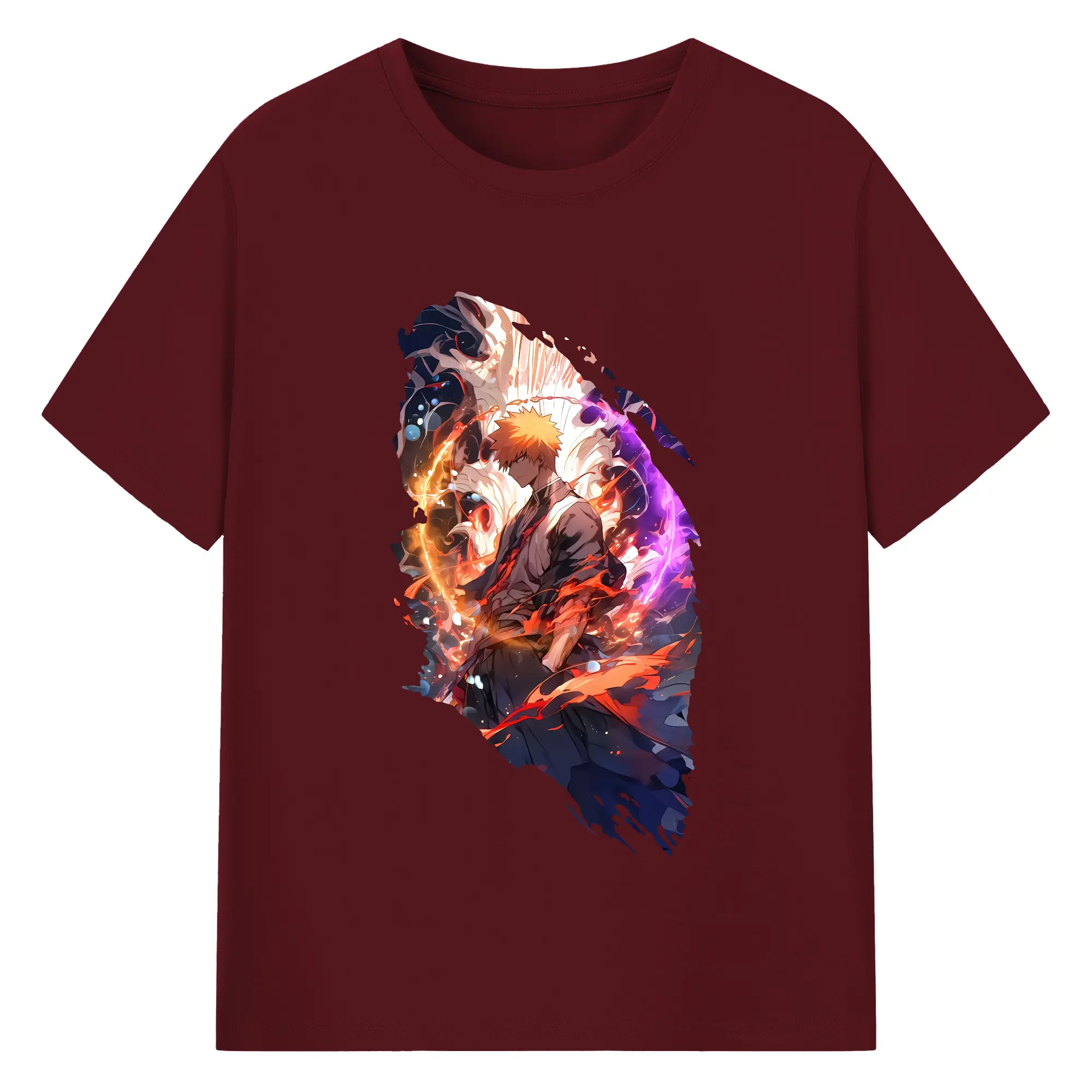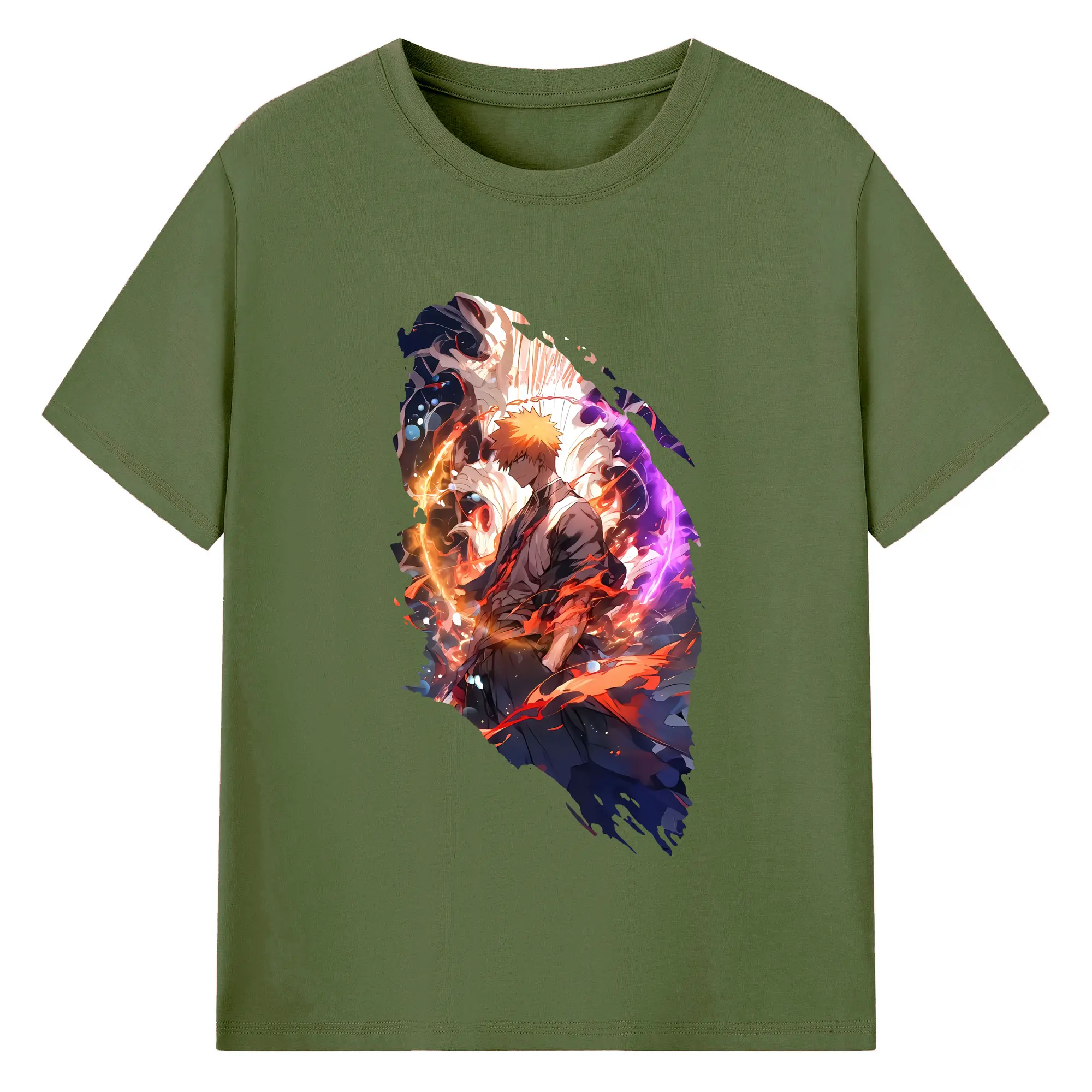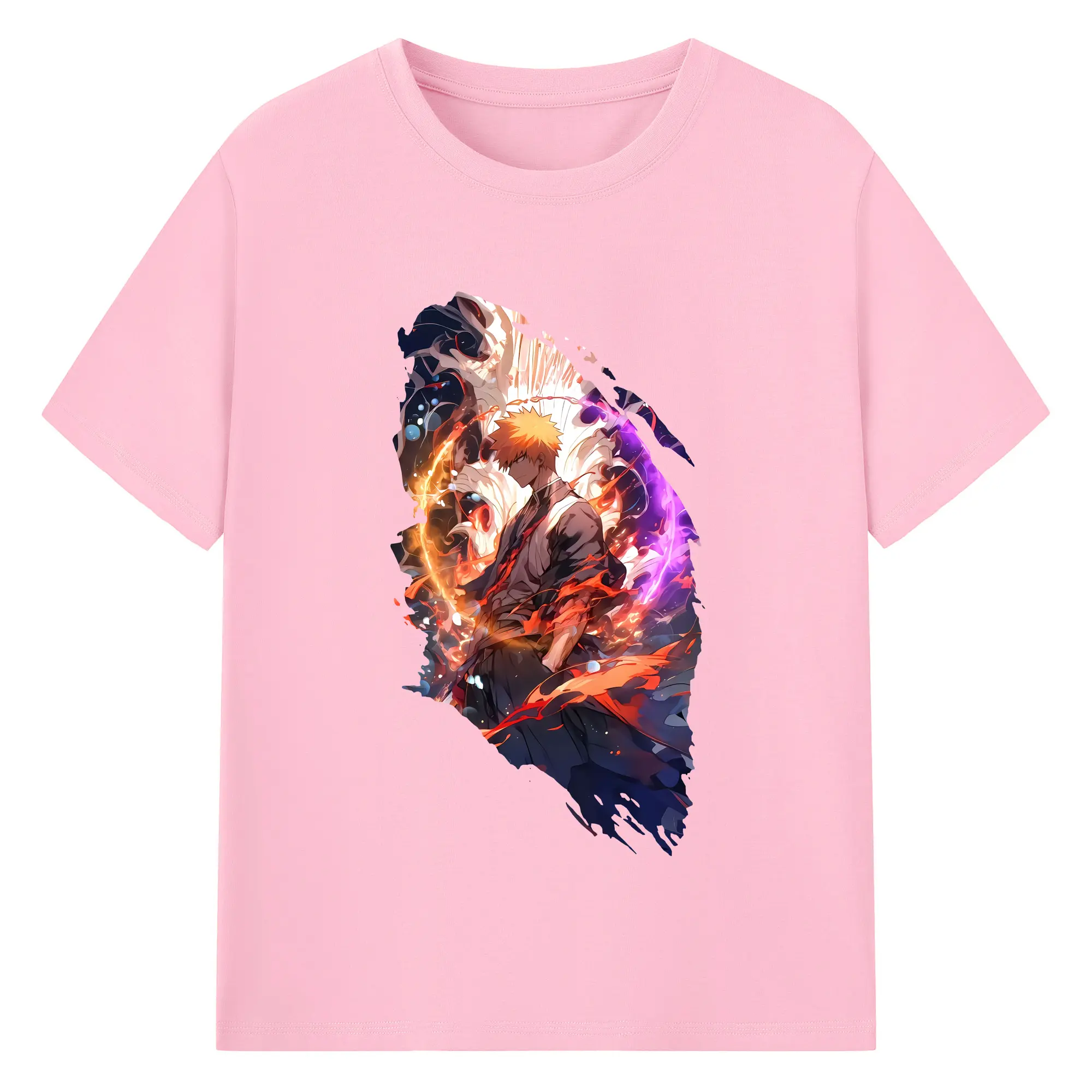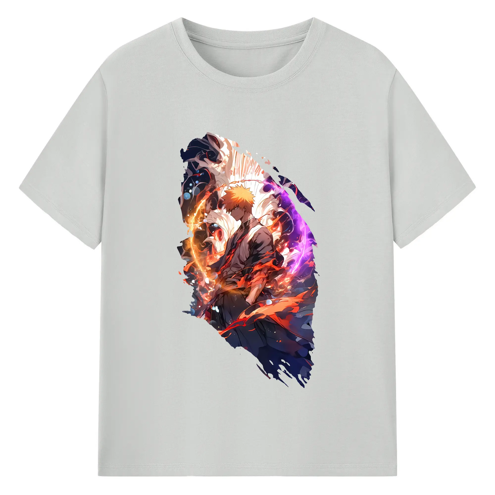 ブリーチ グッズ 黒崎 一護 - 綿100% 半袖Tシャツ ・ バックプリント ・ 快適 通気性 ・ 日常使い 散歩 スポーツ用