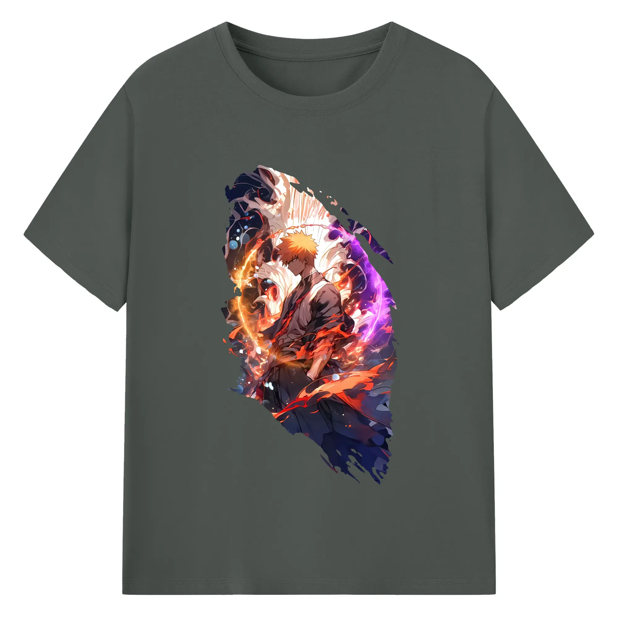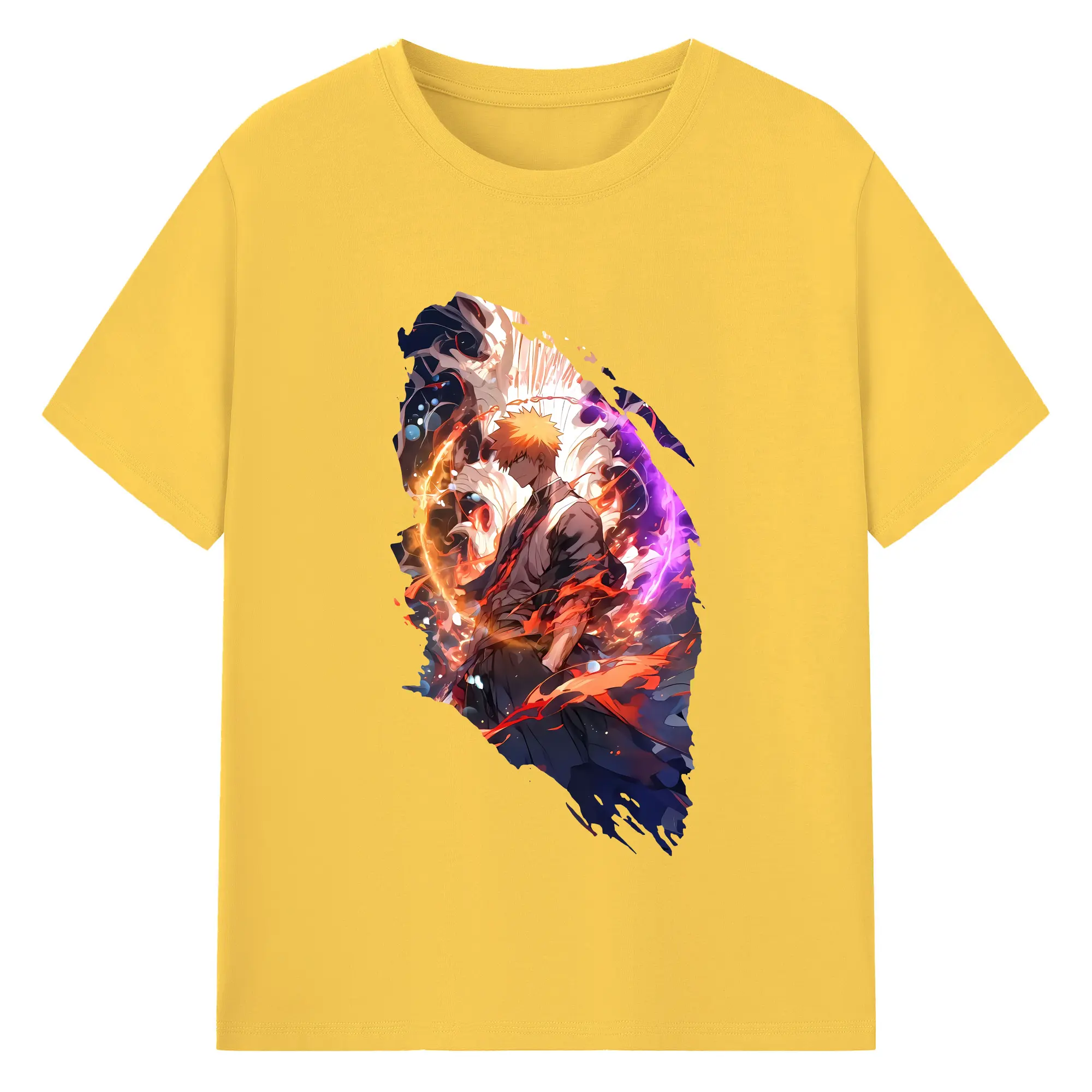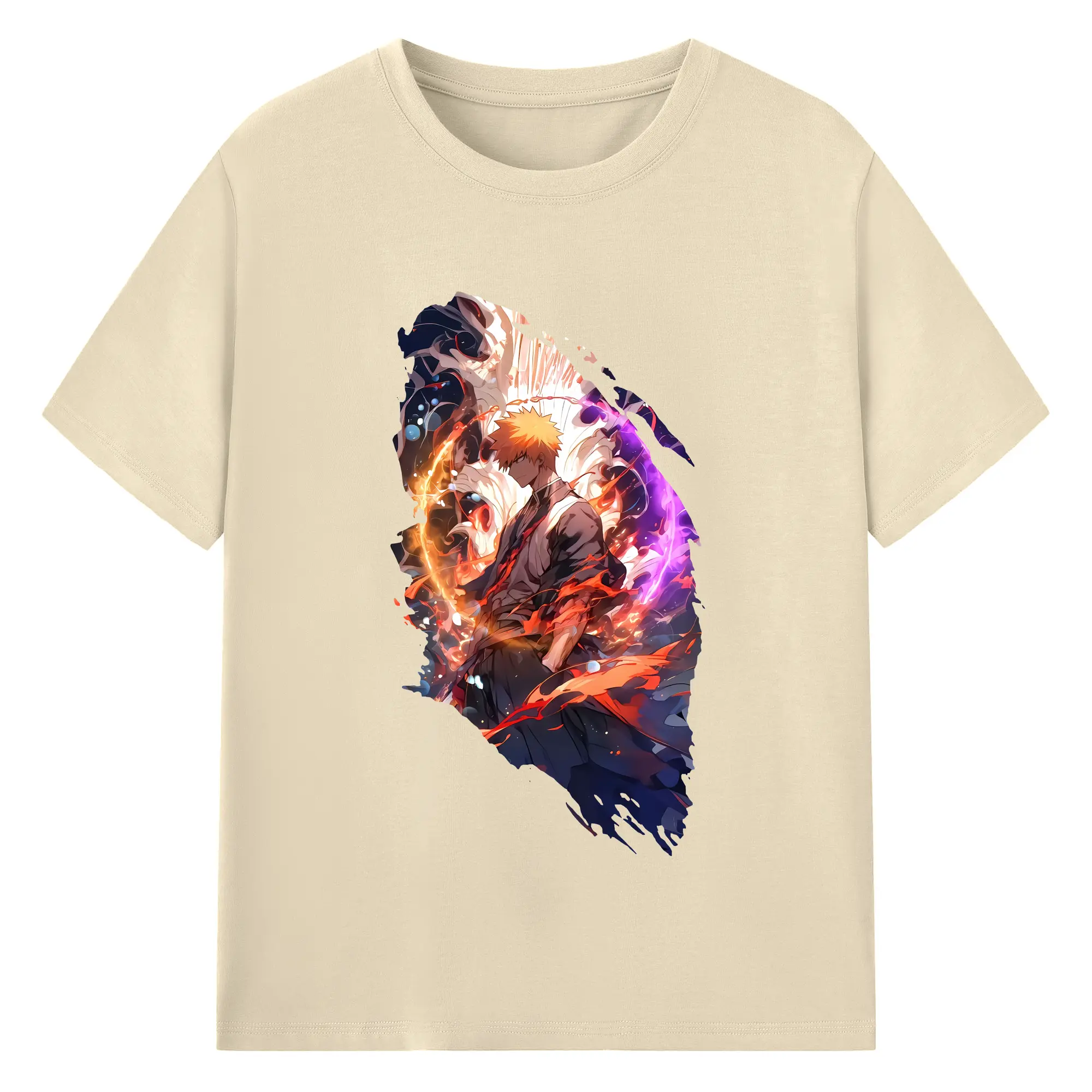 ブリーチ グッズ 黒崎 一護 - 綿100% ヴィンテージ風 半袖Tシャツ ・ フロントプリント ・ 柔らか肌触り ・ 通気性 快適 ・ スポーツ カジュアル 外出用