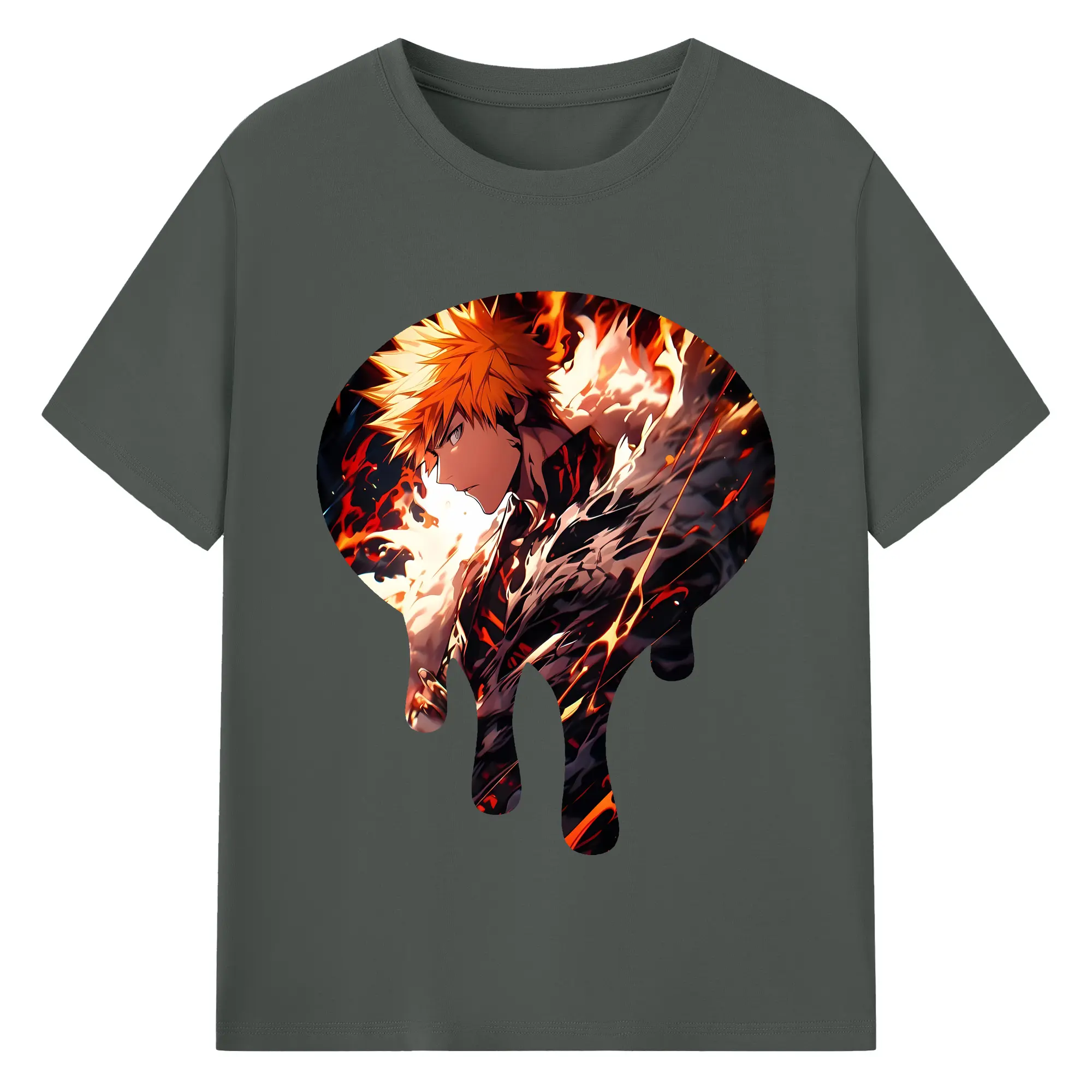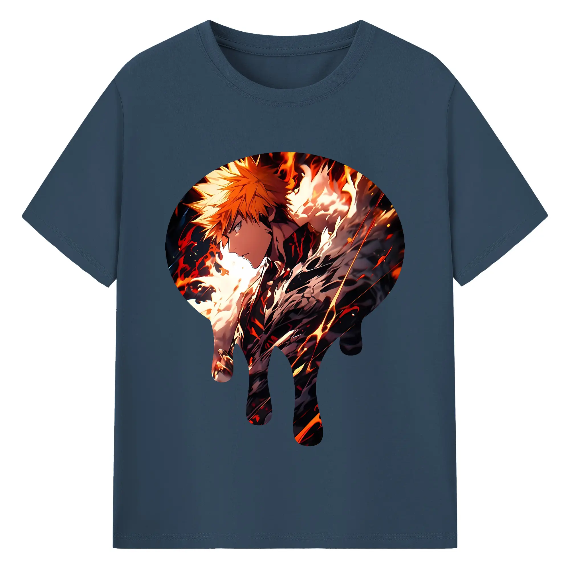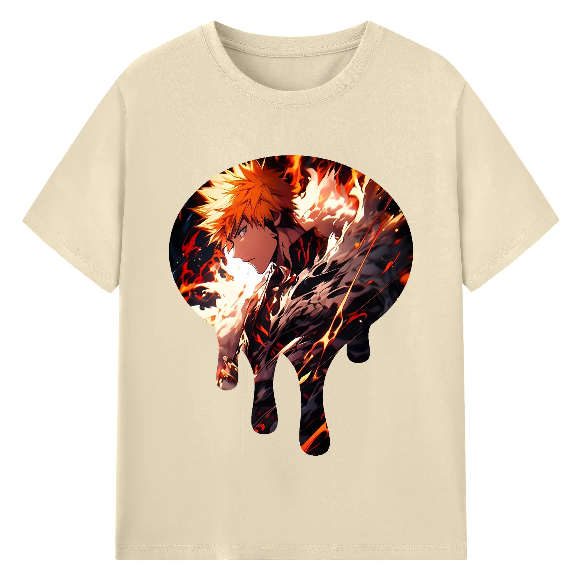 ブリーチ グッズ 黒崎 一護 - 綿100% ヴィンテージ風 半袖Tシャツ ・ フロントプリント ・ 柔らか肌触り ・ 通気性 快適 ・ スポーツ カジュアル 外出用