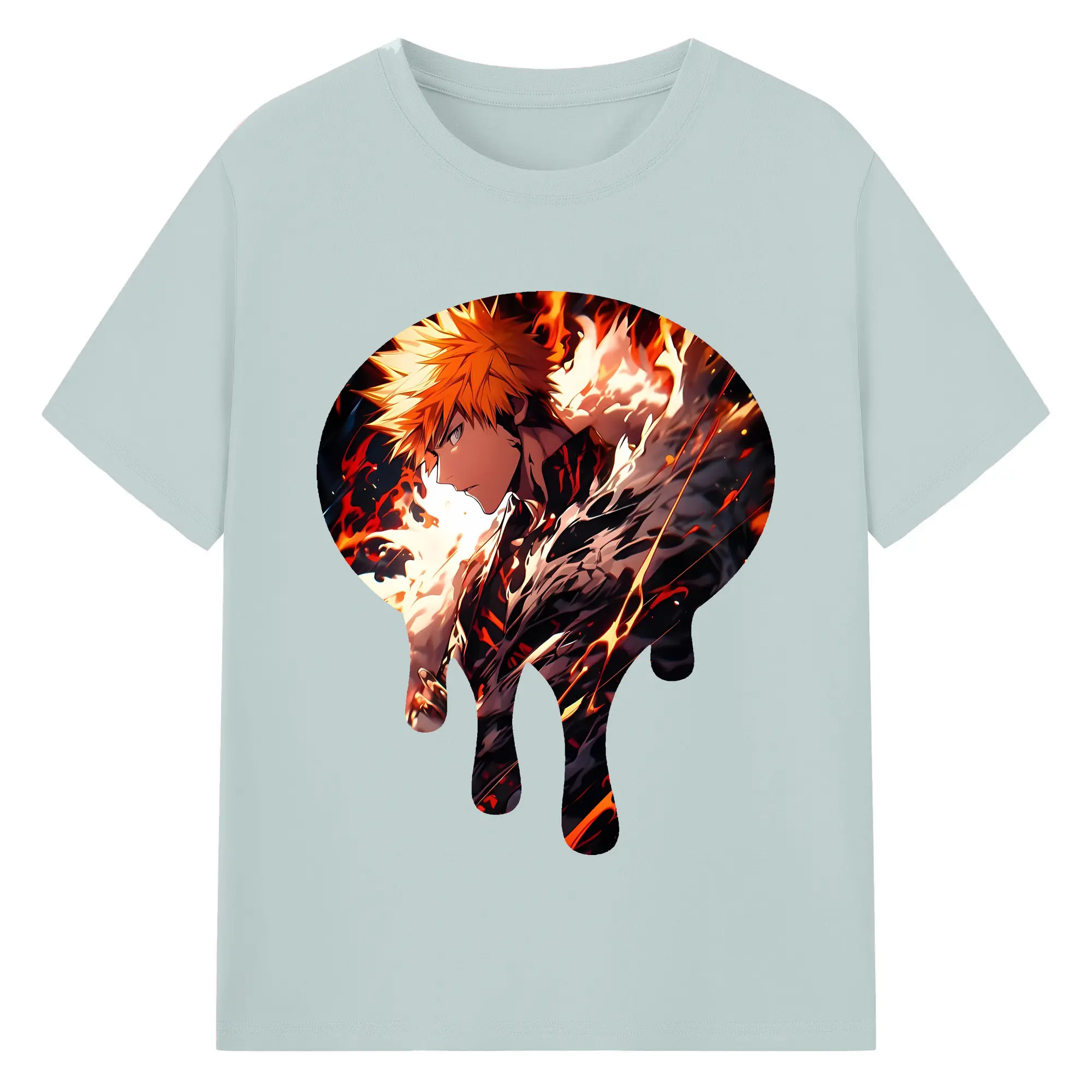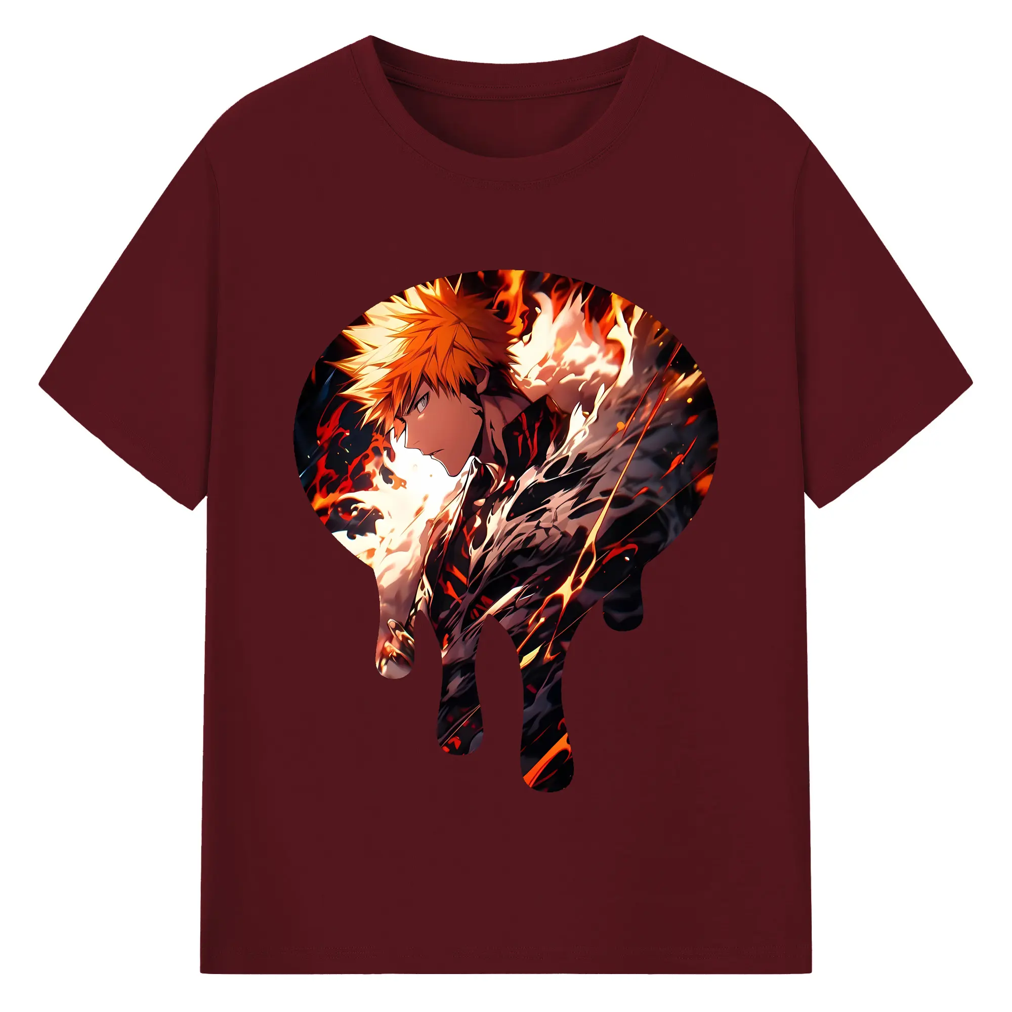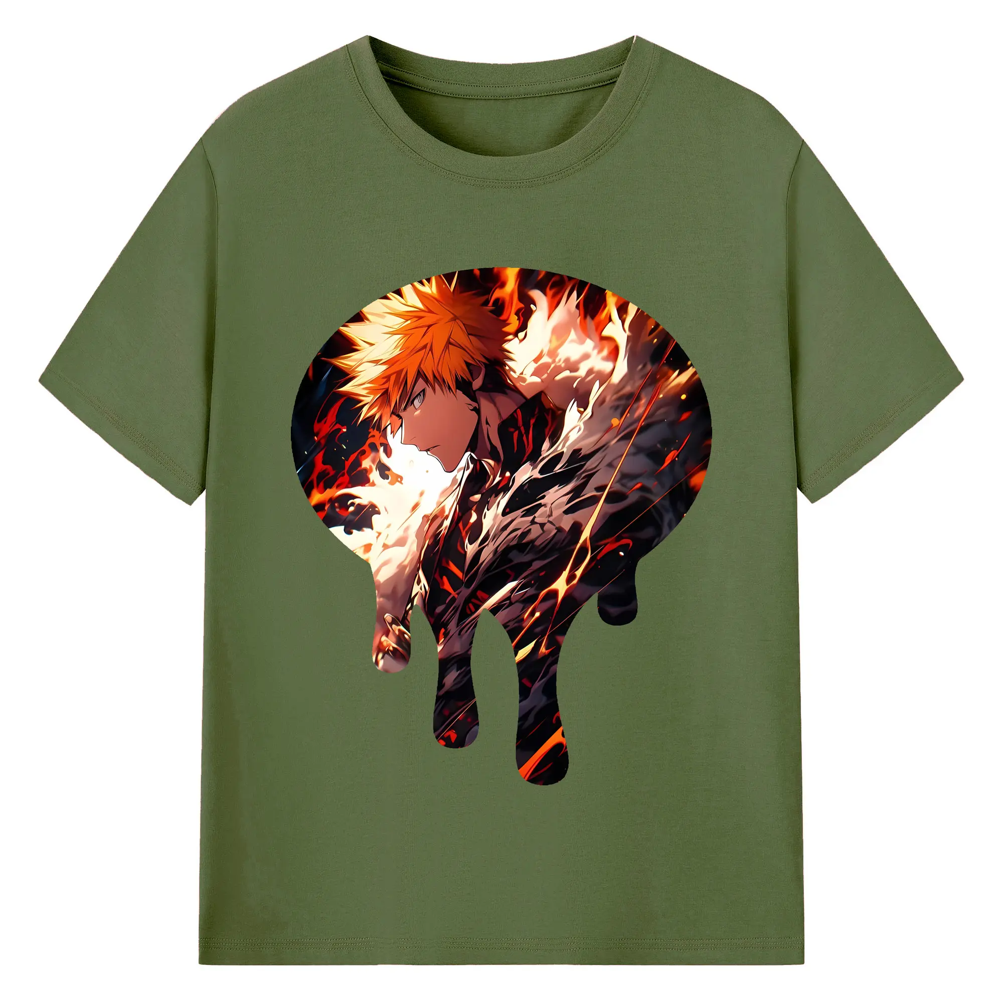 ブリーチ グッズ 黒崎 一護 - 綿100% ヴィンテージ風 半袖Tシャツ ・ フロントプリント ・ 柔らか肌触り ・ 通気性 快適 ・ スポーツ カジュアル 外出用