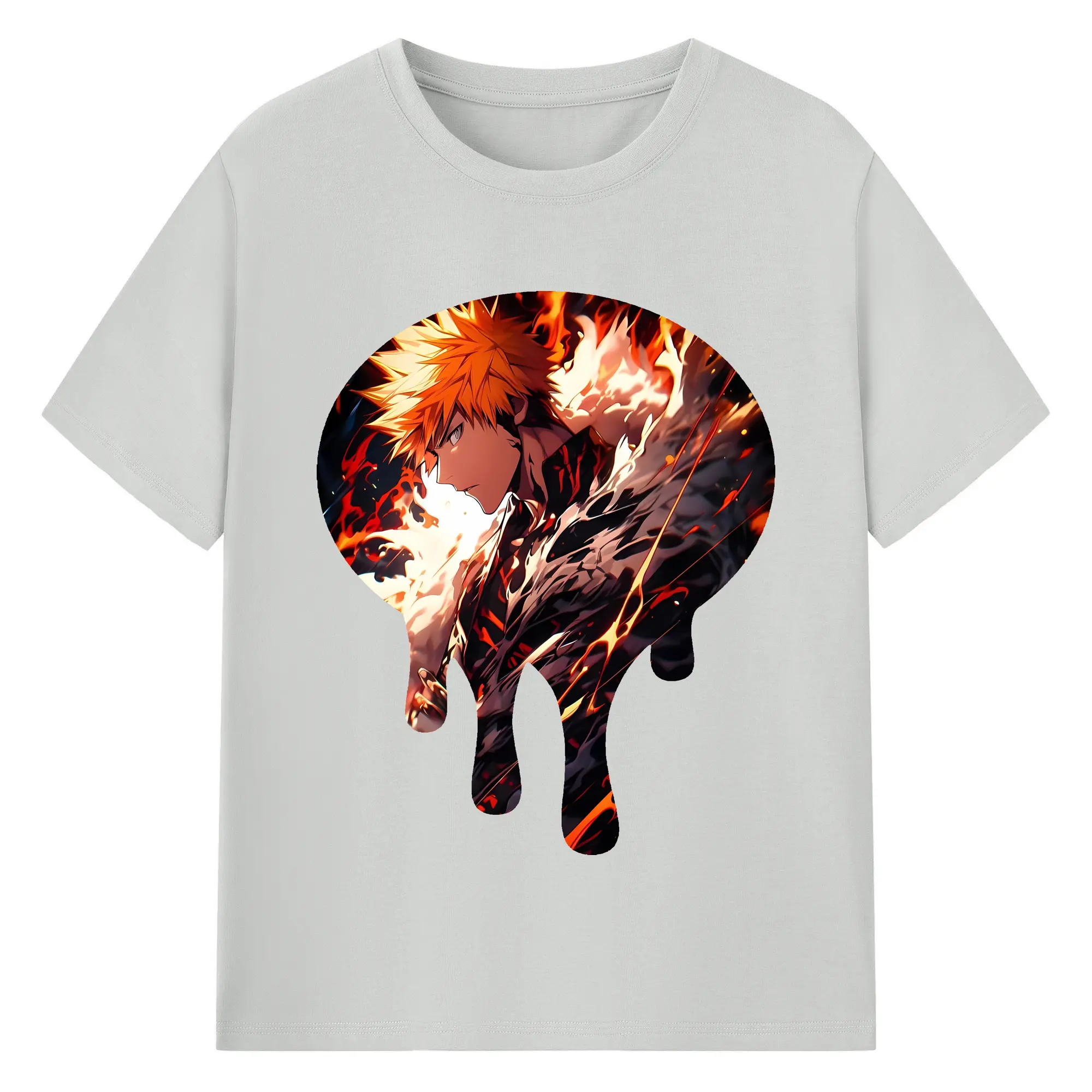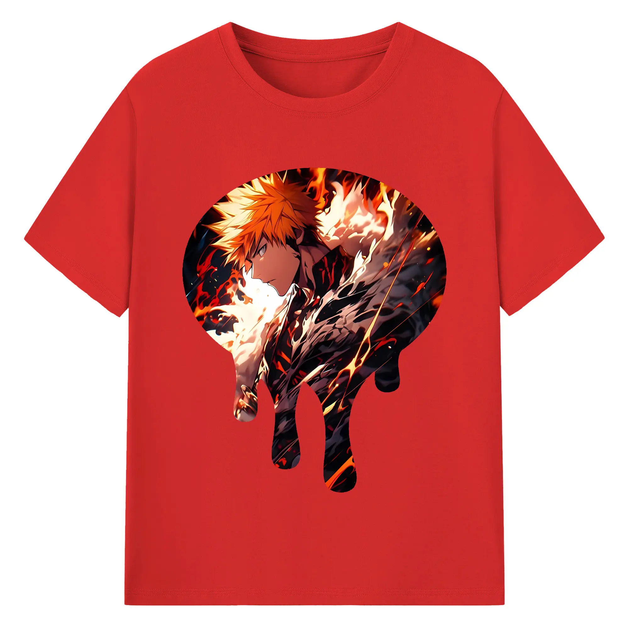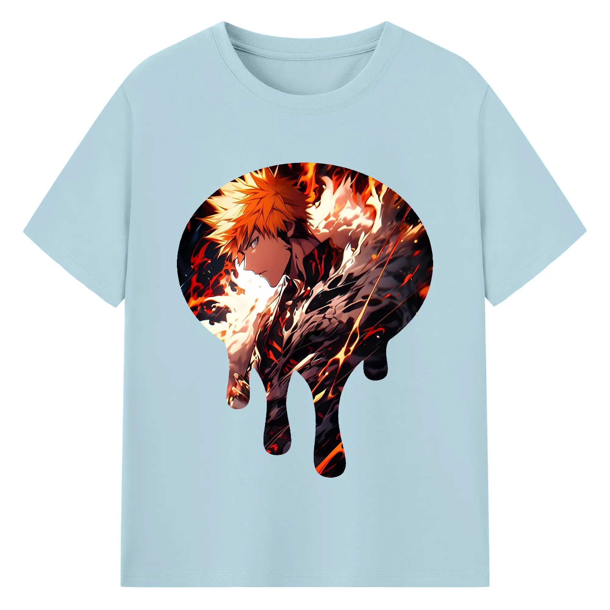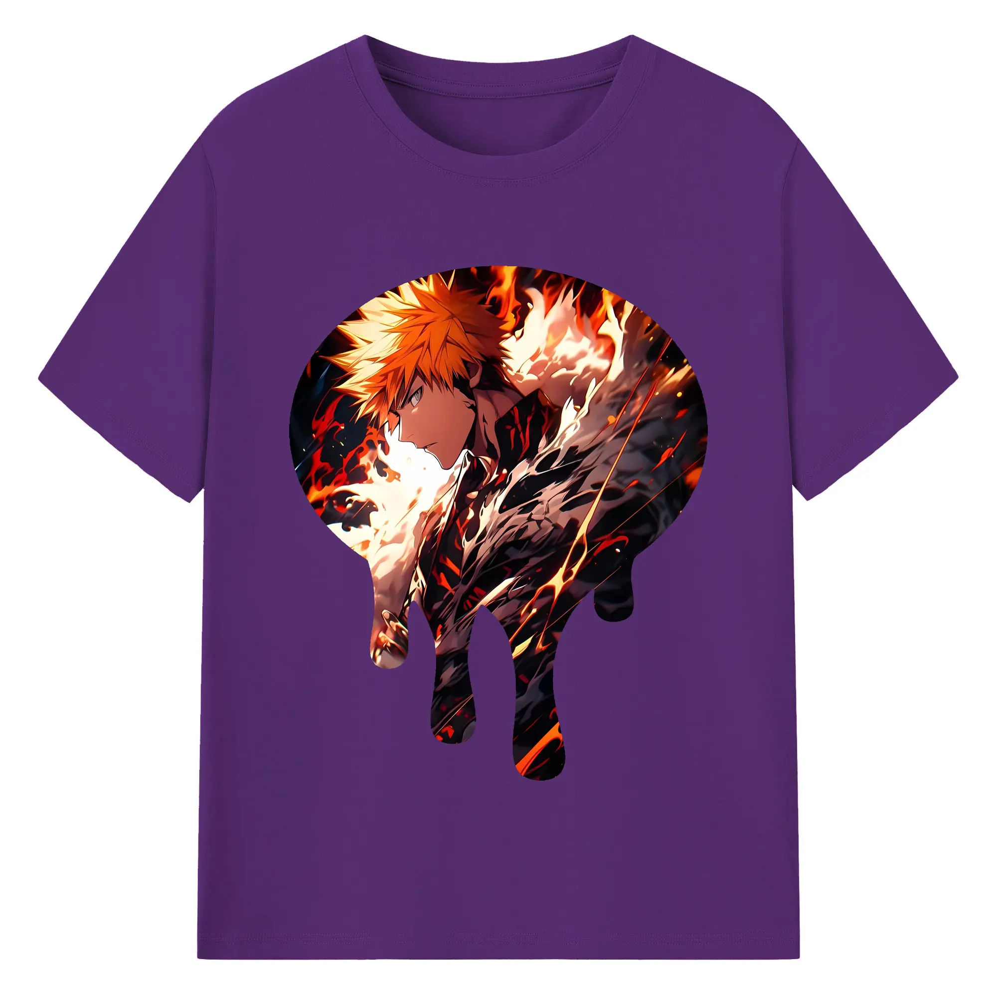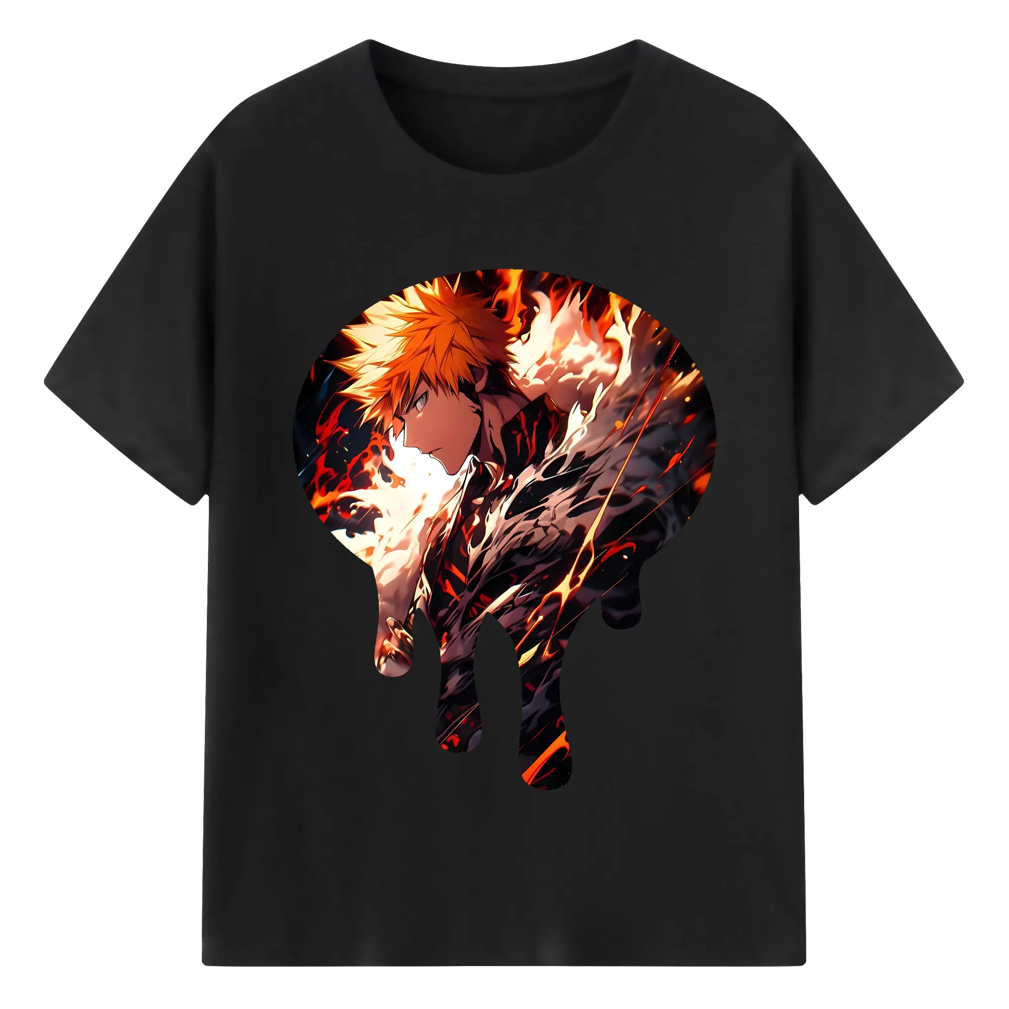 ブリーチ グッズ 黒崎 一護 - 綿100% 半袖Tシャツ ・ バックプリント ・ 快適 通気性 ・ 日常使い 散歩 スポーツ用