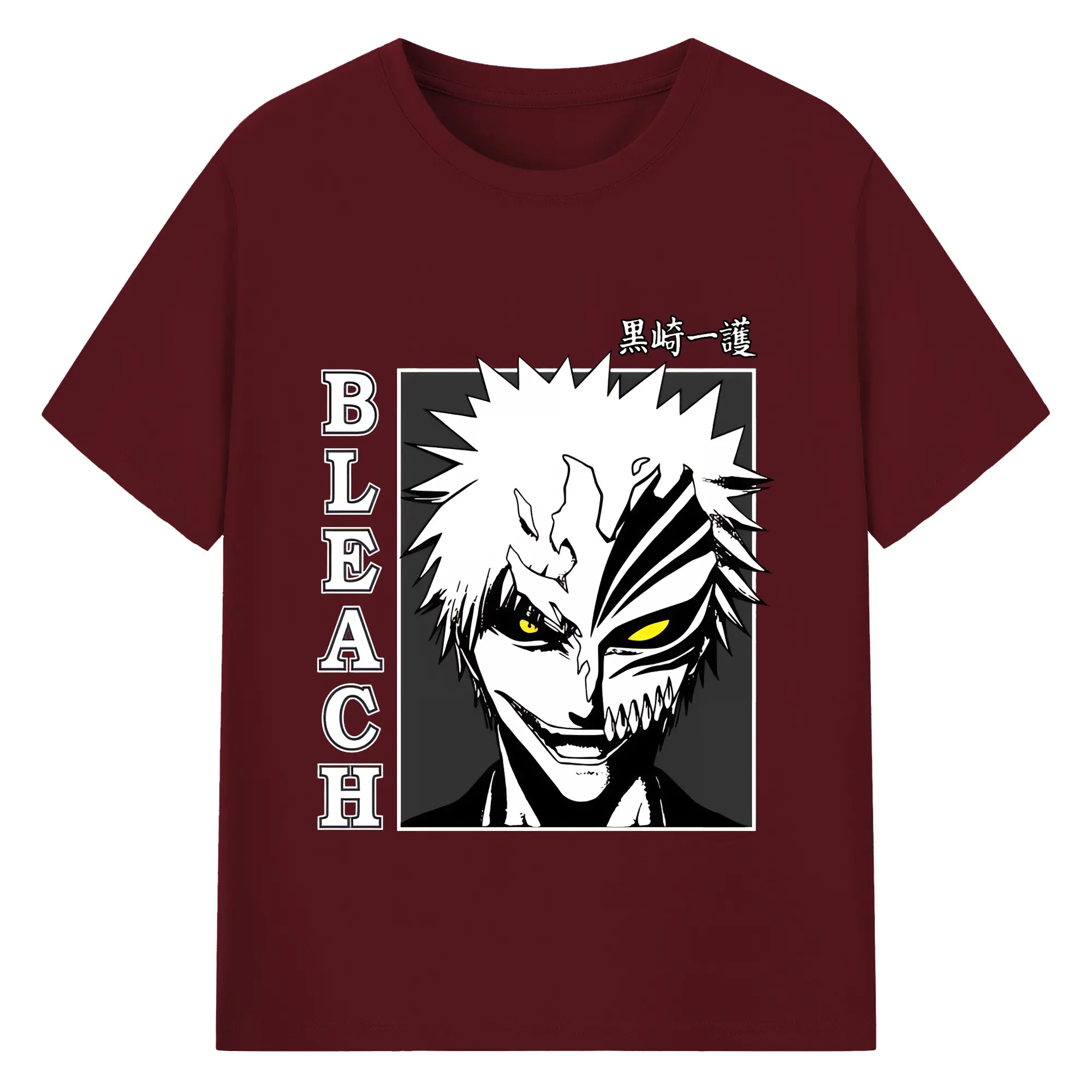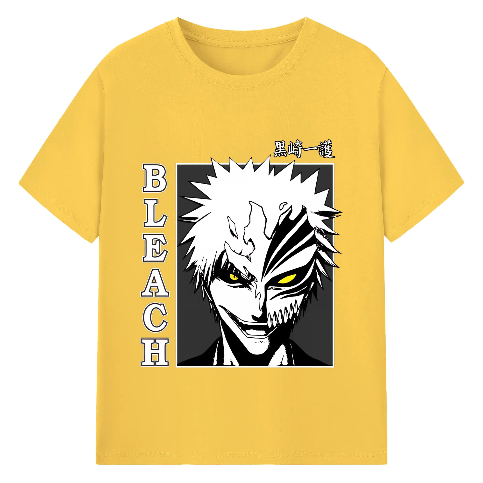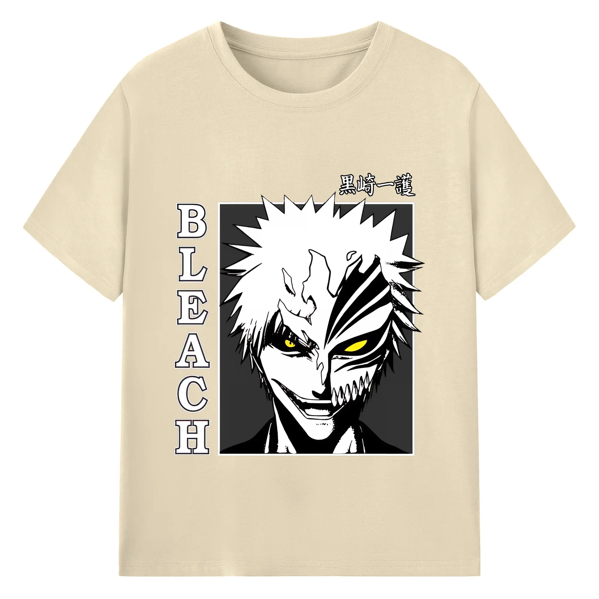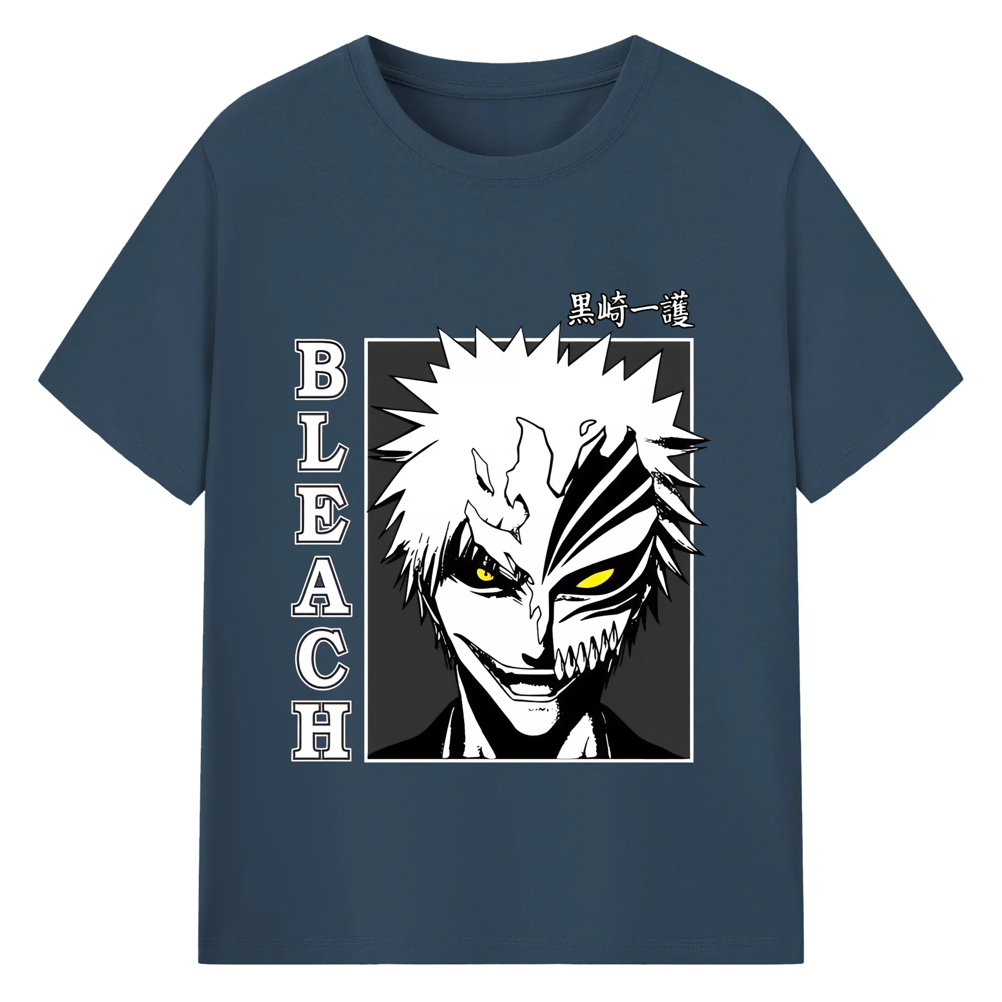 ブリーチ グッズ 黒崎 一護 - 綿100% ヴィンテージ風 半袖Tシャツ ・ フロントプリント ・ 柔らか肌触り ・ 通気性 快適 ・ スポーツ カジュアル 外出用