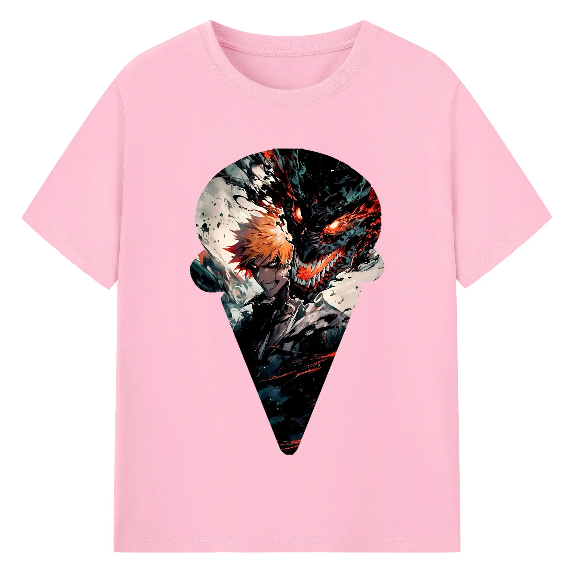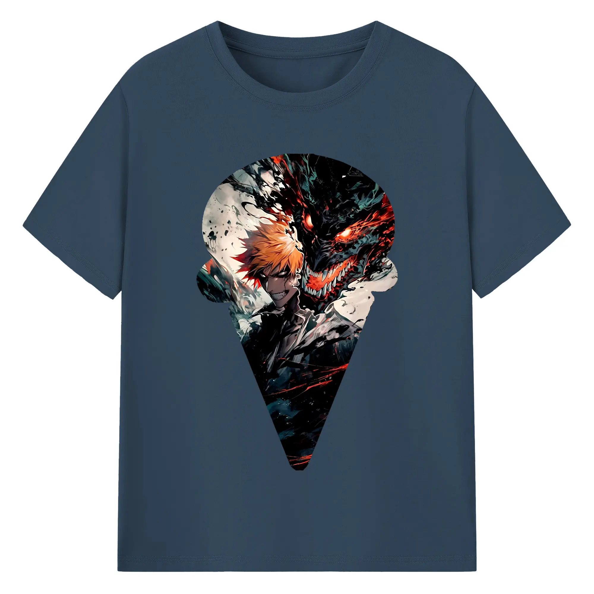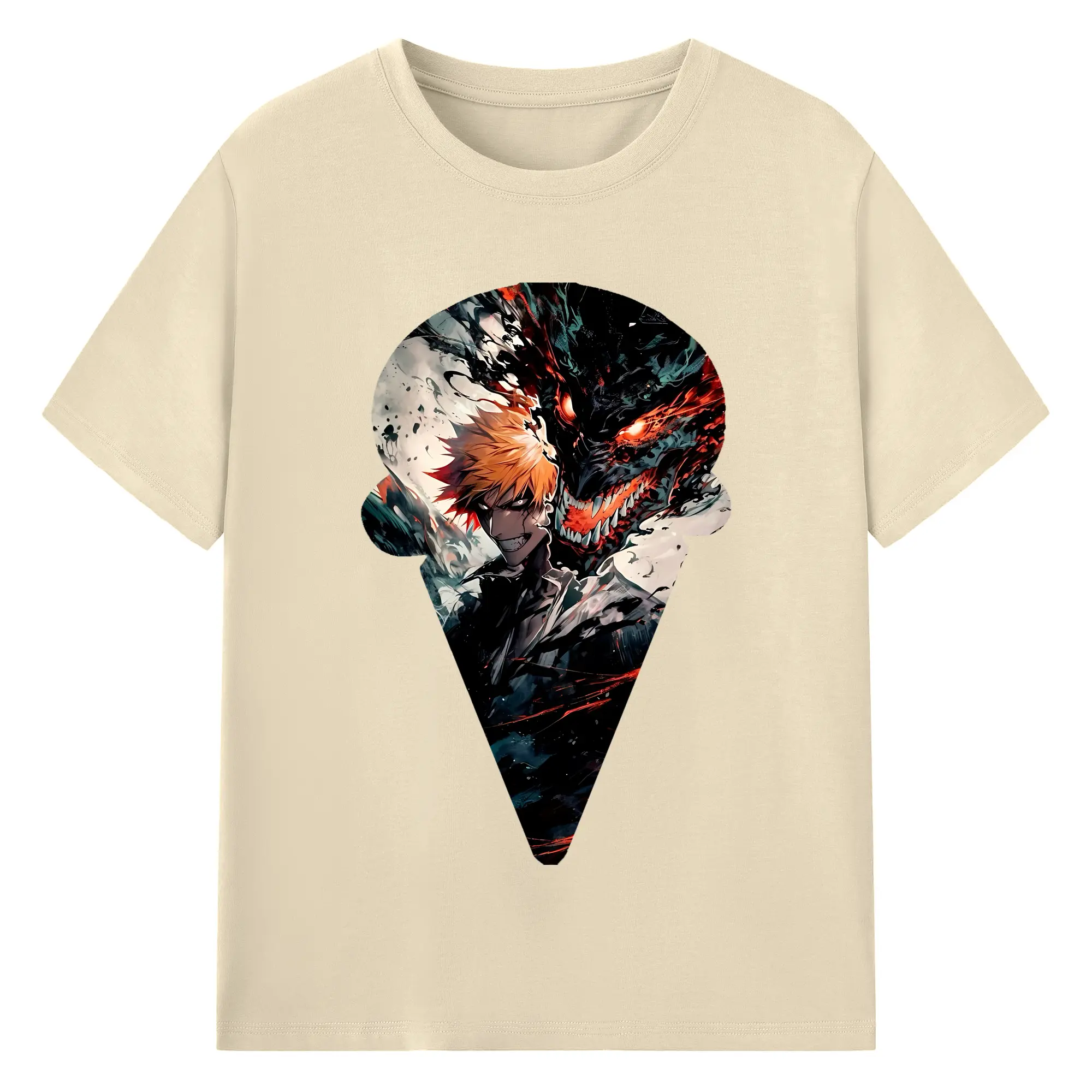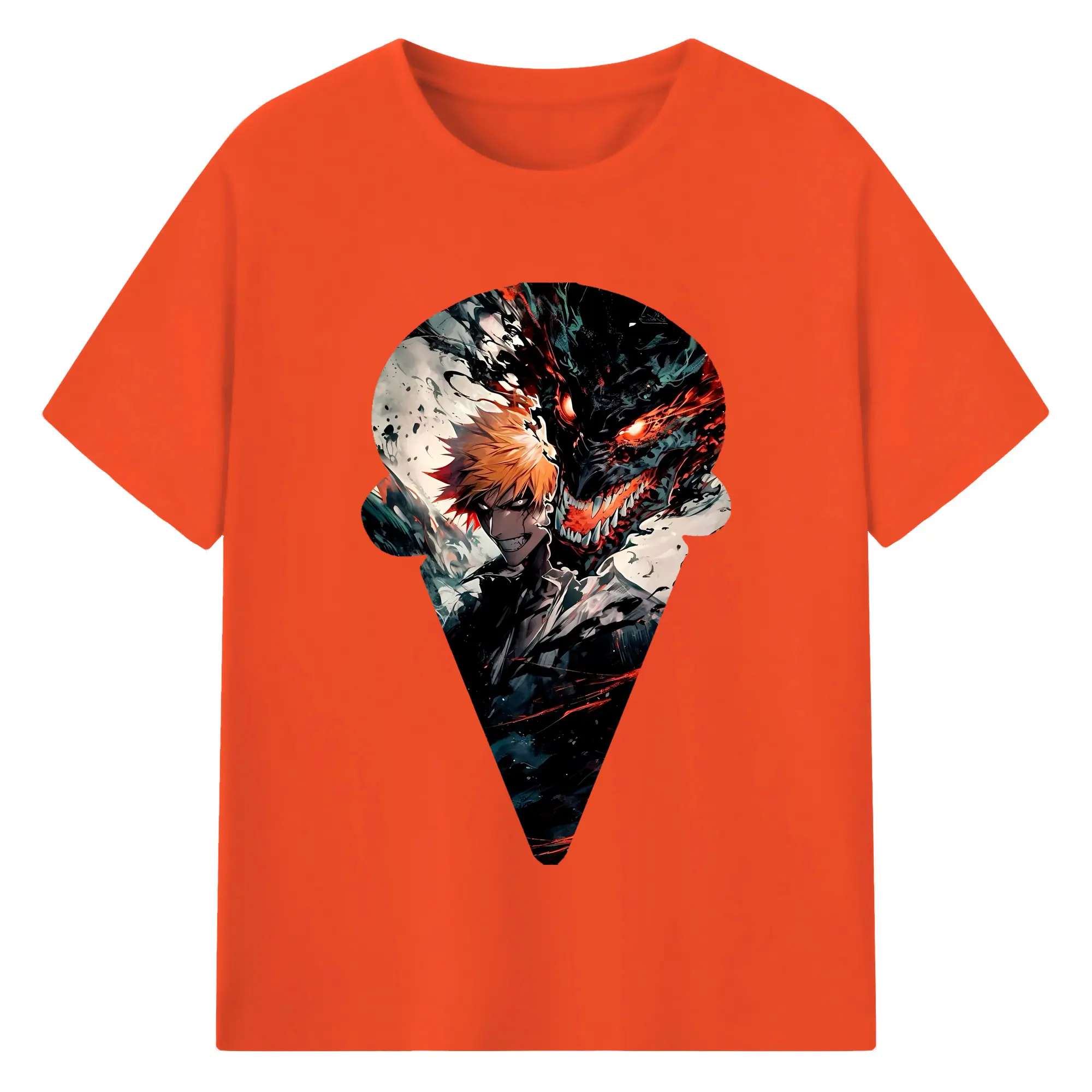 ブリーチ グッズ 黒崎 一護 - 綿100% ヴィンテージ風 半袖Tシャツ ・ フロントプリント ・ 柔らか肌触り ・ 通気性 快適 ・ スポーツ カジュアル 外出用