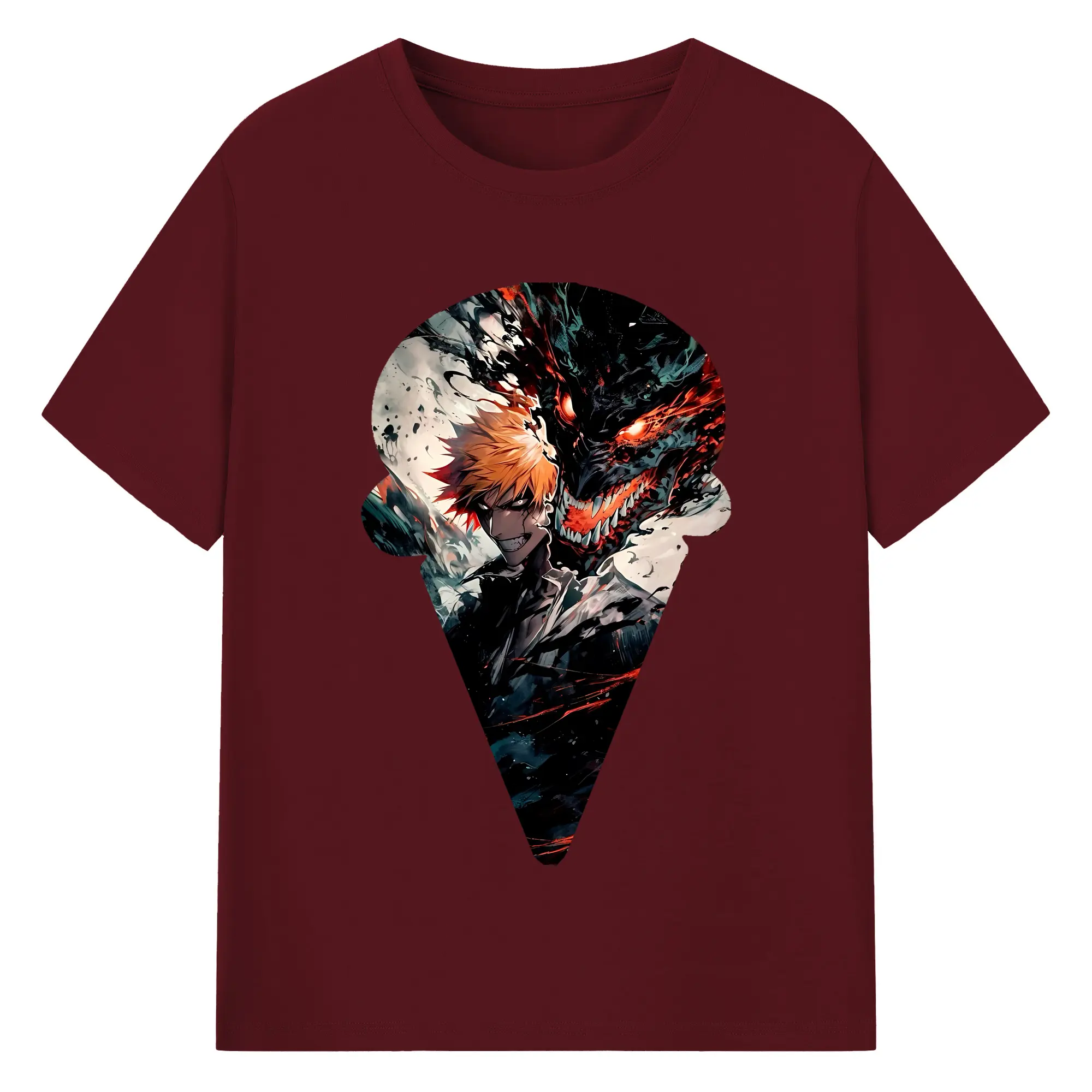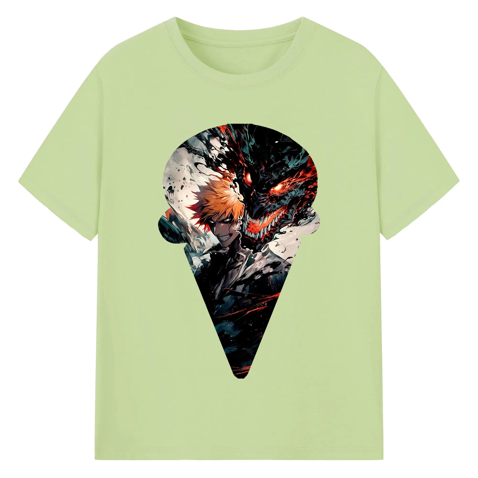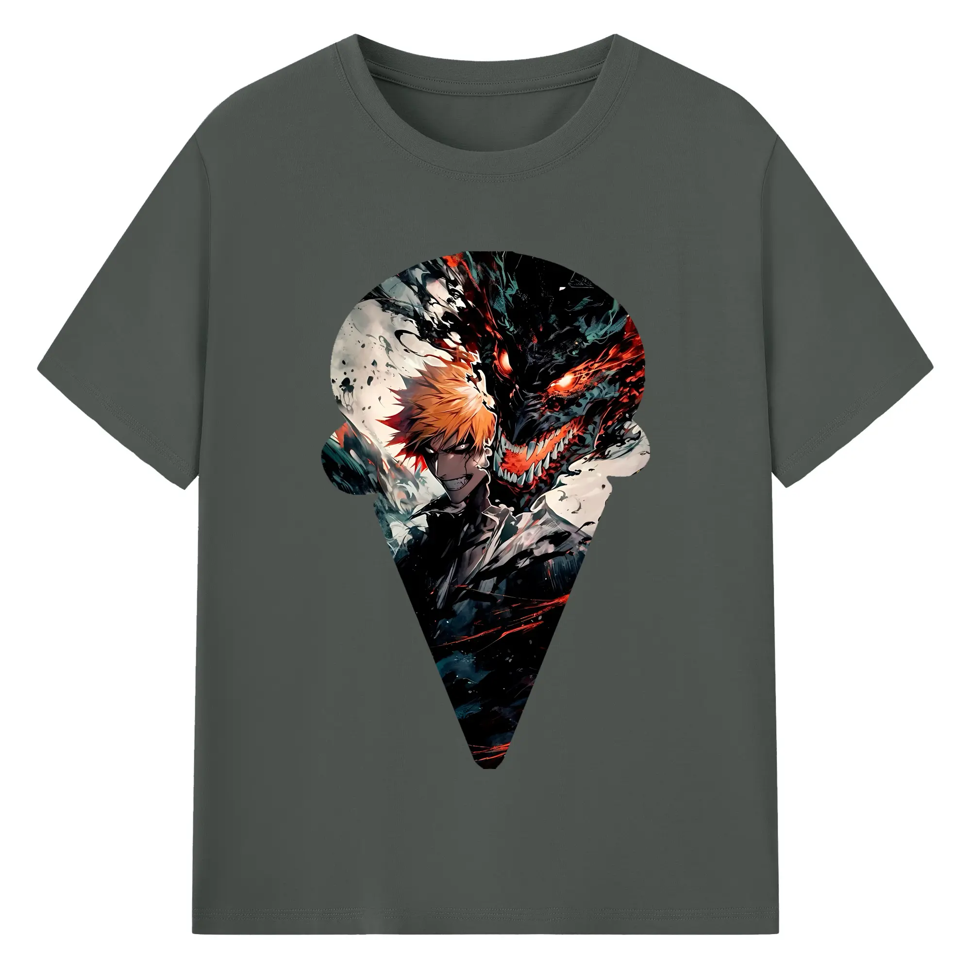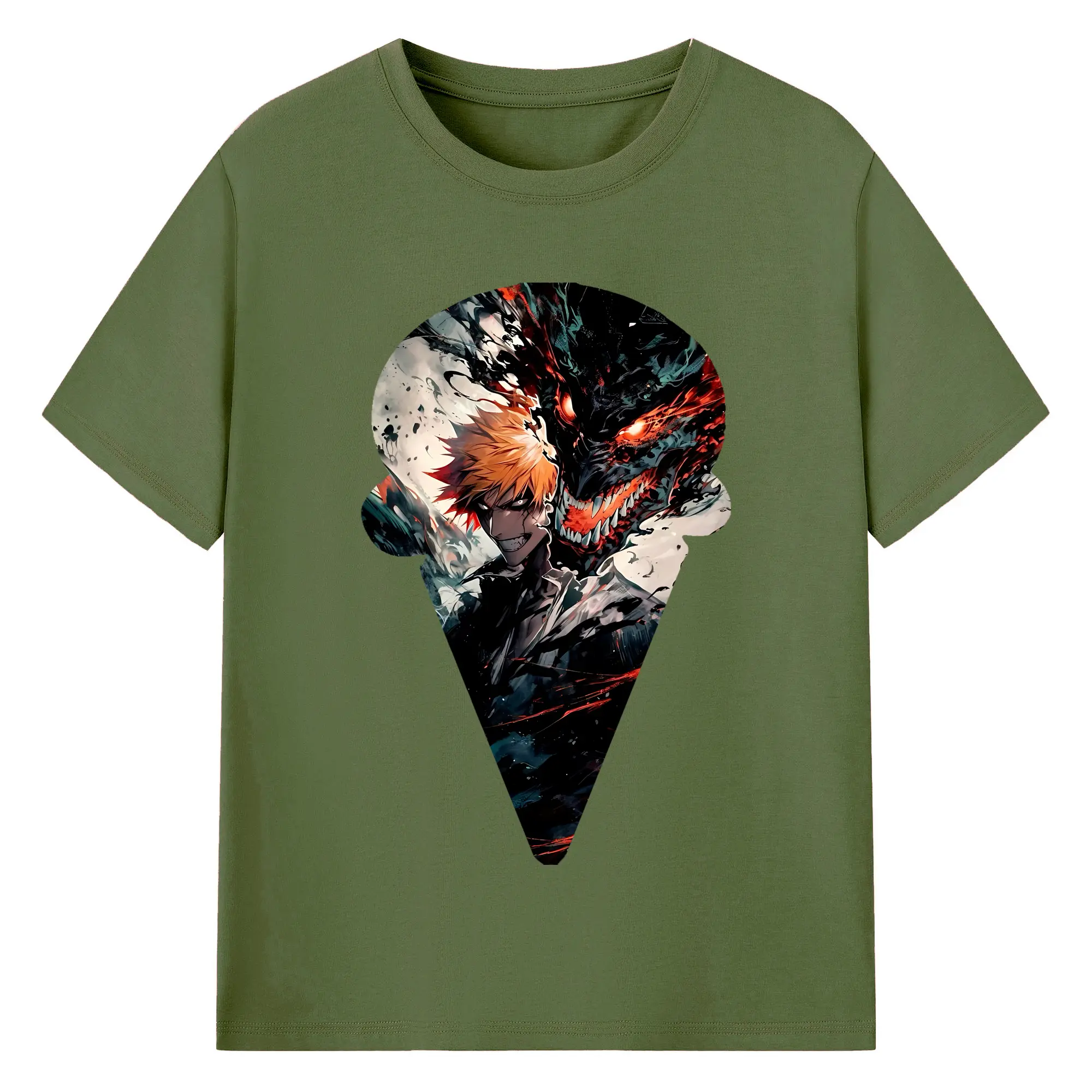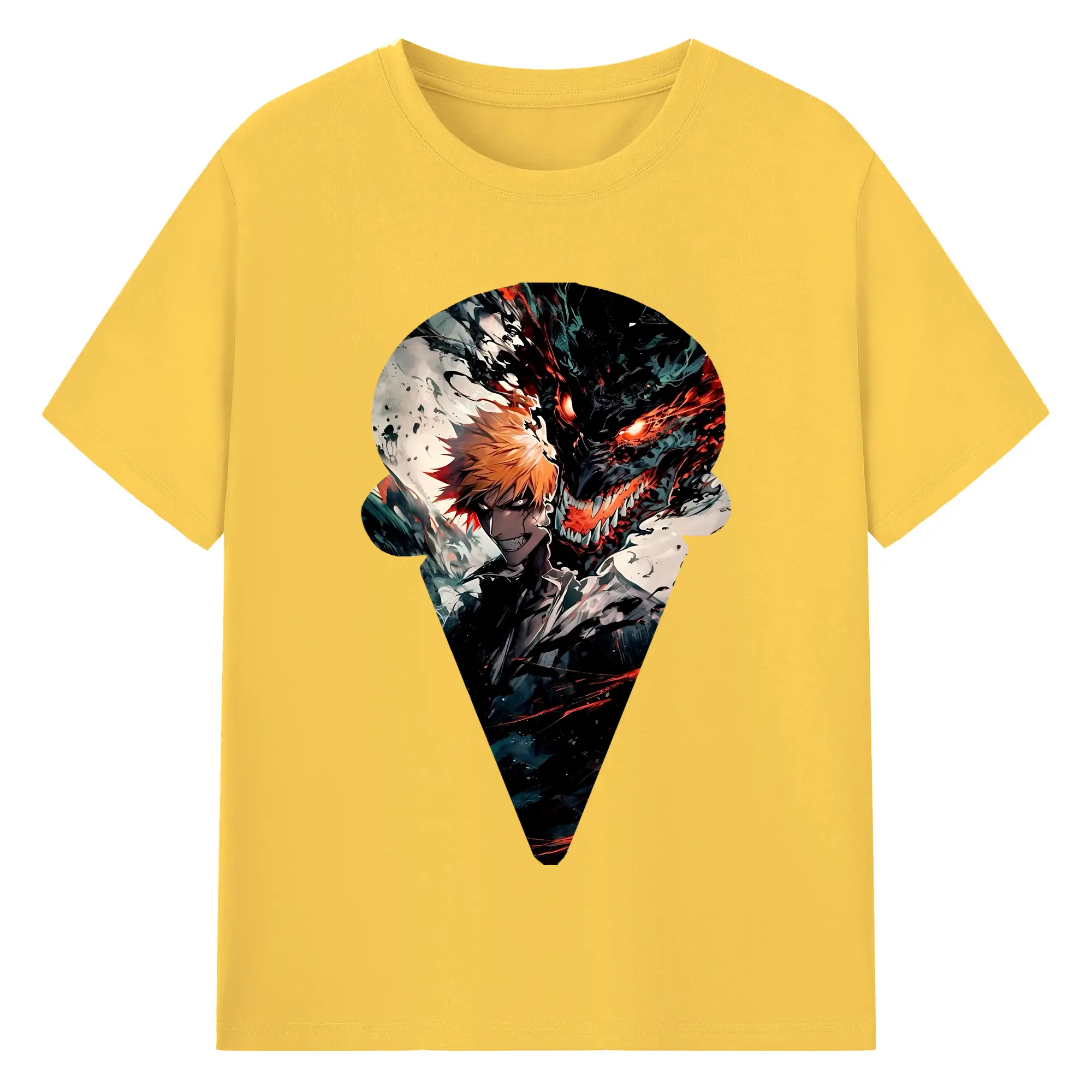 ブリーチ グッズ 黒崎 一護 - 綿100% ヴィンテージ風 半袖Tシャツ ・ フロントプリント ・ 柔らか肌触り ・ 通気性 快適 ・ スポーツ カジュアル 外出用
