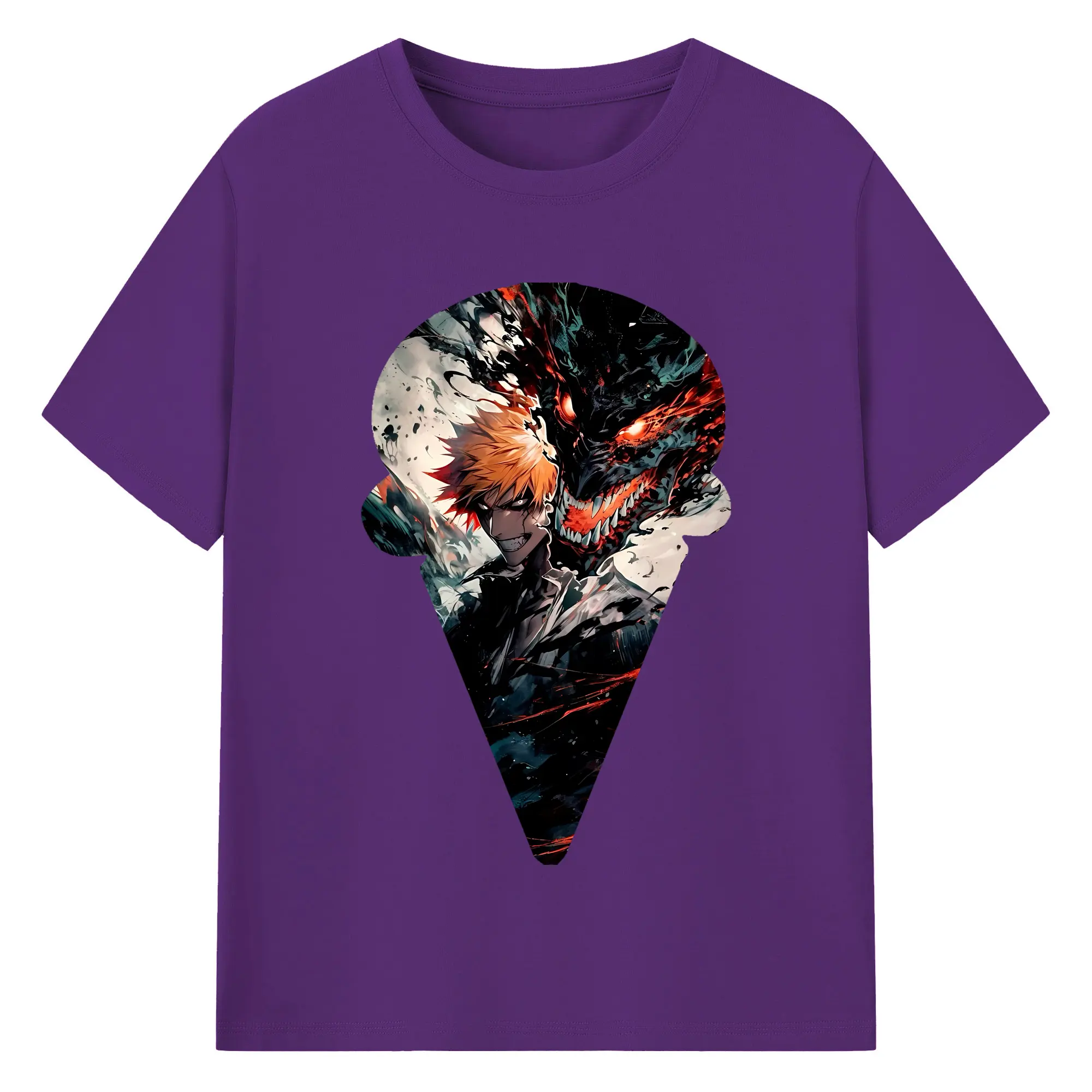 ブリーチ グッズ 黒崎 一護 - 綿100% 半袖Tシャツ ・ バックプリント ・ 快適 通気性 ・ 日常使い 散歩 スポーツ用