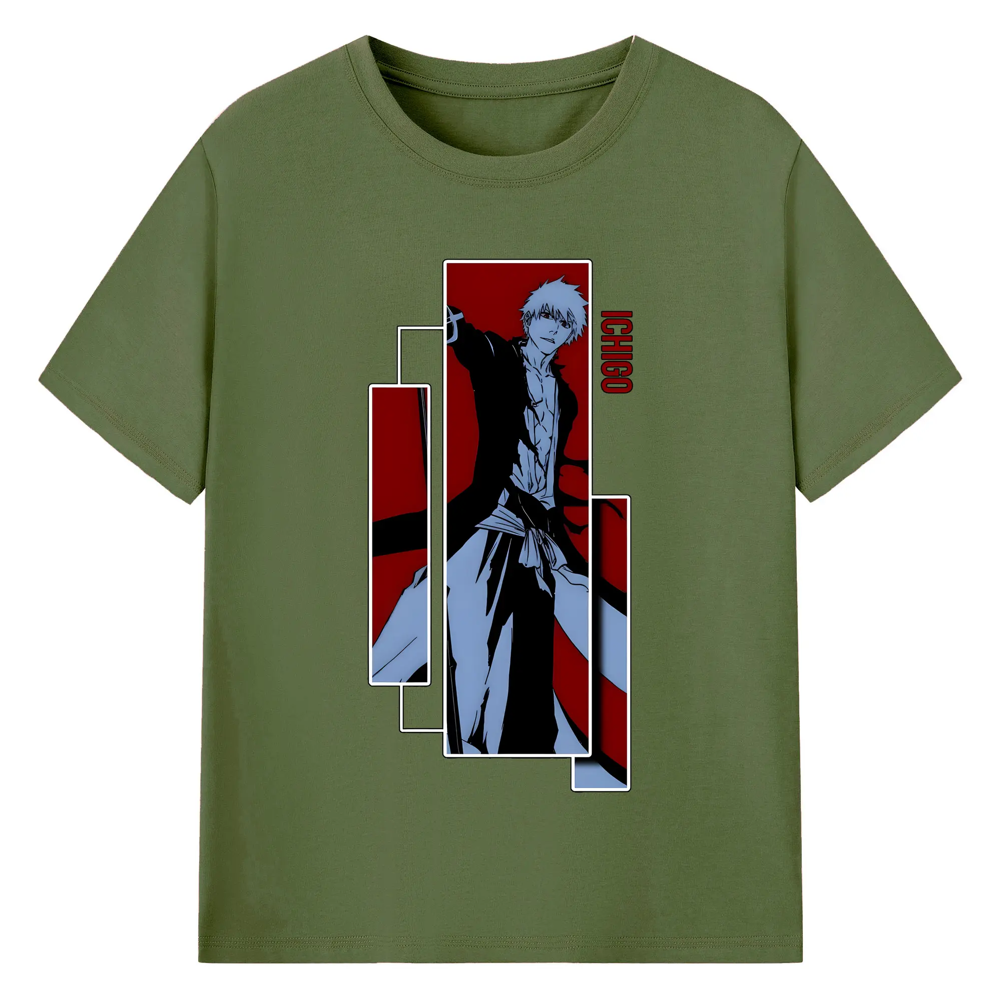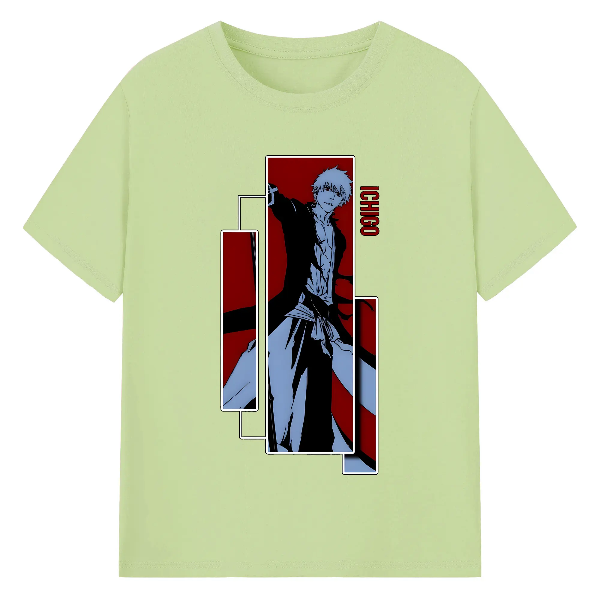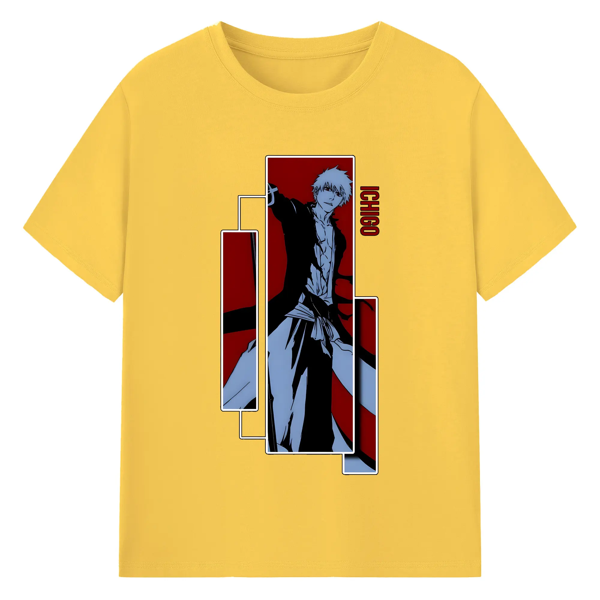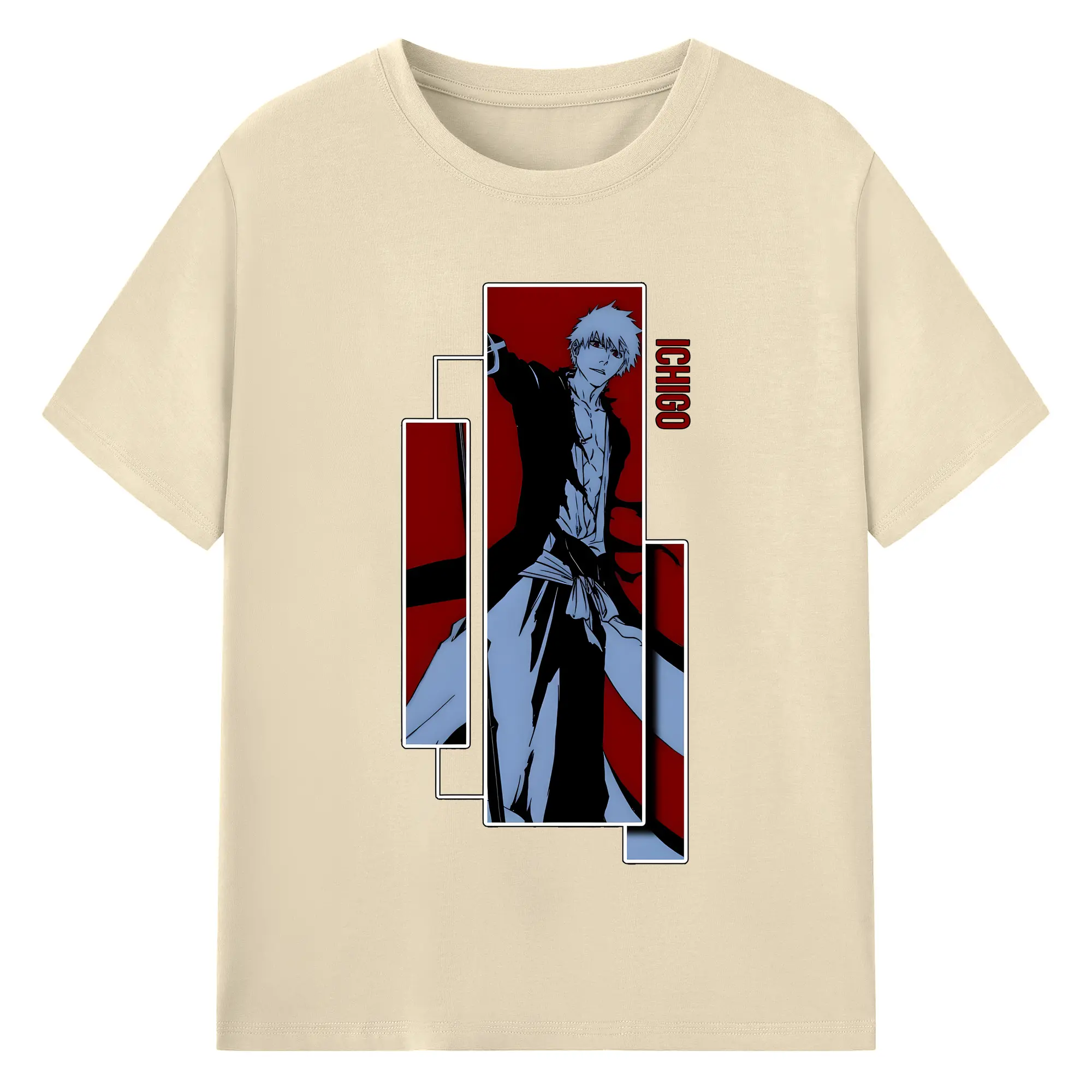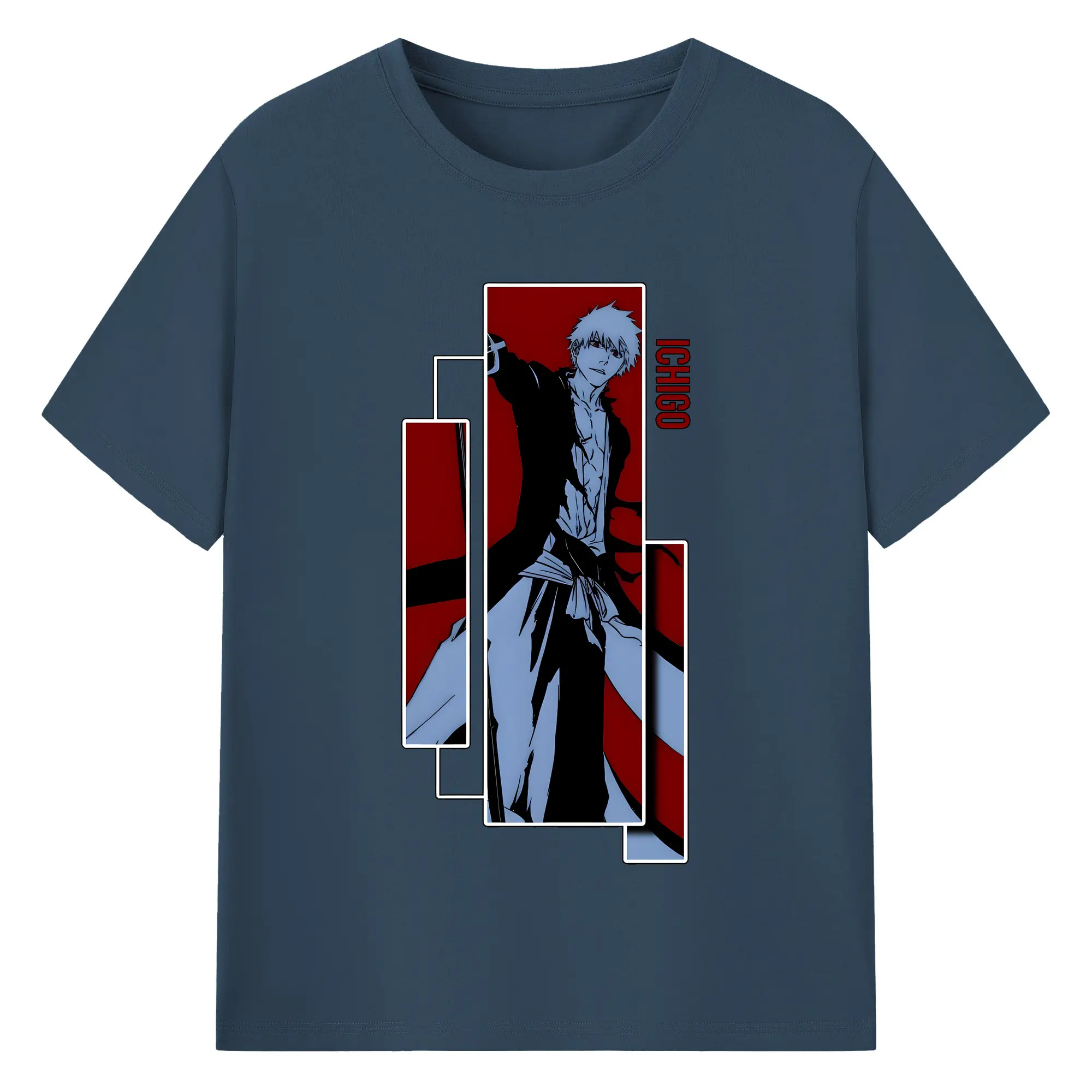 ブリーチ グッズ 黒崎 一護 - 綿100% ヴィンテージ風 半袖Tシャツ ・ フロントプリント ・ 柔らか肌触り ・ 通気性 快適 ・ スポーツ カジュアル 外出用