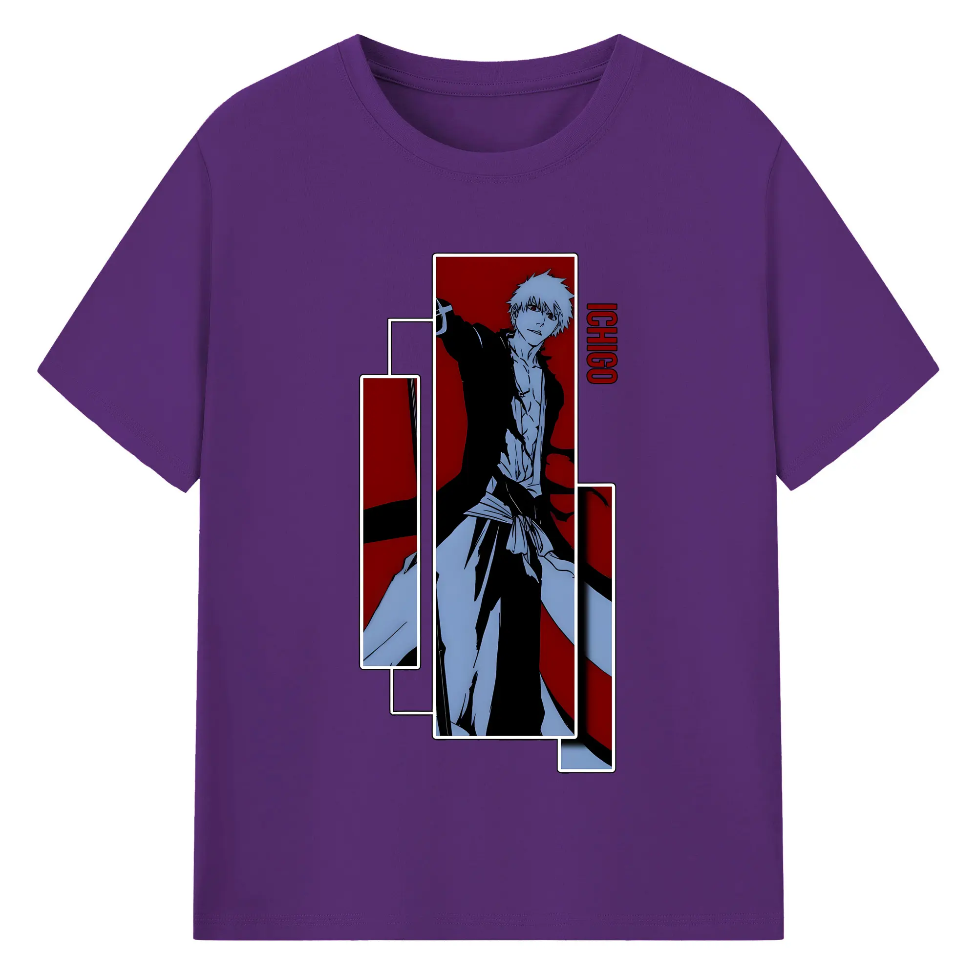 ブリーチ グッズ 黒崎 一護 - 綿100% 半袖Tシャツ ・ バックプリント ・ 快適 通気性 ・ 日常使い 散歩 スポーツ用