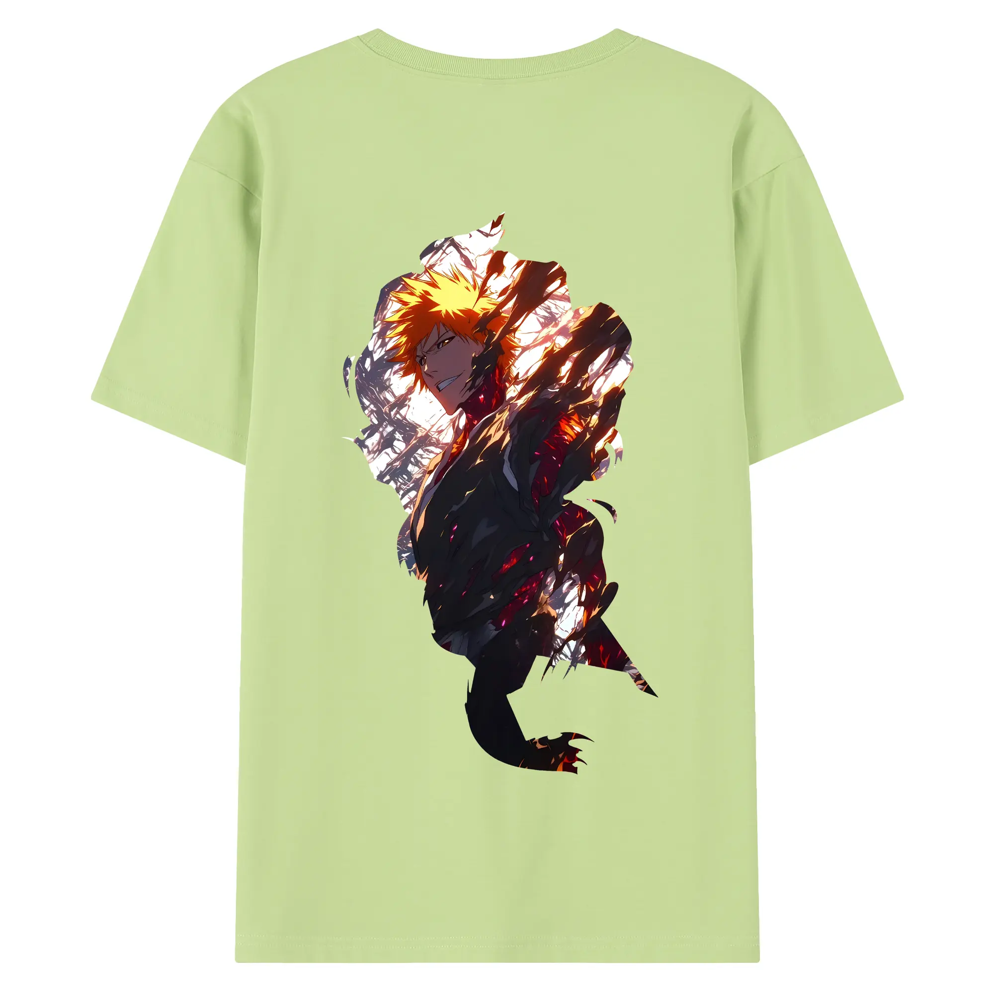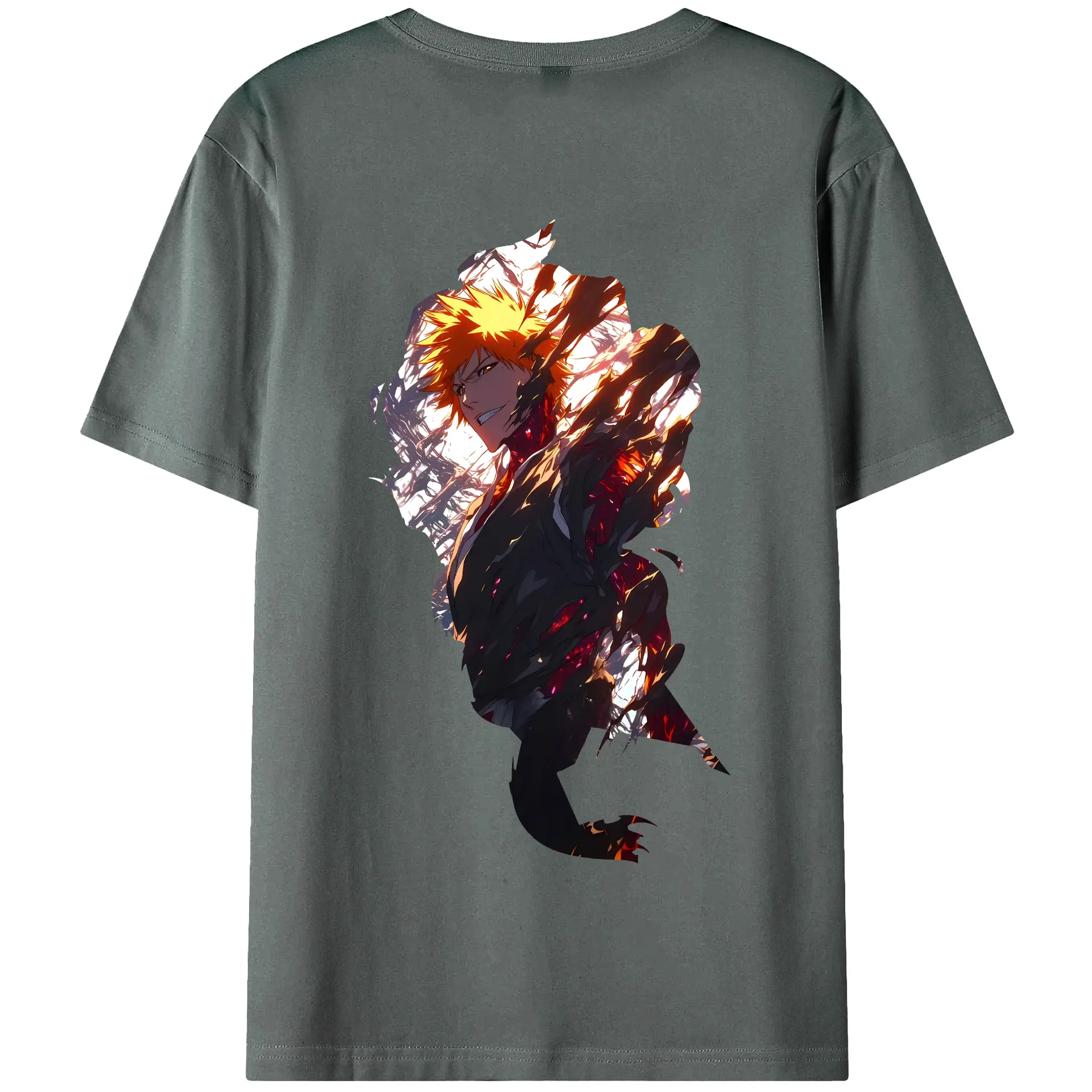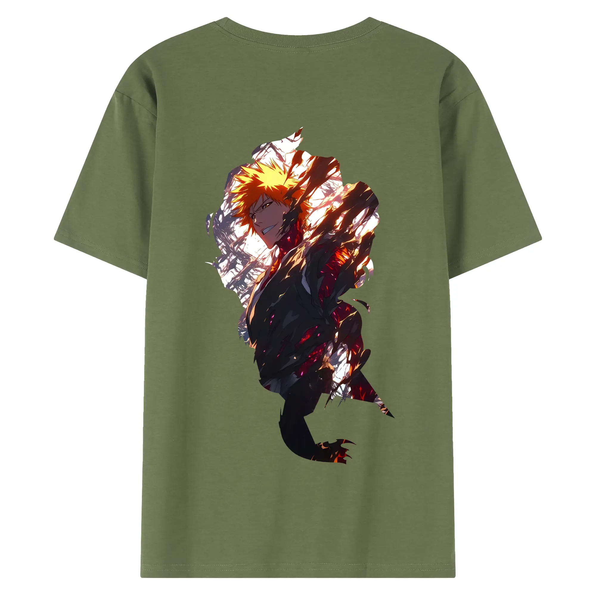 ブリーチ グッズ 黒崎 一護 - 綿100% ヴィンテージ風 半袖Tシャツ ・ 背面プリント ・ 柔らか肌触り ・ 通気性 快適 ・ スポーツ カジュアル 外出用