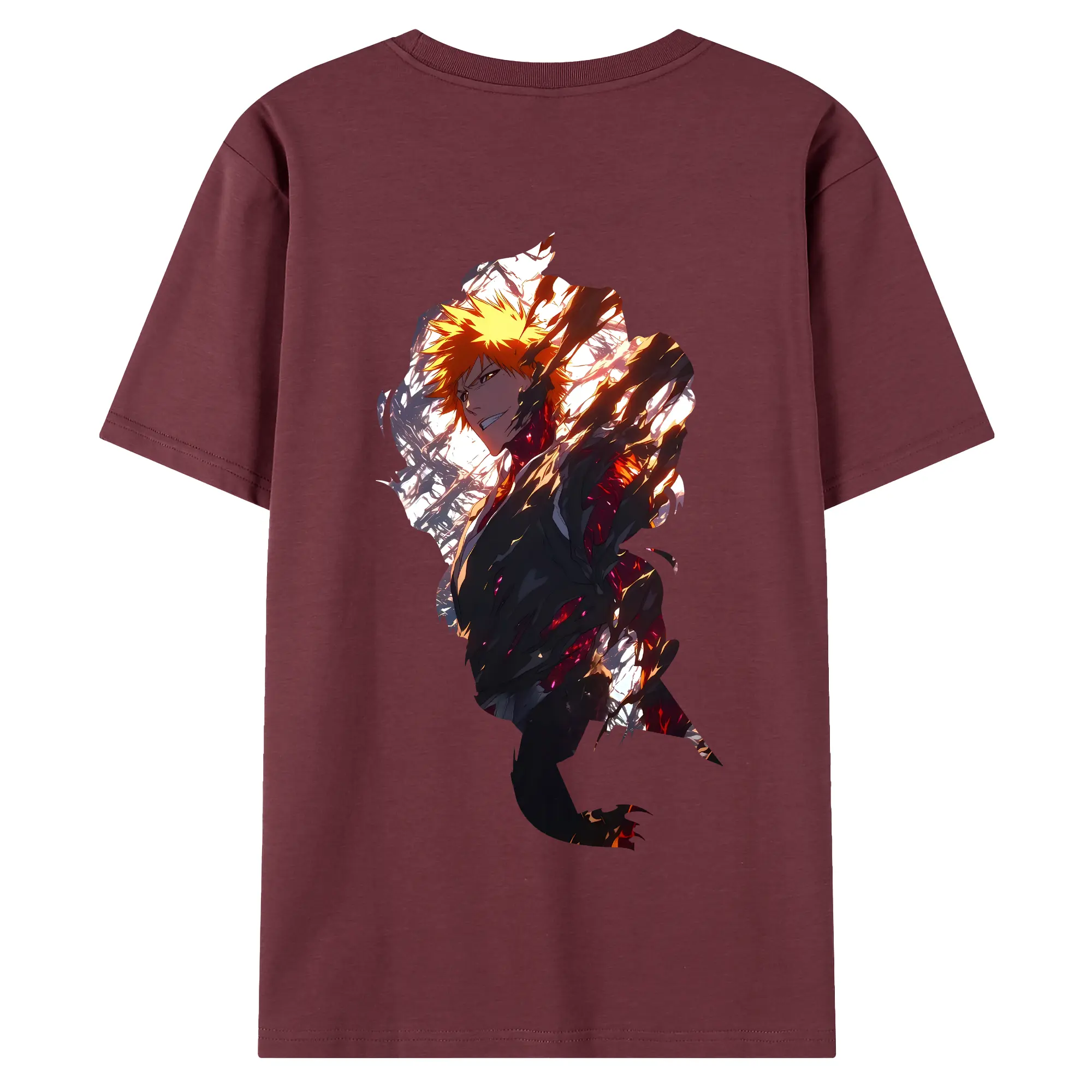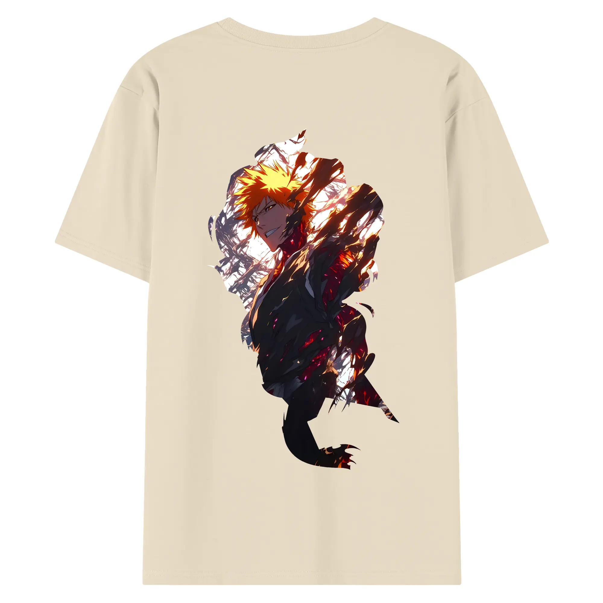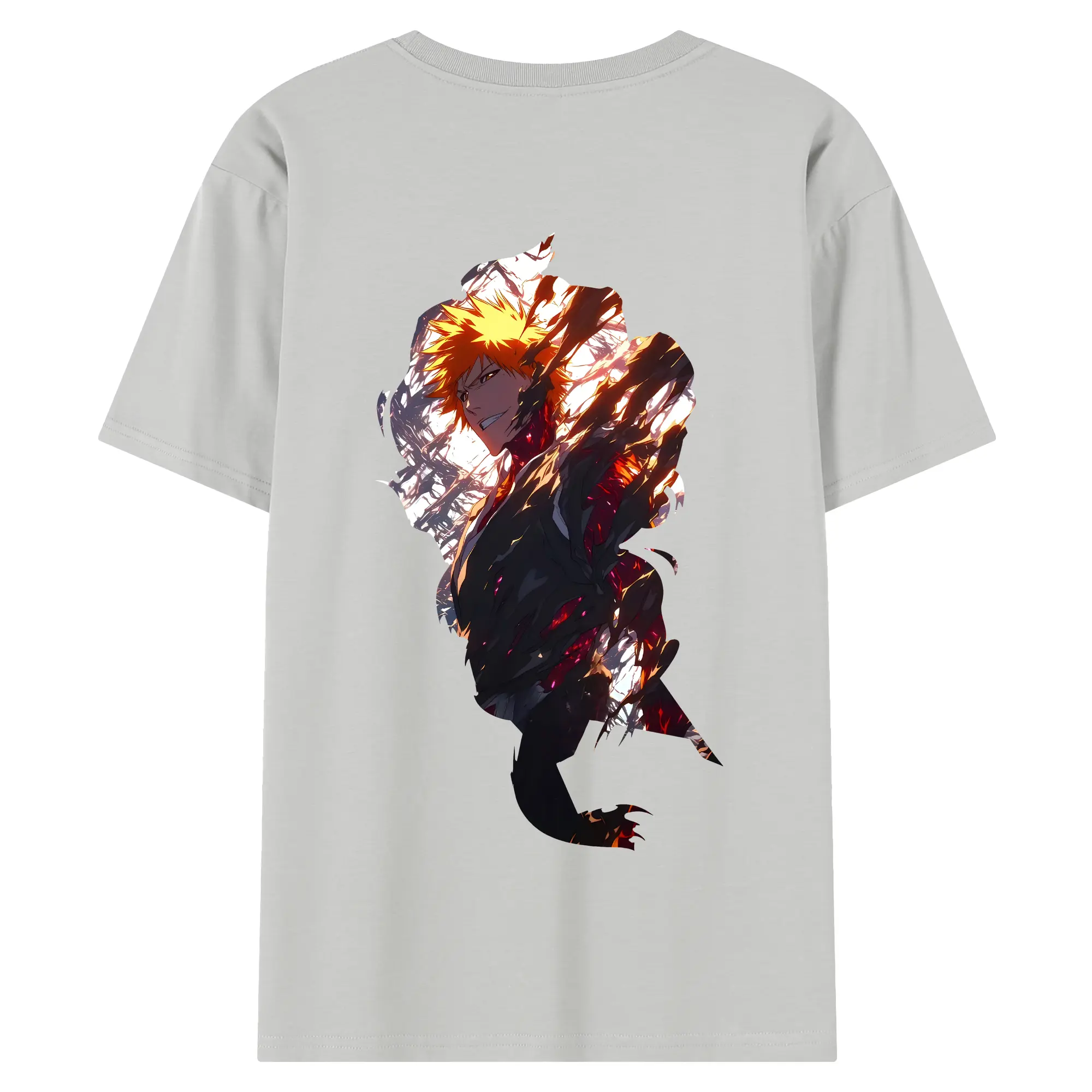 ブリーチ グッズ 黒崎 一護 - 綿100% ヴィンテージ風 半袖Tシャツ ・ 背面プリント ・ 柔らか肌触り ・ 通気性 快適 ・ スポーツ カジュアル 外出用