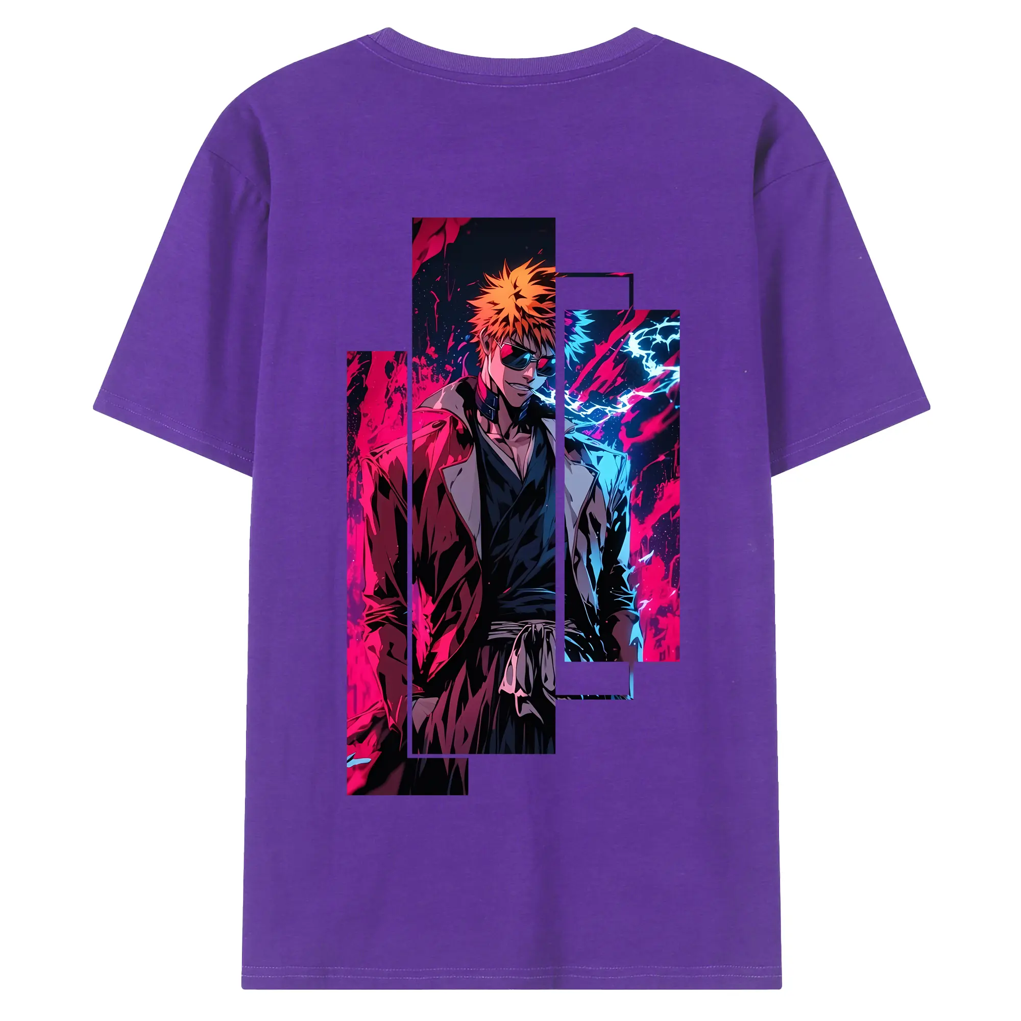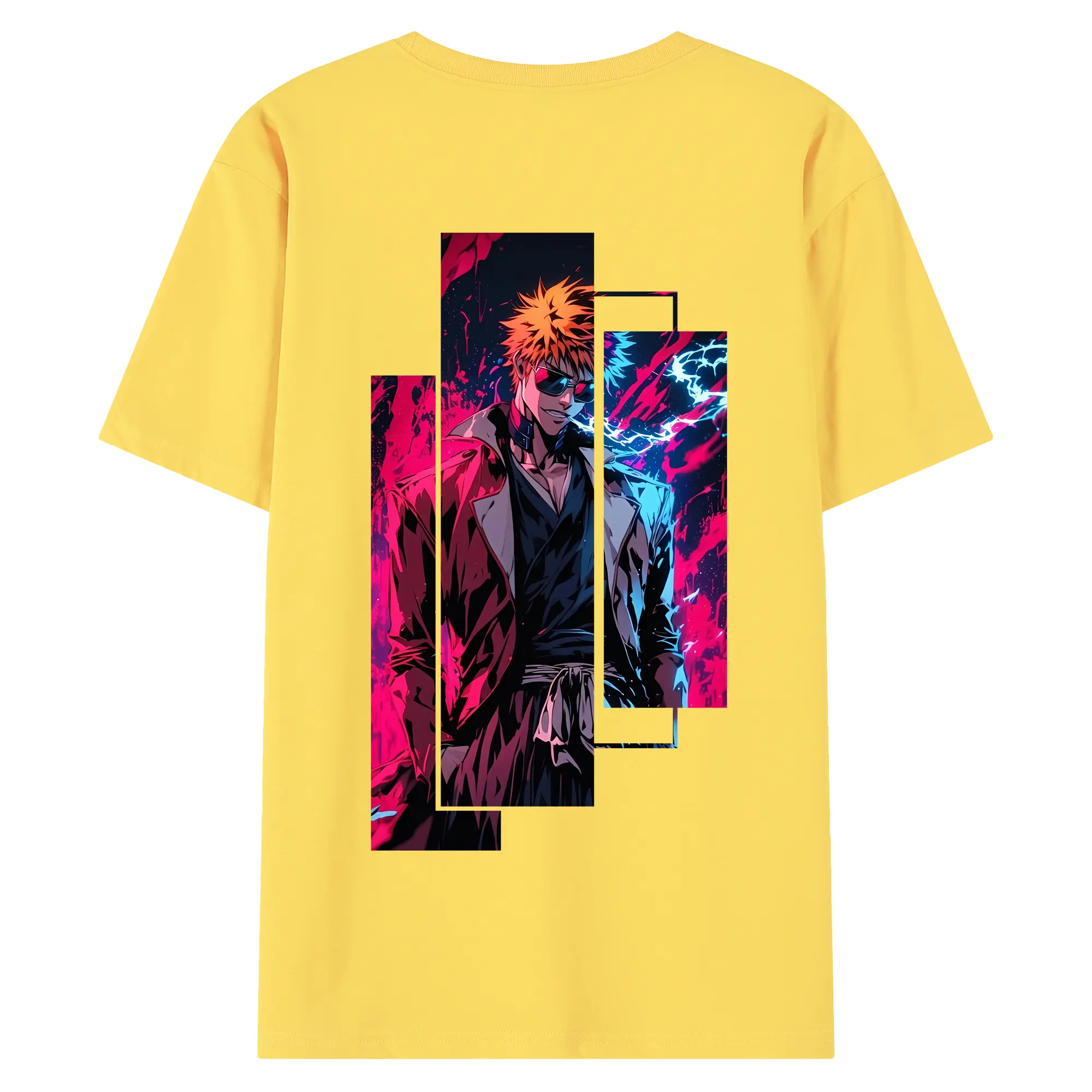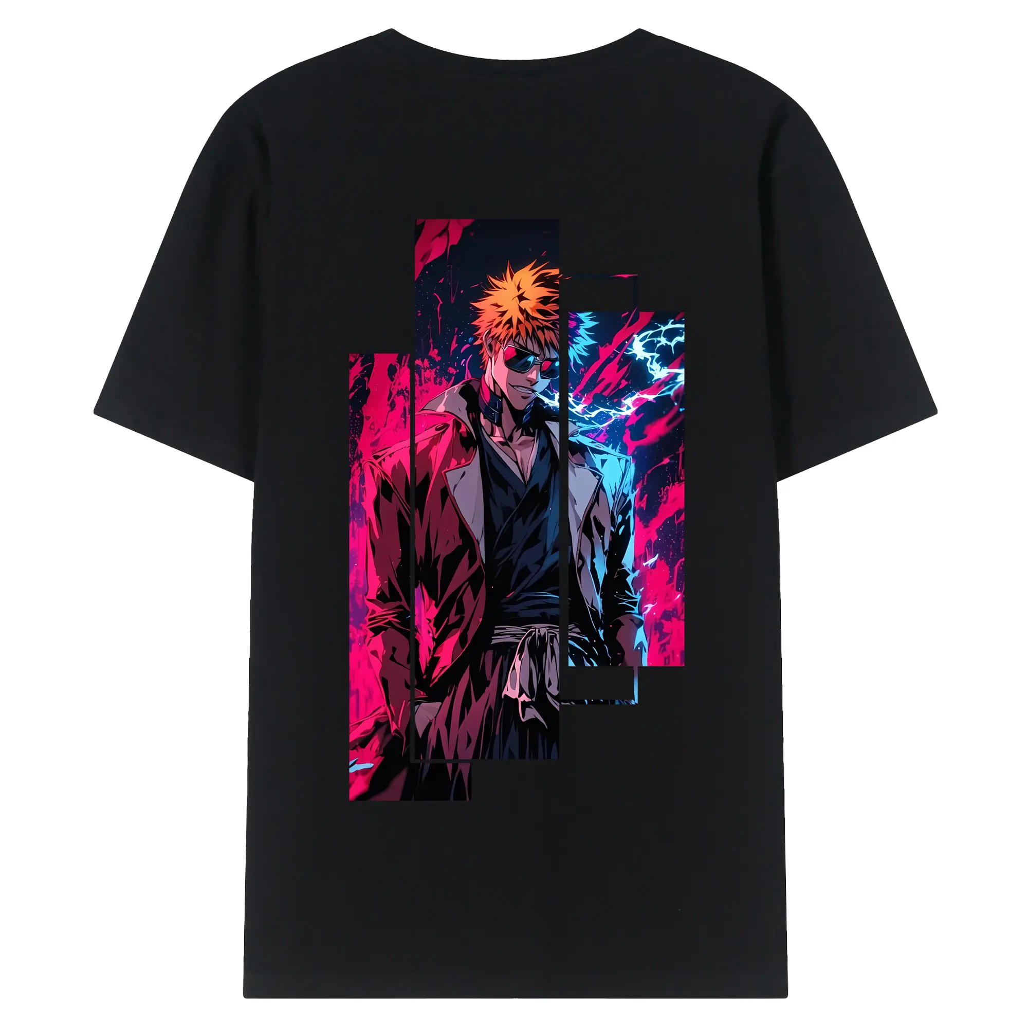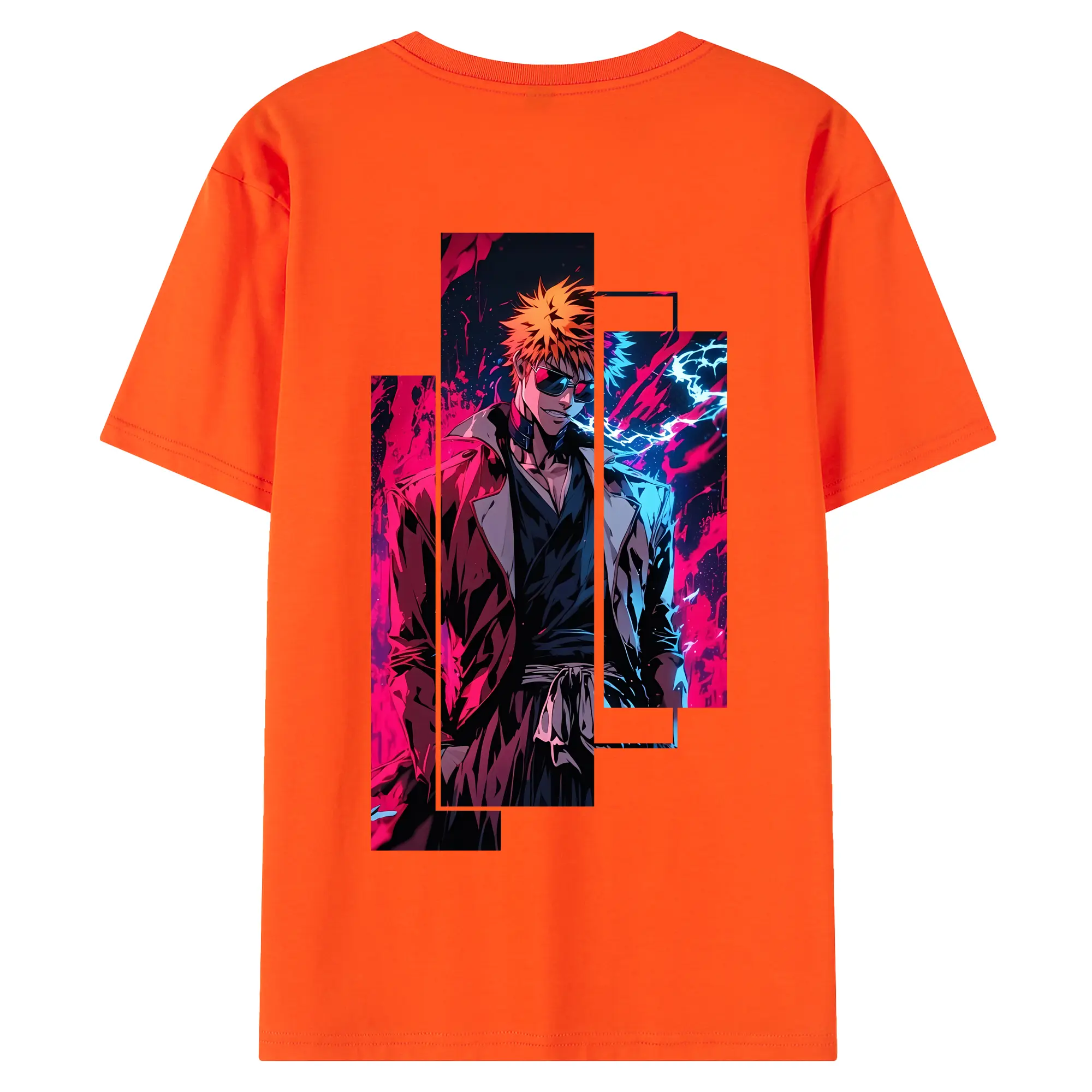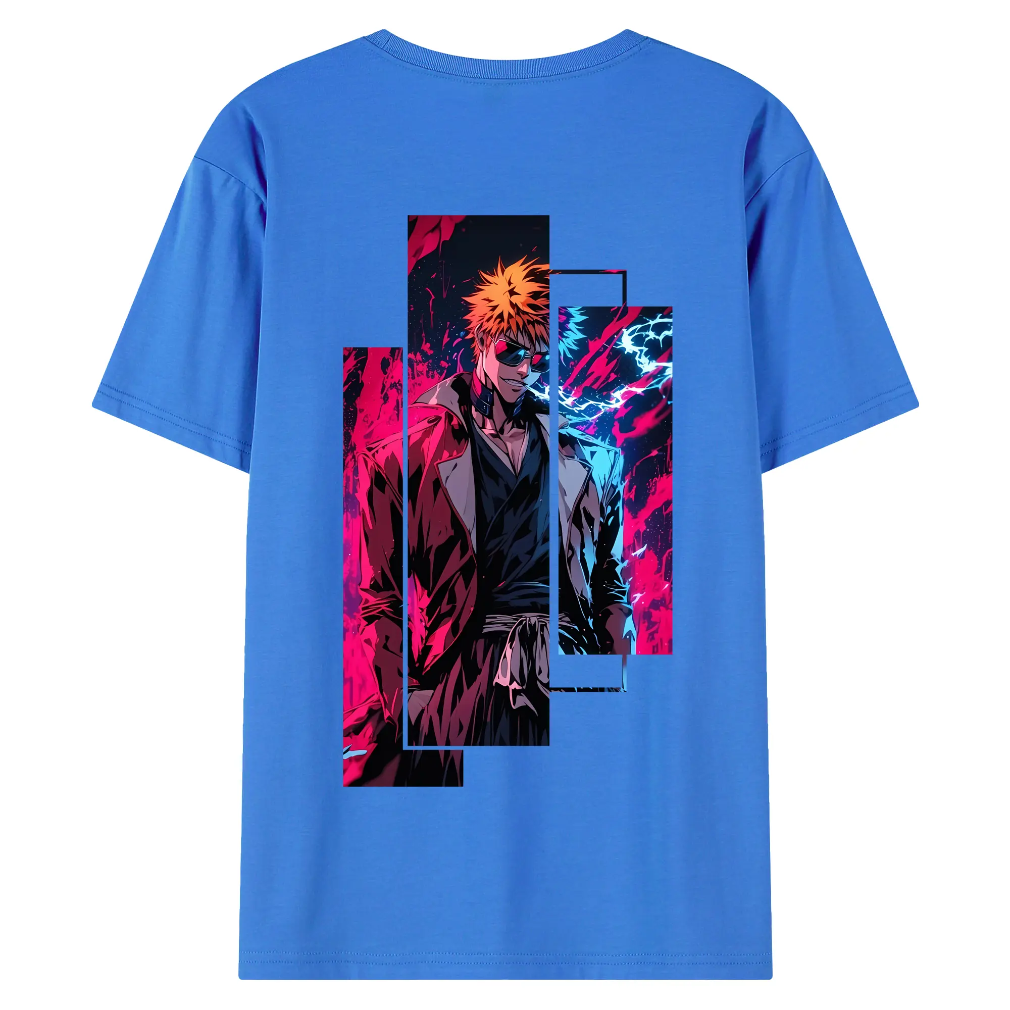 ブリーチ グッズ 黒崎 一護 - 綿100% 半袖Tシャツ ・ フロントプリント ・ 快適 通気性 ・ 日常使い 散歩 スポーツ用