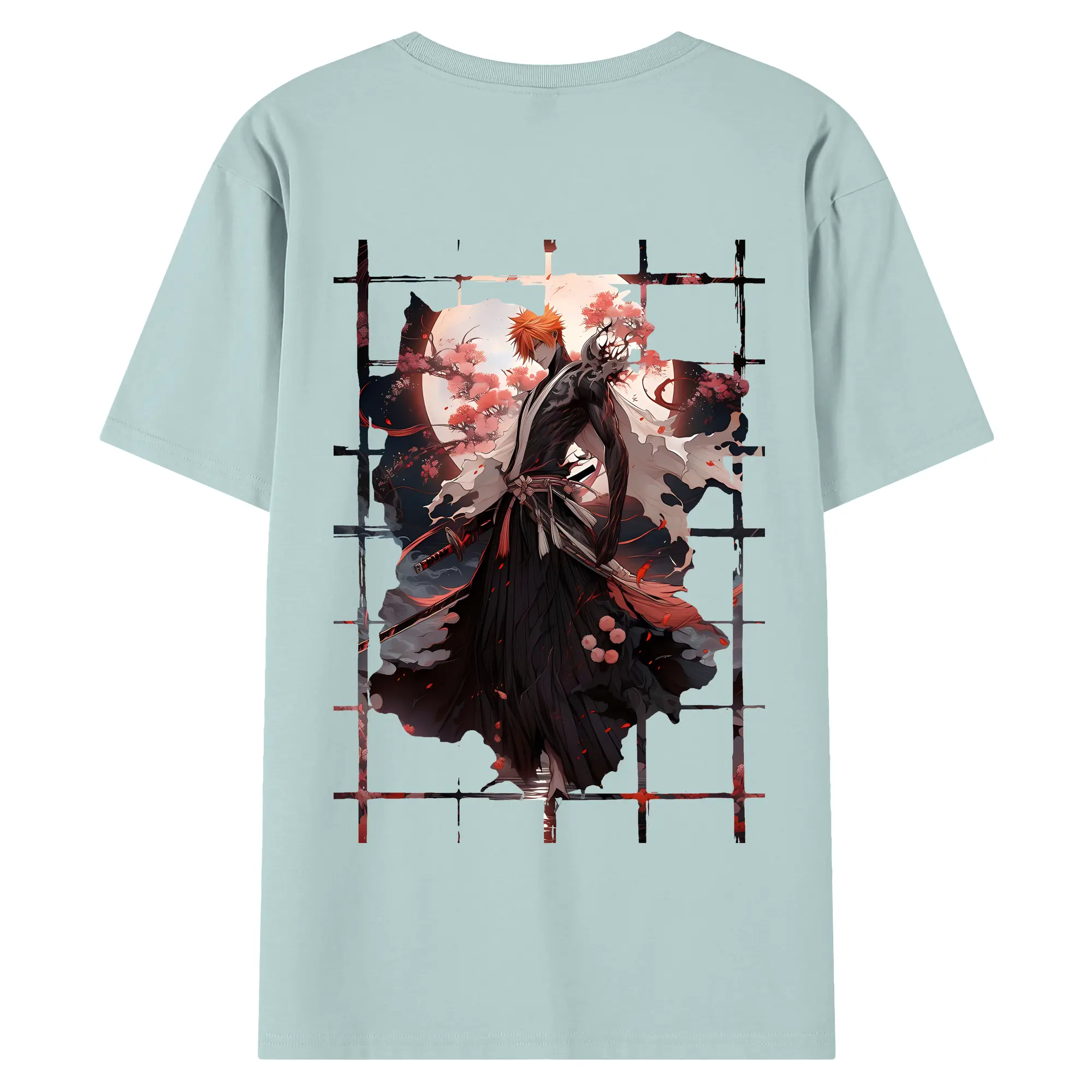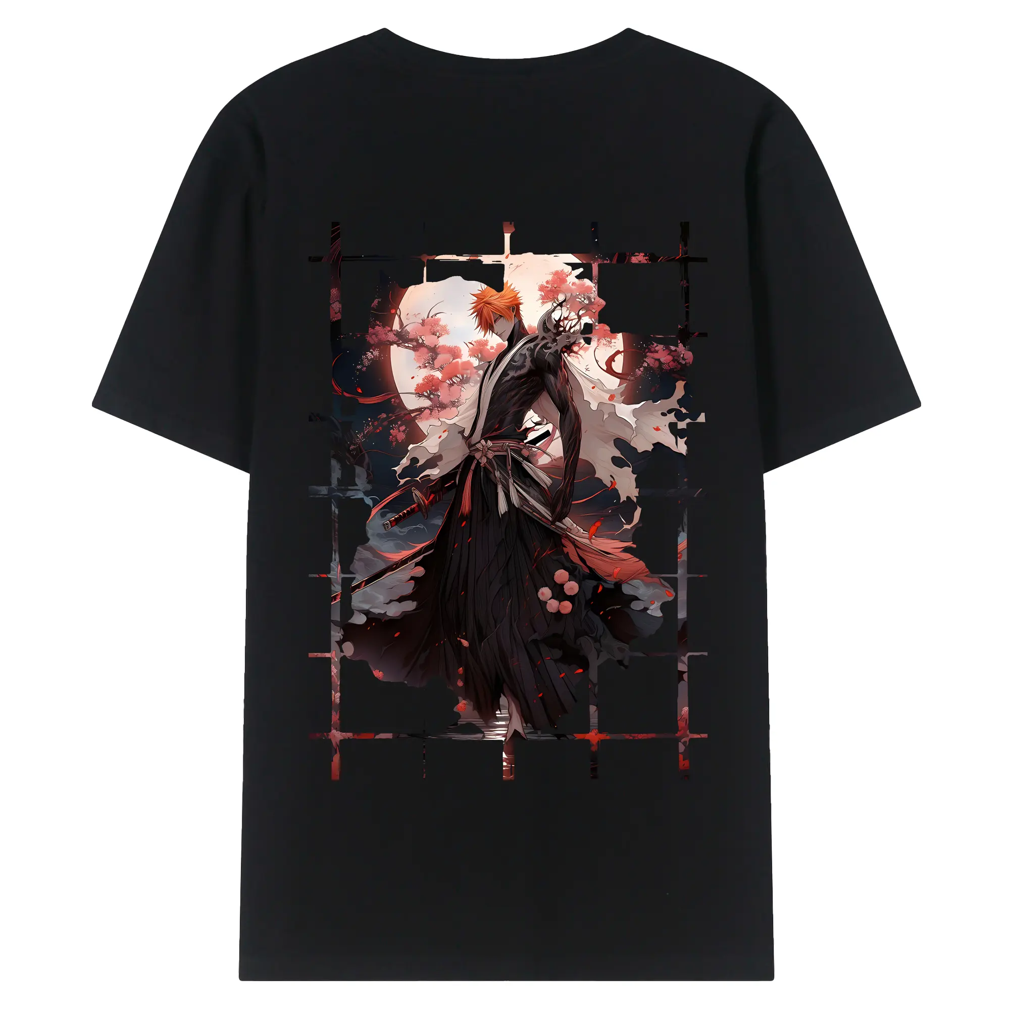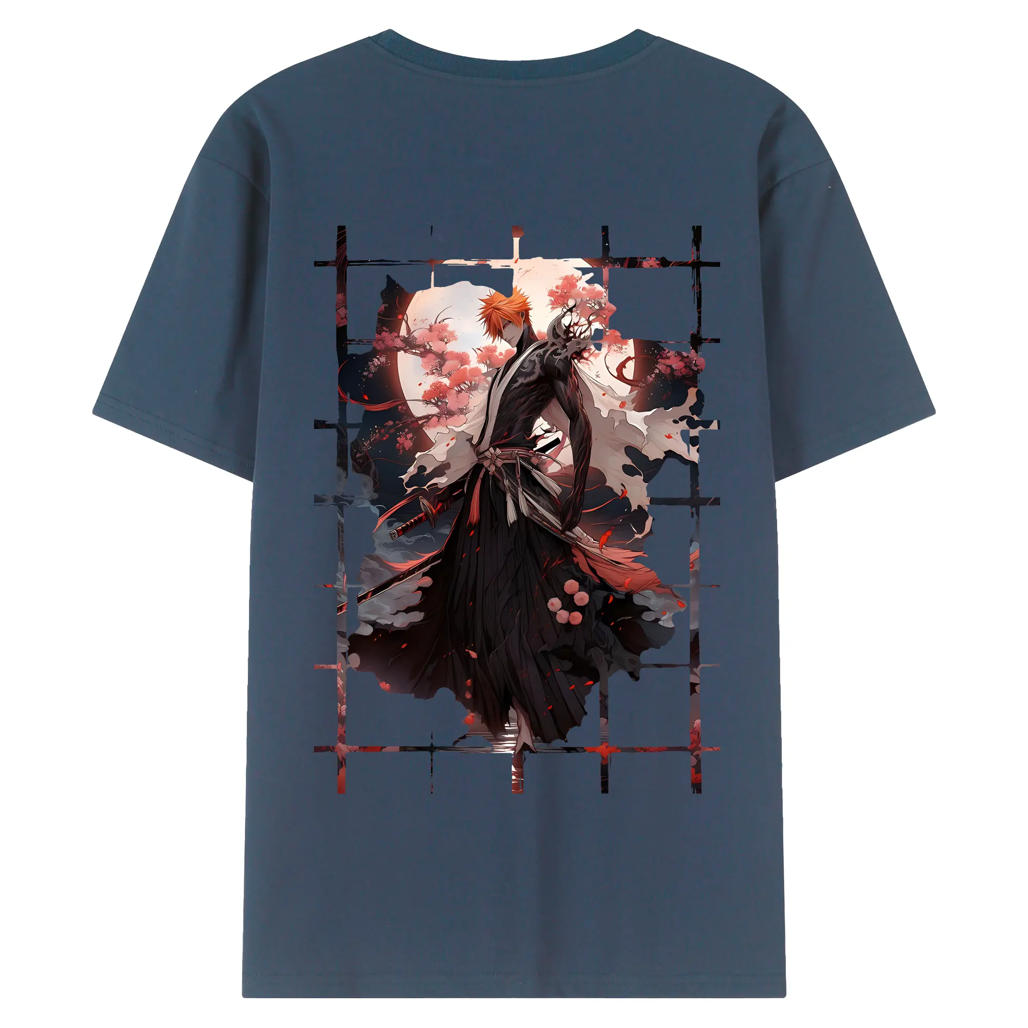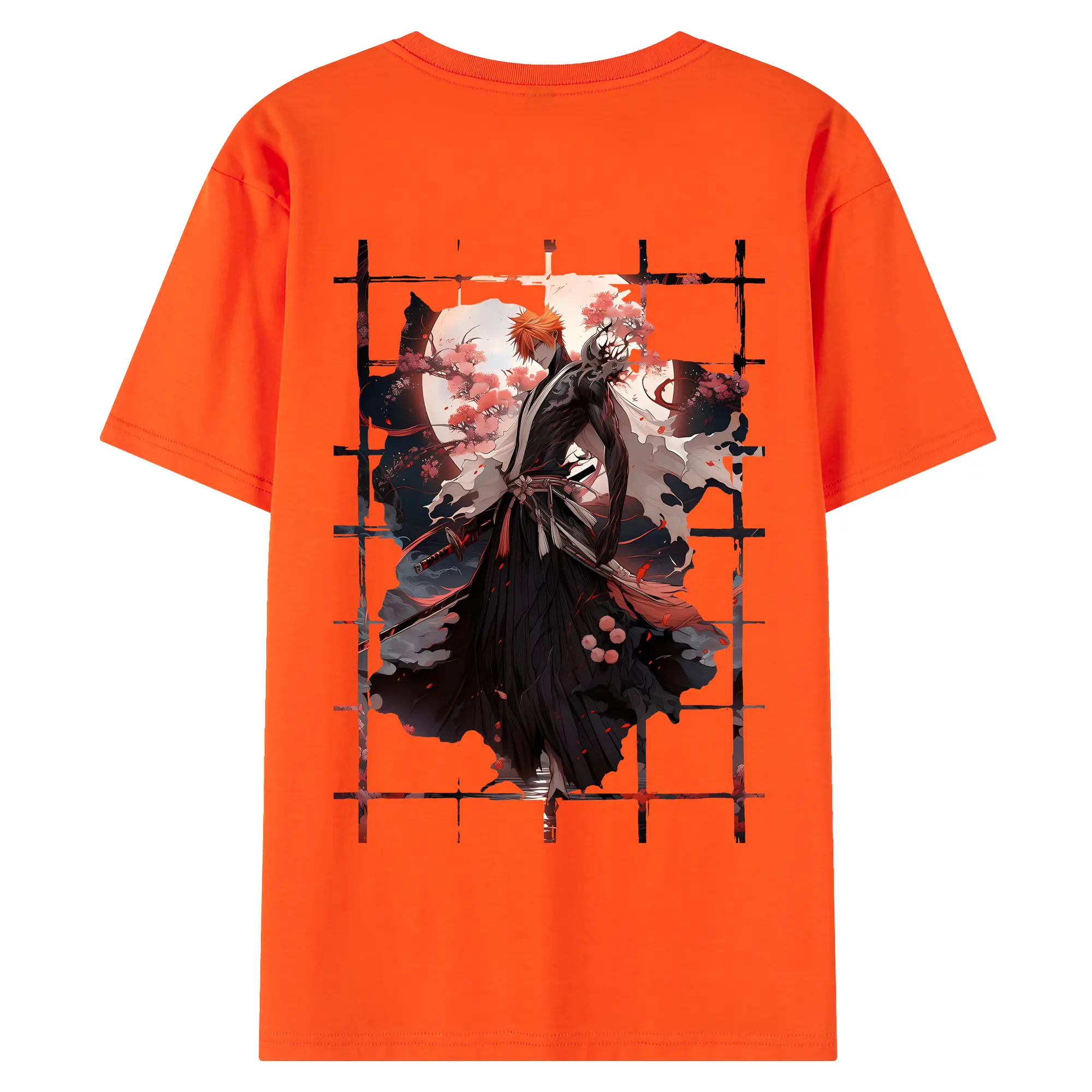 ブリーチ グッズ 黒崎 一護 - 綿100% ヴィンテージ風 半袖Tシャツ ・ 背面プリント ・ 柔らか肌触り ・ 通気性 快適 ・ スポーツ カジュアル 外出用